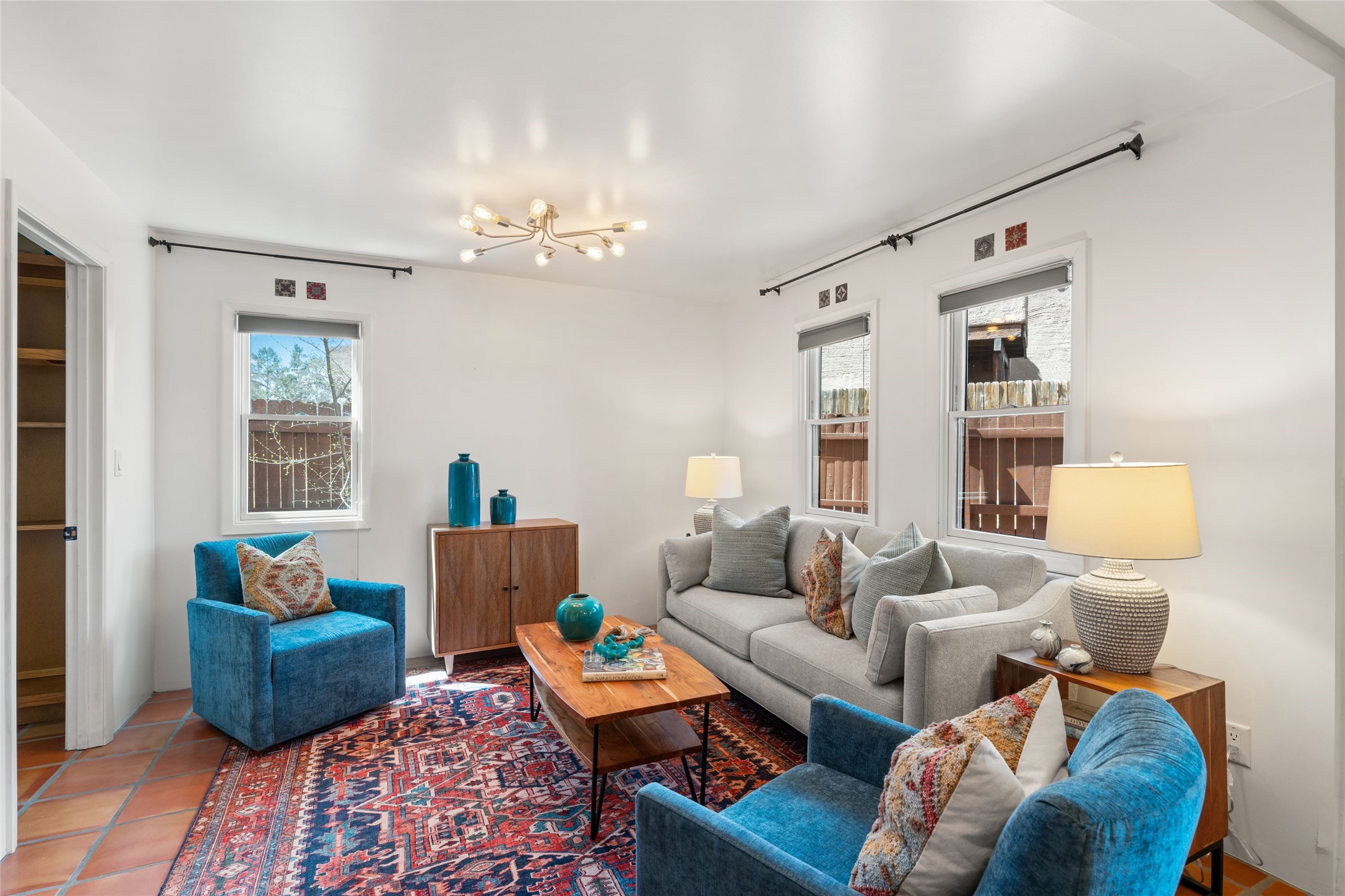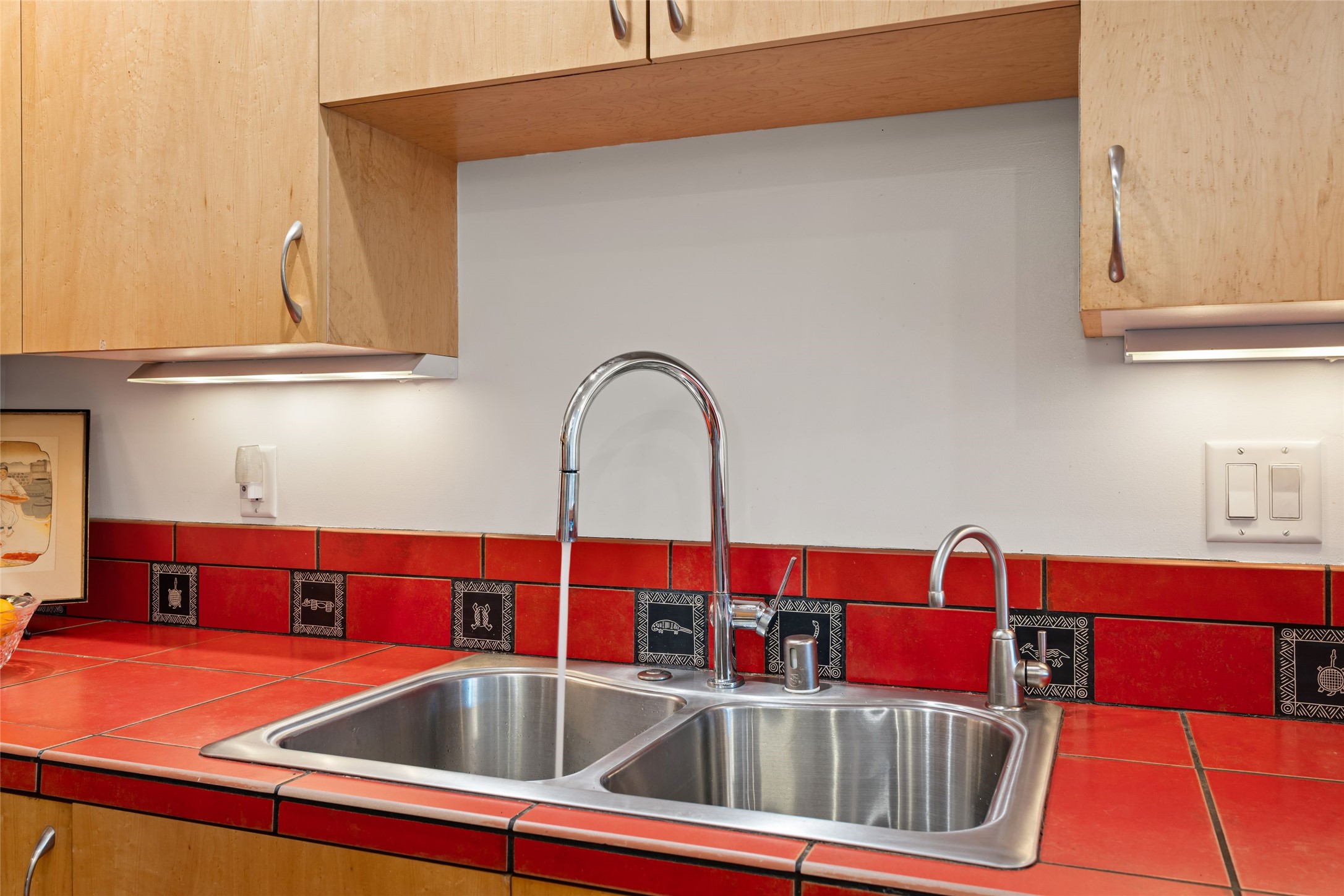BRAND NEW PRICE!!! Tucked away down a private lane, this single level condo has exceptional CHARM! Beautifully updated and tastefully remodeled this light filled condo offers 1432 sf of living space in a flexible floor plan. It is pristine and was architecturally re-designed combining two units to create a one clever floor plan now offering a 3 bedroom, 3 bathroom condo. In addition it offers 2 spacious fenced courtyards and is an end unit situated on a gated 13.5 ac property. The community property offers a pool with ramada & BBQ, walking trails with foot bridges, vast Pinon groves, plus 2 large ponds filled with KOI and fountains. This is a MUST SEE condo!!The main living area offers dining room ensconced with a crystal chandelier and wood burning Kiva flowing into the living room. The kitchen appointed with custom cabinets, designer tile, stainless appliances, & the sink outfitted with a Hans Grohe faucet. Entire space opens to a west facing dining patio through charming French doors ....The large owner's suite is a retreat featuring wood floors, wood burning Kiva, walk-in closet, a beautifully appointed en-suite with Talavera sink, luxury jetted soaking tub, & separate shower with river rock floor. More French doors lead to 2nd fenced courtyard overlooking Pinion groves. The 2nd bed also includes en-suite, and the 3rd bed could also be perfect for office or den.The designated laundry area with washer/dryer has custom wood cabinets and counters for folding convenience. The Saltillo tiles & wood floors throughout offer radiant heat and efficient duct refrigerated air for the warmer seasons. If closet and storage space is a priority, well then this condo is for you! Aside from the 2 walk-in closets there are another 2 semi walk-in closets for storage. This is a rarity among condos!This is a one of a kind end unit that lives like a home with windows on all three sides, plus 4 designated parking spaces right next to the unit for your convenience, and excellent proximity to shopping centers and Ragle Park across the street.* Seller willing to pay 6 months of HOA dues.*Excellent opportunity to own large turn key condo that is priced to sell!