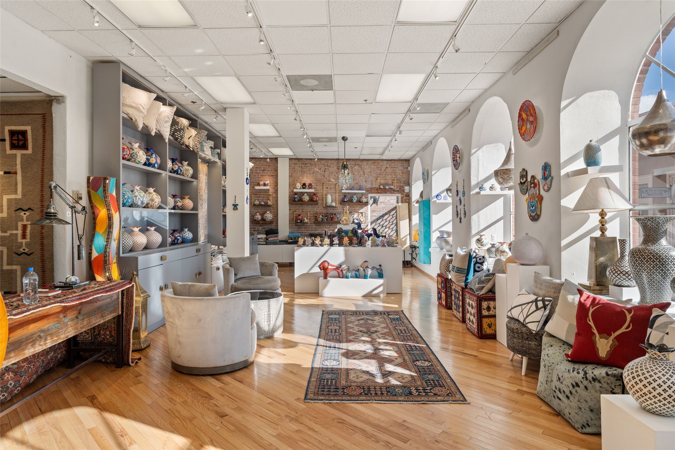 Prime commercial condo situated in the heart of downtown Santa Fe, offering high visibility and a vibrant location for your business. The property is zoned BCD (Business Capitol District), making it an ideal choice for a variety of commercial uses. Approximately 3,700 sq. ft. U-shaped design, providing a unique and functional space. Five large windows facing Galisteo, allowing for abundant natural light. Recently updated with new wood floors and stylish metal lighting fixtures, paired with a modern tile ceiling that enhances the overall aesthetic. Shared on-site parking lot, ensuring convenient access for customers. Please note that the sale is subject to the existing lease, making it a great investment opportunity for those looking to expand or establish their presence in Santa Fe's bustling commercial landscape. Excellent Opportunity to own a piece of prime real estate in one of New Mexico's most sought-after locations!