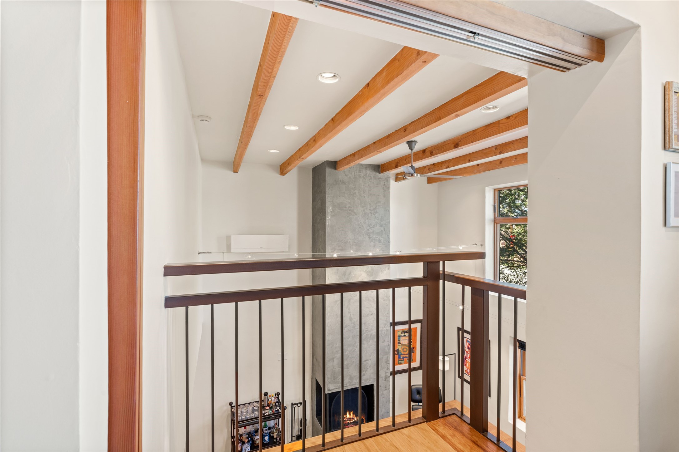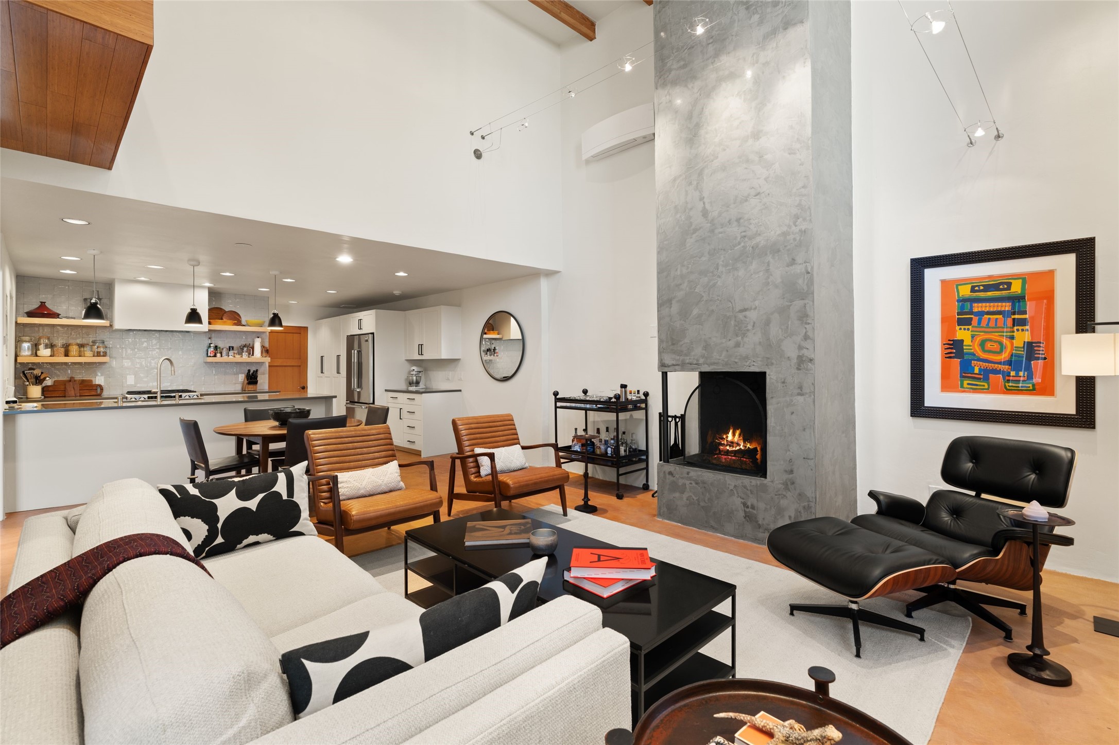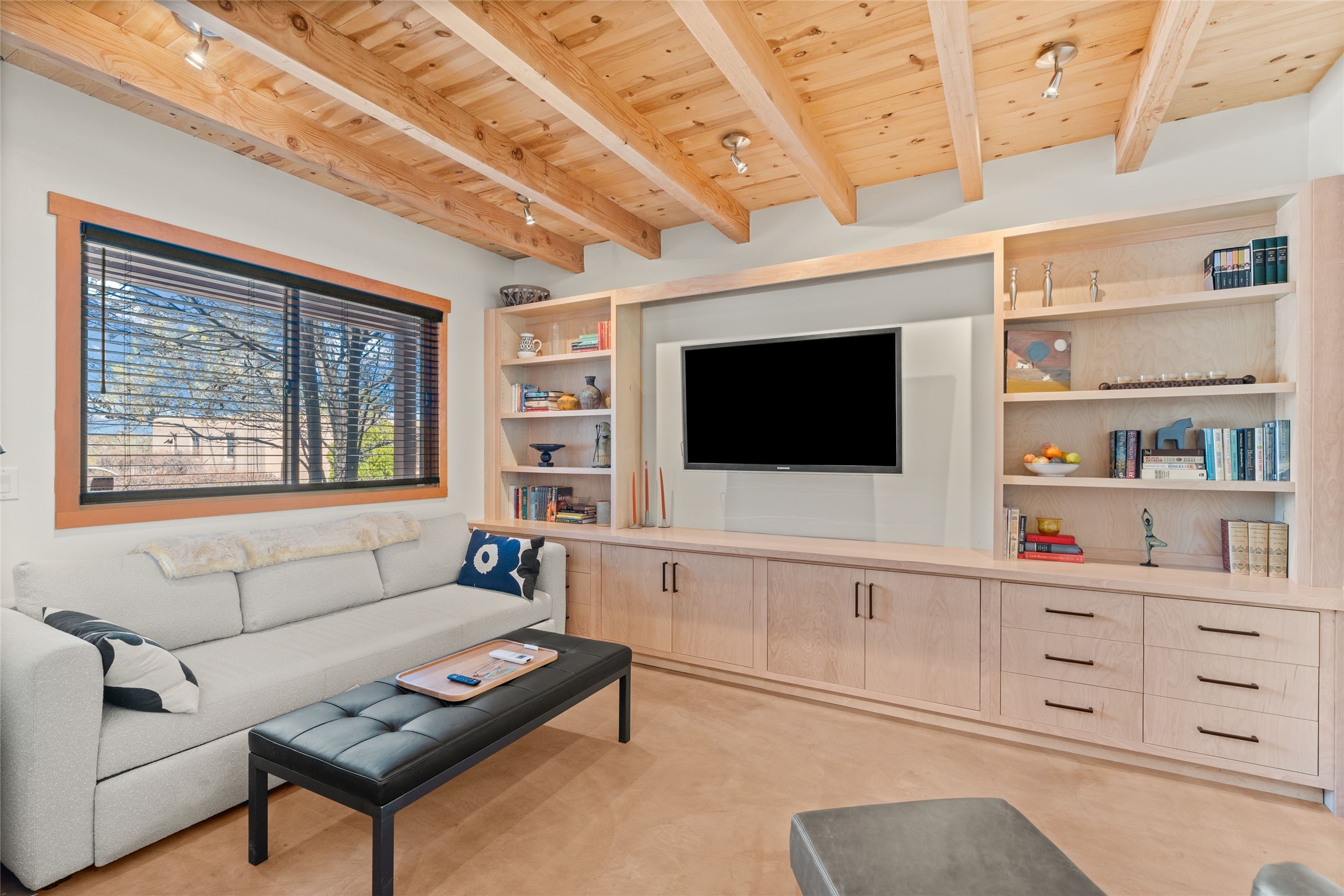 Have you been dreaming of a roof top garden deck where you can live alfresco with full kitchen (including dishwasher!), cozy gas fire pit and a sleeping spot under the stars? With views of sunrise over the Sangres, and sunsets behind the Jemez, and just three blocks from the Plaza, this is the icing on the cake of this cool soft contemporary 2 bedroom, 2,023 square foot condo. With two bedroom suites (one with a steam shower), bamboo floors and Ikea closet systems, this multi-level condo has nice bedroom separation and a very private walled patio off one, shaded by an ancient apricot tree. The living room enjoys a soaring 20 foot ceiling with beams, a fireplace, polished concrete floors, and has a wonderful open feel with the kitchen and dining areas. The kitchen has Cambria quartz counters, stainless appliances and great storage. All this, while being a handy run up to the ski basin and hiking trails, or a short walk to Ft. Marcy or downtown.