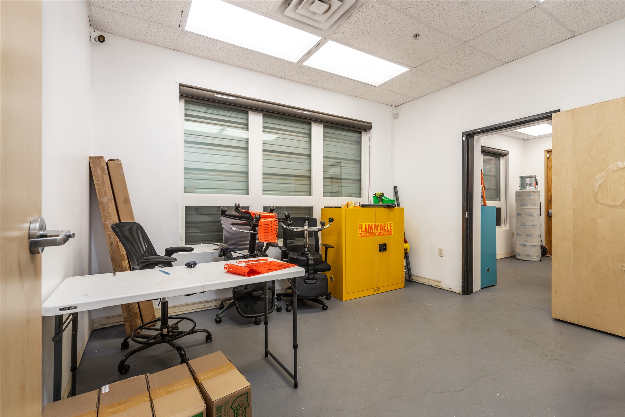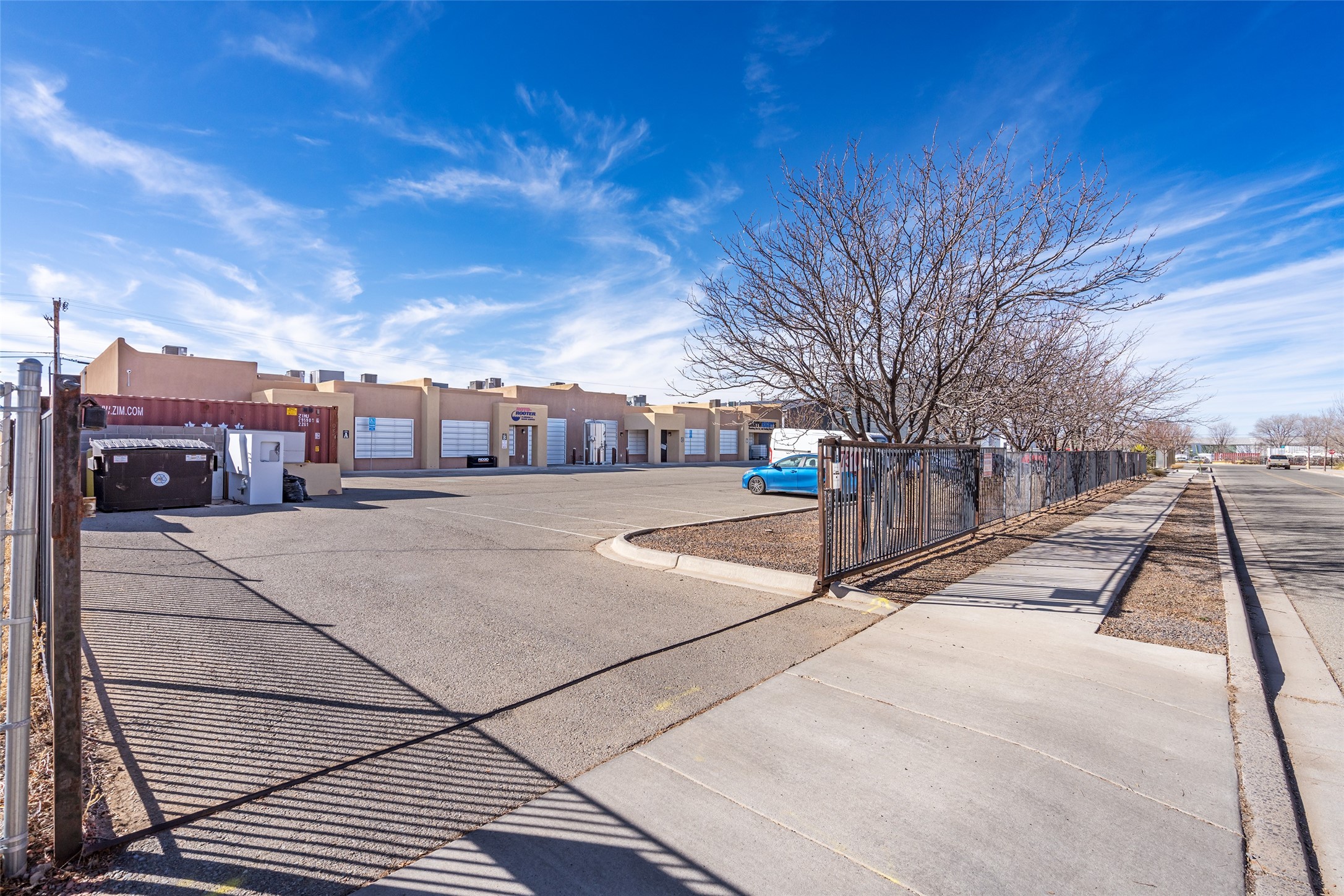 Flex commercial building with many possible configurations. Fully fenced site with shared paved parking. City of Santa Fe I-1 Zoning allows for many uses including industrial, storage, automotive, warehouse, construction trades, cabinet shop, office, pet grooming, kennel, educational, religious and more. Located near the intersection of Airport Road and 599 with convenient access to I-25 and Albuquerque and Los Alamos. Nearby businesses include luxury car storage, Tractor Supply, the Santa Fe Airport and a future Franks Supply. Utilities include 3 phase electricity, city water/sewer and natural gas. Heavy electrical service, 3 phase, 400 amps for this unit. Property is in the Airport Business Park which ensures an attractive neighborhood via the application of covenants and restrictions regulating architecture, landscaping, fencing, noise, odors and certain uses. Building is equipped with air conditioning, climate control, humidity control, plumbing for industrial gasses, heating, and floor drains. Ceilings are lined with uni-strut allowing for easy installation of lighting and other utilities. The property is also offered for sale, inquire with broker.