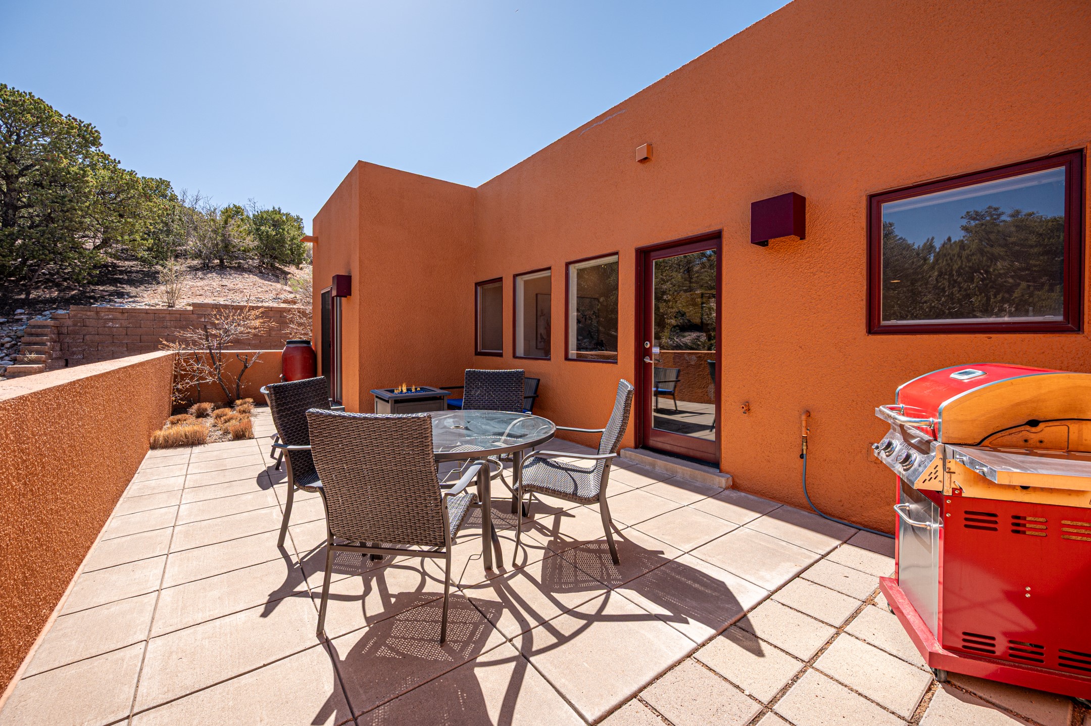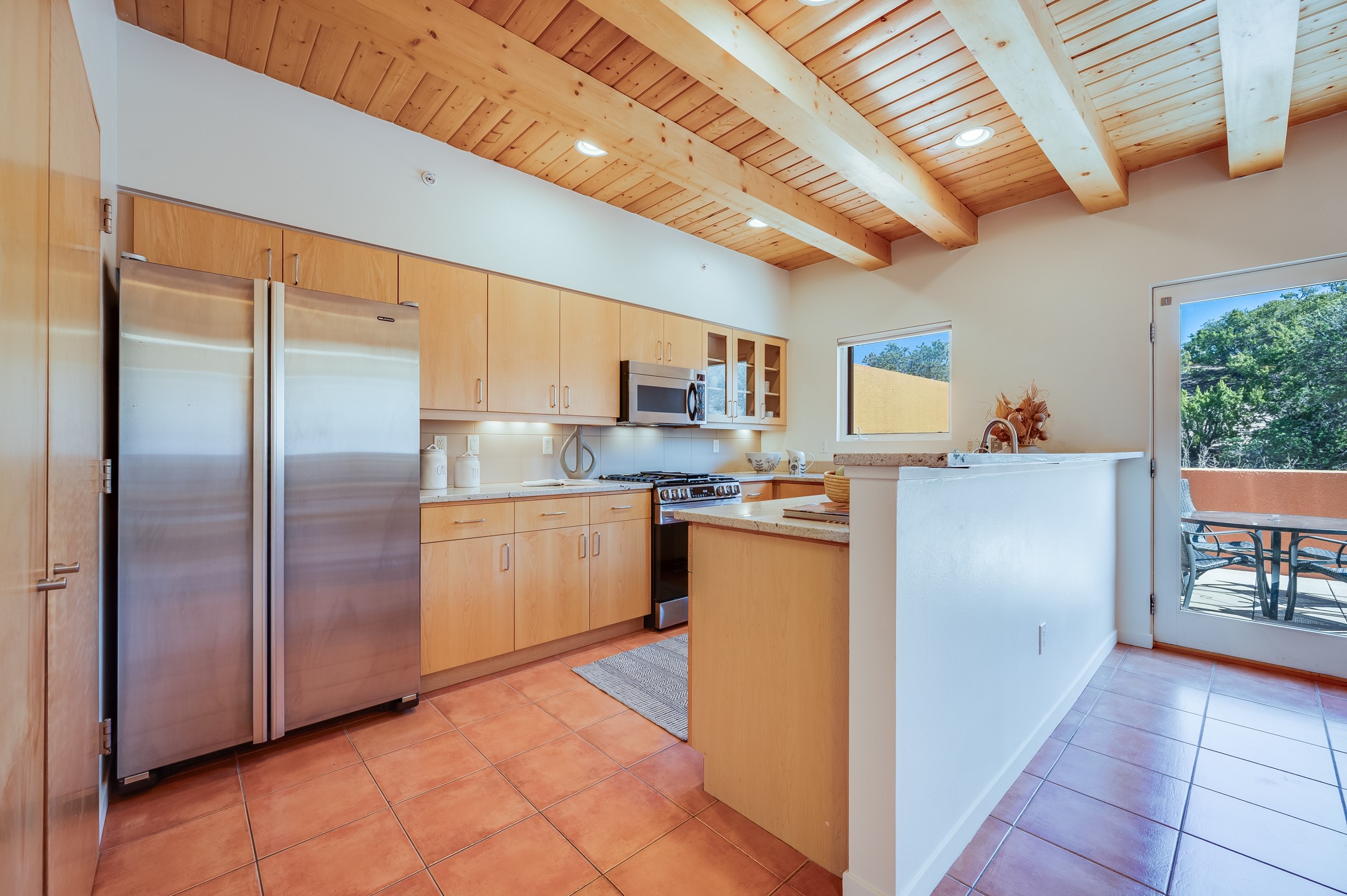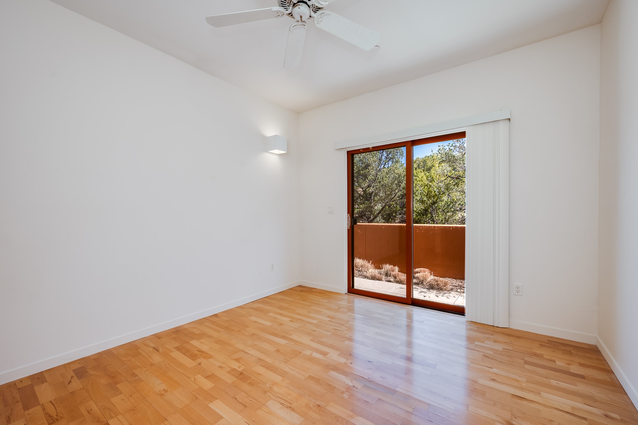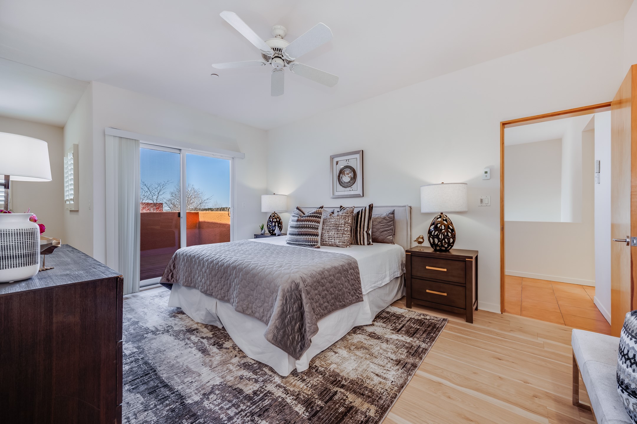 This highly sought after floor plan boasts two thoughtfully separated en-suites both with full baths and walk-in closets. The main suite has a bonus office area as wel as its own private balcony. A double sided gas fireplace separates the dining and living room Located in the beautiful Zocalo Condominium Community located near shopping and just a fewshort minutes to downtown Santa Fe.