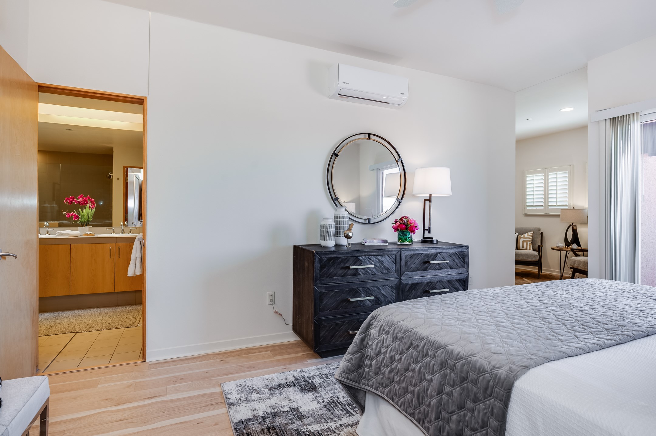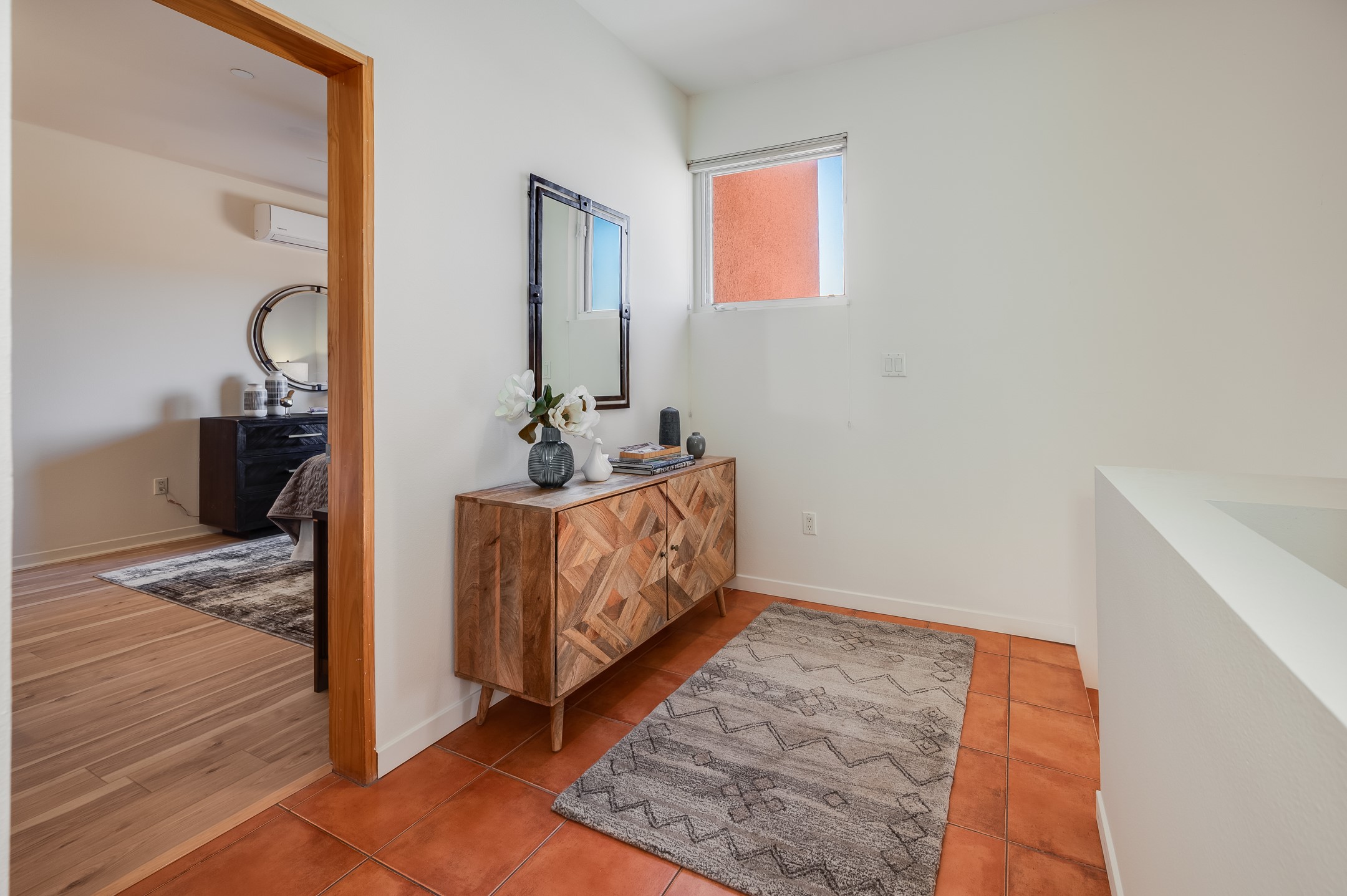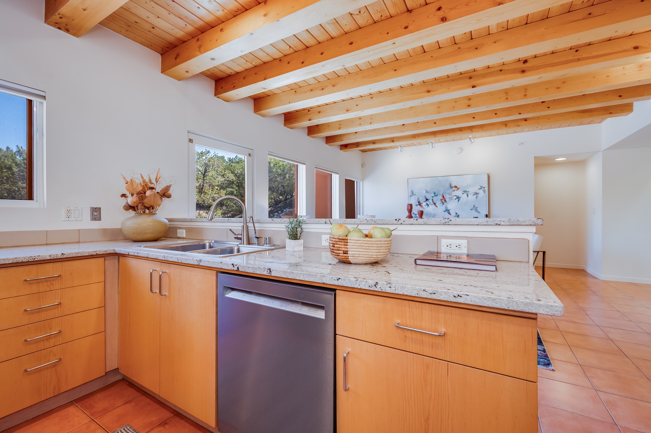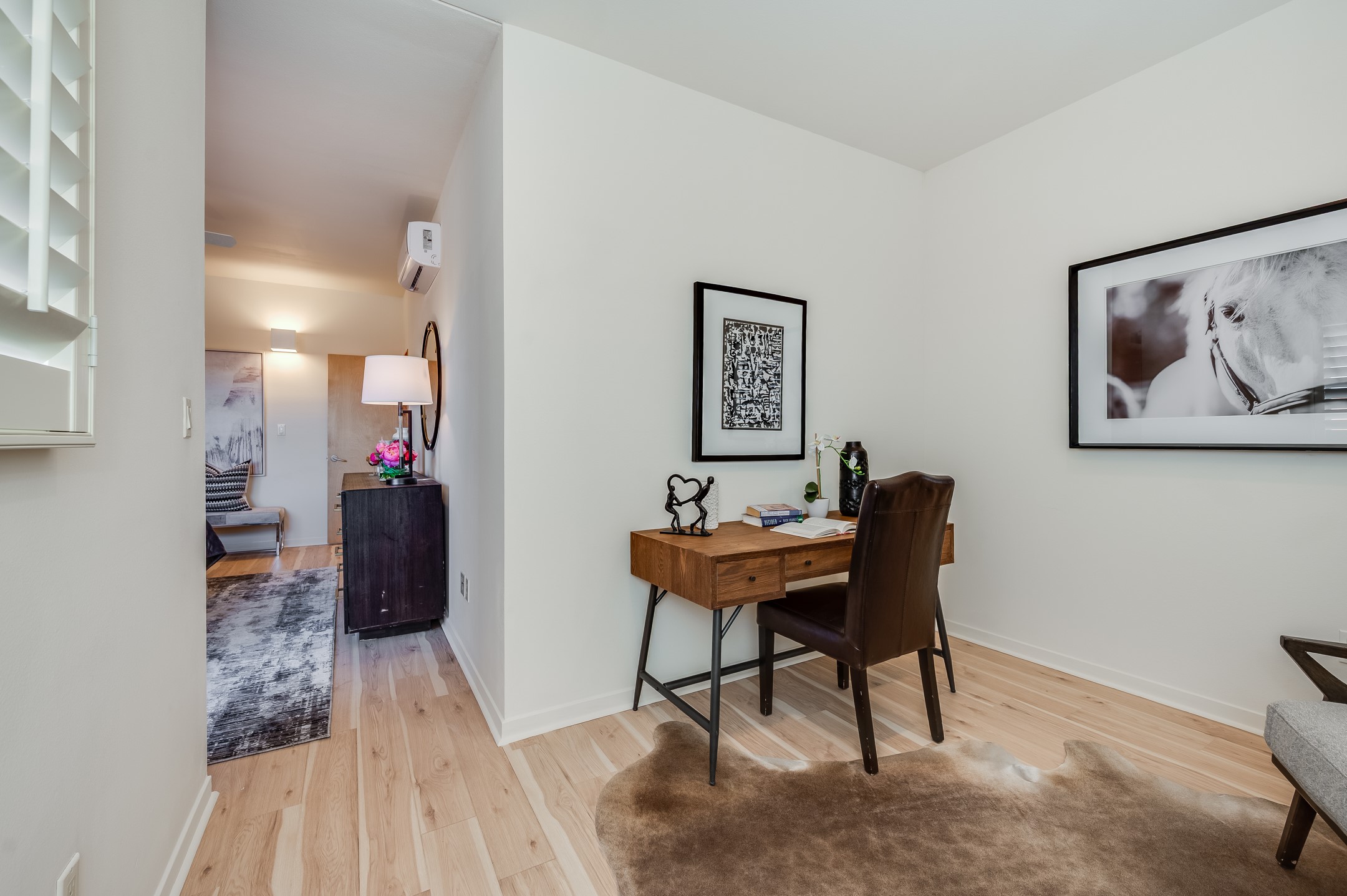 This highly sought after floor plan boasts two thoughtfully separated en-suites both with full baths and walk-in closets. The main suite has a bonus office area as wel as its own private balcony. A double sided gas fireplace separates the dining and living room Located in the beautiful Zocalo Condominium Community located near shopping and just a fewshort minutes to downtown Santa Fe.