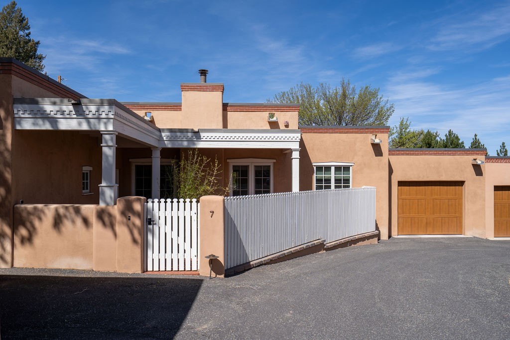 Tucked away in the Manderfield enclave at the top of Canyon Road, this rare, detached condominium offers the privacy of a single-family home located in one of Santa Fe's most coveted neighborhoods.Built by Prull Custom Homes, this home is designed with a timeless blend of comfort and style. The expansive living and dining area features soaring ceilings, wood floors, smooth Venetian plaster walls, and abundant natural light. A fireplace and French doors add warmth and elegance, while seamlessly connecting indoor and outdoor living. The kitchen will satisfy any chef, with beautiful cabinetry, upgraded appliances and an island.The primary suite is a private retreat with its own portal access, a generous walk-in closet, and a luxurious en-suite bath. The second bedroom also has an ensuite bath. There is an oversized powder room for guests. Both the living room and primary suite open to a peaceful, private outdoor space--perfect for a quiet morning coffee or evening unwind. The front portal, partially covered, offers enough space for an outdoor dining table, ideal for entertaining with a view.Additional highlights include an oversized one-car garage with direct entry, in floor radiant heat and forced air with a heat recovery ventilator. There is a mini split system in the living areas and primary bedroom for cooling when needed. This is Santa Fe living at its most refined--serene, stylish, and steeped in Eastside charm.