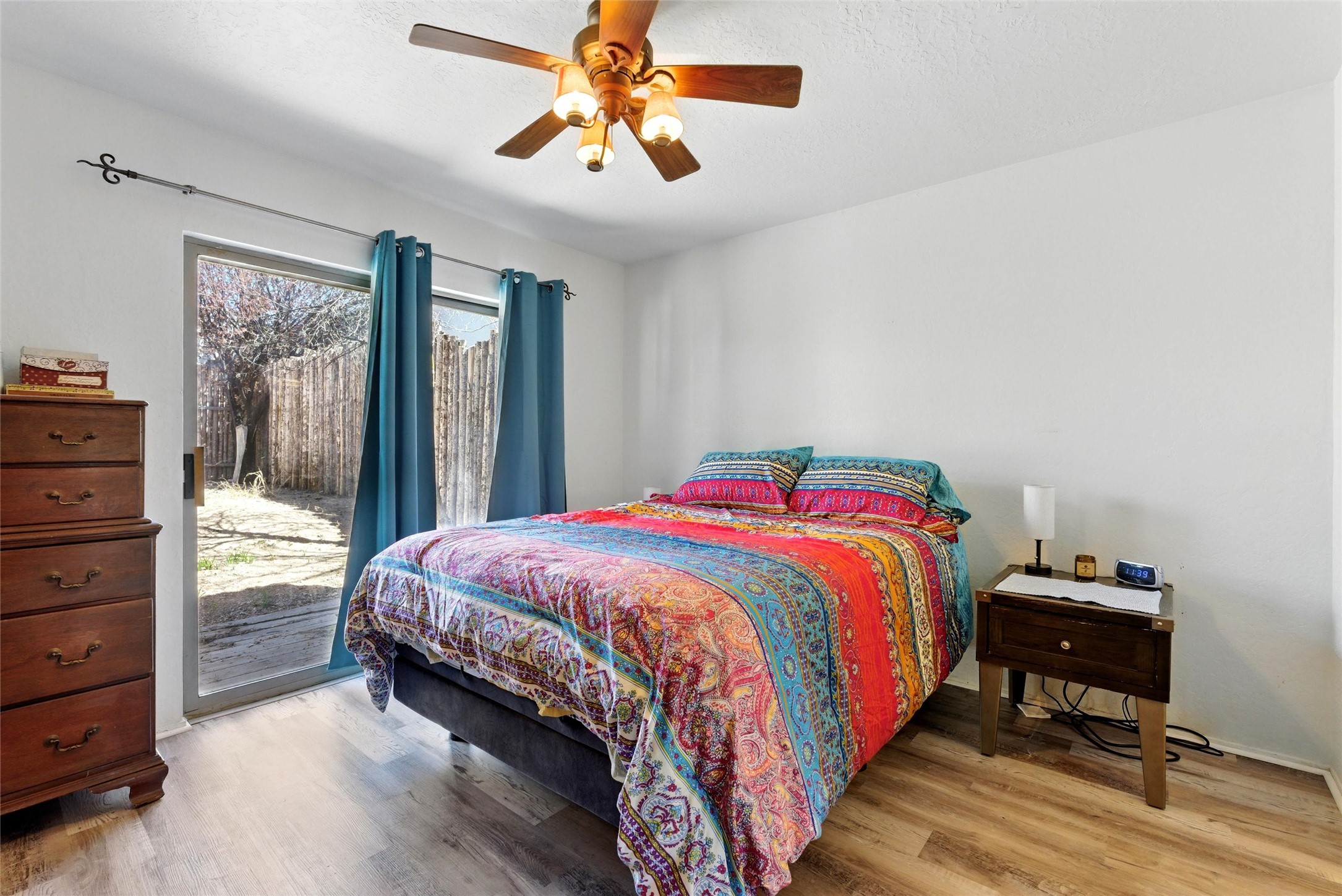 Charming 2-bed, 2-bath Pueblo-style home in the peaceful Los Milagros community. Features an open floor plan, Kiva fireplace, mountain views, landscaped yard, courtyard, and carport with storage. Located on a quiet cul-de-sac near shopping, schools, and the airport. Built in 1996, the home offers forced air heating, evaporative cooling, and a flat roof with classic Santa Fe stucco charm--perfect for low-maintenance living in a serene setting. This house is ideal for a family or investors alike.