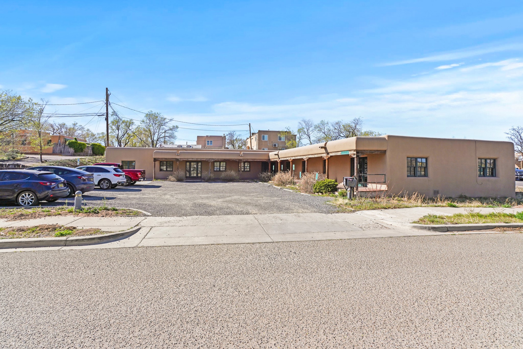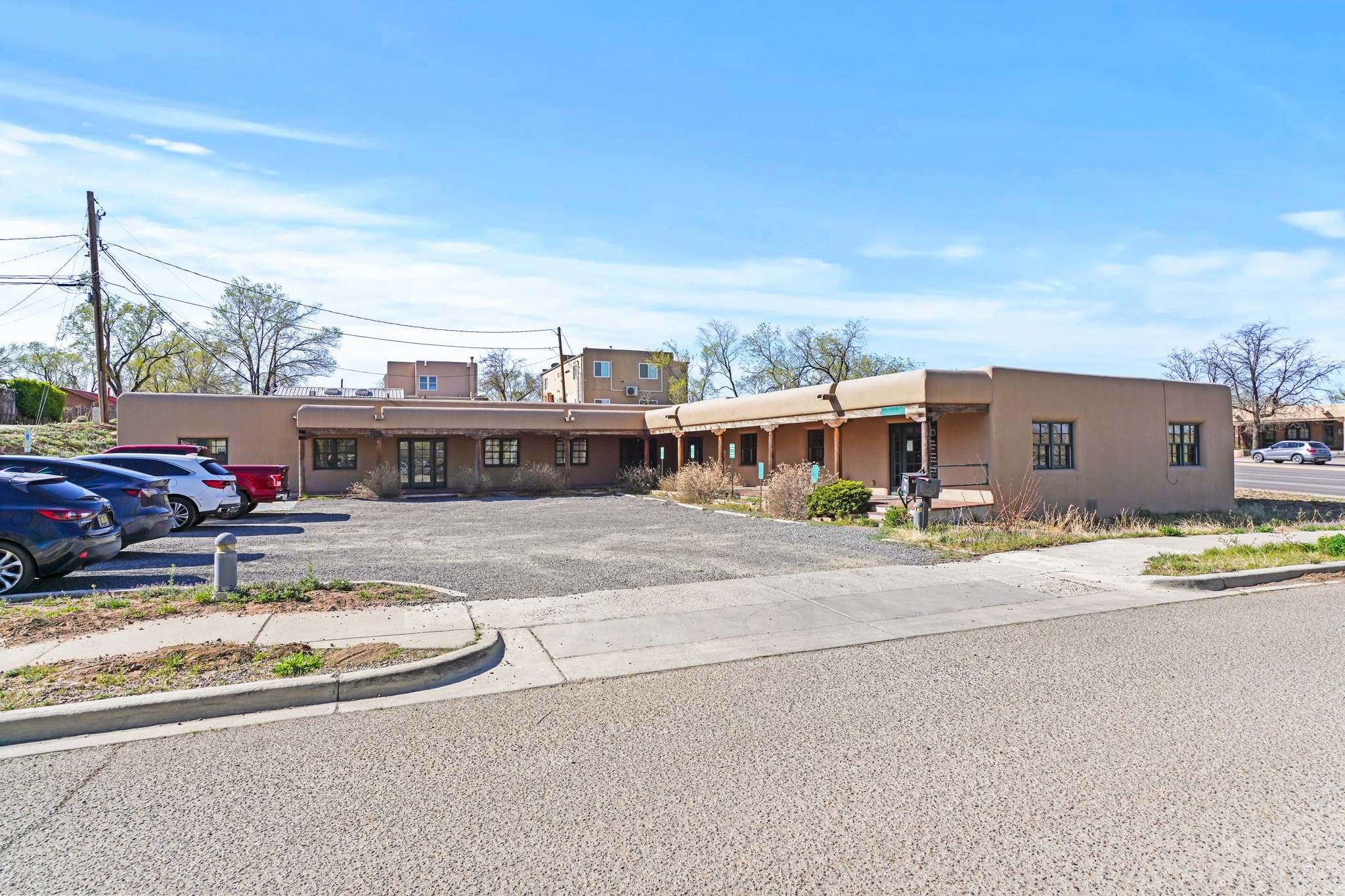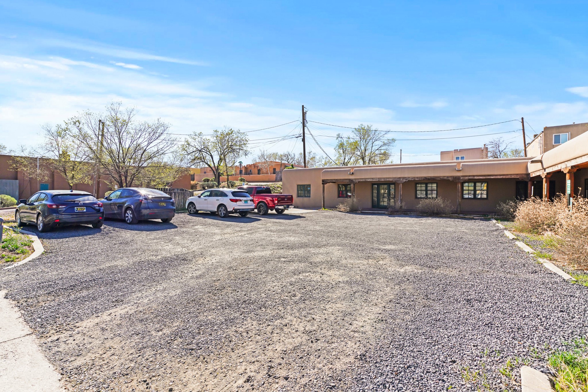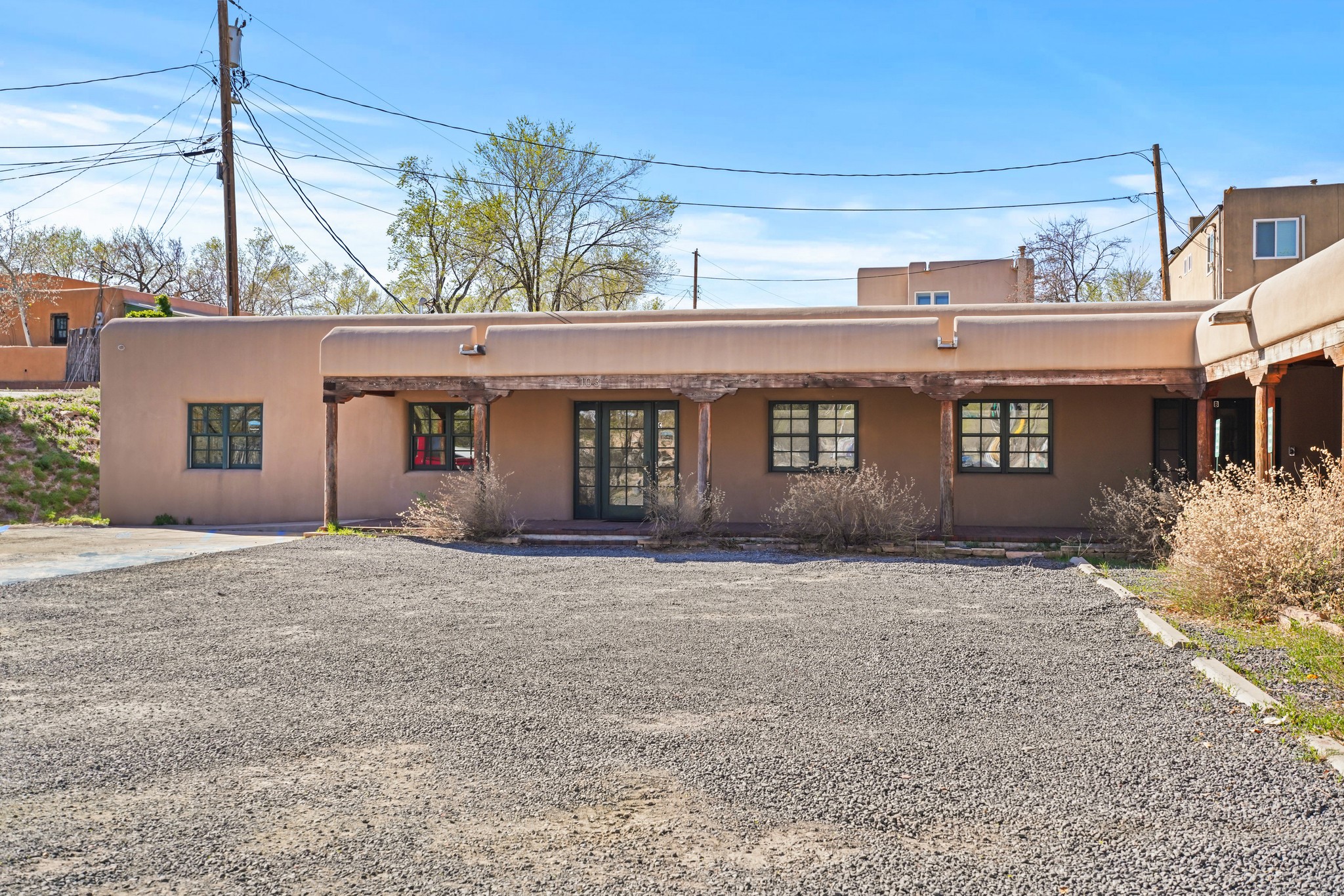 Beautifully remodeled and centrally located, this office condo showcases classic Santa Fe architectural elements both inside and out. The floor plan offers excellent flow with a welcoming reception area, hardwood floors throughout, recessed lighting, skylights, finished plaster walls, high ceilings, four private windowed offices, and a well-equipped kitchenette featuring washer and dryer hookups. Situated in a highly desirable area with excellent visibility and easy access from S. St. Francis Drive, the property also provides ample on-site parking--a rare find in Santa Fe. Ideal for professionals seeking a unique and stylish work environment in a prime location. Condo fees are estimated at $310 per month. **Do Not Disturb Tenants**