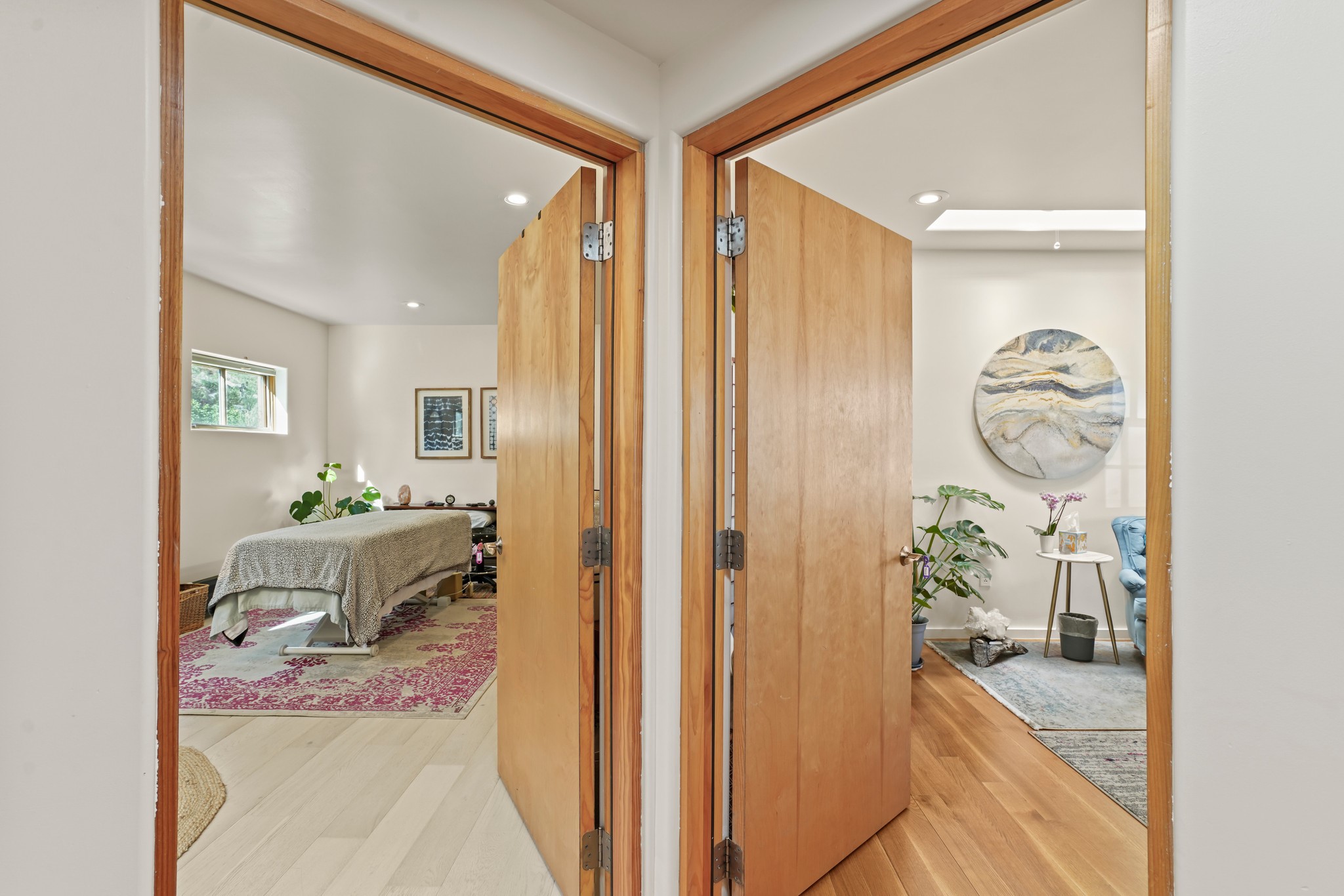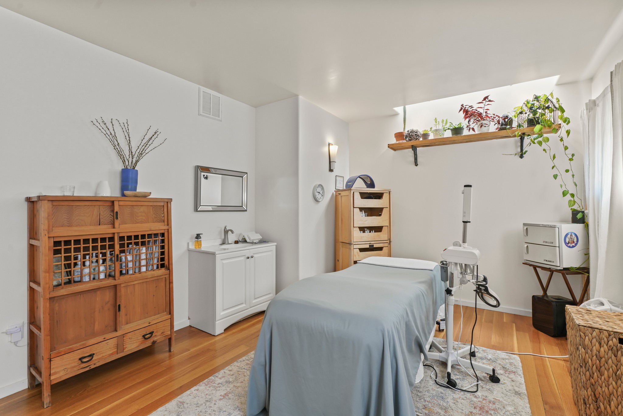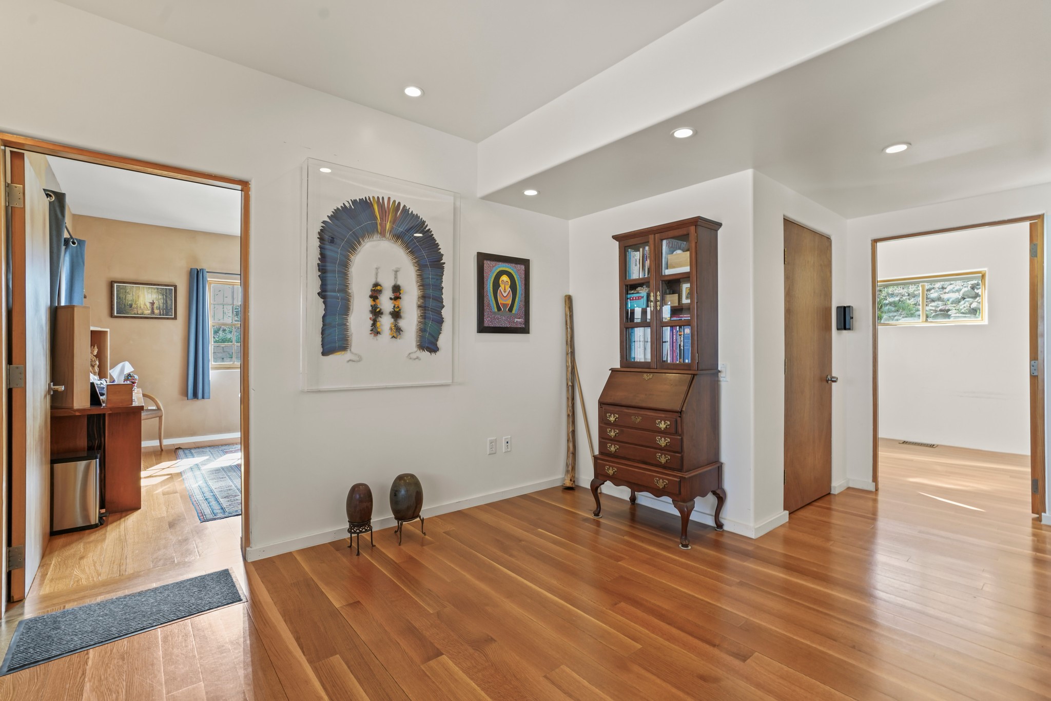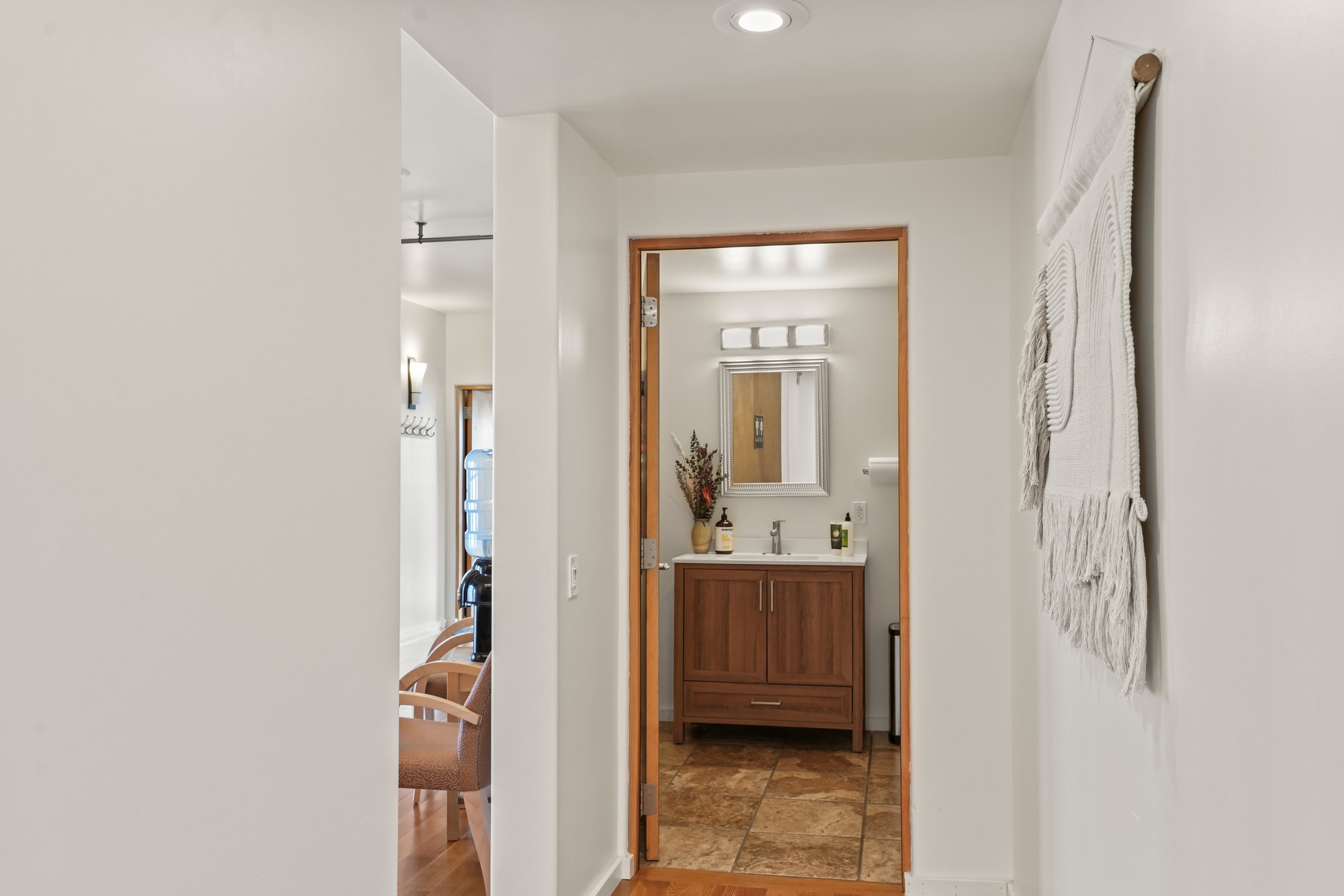Beautifully remodeled and centrally located, this office condo showcases classic Santa Fe architectural elements both inside and out. The floor plan offers excellent flow with a welcoming reception area, hardwood floors throughout, recessed lighting, skylights, finished plaster walls, high ceilings, four private windowed offices, and a well-equipped kitchenette featuring washer and dryer hookups. Situated in a highly desirable area with excellent visibility and easy access from S. St. Francis Drive, the property also provides ample on-site parking--a rare find in Santa Fe. Ideal for professionals seeking a unique and stylish work environment in a prime location. Condo fees are estimated at $310 per month. **Do Not Disturb Tenants**