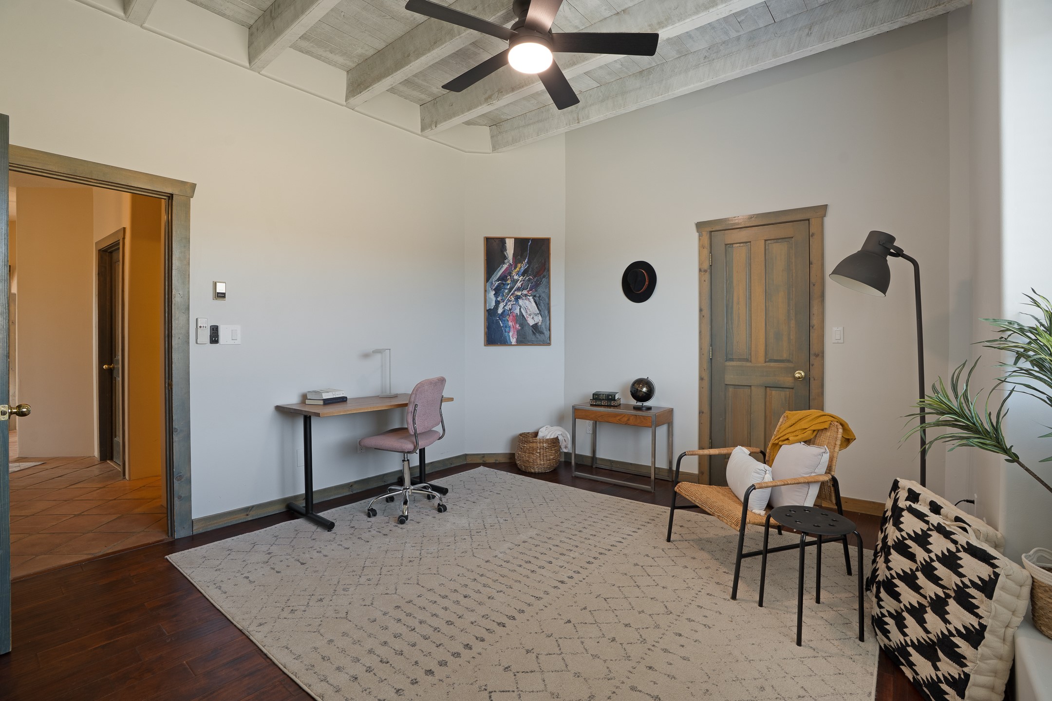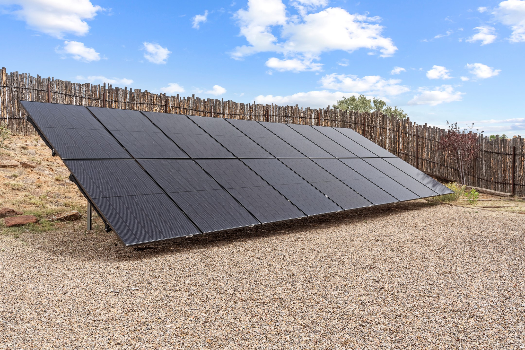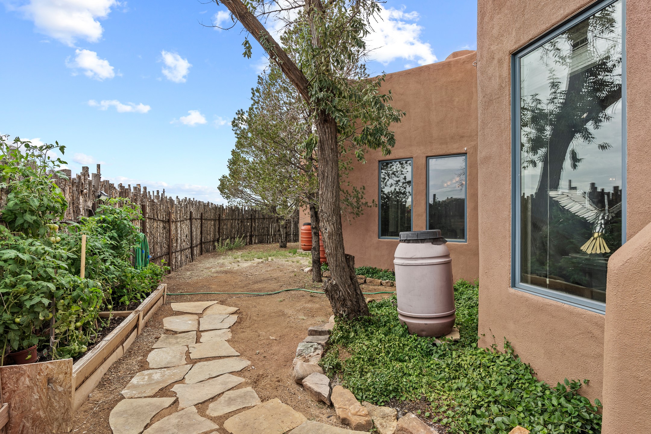 Located at the end of a quiet cul-de-sac in Eldorado, just a short walk from Eldorado Elementary and minutes from The Agora shopping center, this wonderful 4-bedroom, 3-bath home offers 3,294 square feet of comfortable living space on 2.3 acres. Nestled alongside a greenbelt, the property offers both privacy and versatility. The main level features two distinct living areas--one open to the newly renovated kitchen--along with a formal dining space and a guest bedroom currently serving as an office. The kitchen is a standout, showcasing concrete countertops with bar seating, custom tin-inlaid cabinetry, etched glass and tin lighting fixtures, and stainless steel appliances. From here, step outside to a fully fenced backyard complete with an outdoor kiva fireplace and generous space for entertaining or relaxing under the New Mexico sky.Upstairs, the expansive primary suite offers both East- and West-facing balconies, a cozy double-sided gas fireplace, deep soaking tub, glass-enclosed walk-in shower, and dual walk-in closets. Two additional guest bedrooms--each with their own private balcony--and a full guest bath complete the upper level. Recent upgrades include an 18-panel solar array, a new TPO roof with a transferable warranty, a tankless water heater, and a dedicated 30-amp service for RV power. Seamlessly blending modern updates with Southwestern charm, this home offers spacious, serene living in one of Santa Fe's most desirable communities.