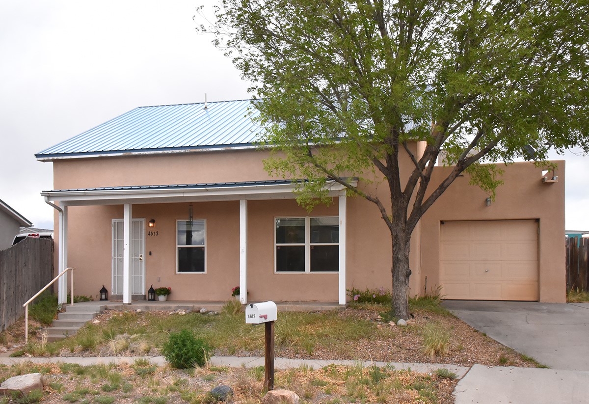 Check out this sweet two-story home in Tierra Contenta. Master suite is on the ground floor with two guest bedrooms upstairs. Large fenced back yard with a storage shed, newer kitchen appliances, pitched metal roof and attached one-car garage round out the picture.