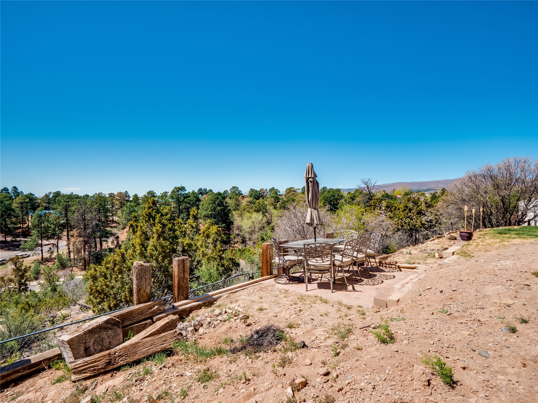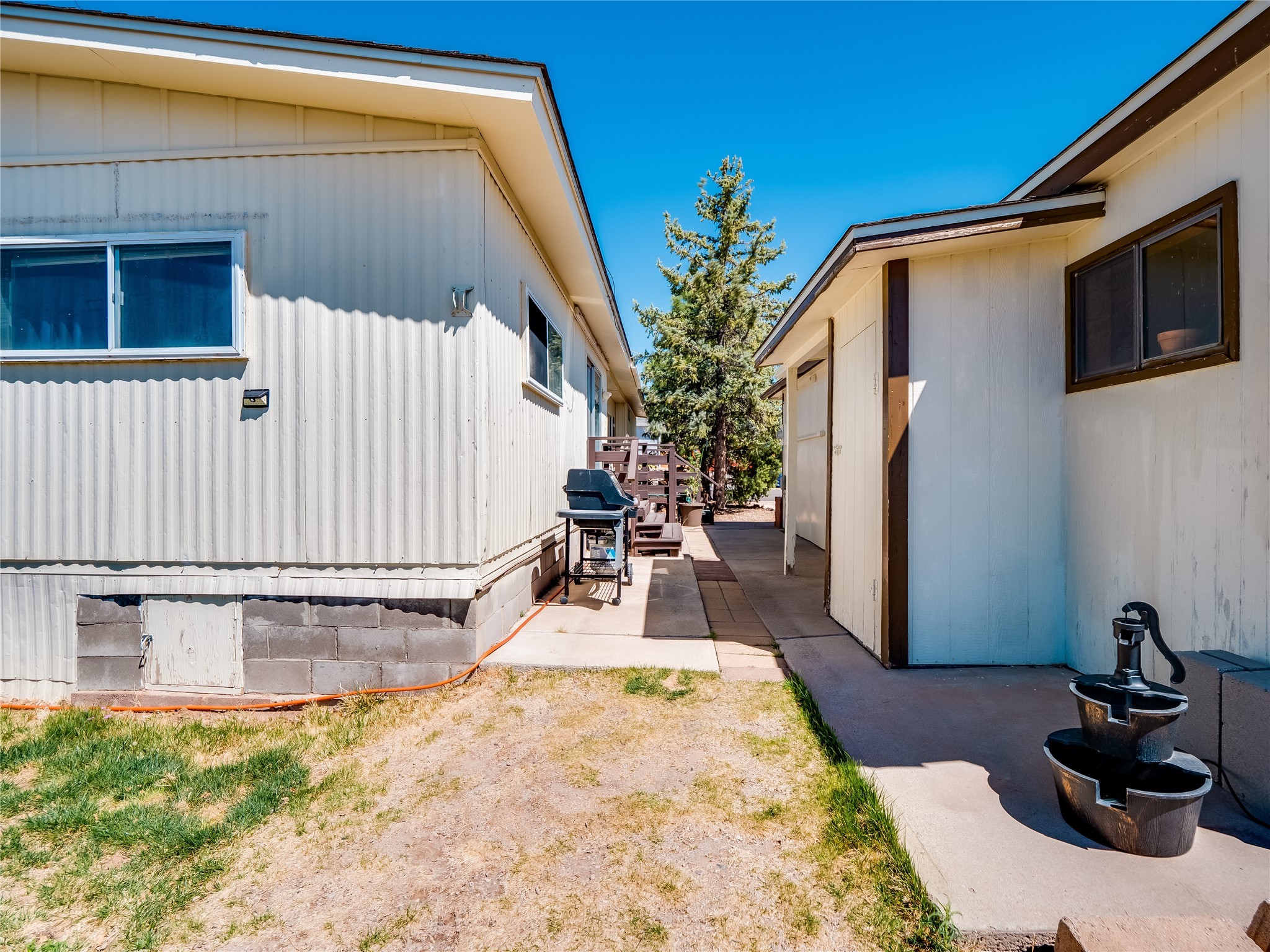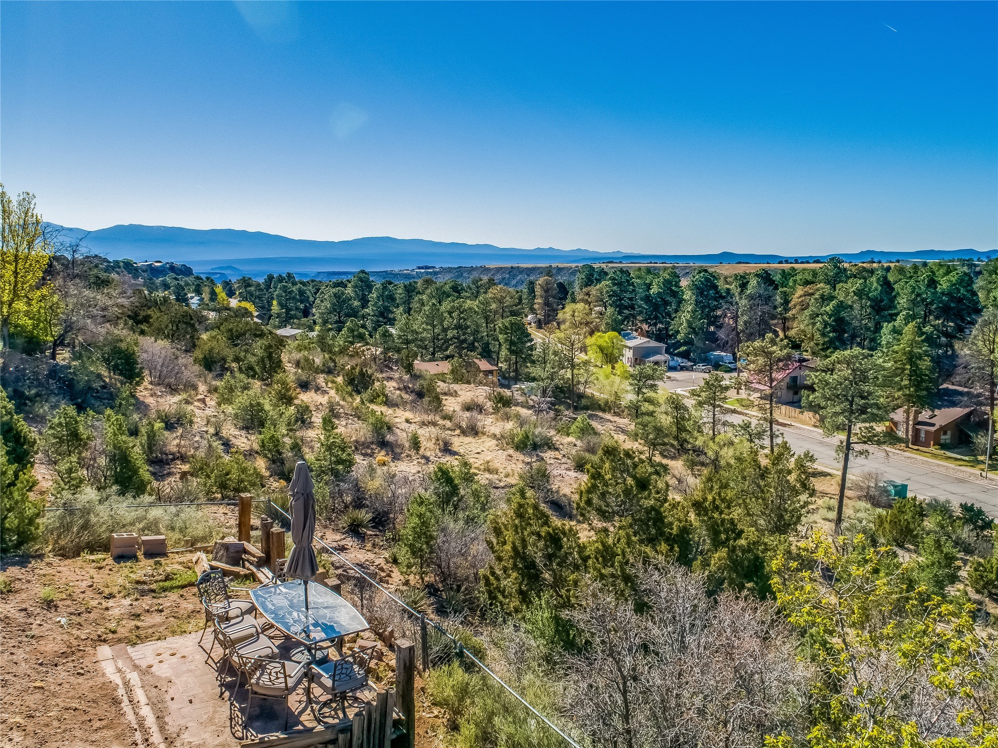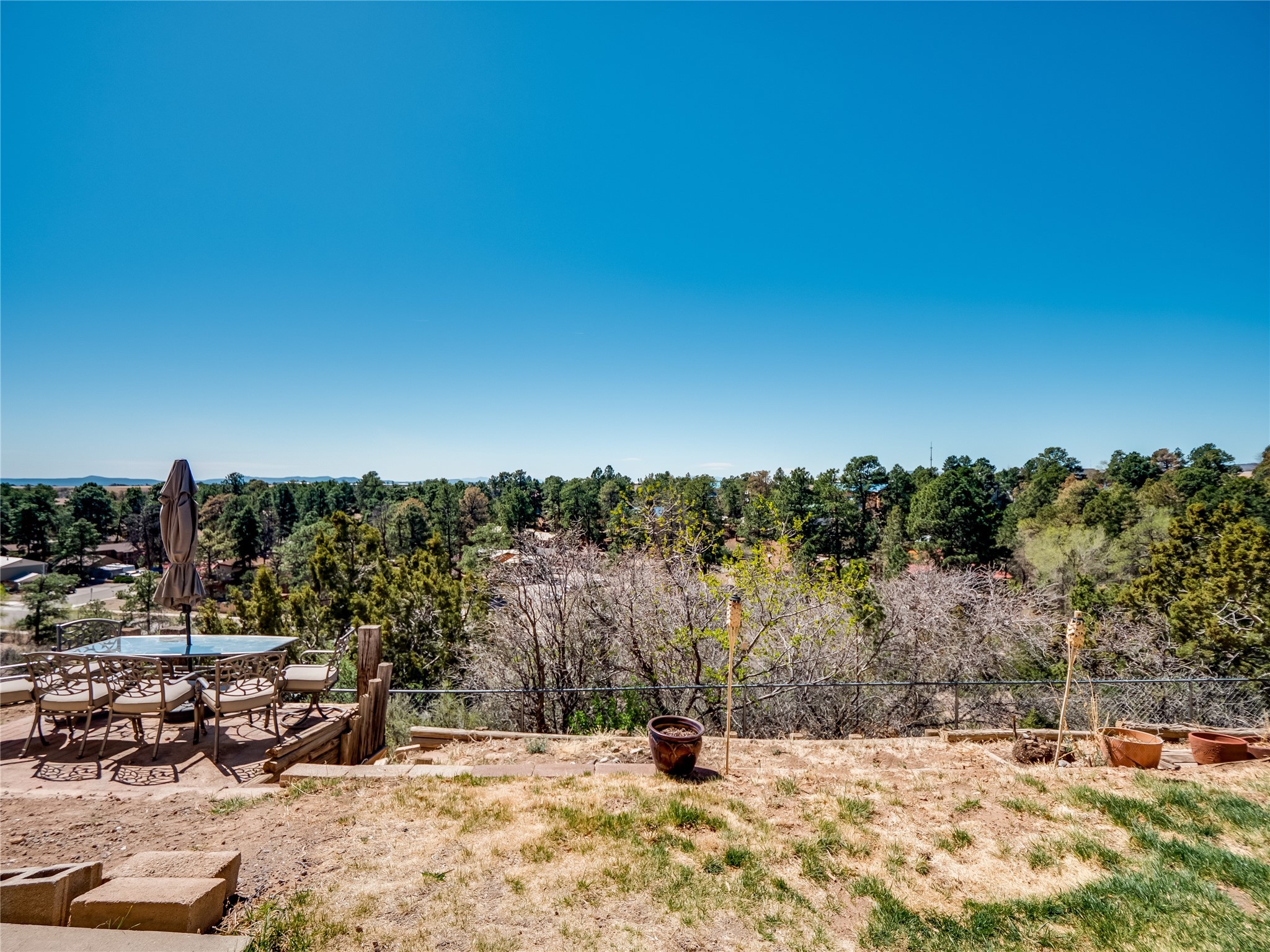 Welcome to this charming manufactured home nestled along the canyon edge in the peaceful Tsikumu Village neighborhood. Surrounded by nature and mature landscaping, the front yard boasts large, towering trees that frame the home and provide shade and privacy as you approach the front porch. Step up into the inviting entryway and immediately feel the warmth of the spacious carpeted living room that extends throughout the home. Cozy up by the wood-burning stove on chilly evenings, and enjoy the built-in cabinetry--perfect for displaying china or creating a convenient bar setup. The kitchen is both stylish and functional, featuring ample cabinet space with green cabinetry, black hardware, light countertops, a double oven, and a gas cooktop. A peninsula with bar seating offers a perfect spot for morning coffee or casual meals. Just off the kitchen is a bright dining area with sliding glass doors that open to the back patio--ideal for outdoor grilling and dining with a view. The generous primary en-suite is a private retreat with a large walk-in closet and an attached bathroom that includes a double sink vanity and a shower/tub combination. Two additional guest bedrooms offer comfortable accommodations, and a full guest bathroom with a single sink vanity serves the home. The laundry room leads to a versatile bonus room with a separate side entrance--great for a home office, studio, or hobby space. Outside, enjoy an open backyard with unobstructed views and stunning sights of the Sangre de Cristo Mountains. A grass lawn, a brick patio for entertaining, and retaining walls ideal for flower or vegetable gardens make this outdoor space versatile in creating your dream space. Located close to parks, scenic trails, and horse stalls, this home offers the perfect blend of comfort, convenience, and natural beauty. Book your tour today!