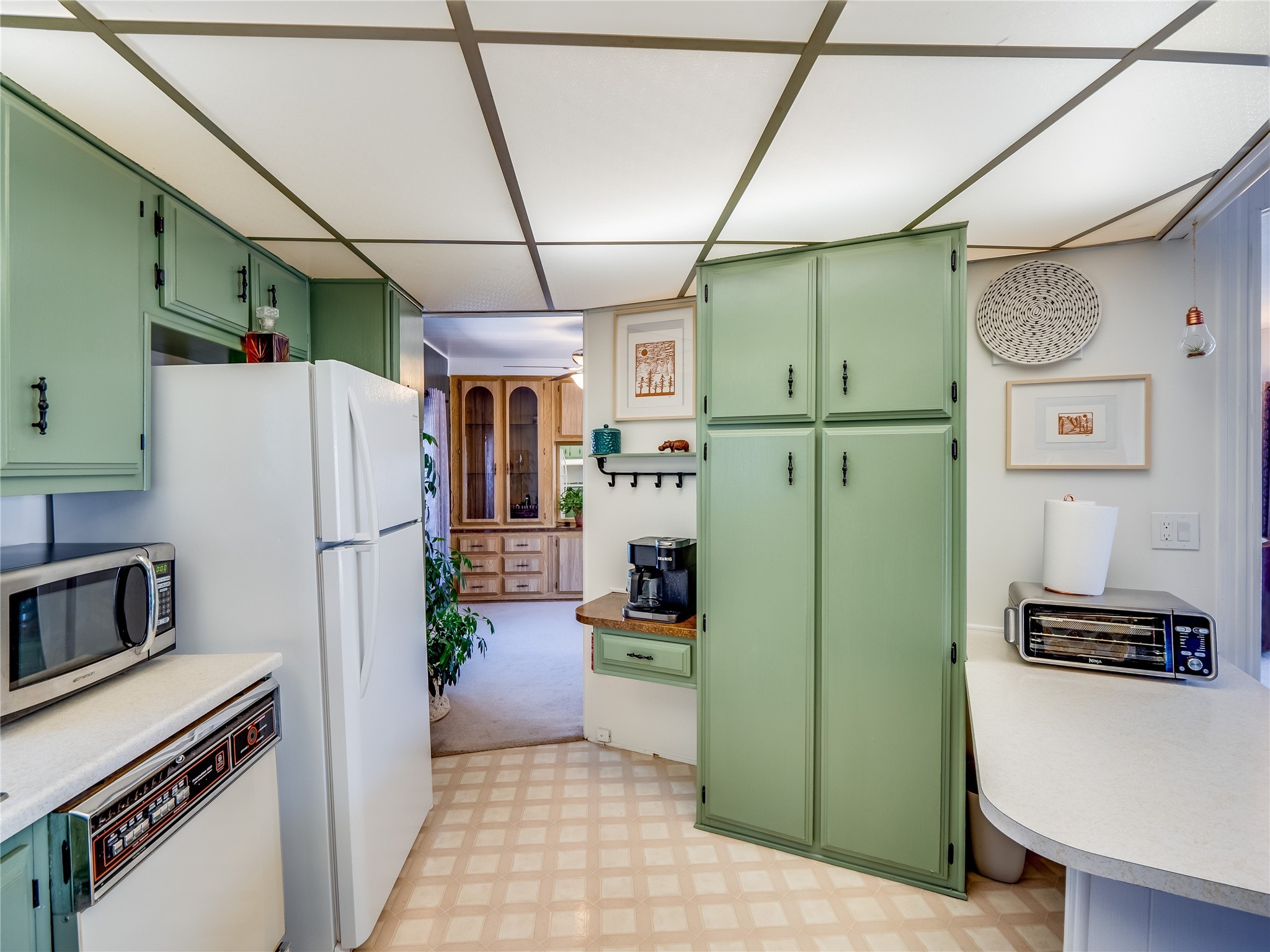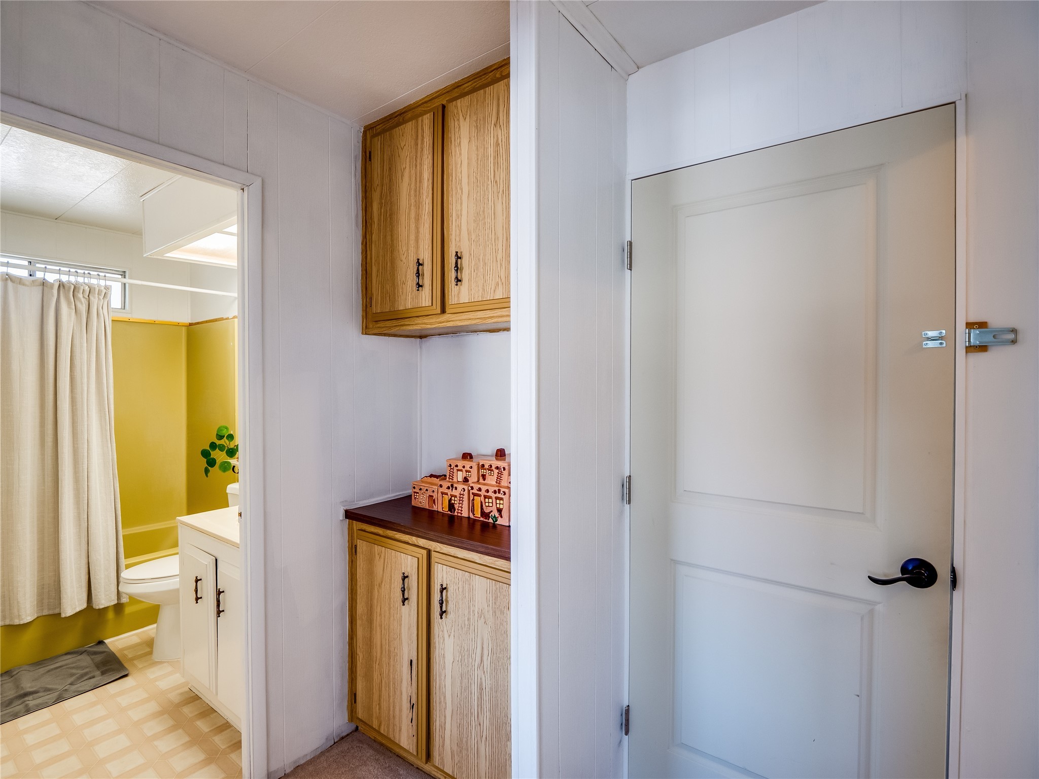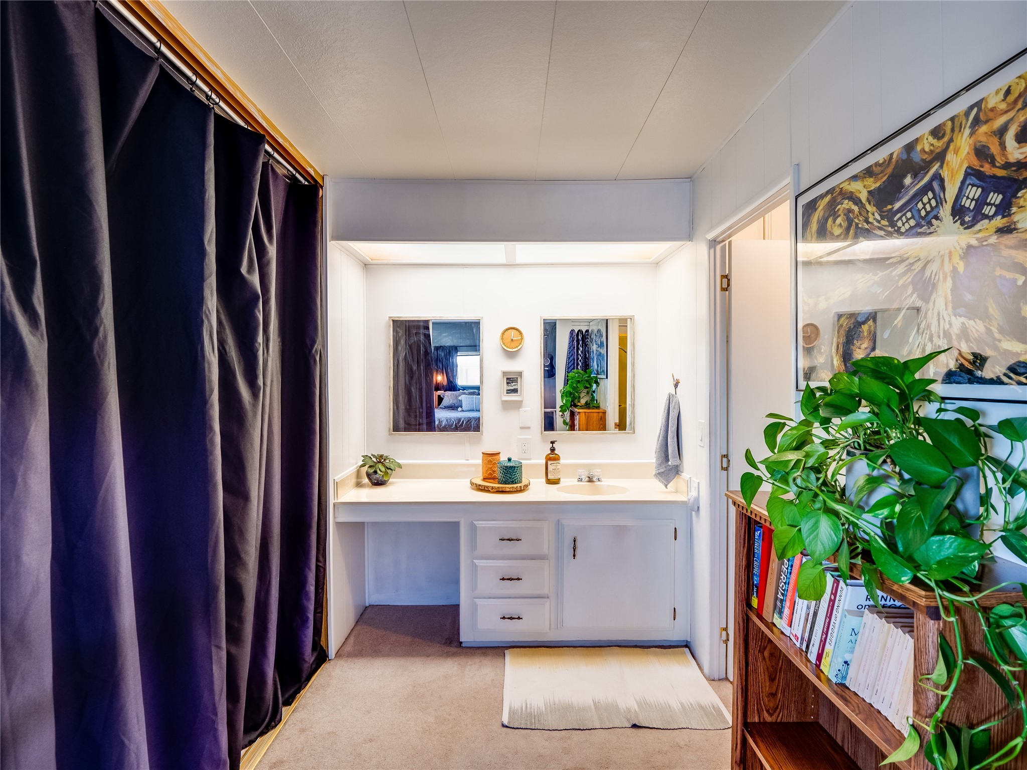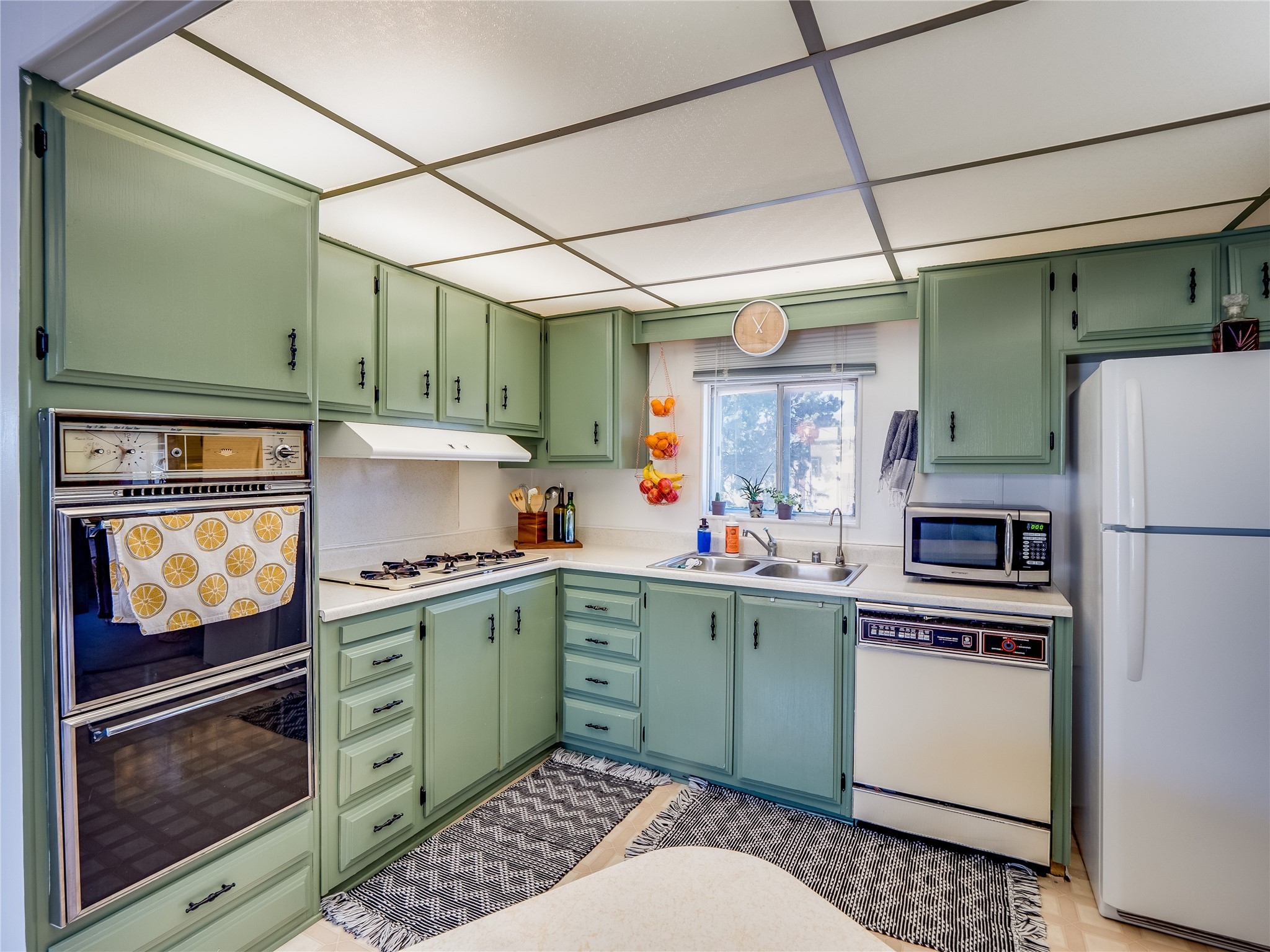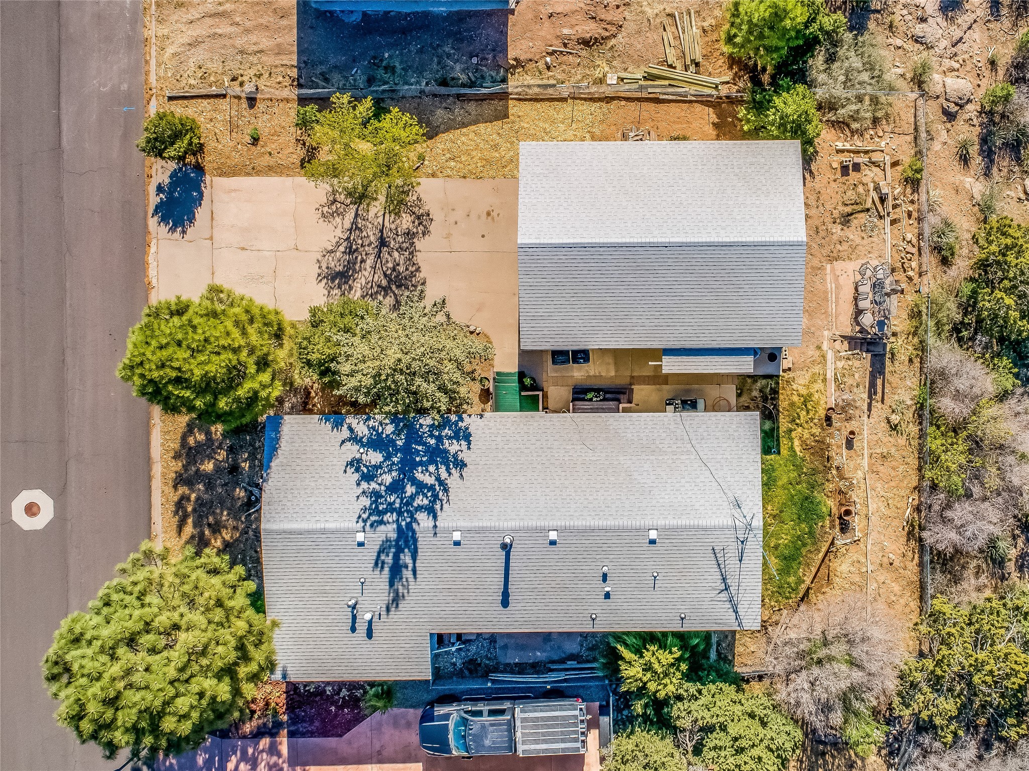 Welcome to this charming manufactured home nestled along the canyon edge in the peaceful Tsikumu Village neighborhood. Surrounded by nature and mature landscaping, the front yard boasts large, towering trees that frame the home and provide shade and privacy as you approach the front porch. Step up into the inviting entryway and immediately feel the warmth of the spacious carpeted living room that extends throughout the home. Cozy up by the wood-burning stove on chilly evenings, and enjoy the built-in cabinetry--perfect for displaying china or creating a convenient bar setup. The kitchen is both stylish and functional, featuring ample cabinet space with green cabinetry, black hardware, light countertops, a double oven, and a gas cooktop. A peninsula with bar seating offers a perfect spot for morning coffee or casual meals. Just off the kitchen is a bright dining area with sliding glass doors that open to the back patio--ideal for outdoor grilling and dining with a view. The generous primary en-suite is a private retreat with a large walk-in closet and an attached bathroom that includes a double sink vanity and a shower/tub combination. Two additional guest bedrooms offer comfortable accommodations, and a full guest bathroom with a single sink vanity serves the home. The laundry room leads to a versatile bonus room with a separate side entrance--great for a home office, studio, or hobby space. Outside, enjoy an open backyard with unobstructed views and stunning sights of the Sangre de Cristo Mountains. A grass lawn, a brick patio for entertaining, and retaining walls ideal for flower or vegetable gardens make this outdoor space versatile in creating your dream space. Located close to parks, scenic trails, and horse stalls, this home offers the perfect blend of comfort, convenience, and natural beauty. Book your tour today!