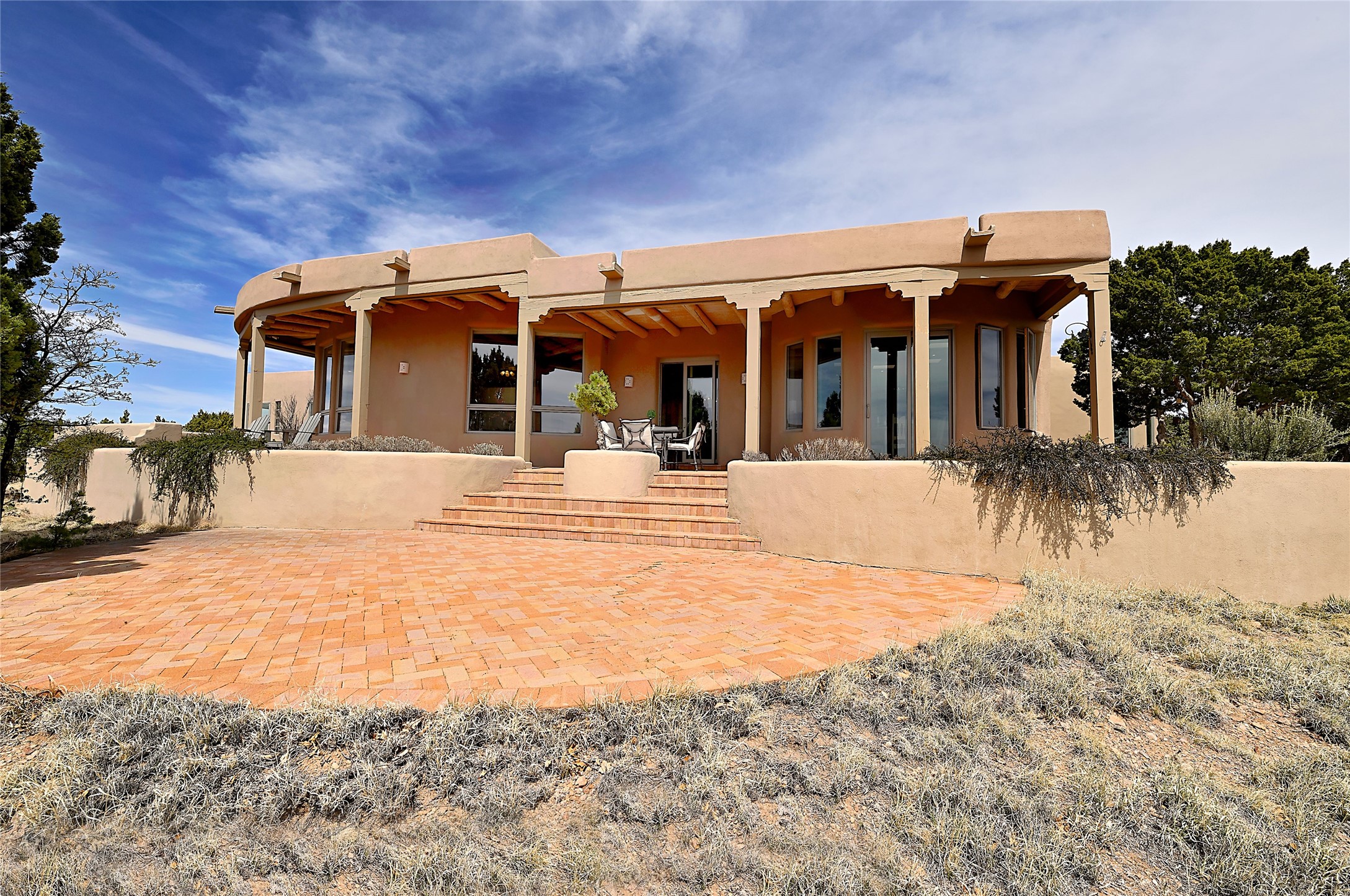 SIMPLY THE BEST VIEWS! Like being in your own private IMAX theater at sunset and on starry, starry nights! Vista Sandia means a 180 degree gigantic, overlooking viewscape featuring the Sandia mountains 50 miles south, and Sangre and Jemez views to the east and west; you can even watch 4th of July fireworks in Santa Fe and Los Alamos from the portal! Inside, simply sophisticated luxury awaits, an oversized great room with a high ceiling and extra large windows sited to take advantage of the views from the entry foyer stops visitors in their tracks. Plastered thick and round pumice-crete walls surround and lead to long, tall hallways to a well separated large owner's suite one way, and to the dining room and kitchen the other way. Santa Fe style with all the southwest charm, light and airy, soft and grand. Guest rooms at the far end provide privacy and distance. And a den off the foyer completes the functional floor plan all on one level. A two car attached garage up a couple steps gives easy access. In floor radiant heating is complemented by mini-splits. Pex tubing and on demand, high efficiency Navien tankless boiler system. All on a 1.82 acre lot in La Mariposa, an active and welcoming HOA which is a short drive to town, yet far enough away for privacy and serenity with easy access to the La Tierra trails. Close to the Club at Las Campanas and a short drive to the Plaza or the Santa Fe Regional Airport. Diligently maintained and presale inspected, this sanctuary is ready to enjoy. Watch the video, take the virtual tour, but you must see in person to believe.