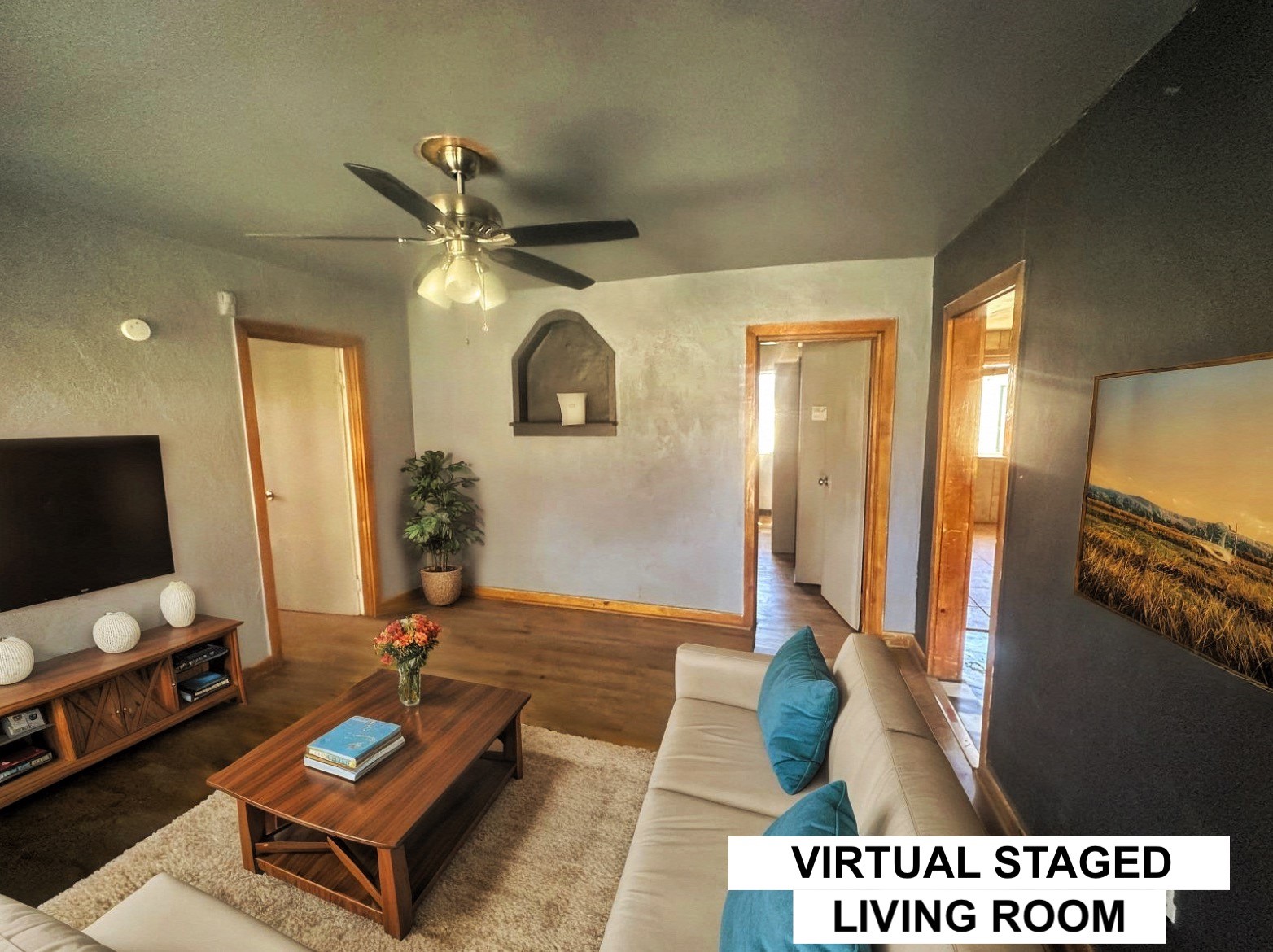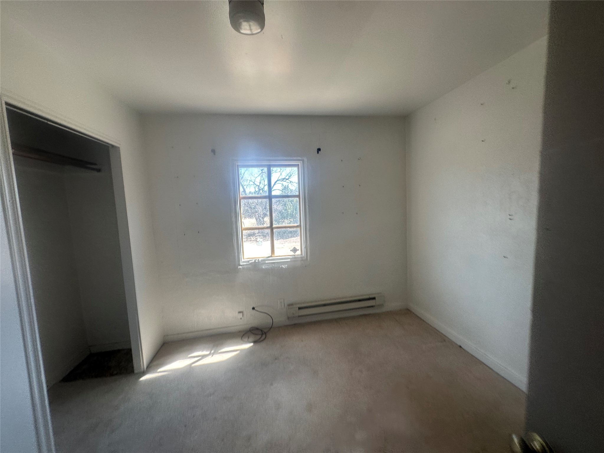 This charming three-bedroom, one-bath home is nestled on approximately 3/4 of an acre, minutes from the river in Pecos. The kitchen exudes retro 1960s charm a classic black-and-white floor, and beautifully crafted cabinets, all flowing into a tiled dining area. Enjoy picturesque mountain views. Three storage sheds and a carport.