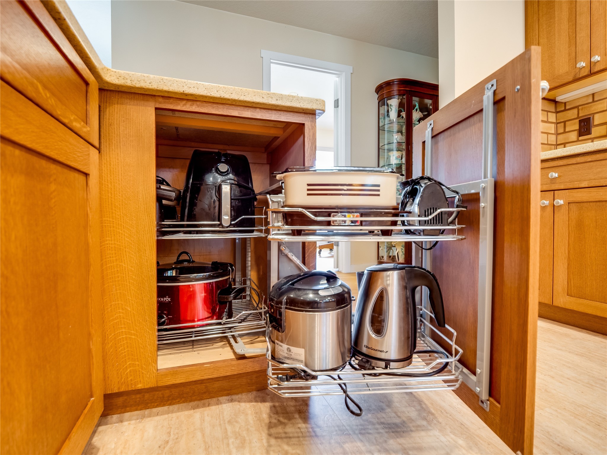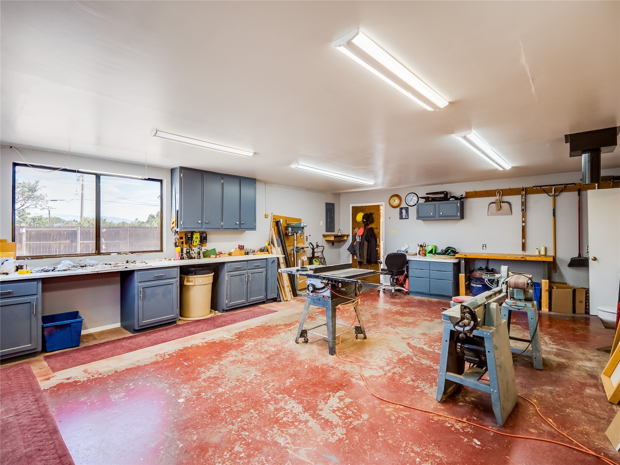 Tucked away in the desirable Pajarito Acres neighborhood, this stunning single-story home offers privacy, space, and versatility on 2.78 acres. A low-maintenance front yard with mature trees and shrubs offers a peaceful welcome and natural privacy. Inside you'll be welcomed by an expansive open floorplan designed for modern living and effortless entertaining. Gorgeous white oak flooring flows throughout, unifying each space with warmth and continuity. The living room, dining area, and kitchen connect openly, anchored by a cozy gas stove-style fireplace that provides a central gathering point. The completely remodeled gourmet kitchen is both functional and stylish, featuring sawn oak cabinetry, Corian counters, stainless steel appliances, and subway tile backsplash. With clear sightlines to both the living and dining areas, hosting guests or spending time with family feels natural and connected. Around the corner, the laundry area includes a stackable washer and dryer and convenient backyard access. Just off the dining room is a sun-filled family room with three walls of windows, gas stove and access to a backyard patio--perfect for indoor-outdoor living. Down the hall is a guest bedroom and a beautifully updated bathroom with a tiled shower/tub, glass enclosure, single sink vanity, and generous built-in cabinetry. The bright and spacious primary en-suite includes a spa-like bath with marble counters, a tiled walk-in shower, and built-in cabinets. Additional rooms include a dedicated office and a flexible bonus room. An attached two car garage with epoxy flooring. Outside, you'll find four additional structures: a huge workshop (plumbed with sewer, heated, electric, and compressed air) connected to a two-car garage, a heated greenhouse, a studio, a tool shed, and a 34-foot RV port--totaling 6 garage spaces. A unique haven for nature lovers, creatives, and entertainers. Too many upgrades to list--ask for the detailed spreadsheet and schedule your private tour today!