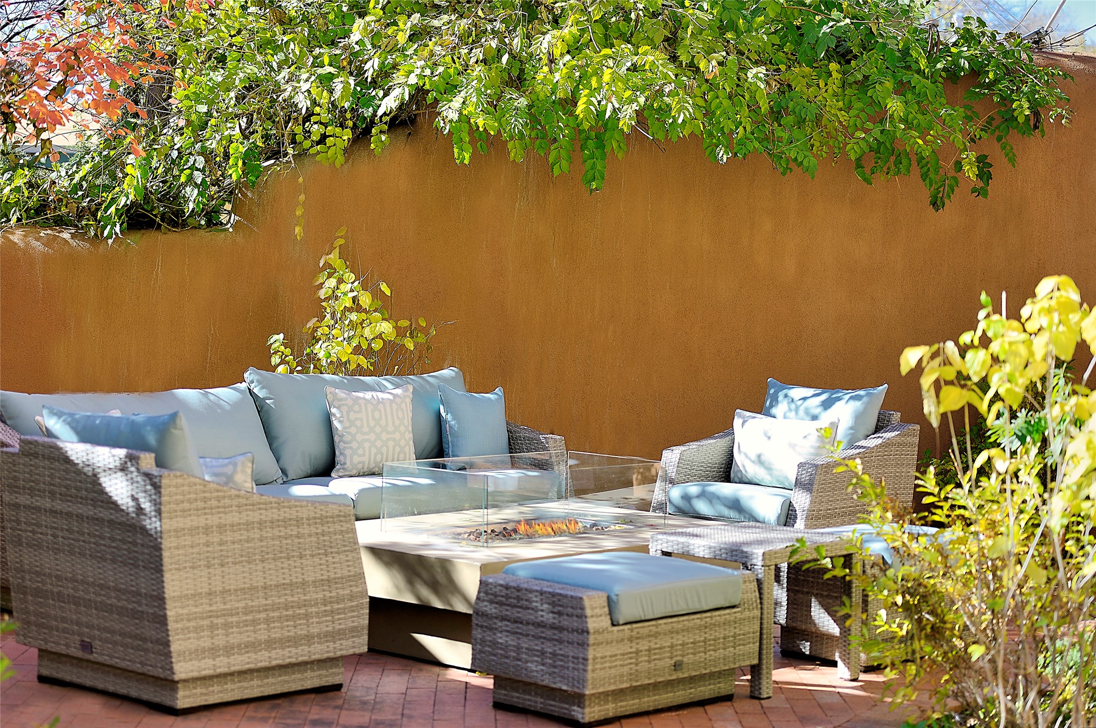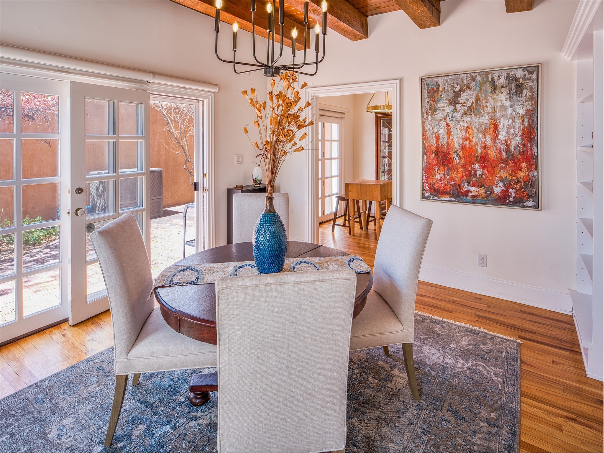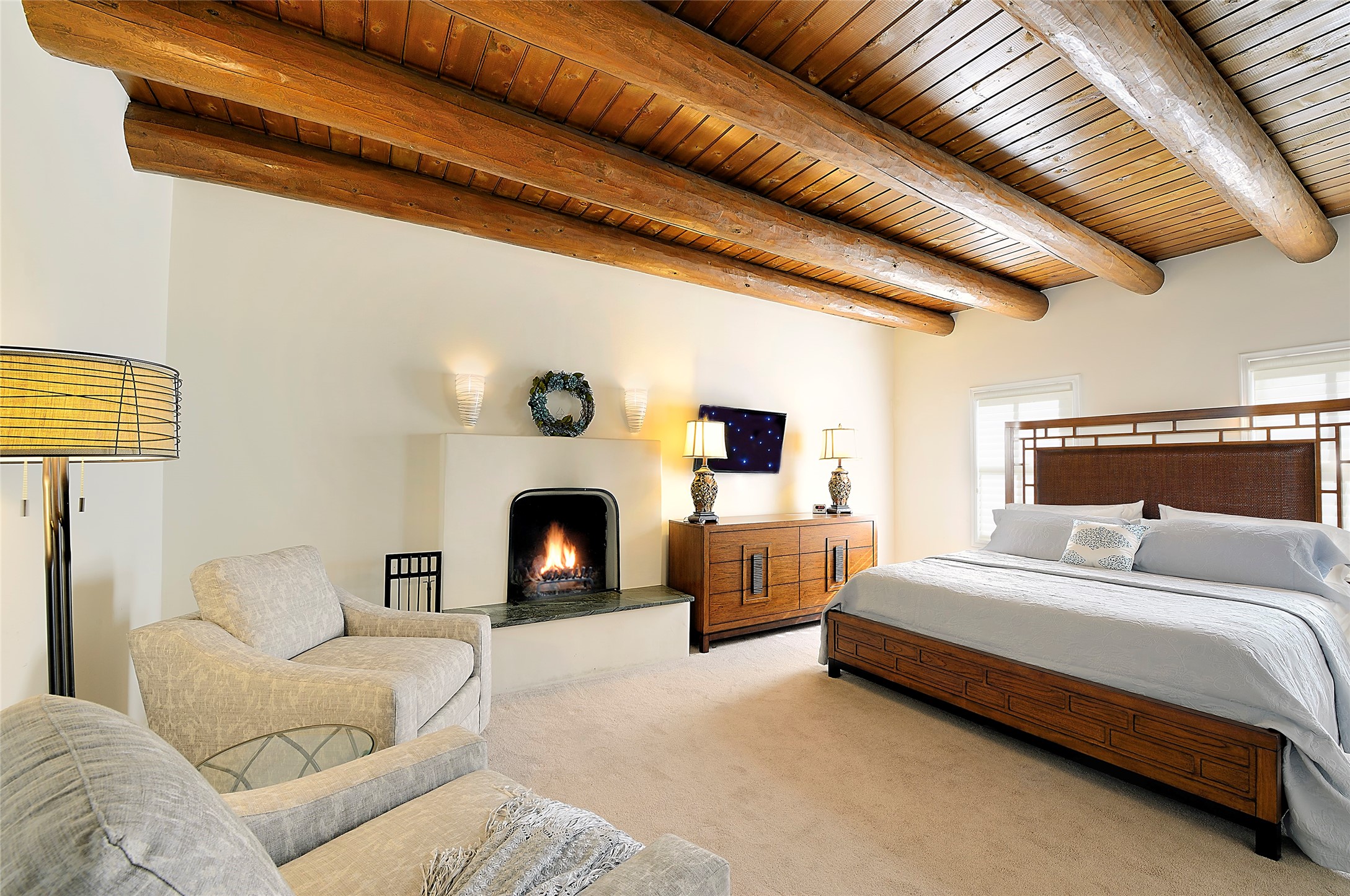 Prime Eastside Location - Just Blocks from Canyon Road and the Plaza!Welcome to this impeccably maintained and thoughtfully upgraded Territorial-style condo, designed by Sharon Woods and located in one of Santa Fe's most desirable historic neighborhoods. Only 3-4 blocks from both Canyon Road and the Plaza, this home offers true walkability to world-class dining, galleries, shopping, and cultural experiences--making a car optional, yet a private garage is included just steps from the front door, a rare and highly coveted amenity on the Eastside.This light-filled, two-story end-unit condo in a charming compound features high ceilings, and exceptional indoor-outdoor flow. The main level includes a formal living room, dining area, kitchen, powder room with laundry, and access to a lush, walled garden. The front patio boasts a large grill, and ample space for outdoor dining and entertaining.Upstairs, you'll find two bedrooms with two full baths, plus a versatile third room currently used as a second living area with a fold-out couch and closet--ideal as a guest room, office, or studio. The primary suite and second living room open to a private back courtyard with a hot tub, surrounded by mature trees, vines, and beautifully landscaped gardens.Enjoy outdoor access from every room, multiple patios with street access, and amenities including ducted heat and air conditioning, a newer roof and stucco, and an outdoor gas fire pit.Whether you're seeking a serene full-time residence, a luxurious getaway, or a proven rental investment, this rare Eastside gem offers it all.