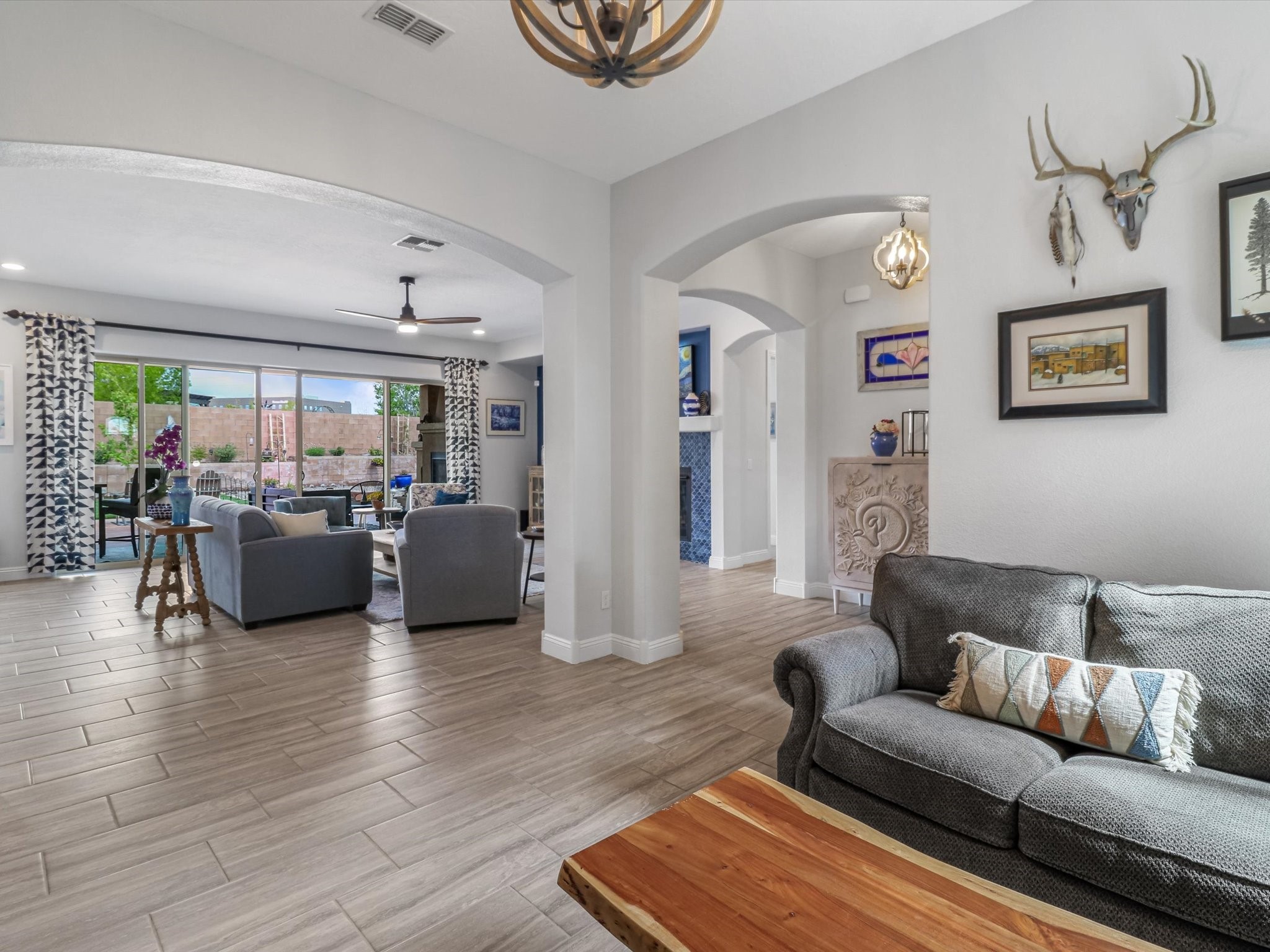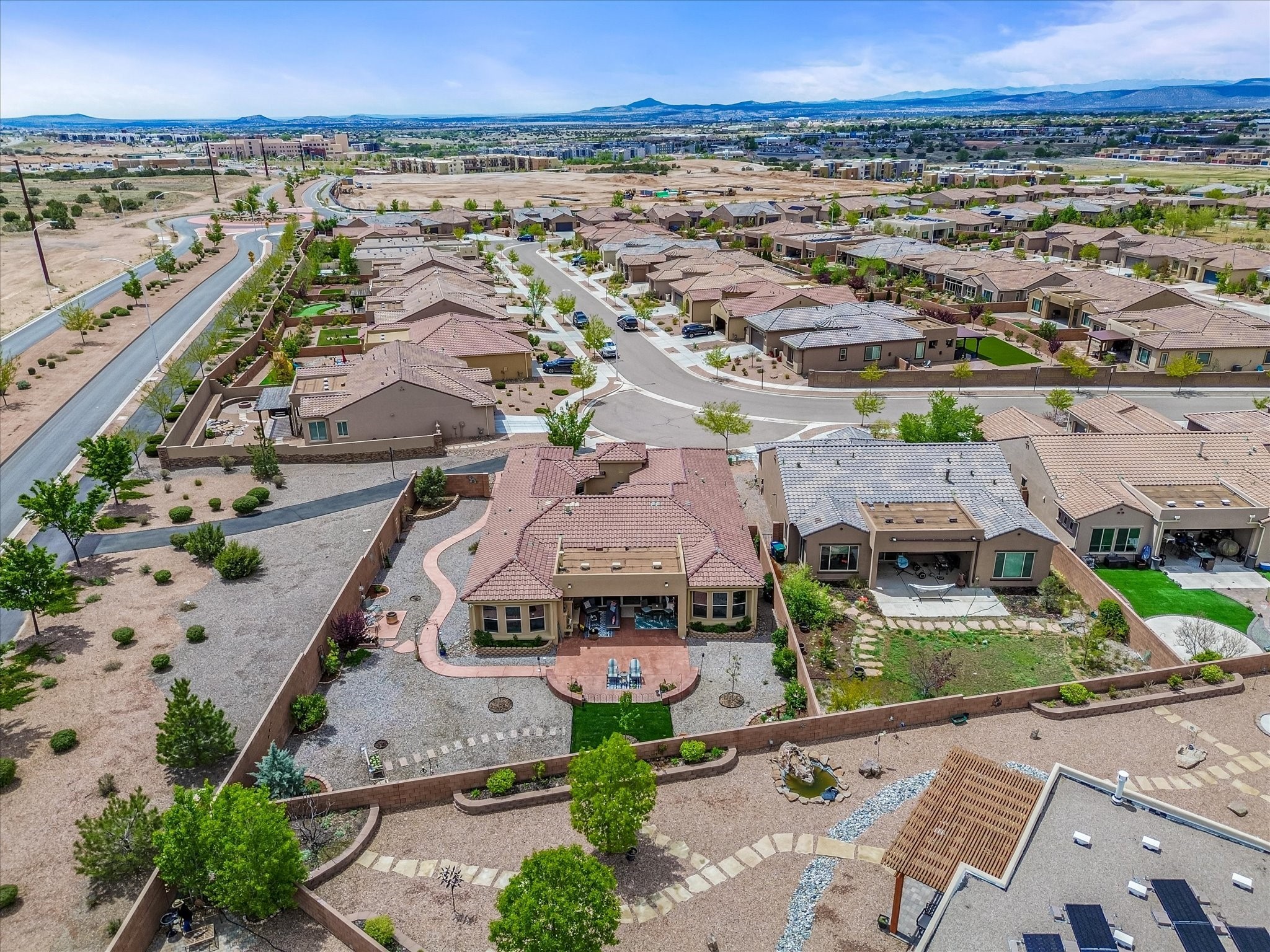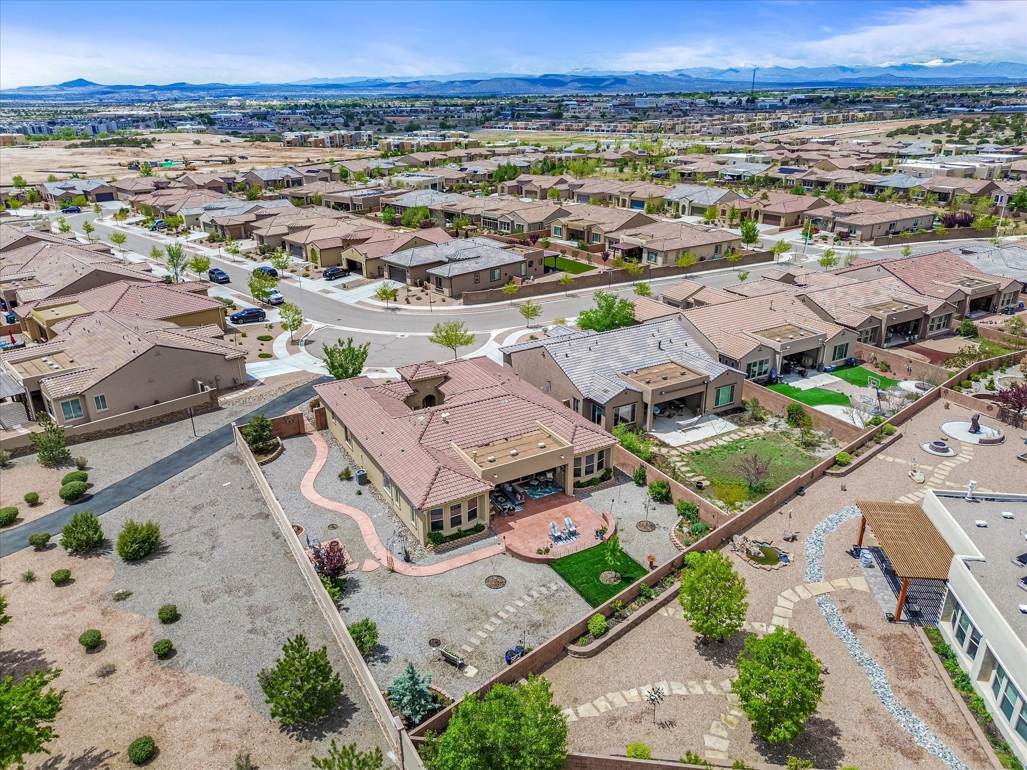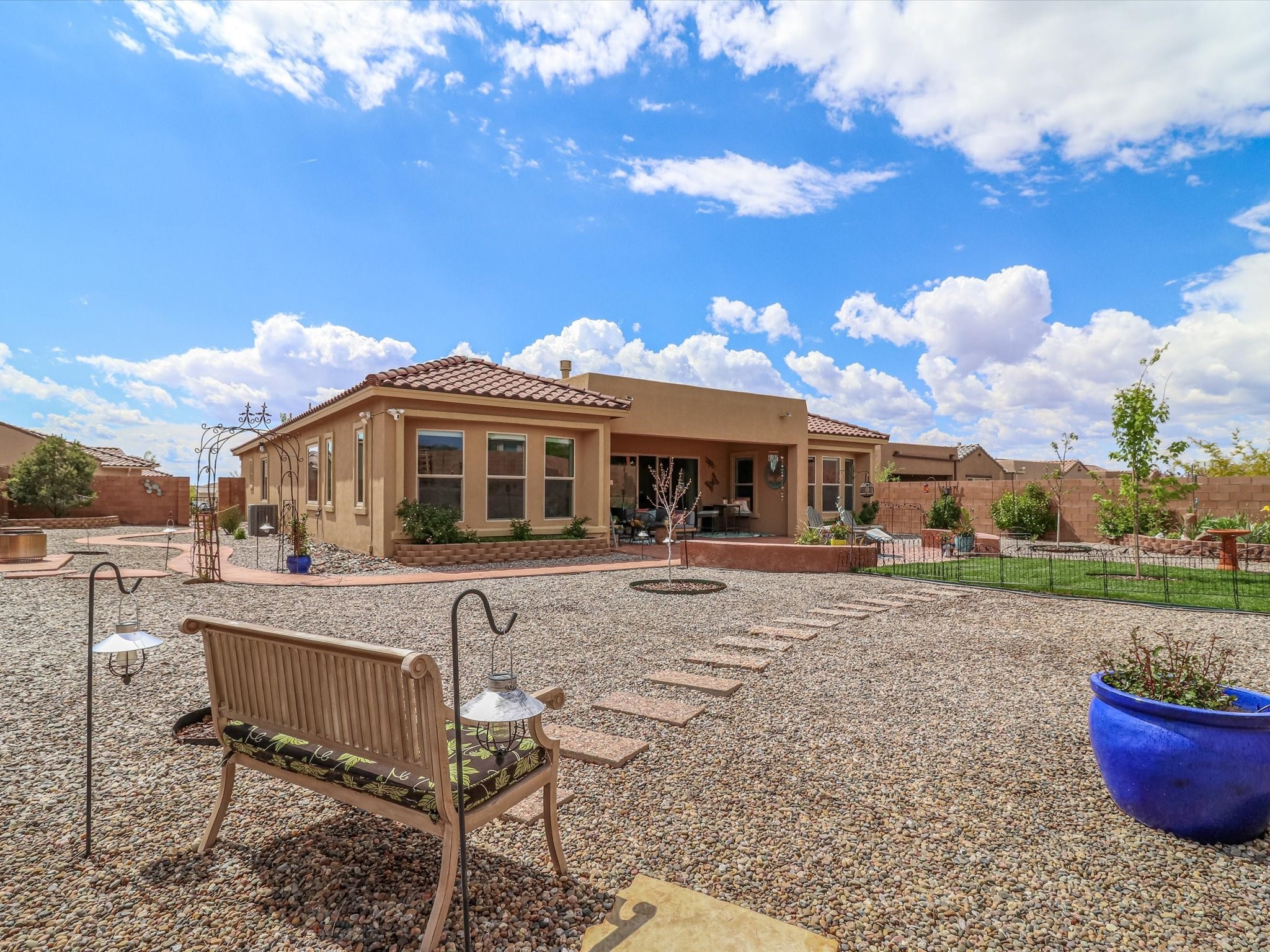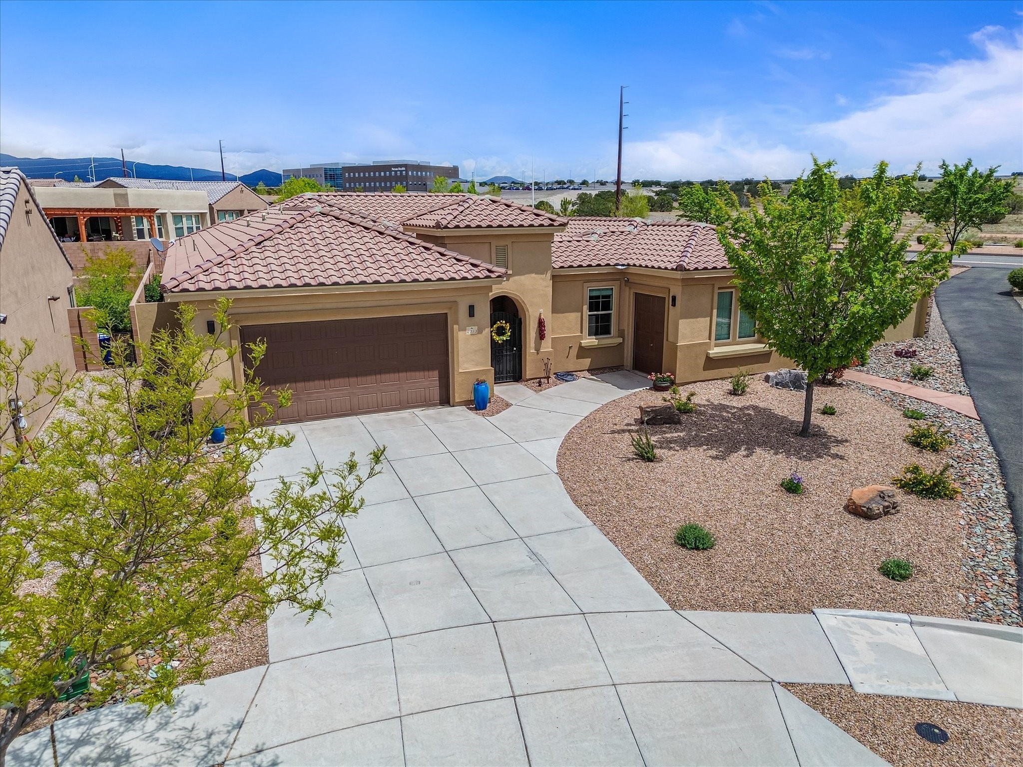 Discover refined living in this beautifully upgraded 3-bedroom, 2.5-bath, 2,543 sq ft home nestled on a premium corner lot in Santa Fe's desirable Las Soleras neighborhood. Set on an expansive .27-acre lot, this home offers the perfect blend of elegance, comfort, and location--just minutes from shopping, parks, and scenic walking trails.Step inside and fall in love with the a welcoming open layout filled with natural light, a fully renovated powder room, freshly painted living spaces (walls, ceilings, baseboards, and trim),10 ft ceilings, 8 foot doors, and updated ceramic tile surrounding the cozy fireplace. The Chef's kitchen is a showstopper, featuring new quartz countertops, soft-close cabinetry with custom pull-outs, added storage on the back of the island, sizable pantry, and top-tier appliances including an upgraded KitchenAid wall oven/microwave combo, Bosch dishwasher, LG electric cooktop with touch controls (gas hookup available to allow for easy cooktop switch out if preferred), and LG refrigerator. Retreat to the luxurious primary suite where the bathroom has been transformed with quartz countertops, soft-close, pull-out cabinetry, upgraded light fixtures, new sinks, mirrors, and tile backsplash.Outside, enjoy newly updated landscaping and a spacious backyard oasis with endless potential. Even the storage garage has been upgraded with a new automatic door opener and security locks--ideal for peace of mind and convenience.From top-to-bottom upgrades to an unbeatable location, this Estancias de Las Soleras gem is a rare find. Schedule your private showing today and experience elevated Santa Fe living!