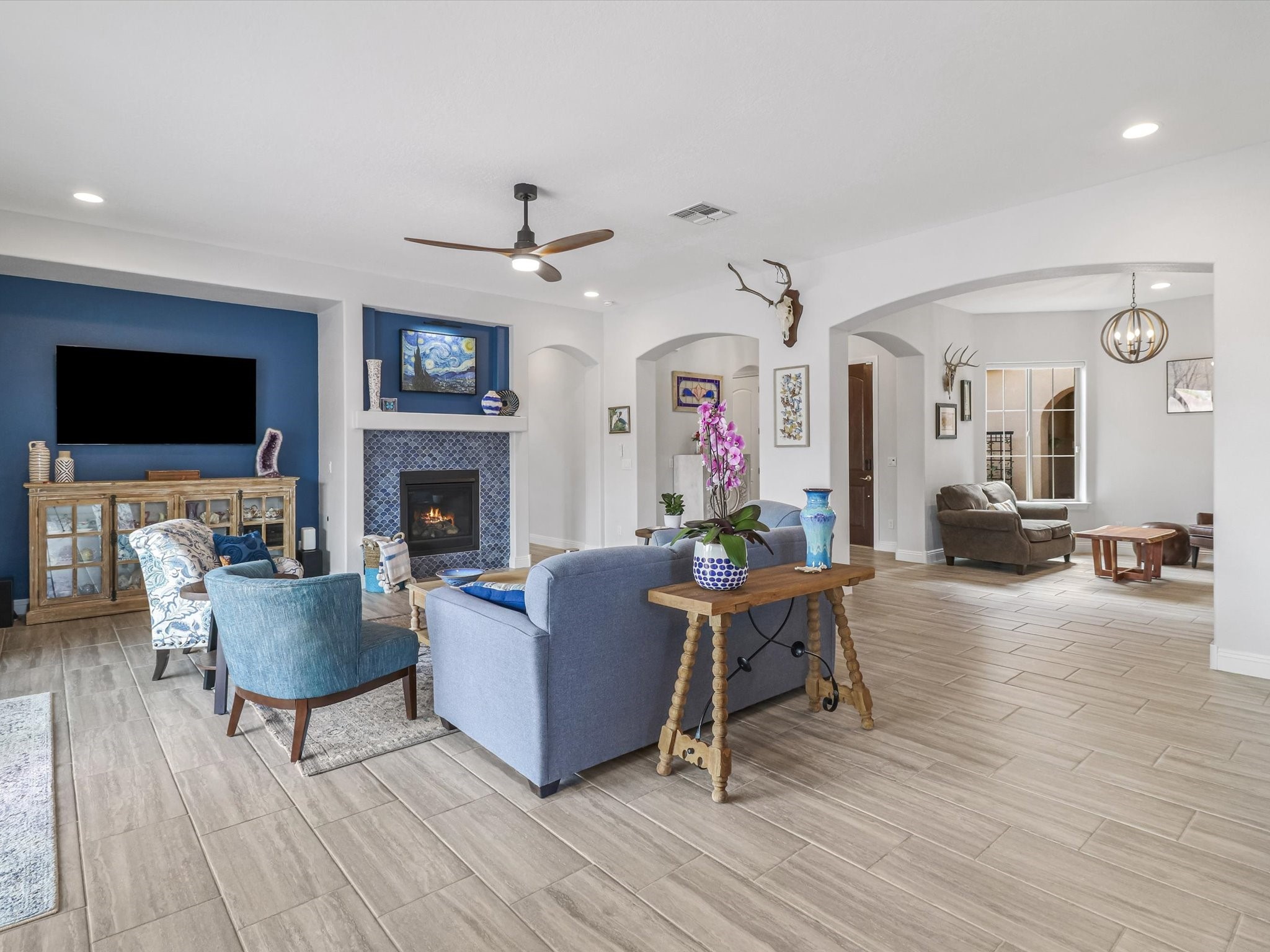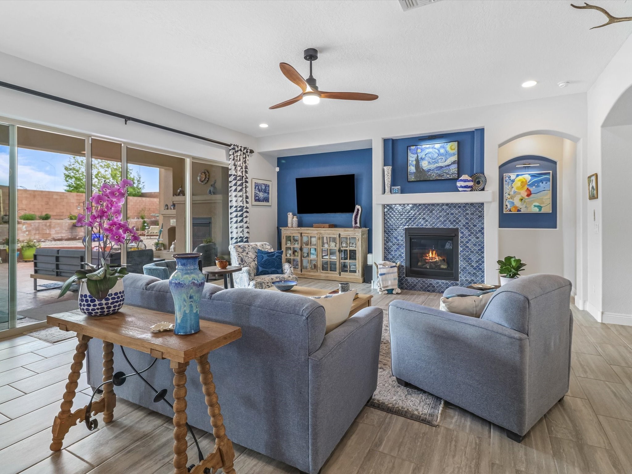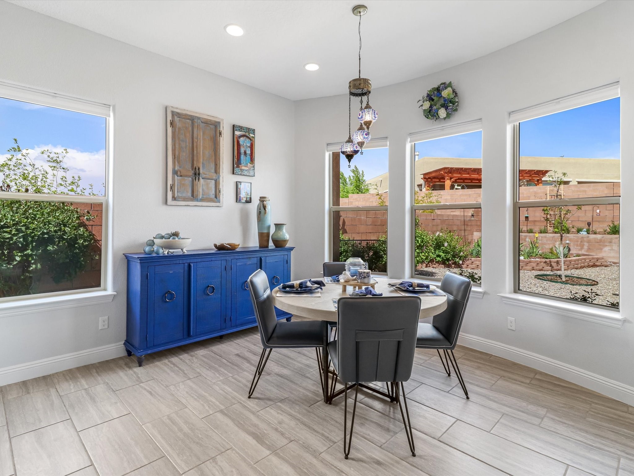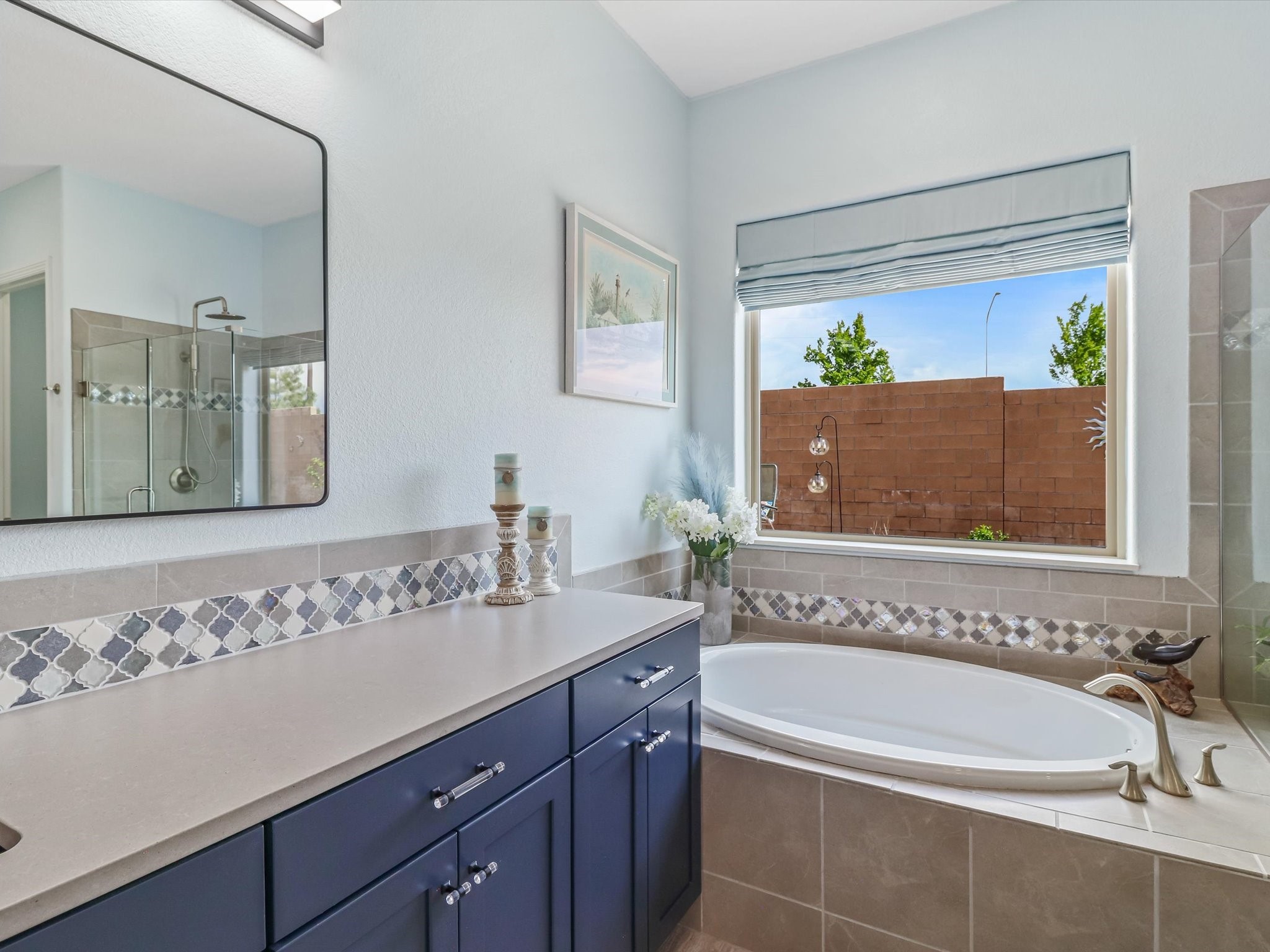 Discover refined living in this beautifully upgraded 3-bedroom, 2.5-bath, 2,543 sq ft home nestled on a premium corner lot in Santa Fe's desirable Las Soleras neighborhood. Set on an expansive .27-acre lot, this home offers the perfect blend of elegance, comfort, and location--just minutes from shopping, parks, and scenic walking trails.Step inside and fall in love with the a welcoming open layout filled with natural light, a fully renovated powder room, freshly painted living spaces (walls, ceilings, baseboards, and trim),10 ft ceilings, 8 foot doors, and updated ceramic tile surrounding the cozy fireplace. The Chef's kitchen is a showstopper, featuring new quartz countertops, soft-close cabinetry with custom pull-outs, added storage on the back of the island, sizable pantry, and top-tier appliances including an upgraded KitchenAid wall oven/microwave combo, Bosch dishwasher, LG electric cooktop with touch controls (gas hookup available to allow for easy cooktop switch out if preferred), and LG refrigerator. Retreat to the luxurious primary suite where the bathroom has been transformed with quartz countertops, soft-close, pull-out cabinetry, upgraded light fixtures, new sinks, mirrors, and tile backsplash.Outside, enjoy newly updated landscaping and a spacious backyard oasis with endless potential. Even the storage garage has been upgraded with a new automatic door opener and security locks--ideal for peace of mind and convenience.From top-to-bottom upgrades to an unbeatable location, this Estancias de Las Soleras gem is a rare find. Schedule your private showing today and experience elevated Santa Fe living!