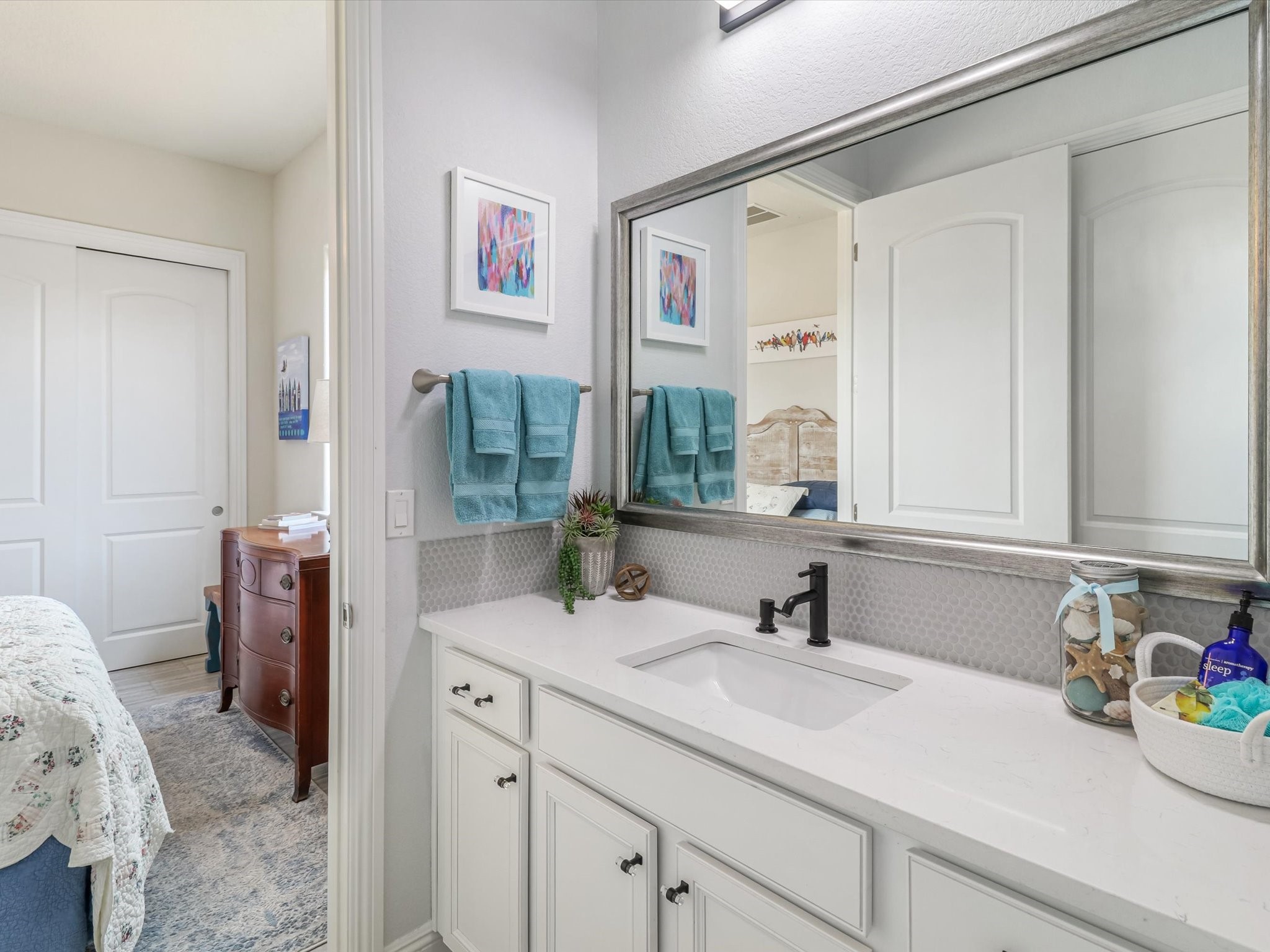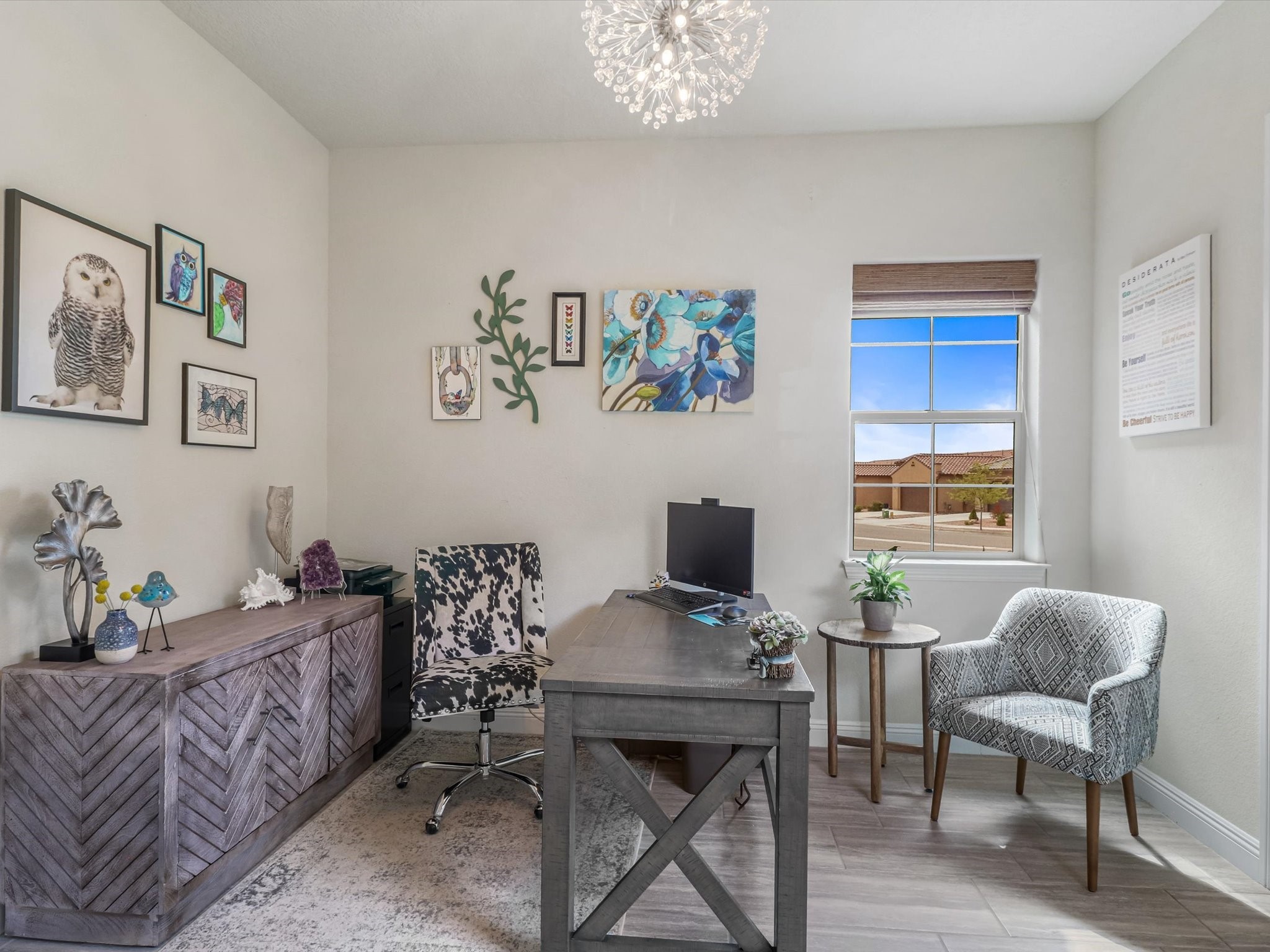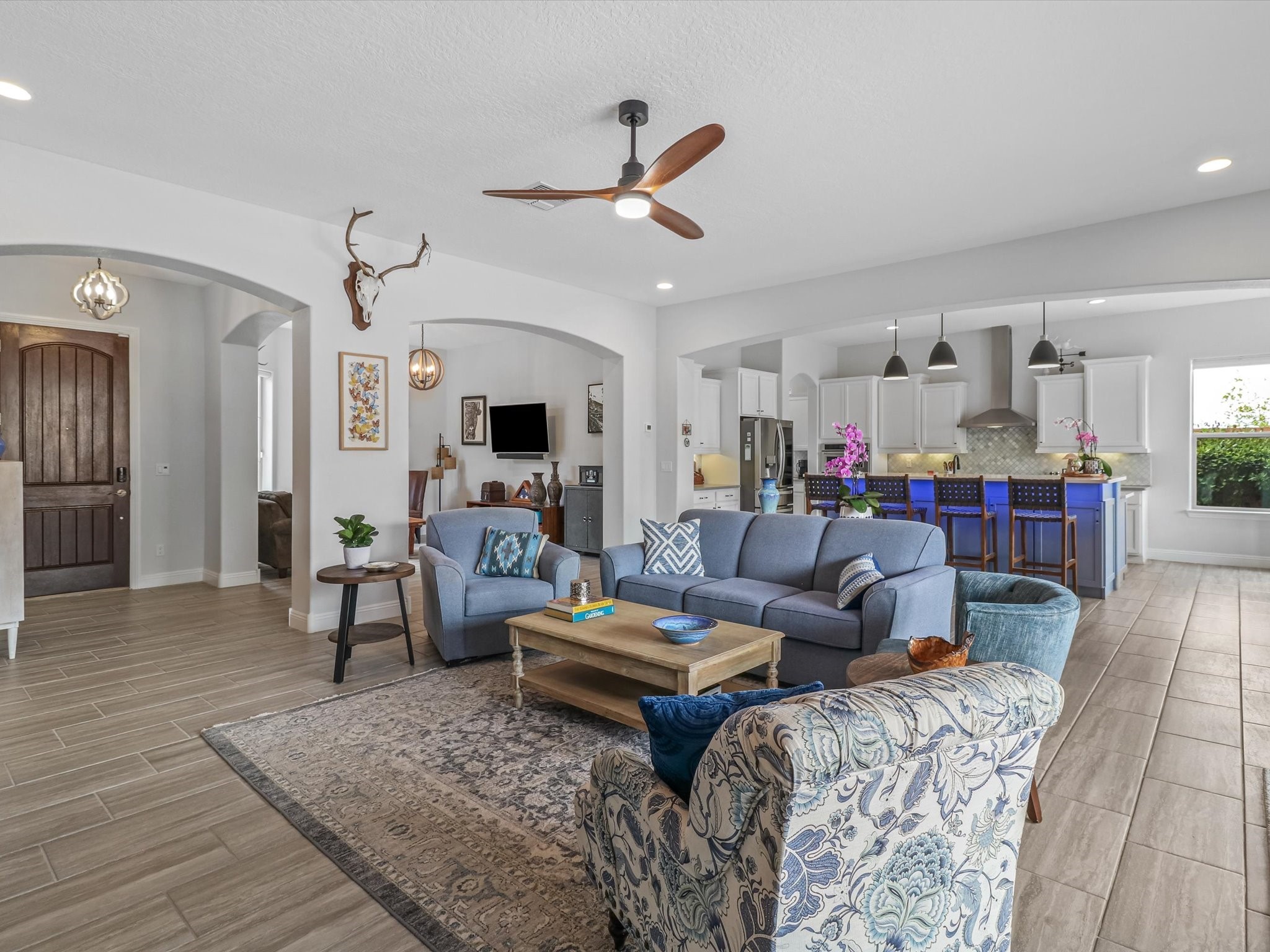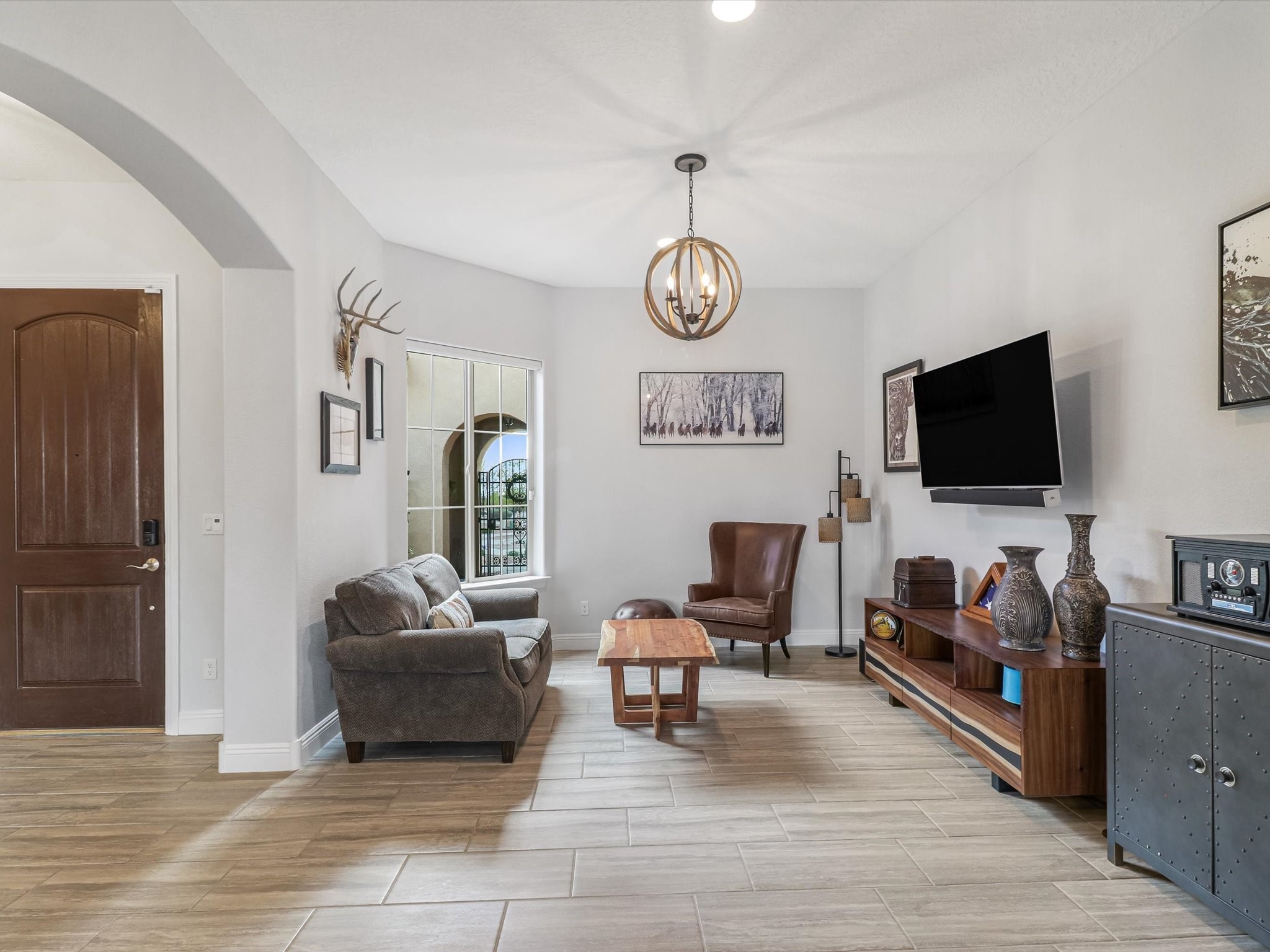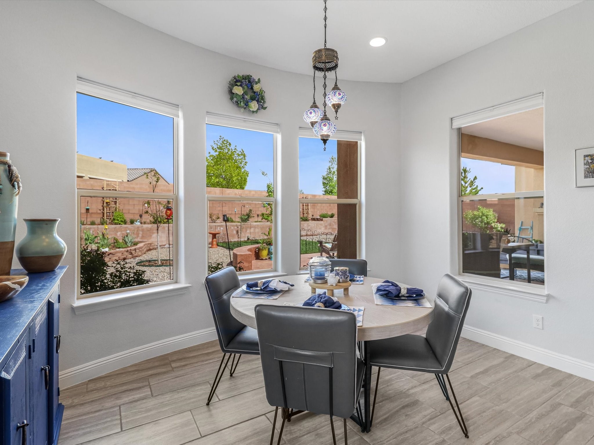 Discover refined living in this beautifully upgraded 3-bedroom, 2.5-bath, 2,543 sq ft home nestled on a premium corner lot in Santa Fe's desirable Las Soleras neighborhood. Set on an expansive .27-acre lot, this home offers the perfect blend of elegance, comfort, and location--just minutes from shopping, parks, and scenic walking trails.Step inside and fall in love with the a welcoming open layout filled with natural light, a fully renovated powder room, freshly painted living spaces (walls, ceilings, baseboards, and trim),10 ft ceilings, 8 foot doors, and updated ceramic tile surrounding the cozy fireplace. The Chef's kitchen is a showstopper, featuring new quartz countertops, soft-close cabinetry with custom pull-outs, added storage on the back of the island, sizable pantry, and top-tier appliances including an upgraded KitchenAid wall oven/microwave combo, Bosch dishwasher, LG electric cooktop with touch controls (gas hookup available to allow for easy cooktop switch out if preferred), and LG refrigerator. Retreat to the luxurious primary suite where the bathroom has been transformed with quartz countertops, soft-close, pull-out cabinetry, upgraded light fixtures, new sinks, mirrors, and tile backsplash.Outside, enjoy newly updated landscaping and a spacious backyard oasis with endless potential. Even the storage garage has been upgraded with a new automatic door opener and security locks--ideal for peace of mind and convenience.From top-to-bottom upgrades to an unbeatable location, this Estancias de Las Soleras gem is a rare find. Schedule your private showing today and experience elevated Santa Fe living!