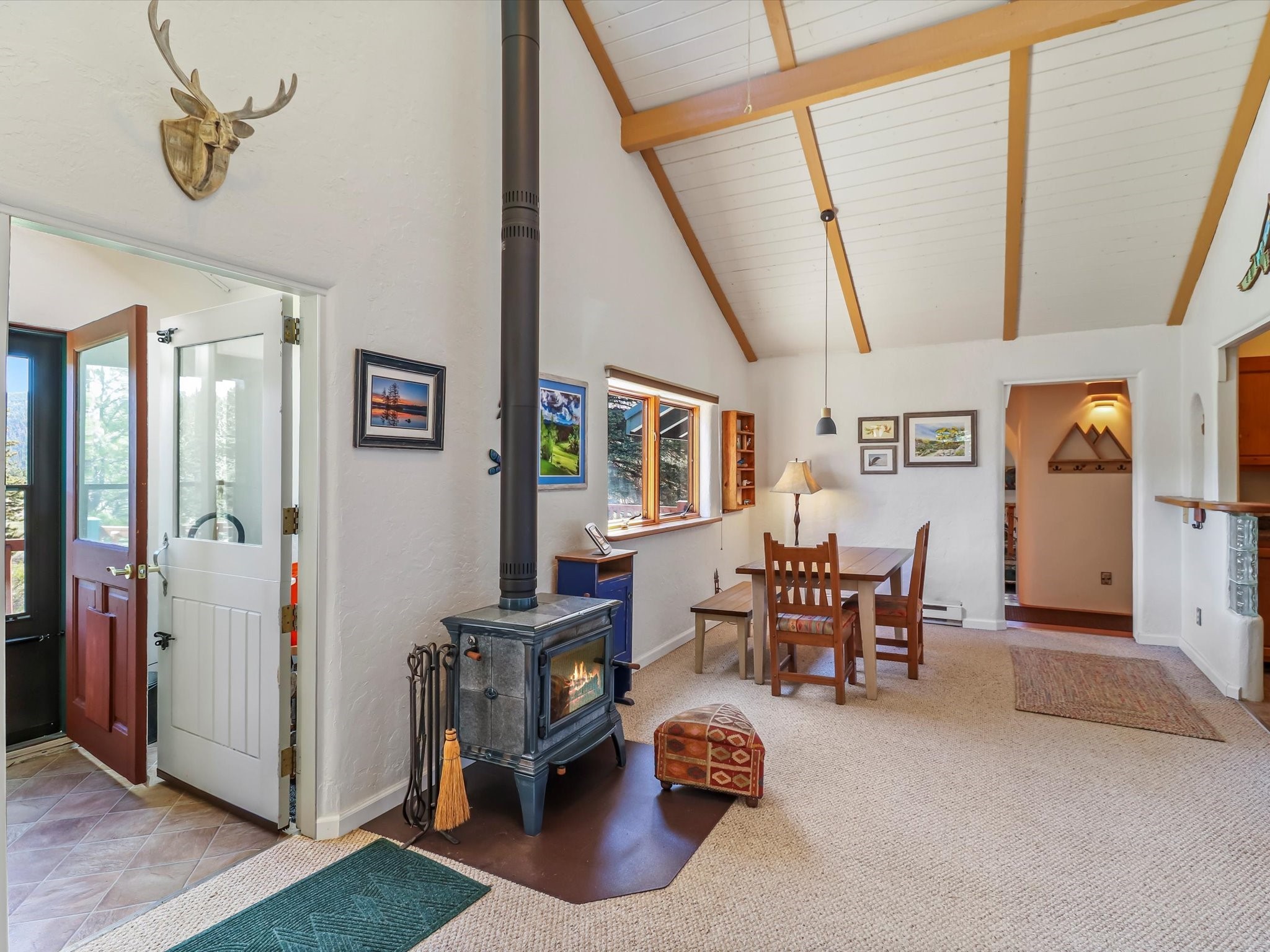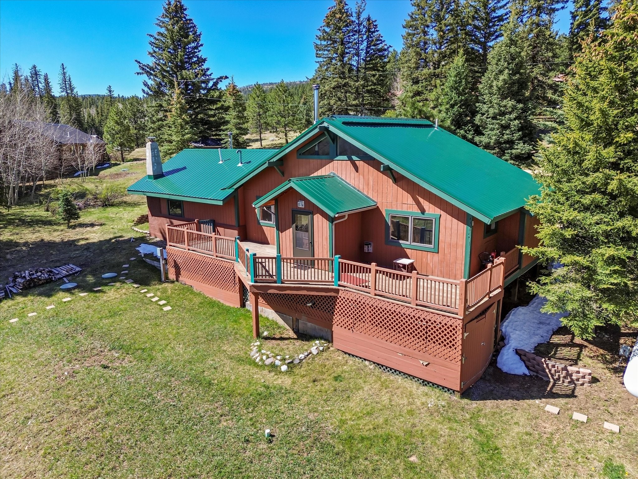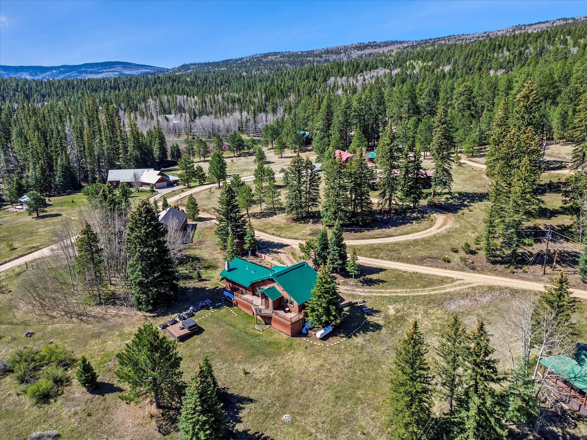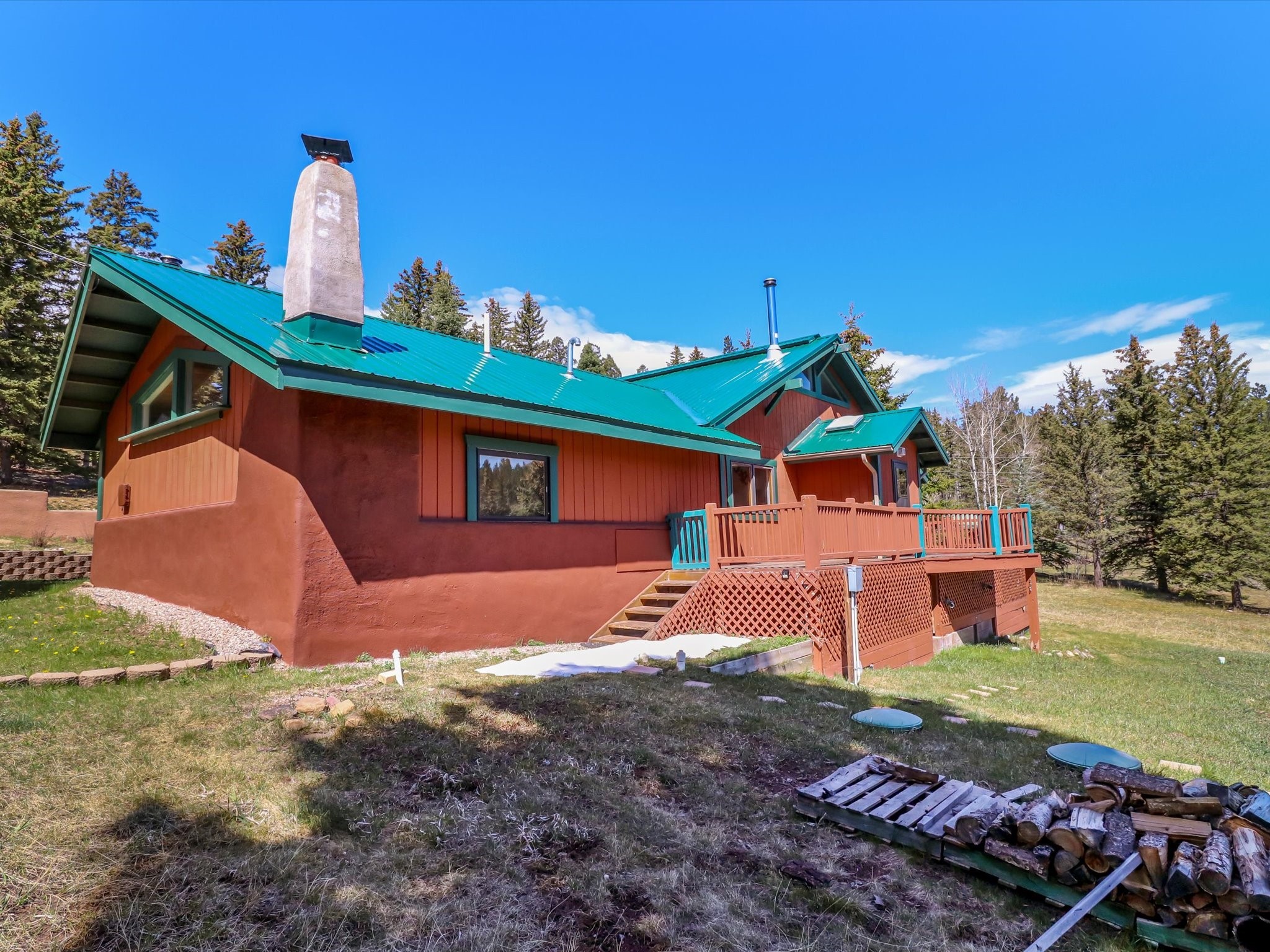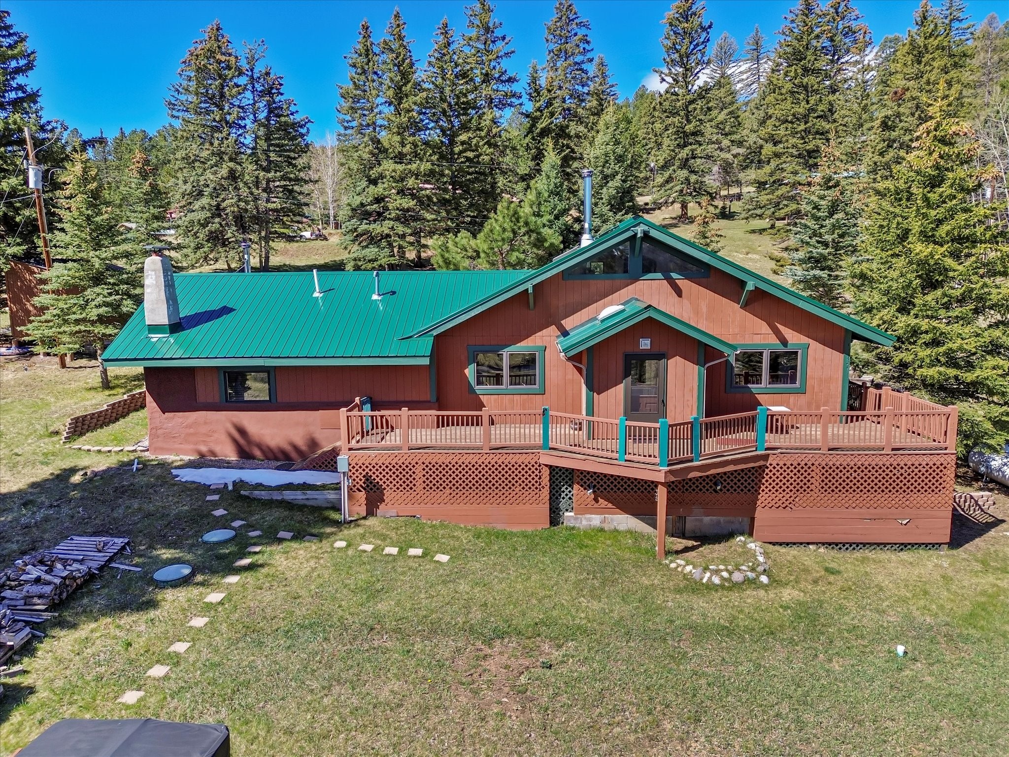 Welcome to The Great Escape, a desirable 3BR/2BA alpine home nestled in the scenic mountain community of El Valle Escondido. With 1,801 sq.ft. of living space, this charming retreat blends alpine cabin warmth with Southwestern style. The open-concept living room features a vaulted ceiling, abundant windows, a cozy gas fireplace, and flows into the dining area. The entry mudroom leads to a spacious deck with stunning views of an alpine meadow, mature ponderosa pines, aspens, and the golf course.The kitchen offers ample cabinetry and storage, plus an adjoining laundry room/pantry. The spacious primary bedroom has a kiva fireplace, woodstove, walk-in closet, and mountain views. Upstairs, the loft offers a bright, flexible space with a skylight--perfect for hobbies or guests. One of the guest bedrooms includes an en-suite bath with a tub.Set on a large 0.77-acre double lot, the property includes perennial garden beds, stucco walls, fencing for pets, mature alpine trees, and a raised hot tub deck--ideal for soaking in the views or stargazing. Under-deck storage is perfect for snowmobiles, golf gear, or outdoor equipment, and the insulated crawlspace/basement has electricity and water.Enjoy exclusive HOA amenities like private fishing ponds, a 9-hole golf course, clubhouse, and a heated summer pool. Surrounded by U.S. National Forest and outdoor recreation, El Valle Escondido is also a certified Firewise community. Whether you're seeking a mountain getaway or full-time home, The Great Escape offers peaceful living and natural beauty year-round.
