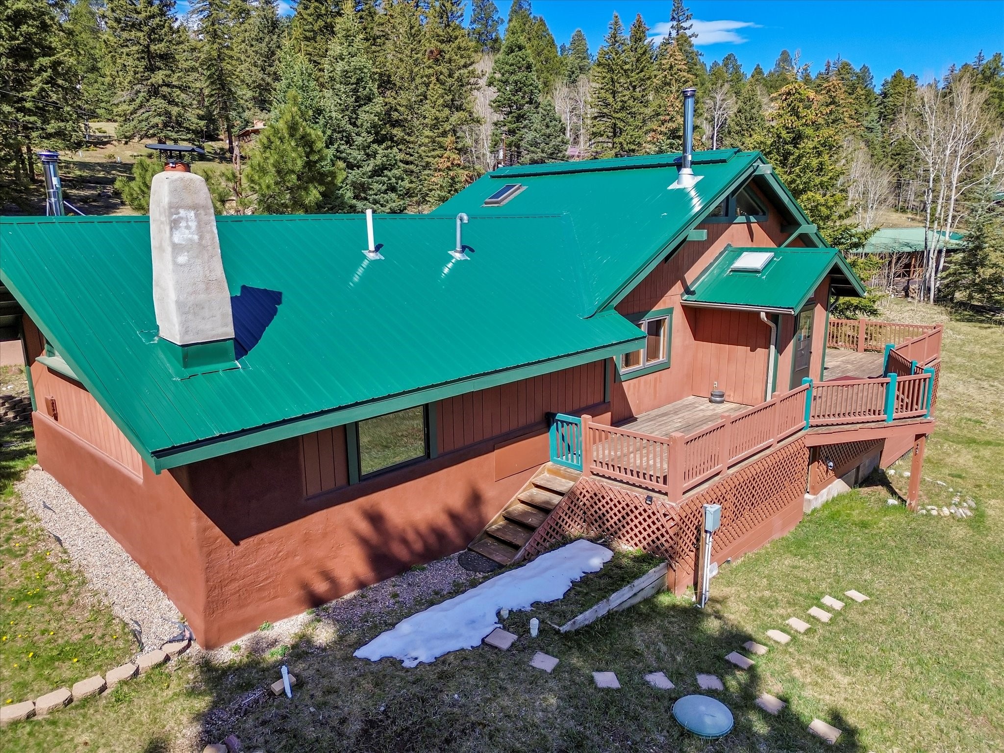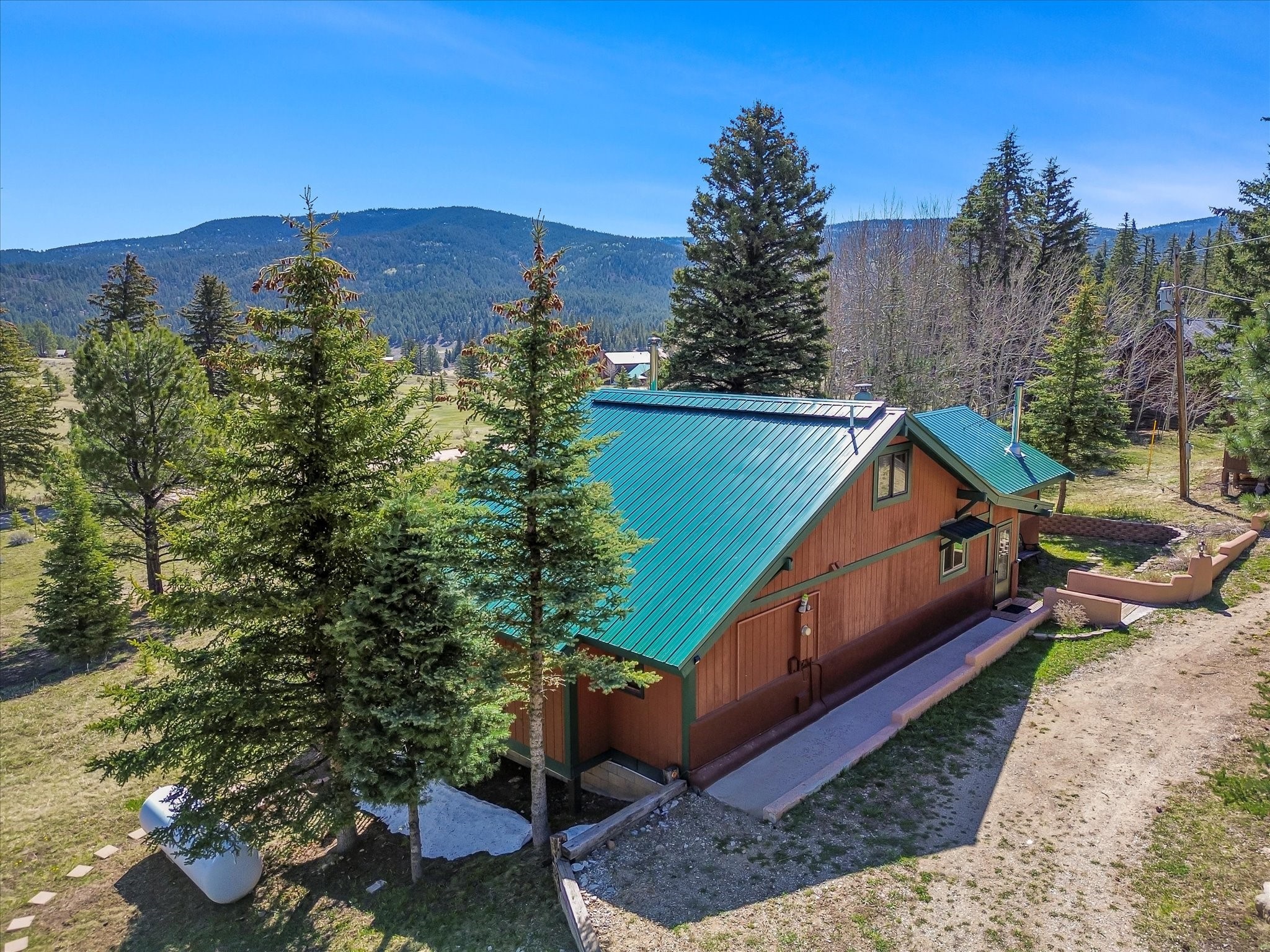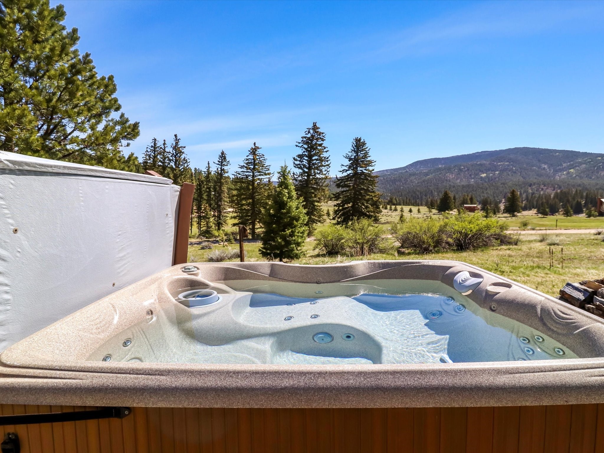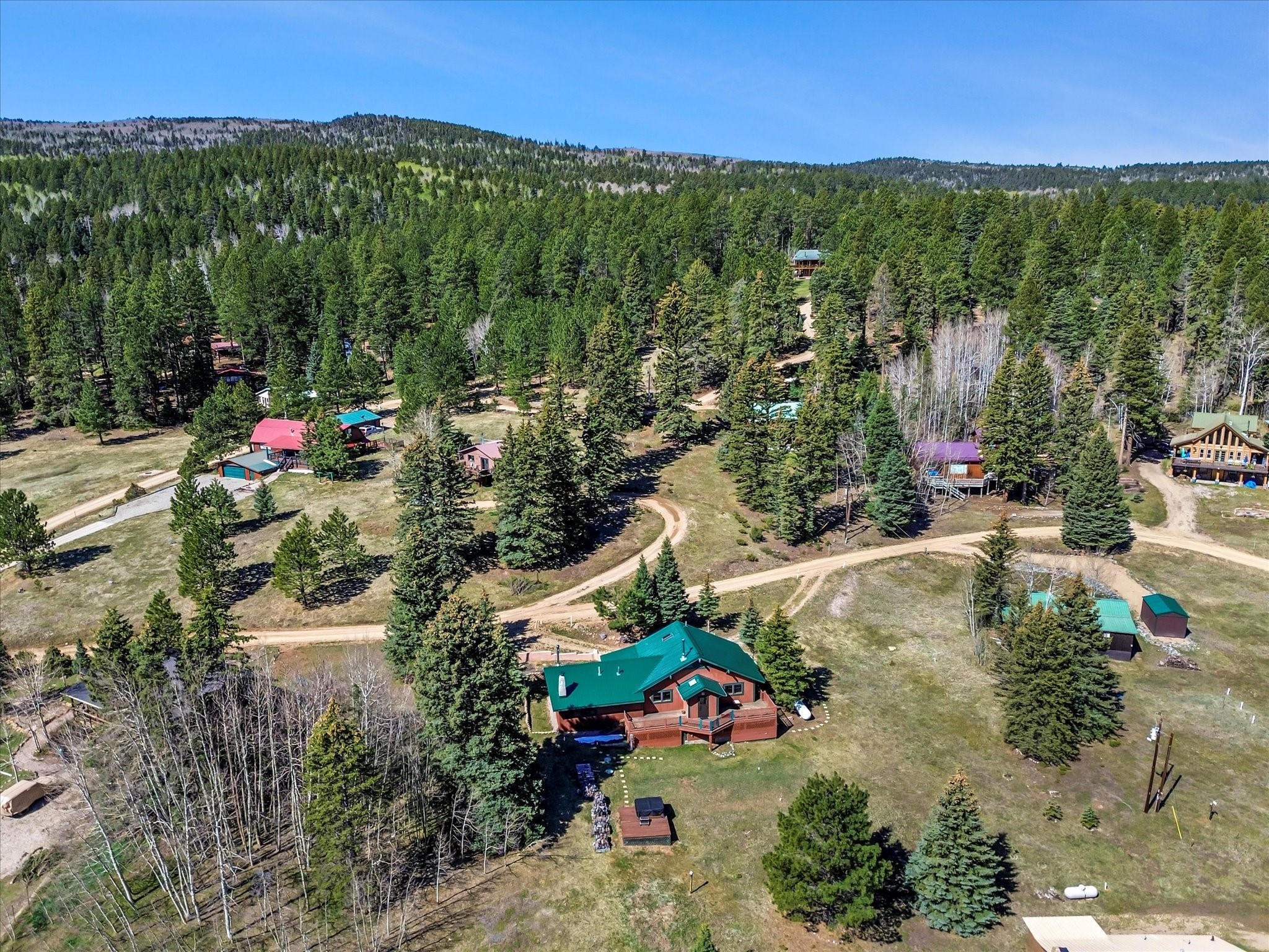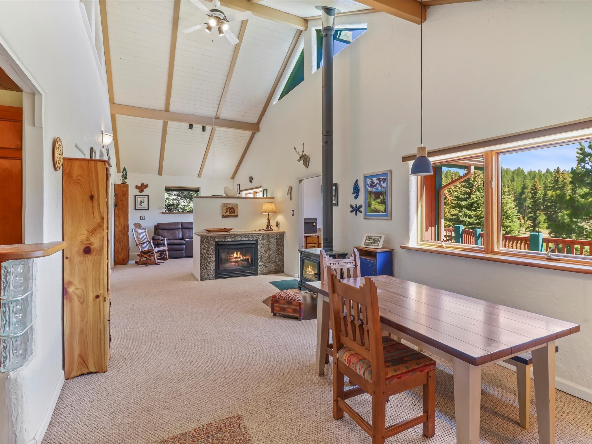 Welcome to The Great Escape, a desirable 3BR/2BA alpine home nestled in the scenic mountain community of El Valle Escondido. With 1,801 sq.ft. of living space, this charming retreat blends alpine cabin warmth with Southwestern style. The open-concept living room features a vaulted ceiling, abundant windows, a cozy gas fireplace, and flows into the dining area. The entry mudroom leads to a spacious deck with stunning views of an alpine meadow, mature ponderosa pines, aspens, and the golf course.The kitchen offers ample cabinetry and storage, plus an adjoining laundry room/pantry. The spacious primary bedroom has a kiva fireplace, woodstove, walk-in closet, and mountain views. Upstairs, the loft offers a bright, flexible space with a skylight--perfect for hobbies or guests. One of the guest bedrooms includes an en-suite bath with a tub.Set on a large 0.77-acre double lot, the property includes perennial garden beds, stucco walls, fencing for pets, mature alpine trees, and a raised hot tub deck--ideal for soaking in the views or stargazing. Under-deck storage is perfect for snowmobiles, golf gear, or outdoor equipment, and the insulated crawlspace/basement has electricity and water.Enjoy exclusive HOA amenities like private fishing ponds, a 9-hole golf course, clubhouse, and a heated summer pool. Surrounded by U.S. National Forest and outdoor recreation, El Valle Escondido is also a certified Firewise community. Whether you're seeking a mountain getaway or full-time home, The Great Escape offers peaceful living and natural beauty year-round.