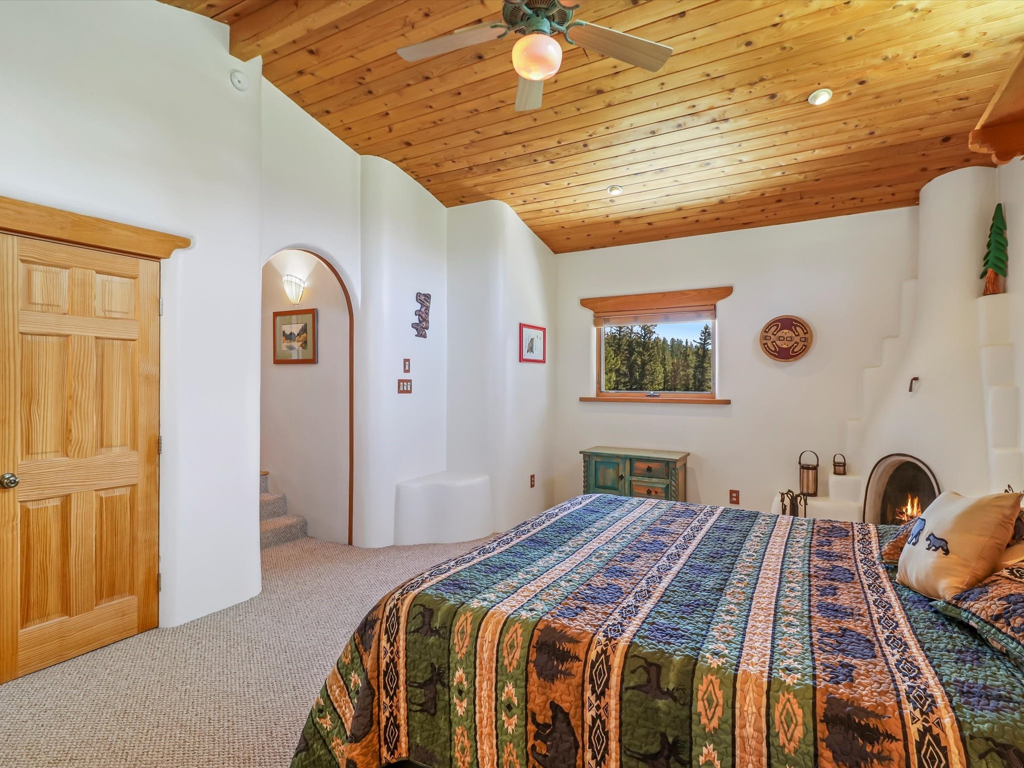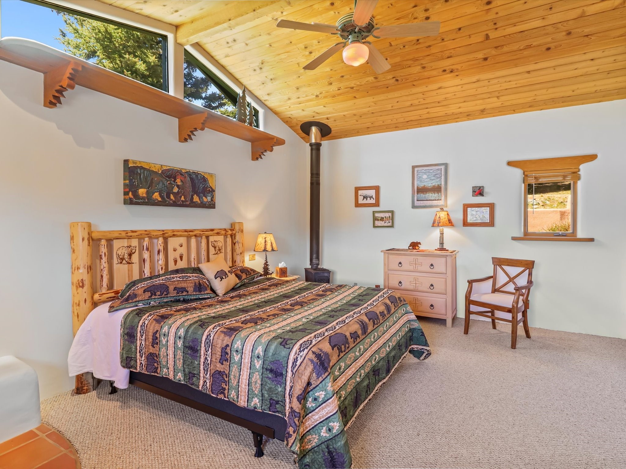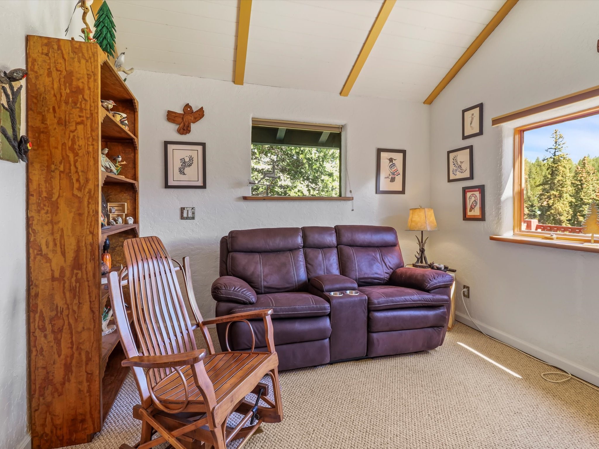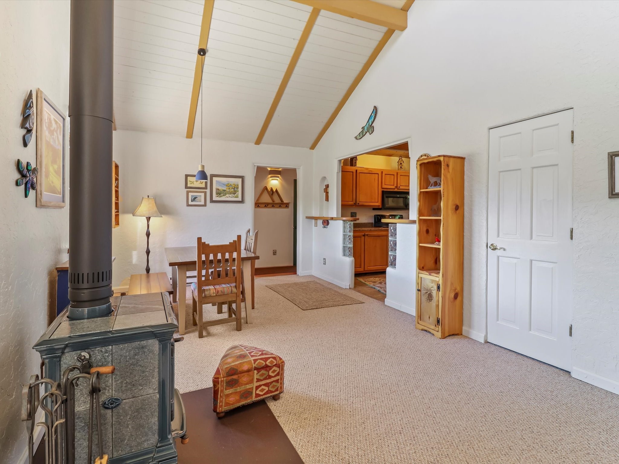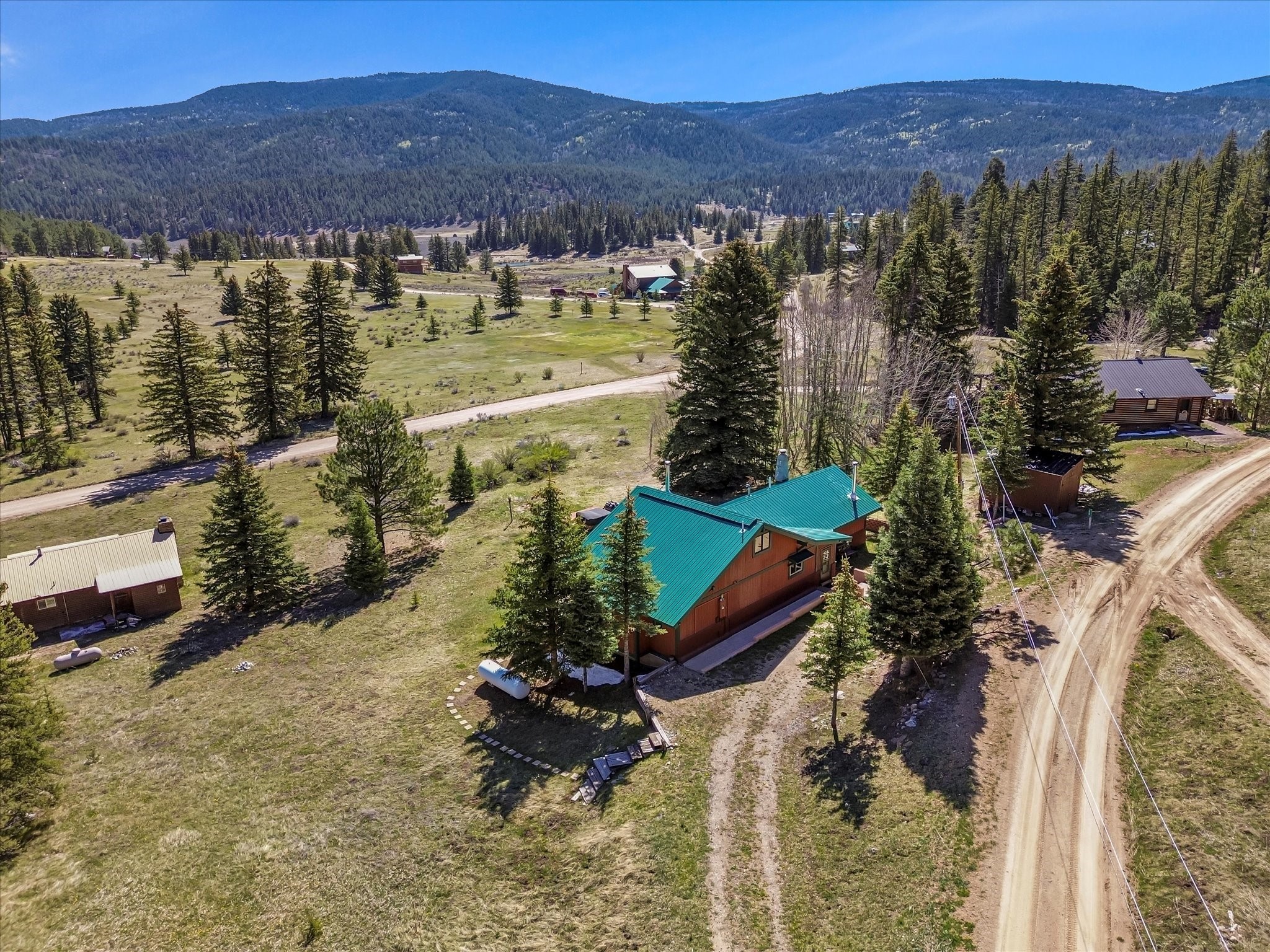Welcome to The Great Escape, a desirable 3BR/2BA alpine home nestled in the scenic mountain community of El Valle Escondido. With 1,801 sq.ft. of living space, this charming retreat blends alpine cabin warmth with Southwestern style. The open-concept living room features a vaulted ceiling, abundant windows, a cozy gas fireplace, and flows into the dining area. The entry mudroom leads to a spacious deck with stunning views of an alpine meadow, mature ponderosa pines, aspens, and the golf course.The kitchen offers ample cabinetry and storage, plus an adjoining laundry room/pantry. The spacious primary bedroom has a kiva fireplace, woodstove, walk-in closet, and mountain views. Upstairs, the loft offers a bright, flexible space with a skylight--perfect for hobbies or guests. One of the guest bedrooms includes an en-suite bath with a tub.Set on a large 0.77-acre double lot, the property includes perennial garden beds, stucco walls, fencing for pets, mature alpine trees, and a raised hot tub deck--ideal for soaking in the views or stargazing. Under-deck storage is perfect for snowmobiles, golf gear, or outdoor equipment, and the insulated crawlspace/basement has electricity and water.Enjoy exclusive HOA amenities like private fishing ponds, a 9-hole golf course, clubhouse, and a heated summer pool. Surrounded by U.S. National Forest and outdoor recreation, El Valle Escondido is also a certified Firewise community. Whether you're seeking a mountain getaway or full-time home, The Great Escape offers peaceful living and natural beauty year-round.