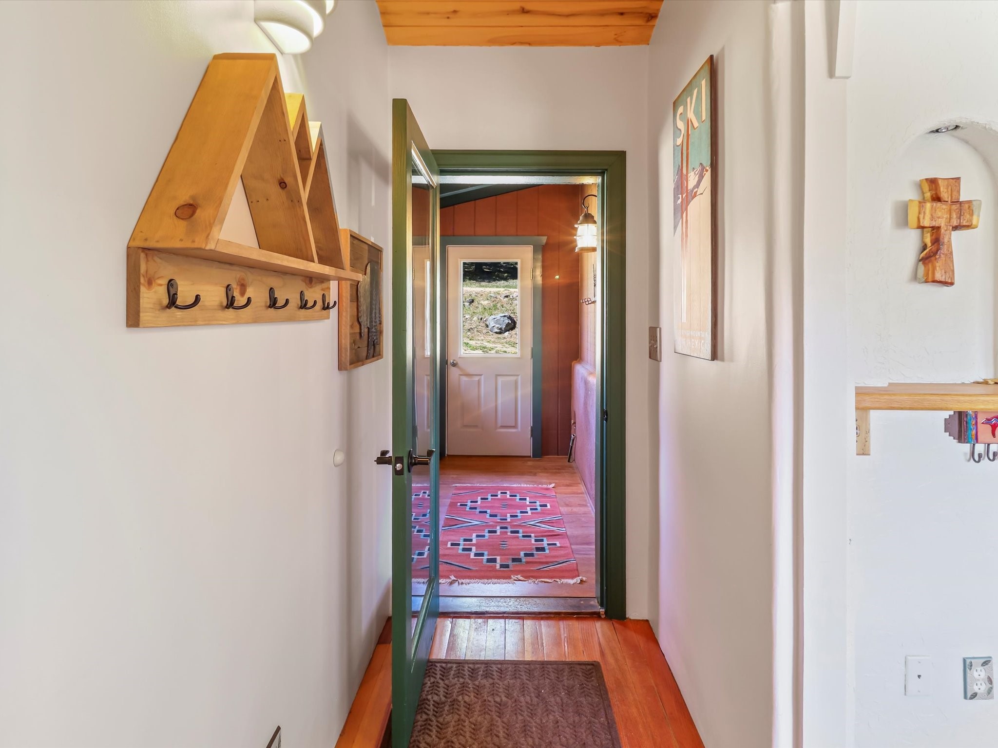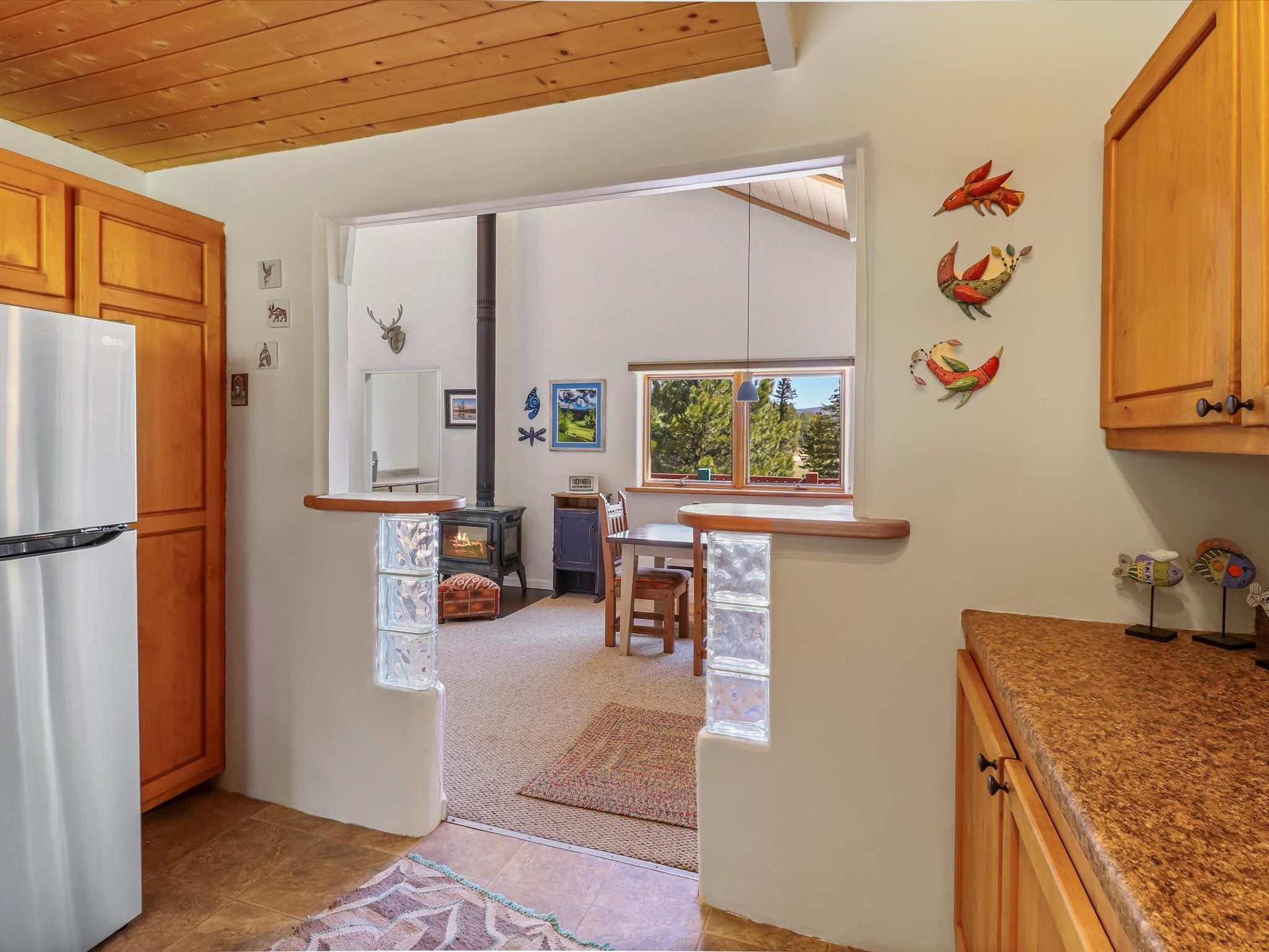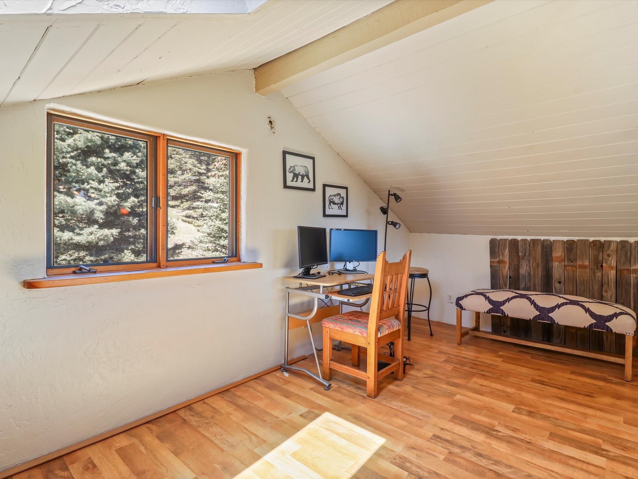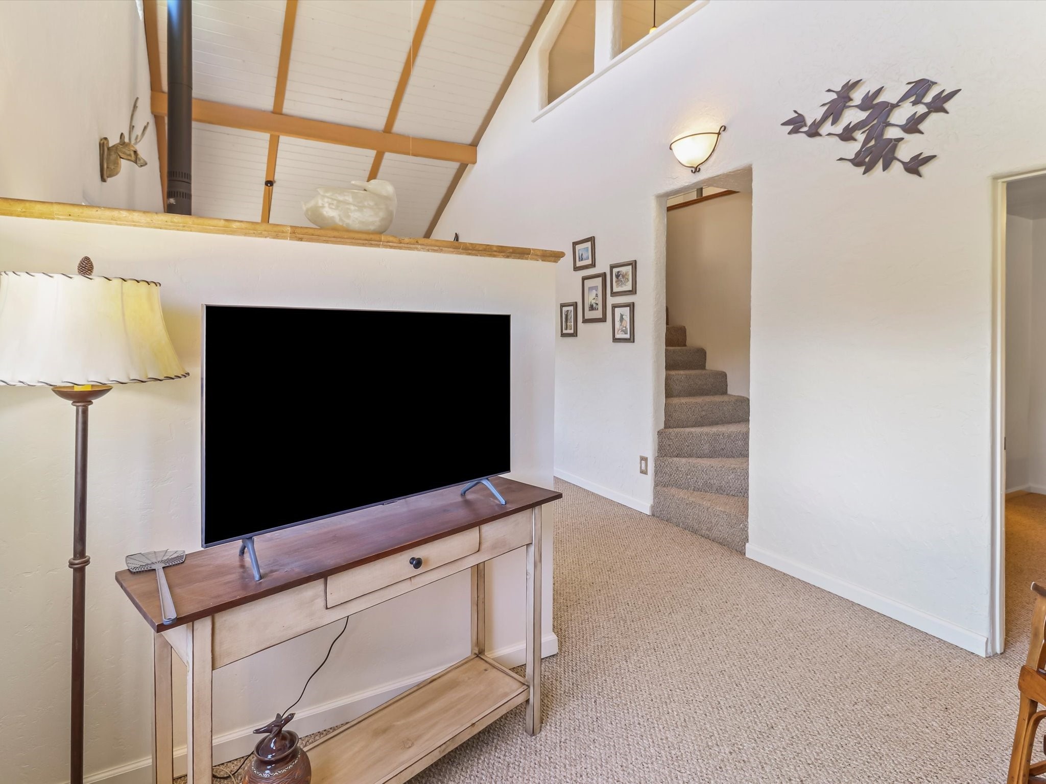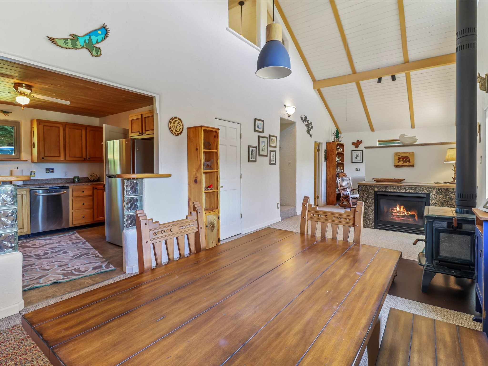 Welcome to The Great Escape, a desirable 3BR/2BA alpine home nestled in the scenic mountain community of El Valle Escondido. With 1,801 sq.ft. of living space, this charming retreat blends alpine cabin warmth with Southwestern style. The open-concept living room features a vaulted ceiling, abundant windows, a cozy gas fireplace, and flows into the dining area. The entry mudroom leads to a spacious deck with stunning views of an alpine meadow, mature ponderosa pines, aspens, and the golf course.The kitchen offers ample cabinetry and storage, plus an adjoining laundry room/pantry. The spacious primary bedroom has a kiva fireplace, woodstove, walk-in closet, and mountain views. Upstairs, the loft offers a bright, flexible space with a skylight--perfect for hobbies or guests. One of the guest bedrooms includes an en-suite bath with a tub.Set on a large 0.77-acre double lot, the property includes perennial garden beds, stucco walls, fencing for pets, mature alpine trees, and a raised hot tub deck--ideal for soaking in the views or stargazing. Under-deck storage is perfect for snowmobiles, golf gear, or outdoor equipment, and the insulated crawlspace/basement has electricity and water.Enjoy exclusive HOA amenities like private fishing ponds, a 9-hole golf course, clubhouse, and a heated summer pool. Surrounded by U.S. National Forest and outdoor recreation, El Valle Escondido is also a certified Firewise community. Whether you're seeking a mountain getaway or full-time home, The Great Escape offers peaceful living and natural beauty year-round.