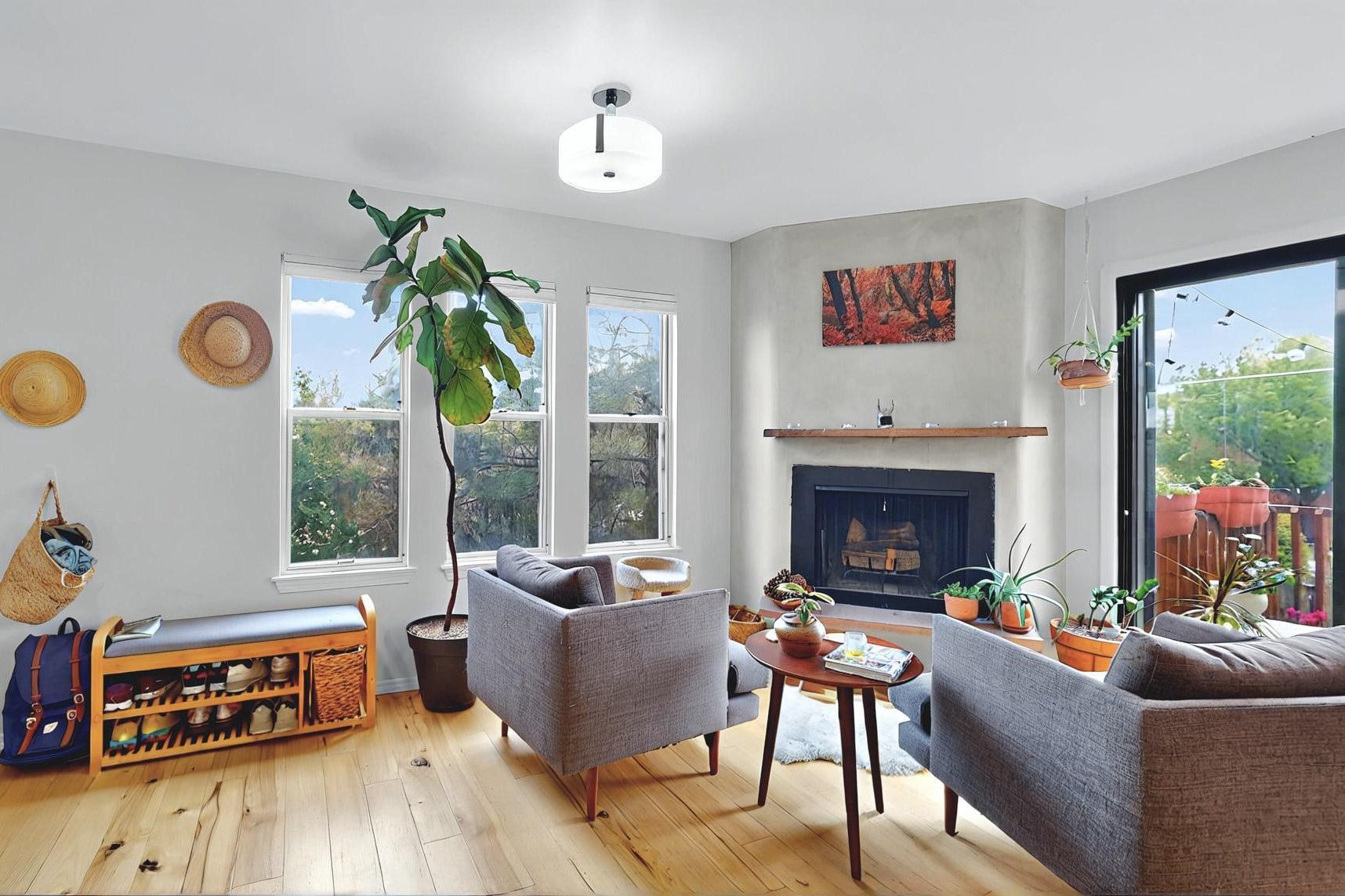 Located on a quiet street in South Capitol, this second-floor 2-bed, 2-bath condo offers light-filled living and a prime location, situated within the Wood Gormley Elementary School district. Set away from the street side of the building, it features over 1,400 square feet, a private balcony off the living room, and a wood-burning fireplace. The kitchen includes marble counters and a tiled backsplash. A whole-home water filtration system offers improved water quality throughout. Flooring is a mix of hardwood and manufactured materials, and the bathrooms include both a full and a three-quarter setup. Includes one guaranteed designated parking space in a secure underground garage, with another possible spot upon association approval plus an 8'x10' locked storage closet. Close to the Railyard District, Clafoutis bakery cafe, Trader Joe's, and a variety of neighborhood restaurants and shops. A rare combination of comfort, convenience, and location.