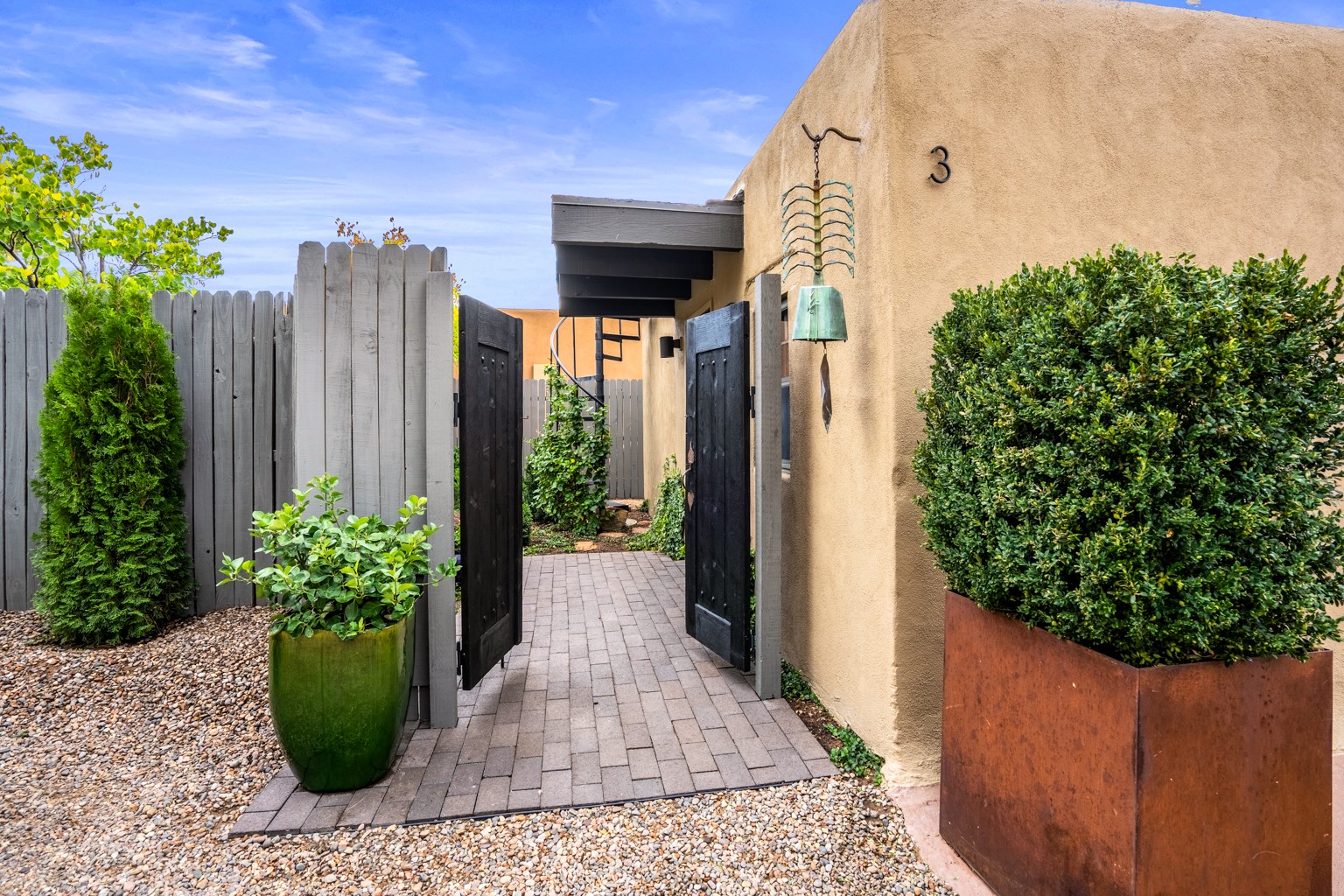 The Northeast of Santa Fe, within city limits, combines the pleasures of quiet living with the conveniences of location. On every tree-lined street are examples of newer, award-winning architecture and well-established, older adobes. In addition to the famous Plaza, this area includes all the land reaching up to the Jemez and the Sandias. Newer developments appear on your left and right as you