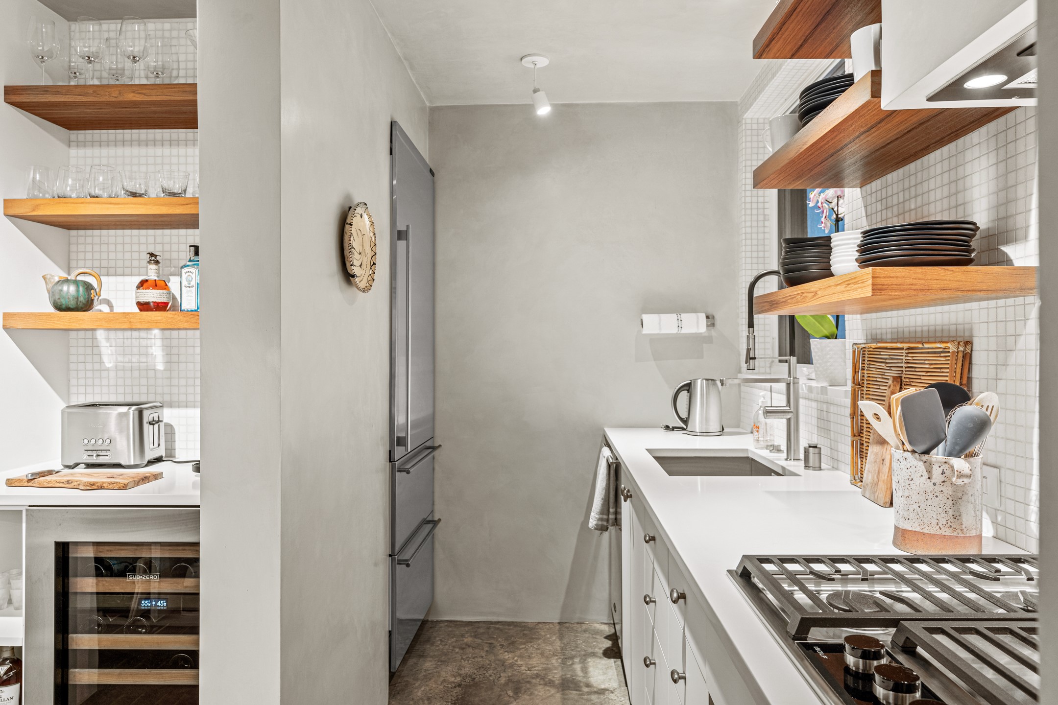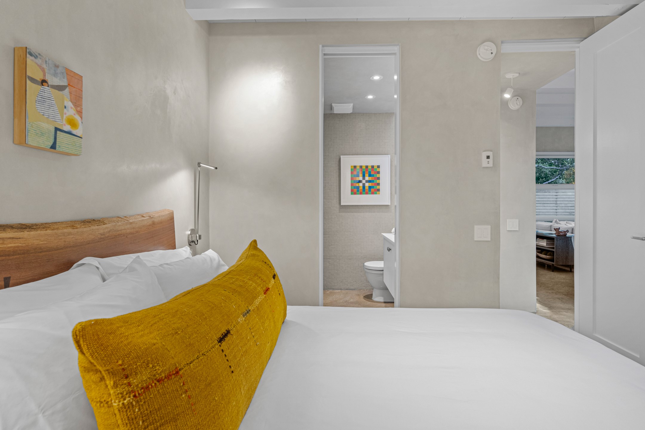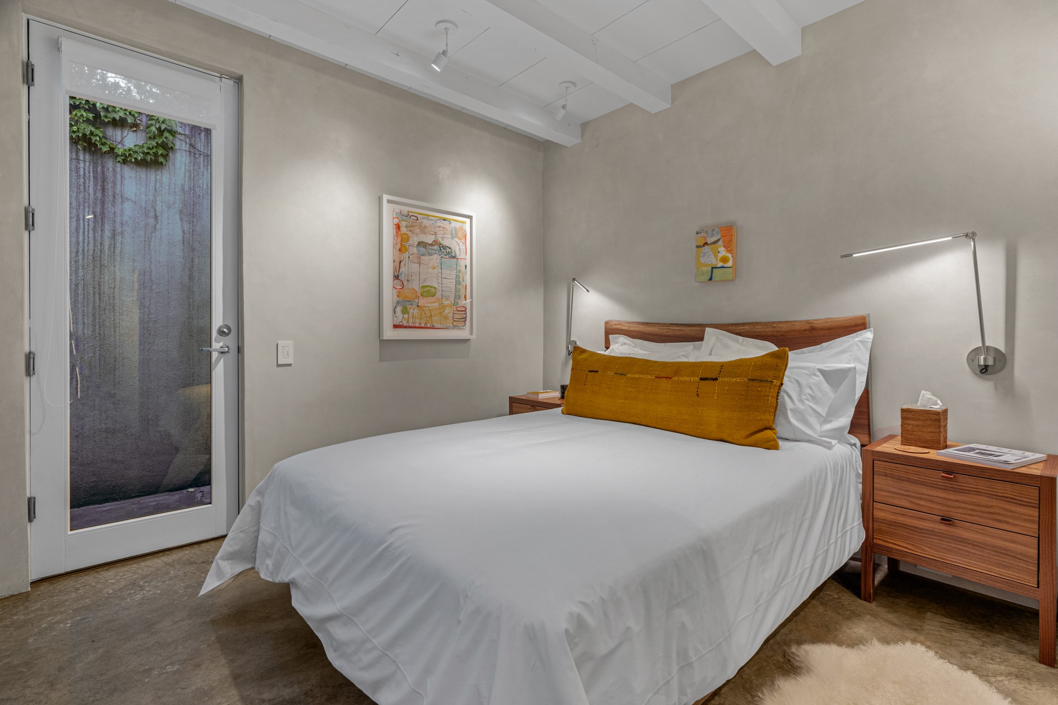 Welcome to the "Pearl House"--a stunning contemporary residence designed by acclaimed architect Trey Jordan as his personal home. This exceptional property seamlessly fuses bold architectural design with modern comforts and relaxed livability. Over the past three years, it has undergone extensive renovations featuring top-of-the-line appliances, fixtures, and finishes. Set on a private 0.29-acre lot with sweeping views of Picacho and Atalaya Peaks, the property includes a main residence with 2-bedrooms and 2-baths, plus a 2-car garage. Attached to the garage is a recently renovated heated studio/office space, along with a storage room and workshop area, offering versatile functionality for creative or active lifestyles. The outdoor spaces are equally impressive, with a tranquil dining area complete with a fireplace and a fountain--perfect for entertaining or quiet reflection. Nature lovers will appreciate the nearby Santa Fe River Trail and the renowned Dale Ball Trail System, offering miles of scenic hiking and biking. Included in the sale are approved plans for a second residence, part of the original vision for the property, designed by Trey Jordan, providing an exciting opportunity for future expansion. Ideally located within walking distance of historic Canyon Road and minutes from the cultural, culinary, and artistic attractions of downtown Santa Fe, Pearl House is a rare architectural gem in an unparalleled setting.