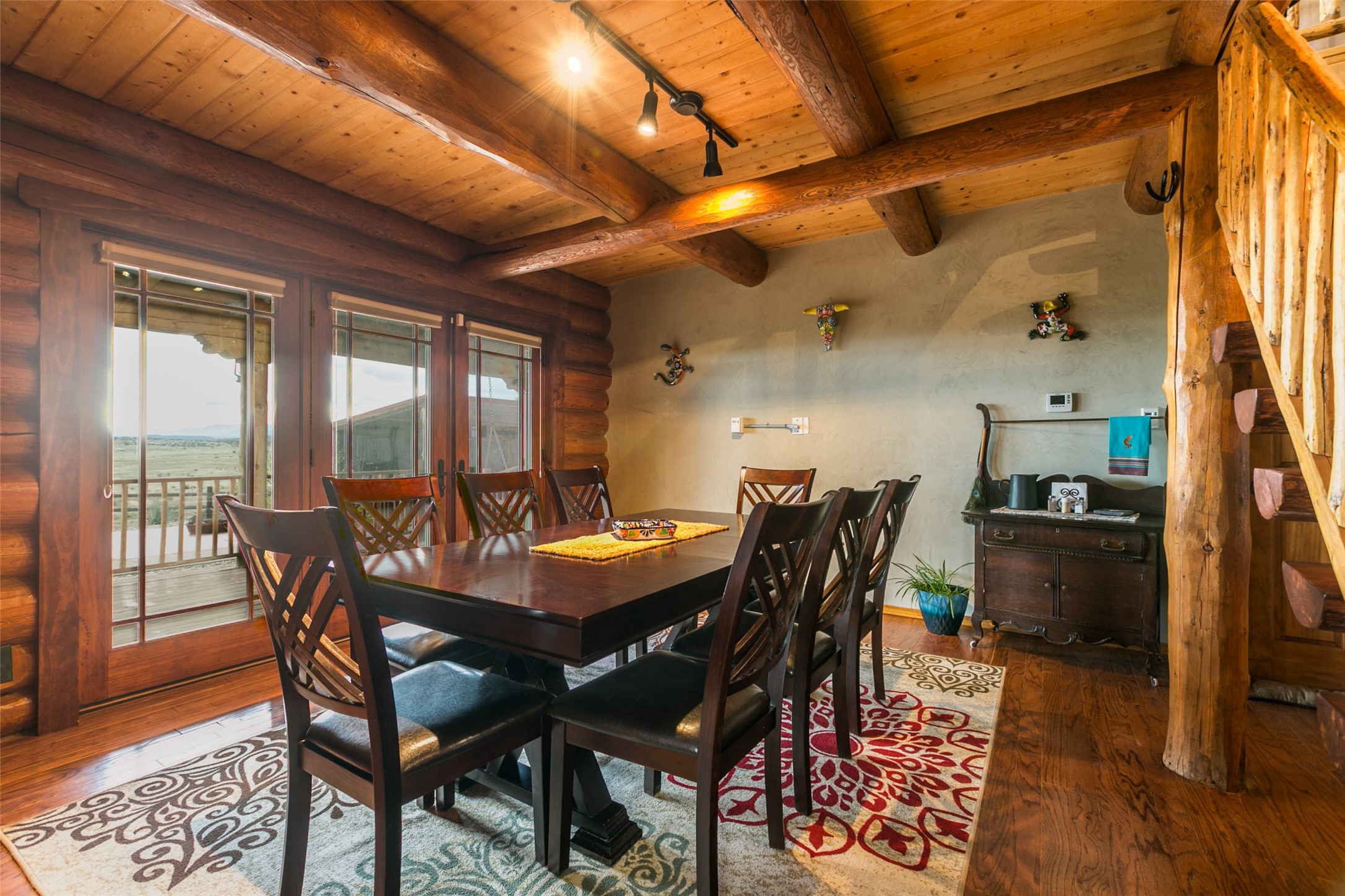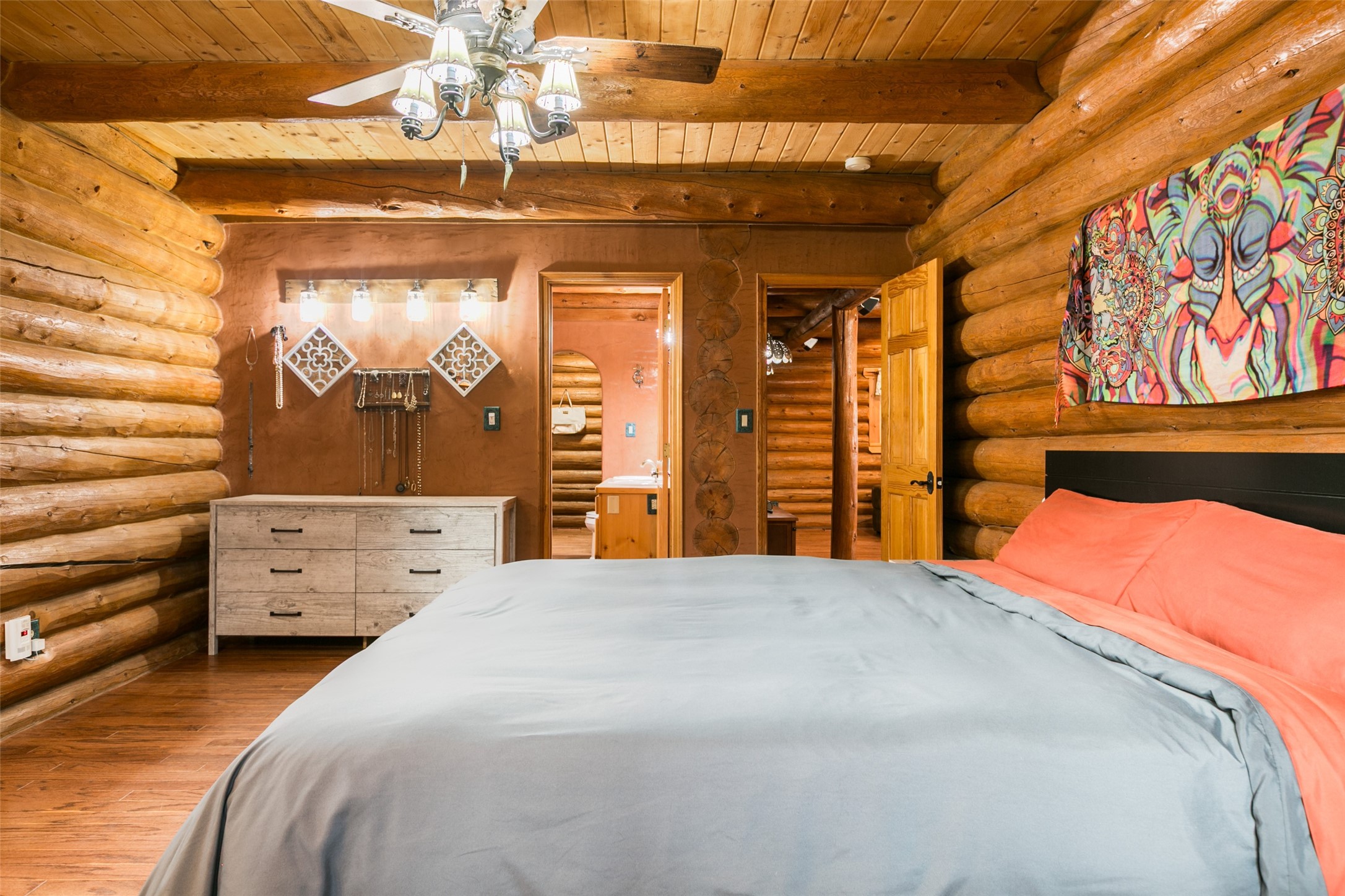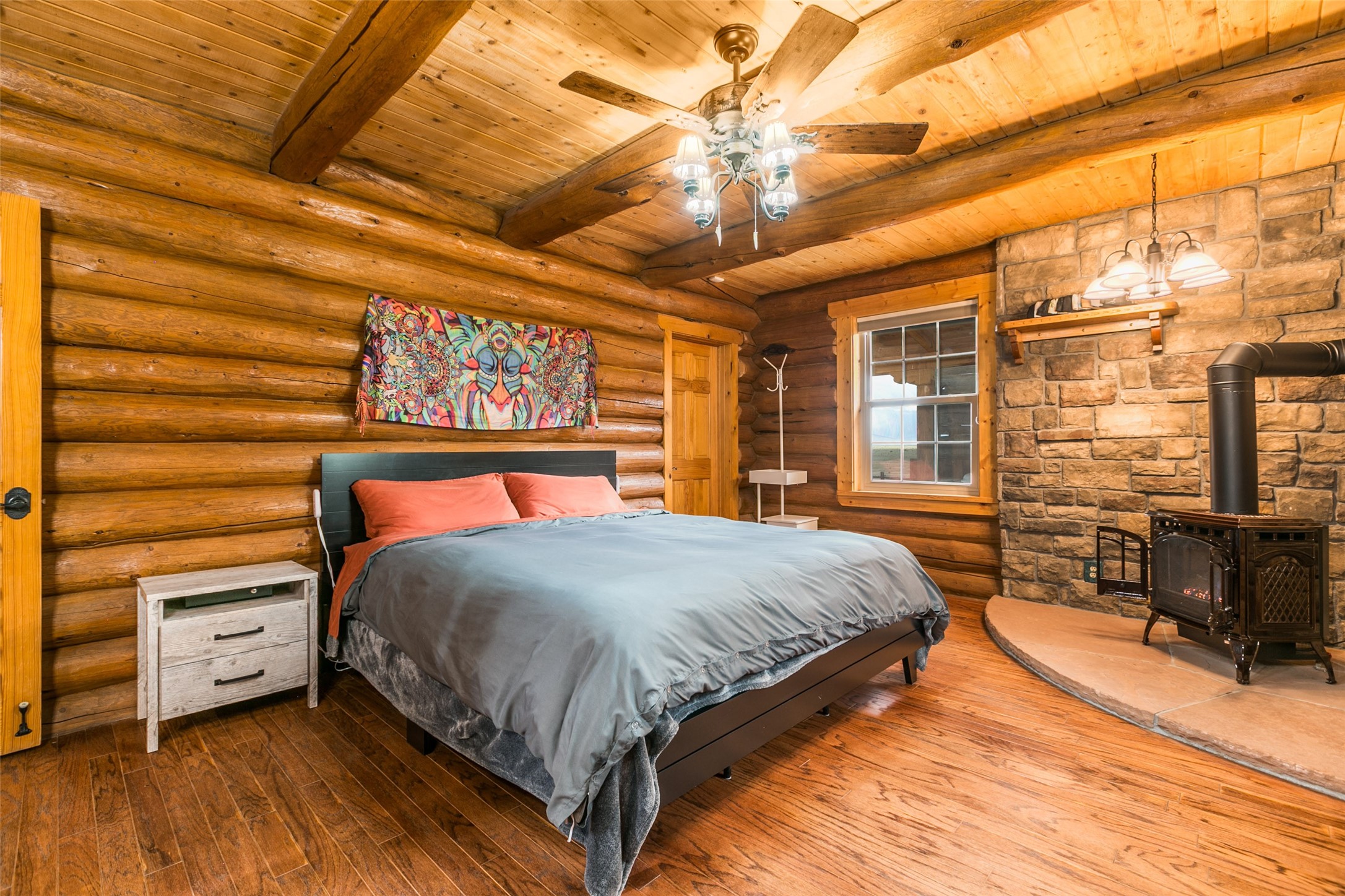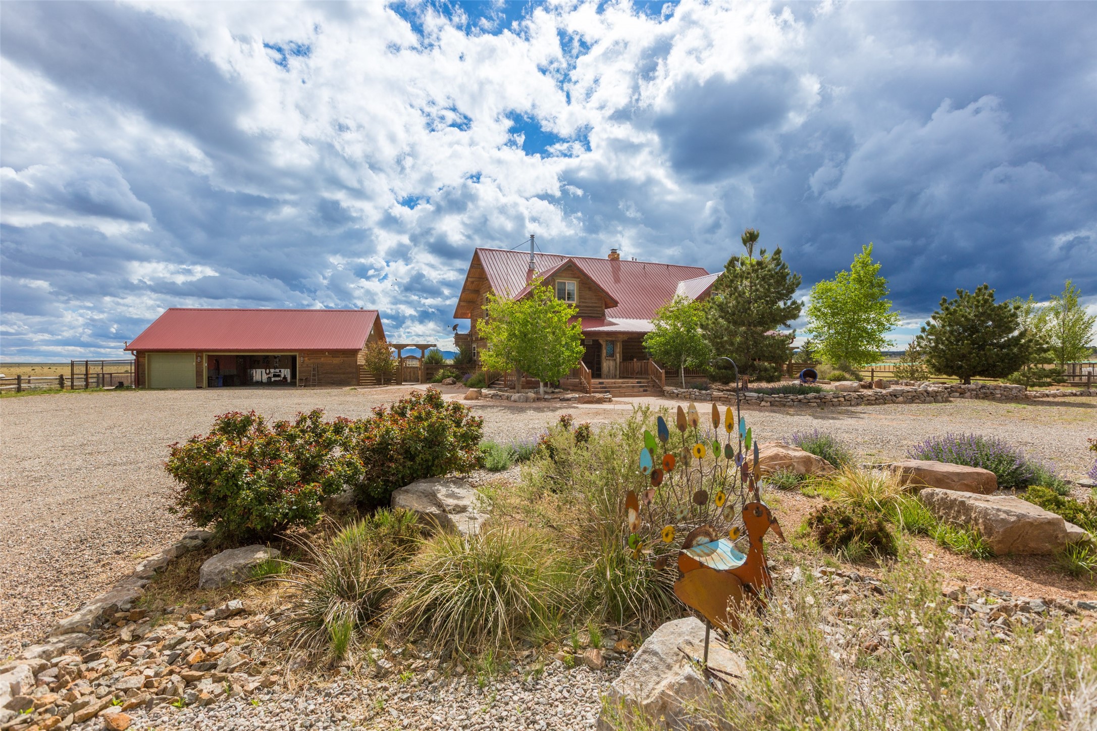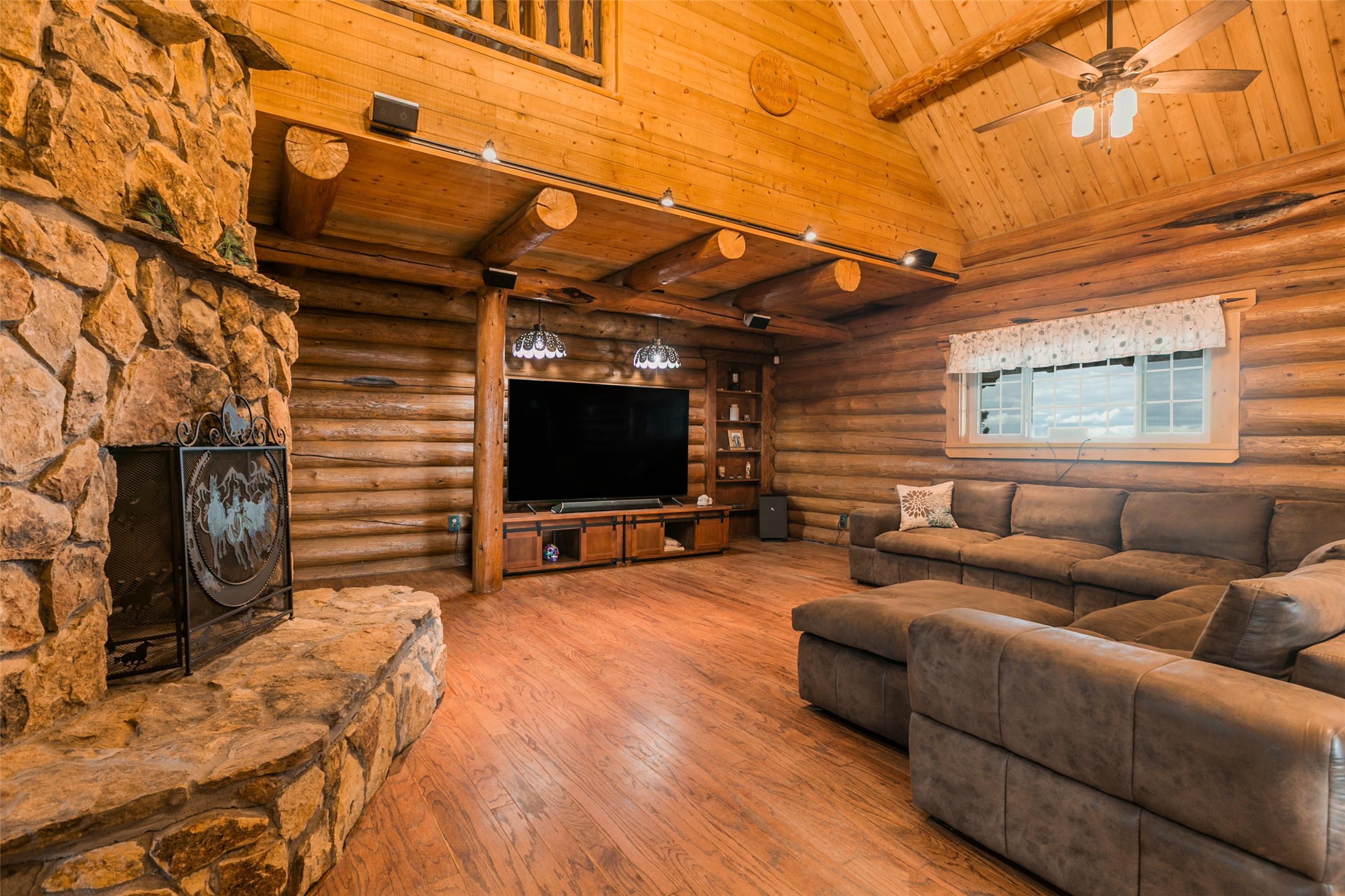 Experience unprecedented peace and privacy in this magnificent 5-bedroom, 6-bathroom log cabin home, nestled on 800 fenced acres of breathtaking landscape. Boasting 3,414 square feet of elegantly appointed living space, this property is a rare find. Step inside to soaring high ceilings, where every detail is hand crafted for luxury and comfort, including Venetian plaster finishes and rich mahogany wood floors. Gather around the stunning stone fireplace, a perfect centerpiece for cozy evenings at home. Beyond the living areas, discover thoughtful details such as a finished/heated garage, complete with a custom office and screened party room. The $250,000 Cleary barn is a standout feature, equipped with automatic doors, and recently enhanced with 4 - 24k BTU stacked mini splitsfor efficient heating and cooling. It is fully insulated with blown-in insulation and drywalled for year-round functionality.For those with a green thumb, a newly constructed 30x96 greenhouse (2025), offering endless gardening possibilities. Store your equipment with ease in two 40ft storage containers equipped with power, heat, and a cooling system.Indulge in the ultimate rural retreat where beauty, functionality, and luxury converge. Don't miss the opportunity to own this remarkable property schedule your private viewing today. To much to list, see additional property information!