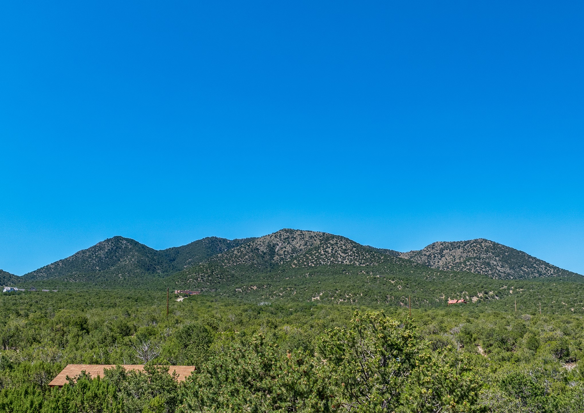Sited high on the northern slopes of the Ortiz Mountains, this working artist's retreat offers away-from-it-all serenity while still being with an easy commute of Santa Fe. The home and studio is centered on a gently sloping 15.59 acre lot that offers space for gardening, horses, other animals, or outbuildings. The home features three bedrooms and two full baths, with soaring ceilings in the living room and kitchen, and a primary bedroom on the second floor with rooftop deck. Brick and wood floors, wood ceilings, and an interior adobe wall exude warmth. Outside, a north facing patio takes in breathtaking views across the Galisteo Basin to the Sangre de Cristo's. The attached artist's studio has its own entrance and bathroom, and could easily be converted back to its previous use as a guest house if additional living space or rental income was desired. Two storage sheds are on the lot, including a large and sturdy shed that could be used as shop space or more studio space. Connected to public electric, with fast internet and a good well. The property also has a Bed and Breakfast license from Santa Fe County. Owner will offer a $25,000 credit to replace shingle roof with metal roofing, and may offer owner financing with substantial down. 20 miles to the south side of Santa Fe, 57 miles to the Albuquerque airport, and near dining and entertainment opportunities in Madrid and Cerrillos. Accepting back up offers.