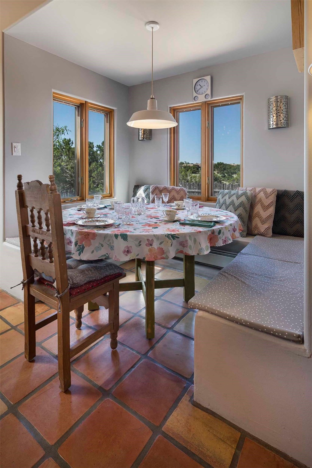 PRICE IMPROVEMENT! Welcome to 11 Balsa Court, where sustainability meets Southwest charm in the heart of Eldorado. This home features a fully owned 22-panel ground-mounted solar system (installed in 2021) that keeps electric bills under $12/month--a rare and valuable benefit.Backed by a greenbelt with stunning views of the San Pedro, Ortiz, and Jemez Mountains, the home offers privacy, open skies, and constant connection to nature. Enjoy sunsets from the bedroom and stargazing from the patio.Inside, the layout is open and comfortable. The great room features beautiful viga ceilings, a kiva fireplace, Saltillo tile floors, and plenty of natural light. The kitchen is equipped with a large center island and modern lighting, and there's a built-in banco for casual dining. All rooms are generously sized, offering flexibility for how you live and work. Out back, a flagstone patio with a ramada creates a shaded outdoor living space ideal for relaxing or entertaining. In addition, there are 17 new windows that were replaced in the spring of 2023, Renewal by Anderson, energy-efficient.The fully fenced yard makes life easy for pet owners, and the garden is already established with native trees and perennials. Living in Eldorado means easy access to miles of trails, a tight-knit community, great schools, local markets and restaurants, and the kind of quiet that's getting harder to find. This is the kind of property that makes it easy to settle in and feel at home.