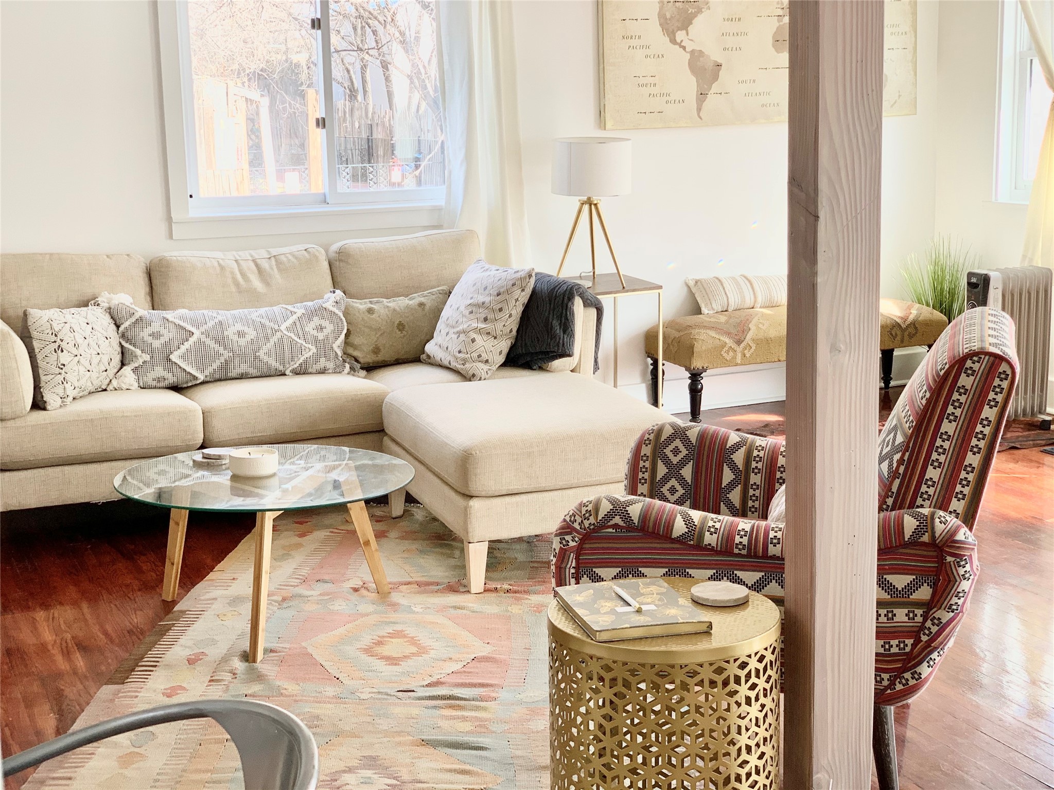 Multi-faceted commercial-residential property, turnkey and ready to go with rental income. Currently operating as a contemporary art gallery, an artist studio, an Airbnb, and a long-term home rental, this property is a gem in the artist community of Madrid. Located right in the heart of town, but with private courtyard areas, this unique plot offers beauty and reprieve while not sacrificing prime location. Property features: Main gallery/commercial floor with adjoining artist studio, kitchen, and bath, second level, private-entry loft apartment currently operating as a licensed Airbnb, and a private, free-standing 3bd/1ba home. Parking for 3 cars. All spaces recently renovated, with excellent natural lighting, this property shines as a bright and fresh investment, business opportunity, residential home, or all of the above. Ideal for an artist or entrepreneur. Option to purchase the existing business, and to keep the long-term rental tenant. Additional option to purchase all furniture/items in Airbnb to enable continuous business operation upon sale. Details to be discussed with the current owner and business operator. Recent improvements include new septic, new electrical panel, mini-split AC/heat units, exterior and interior paint job, lighting upgrades, exterior power-washing, gutter cleaning, professional window cleaning, and landscape upgrades. The property features two large water tanks, one for rainwater catchment, and other for freshwater delivery. Membership to Madrid Community Water will also transfer with the sale.