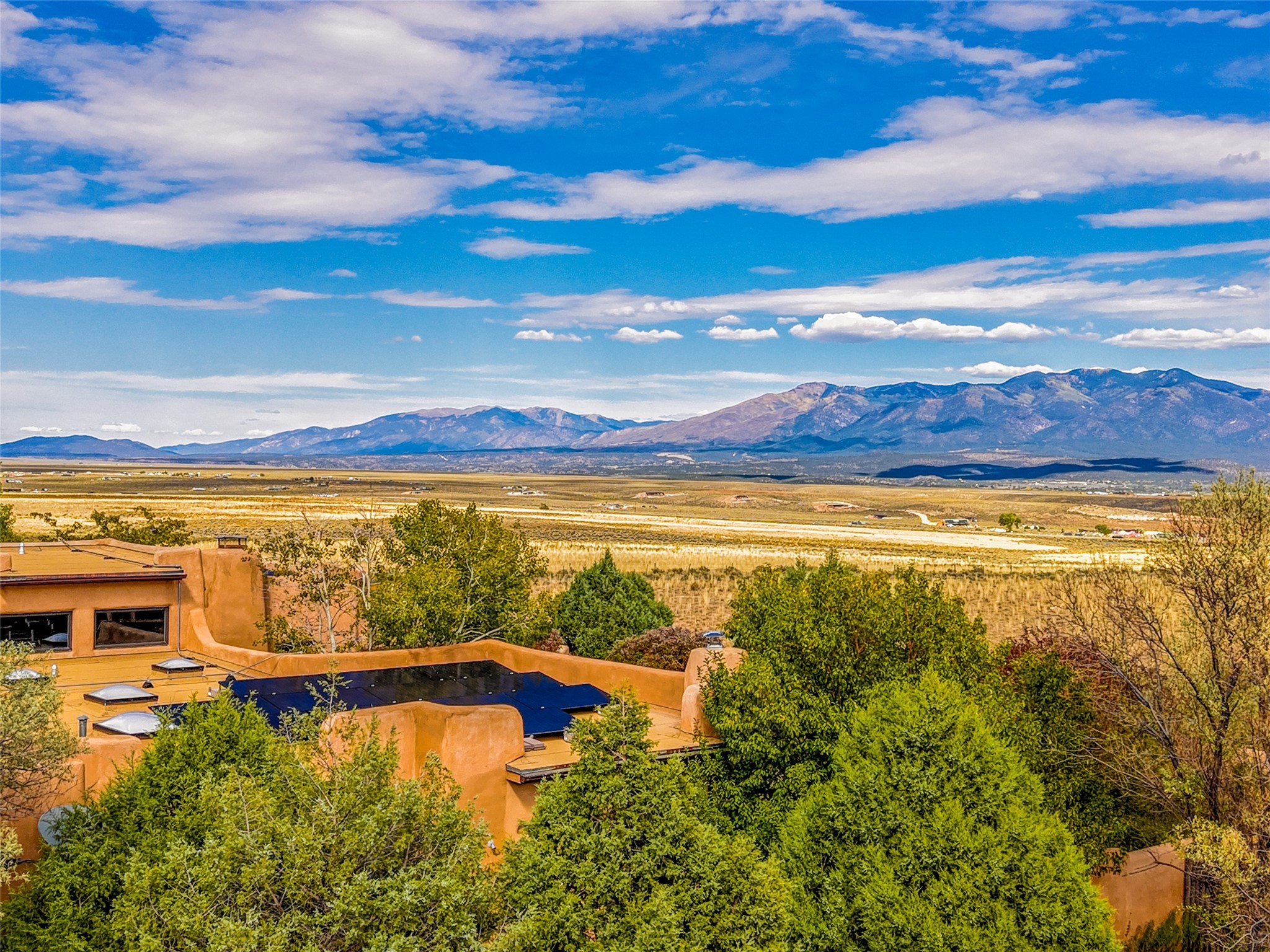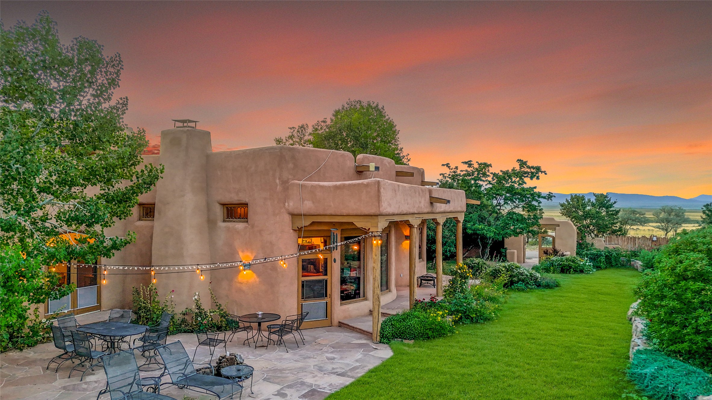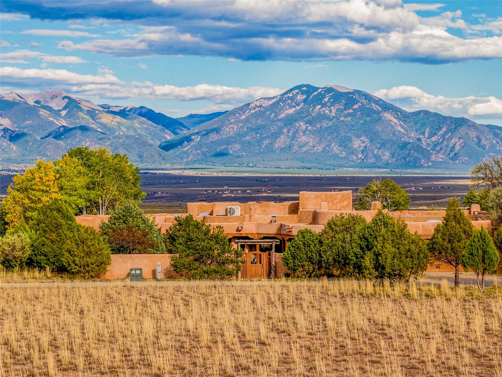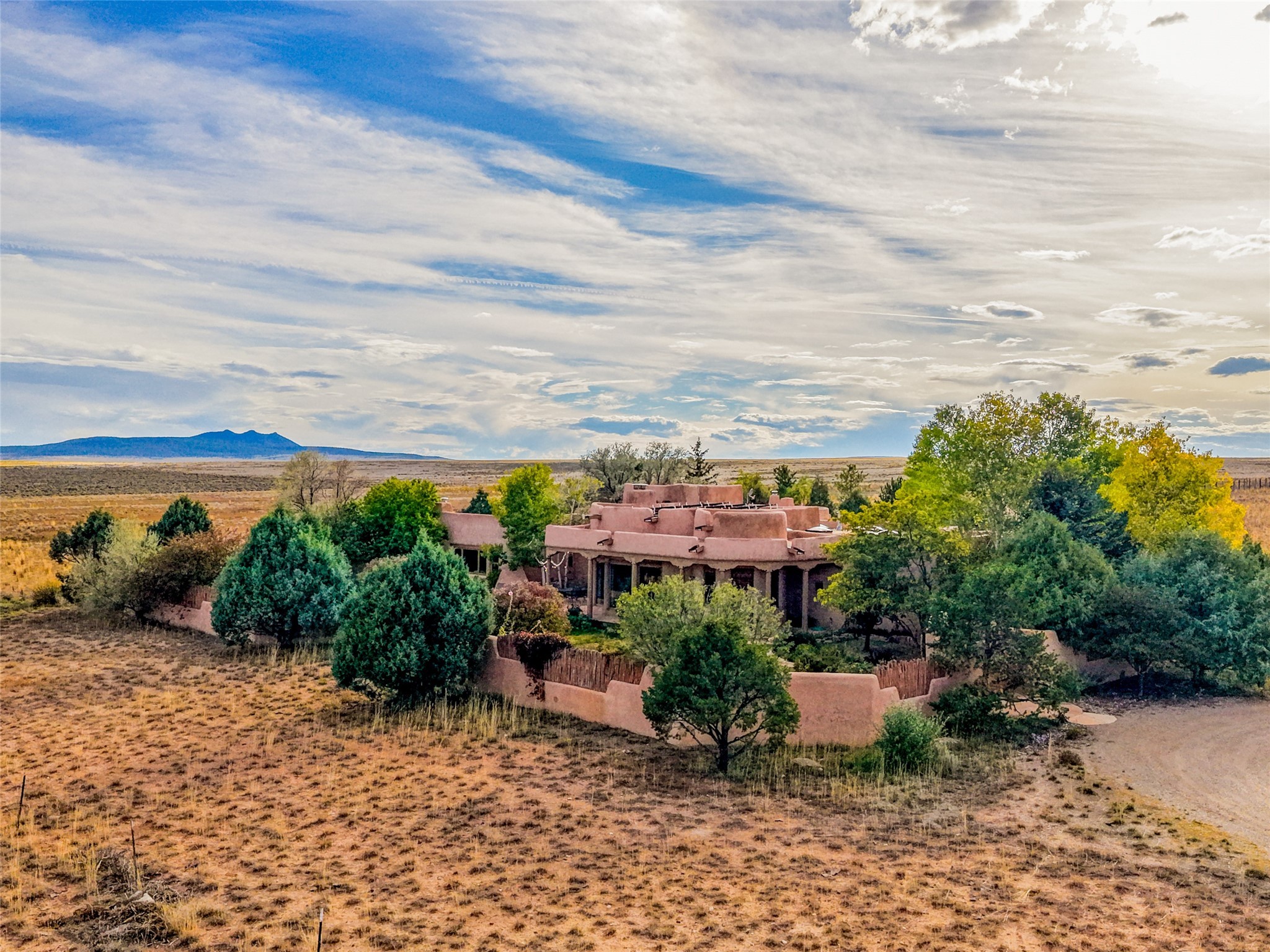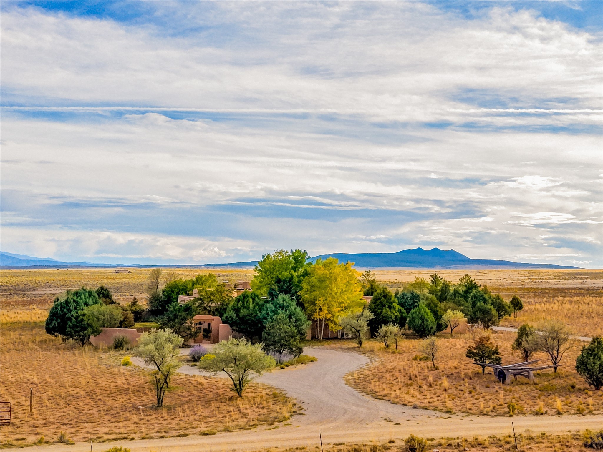Welcome to a truly exceptional Northern New Mexico retreat--110 acres of serene beauty and luxurious living. This remarkable property features a stunning 4-bedroom, 3-bath primary residence once showcased in Enchanted Homes magazine, a testament to its timeless design, high-level craftsmanship, and one-of-a-kind charm.Inside, you'll find hand-carved beams, a magnificent stone fireplace, and warm, inviting spaces designed for comfort and elegance. The chef's kitchen is a dream for culinary enthusiasts, while multiple private patios and lush, thoughtfully landscaped gardens create a true oasis in the desert--perfect for quiet mornings, lively gatherings, and starlit evenings.Conveniently located just 10 quick minutes west of the Taos Regional Airport, this extraordinary estate is as functional as it is beautiful. A grid-tied solar system, private well, and high-speed fiber optic internet ensure modern sustainability and convenience. The land includes well-appointed outbuildings: storage, tack room, hay barn, and a 3-bedroom, 2-bath manufactured caretaker's home--ideal for guests, a ranch manager, or extended family.Take in breathtaking 360-degree views from every angle and enjoy the option for an elk hunting license, adding unique appeal for outdoor enthusiasts. Whether you dream of tending gardens, riding horses, or simply soaking up the peace and privacy under expansive skies, this property invites you to experience the very best of refined country living.If you've been searching for a luxurious private sanctuary that must be seen to be truly appreciated, this is the one.