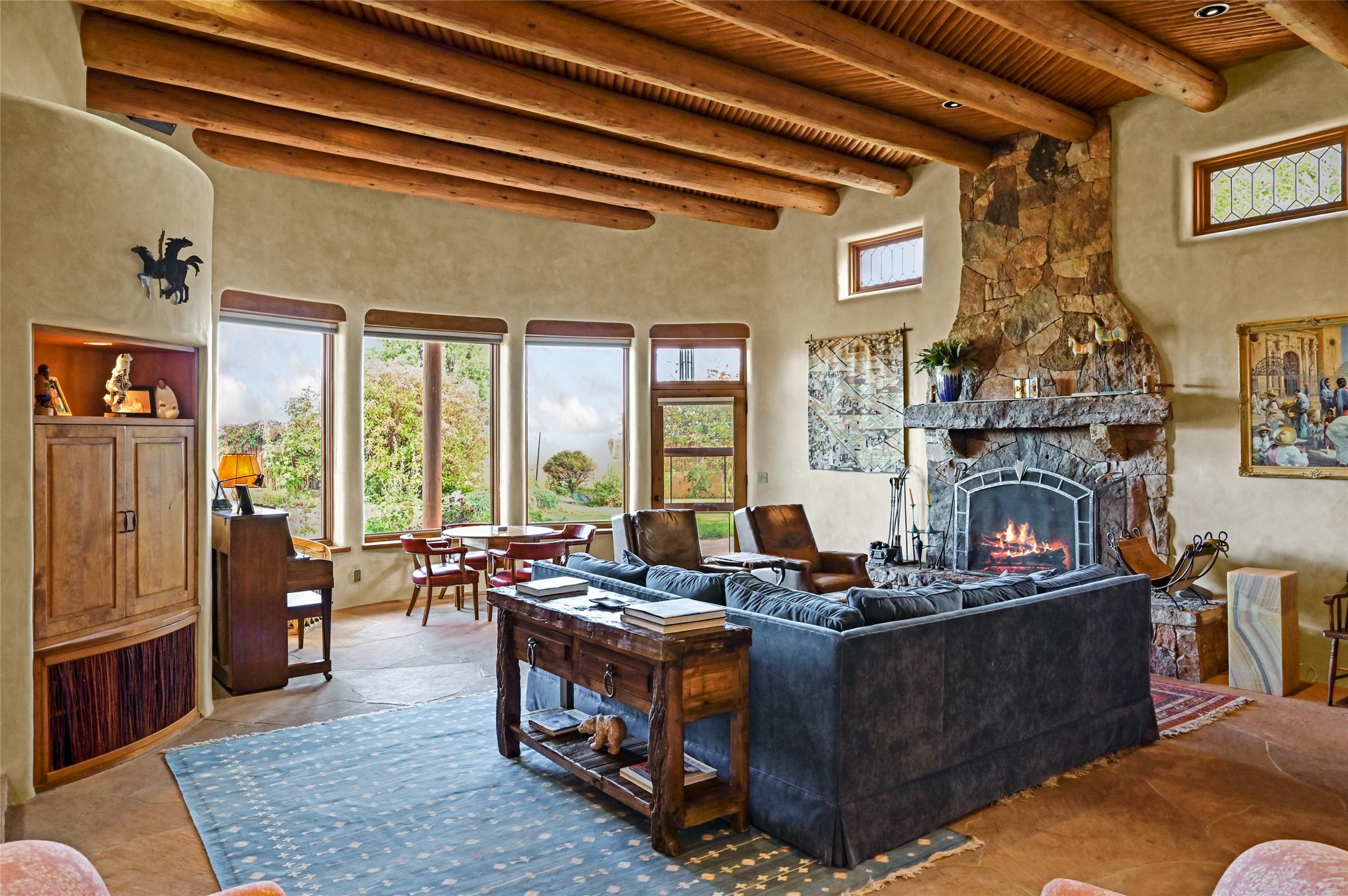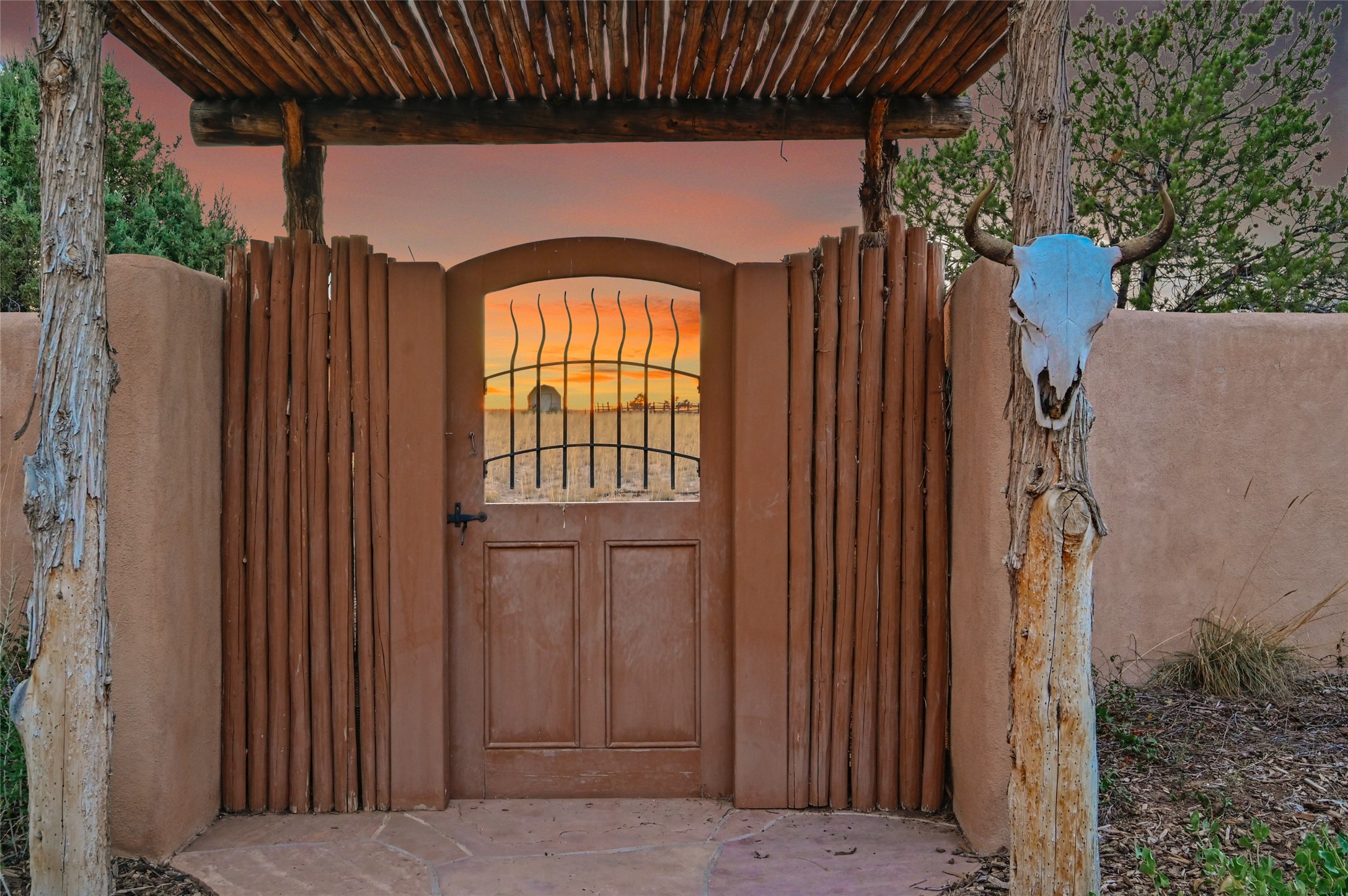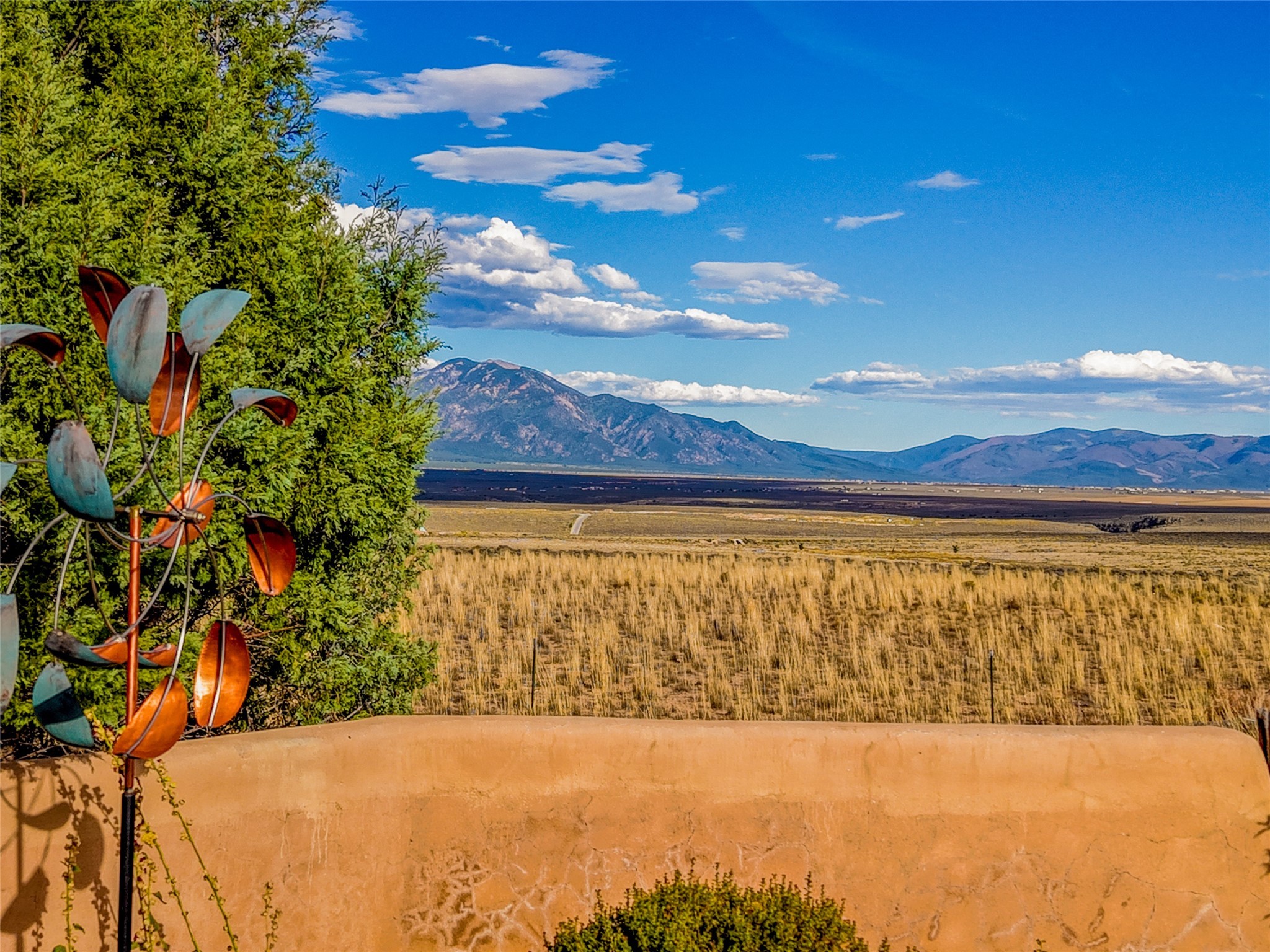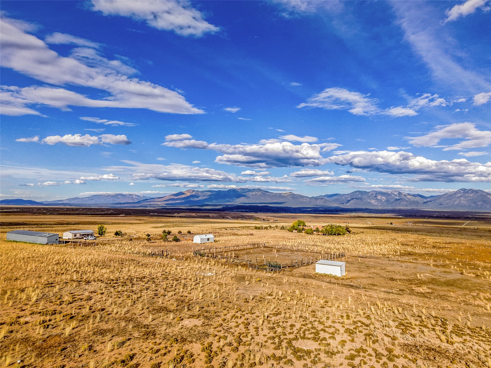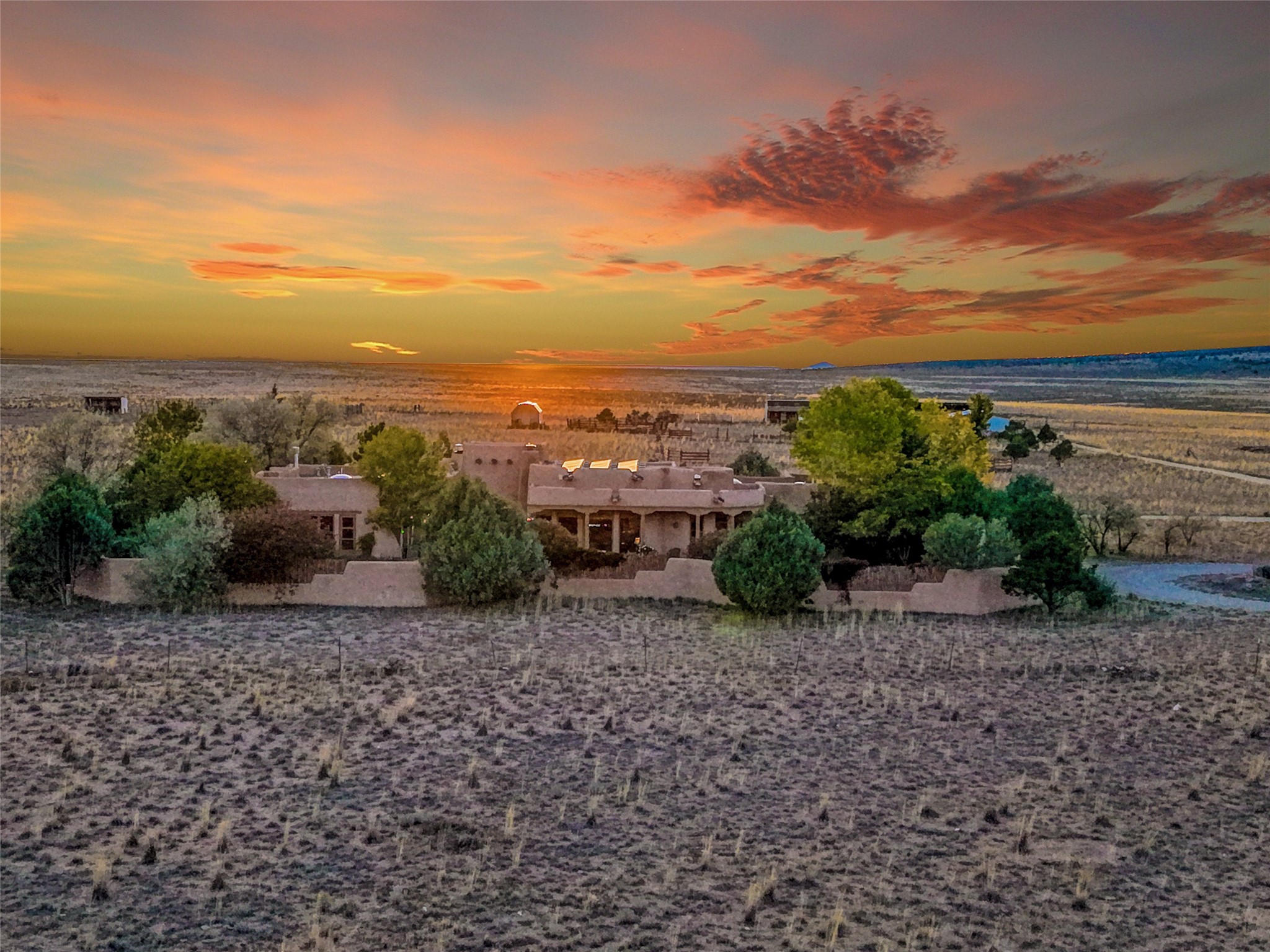 Welcome to a truly exceptional Northern New Mexico retreat--110 acres of serene beauty and luxurious living. This remarkable property features a stunning 4-bedroom, 3-bath primary residence once showcased in Enchanted Homes magazine, a testament to its timeless design, high-level craftsmanship, and one-of-a-kind charm.Inside, you'll find hand-carved beams, a magnificent stone fireplace, and warm, inviting spaces designed for comfort and elegance. The chef's kitchen is a dream for culinary enthusiasts, while multiple private patios and lush, thoughtfully landscaped gardens create a true oasis in the desert--perfect for quiet mornings, lively gatherings, and starlit evenings.Conveniently located just 10 quick minutes west of the Taos Regional Airport, this extraordinary estate is as functional as it is beautiful. A grid-tied solar system, private well, and high-speed fiber optic internet ensure modern sustainability and convenience. The land includes well-appointed outbuildings: storage, tack room, hay barn, and a 3-bedroom, 2-bath manufactured caretaker's home--ideal for guests, a ranch manager, or extended family.Take in breathtaking 360-degree views from every angle and enjoy the option for an elk hunting license, adding unique appeal for outdoor enthusiasts. Whether you dream of tending gardens, riding horses, or simply soaking up the peace and privacy under expansive skies, this property invites you to experience the very best of refined country living.If you've been searching for a luxurious private sanctuary that must be seen to be truly appreciated, this is the one.