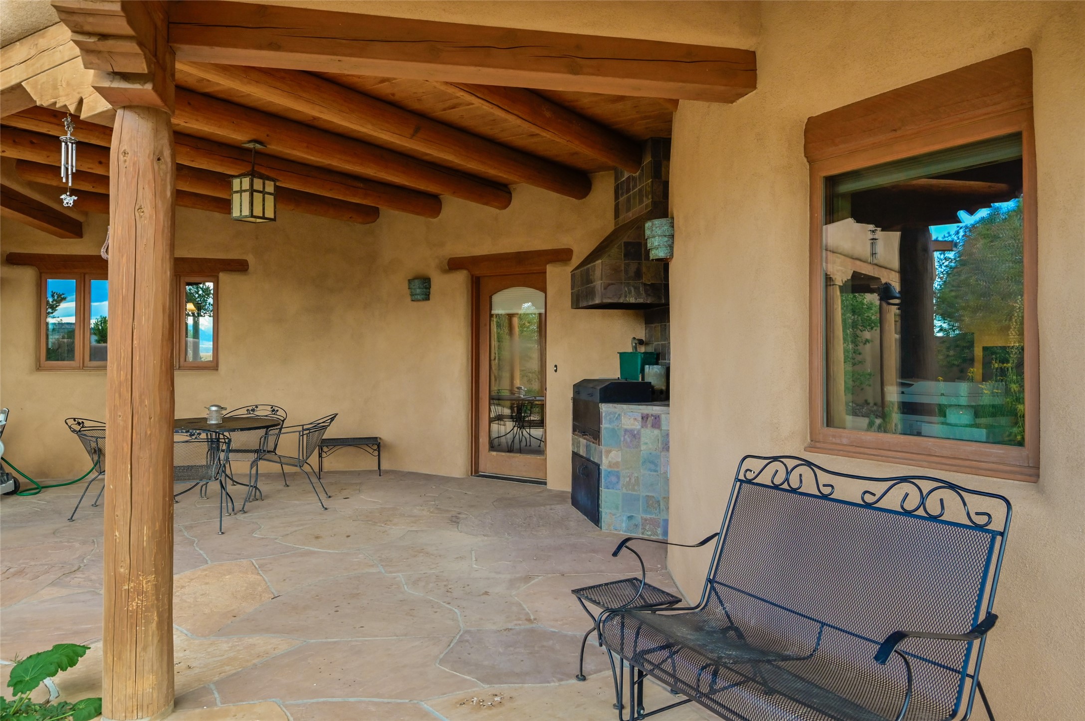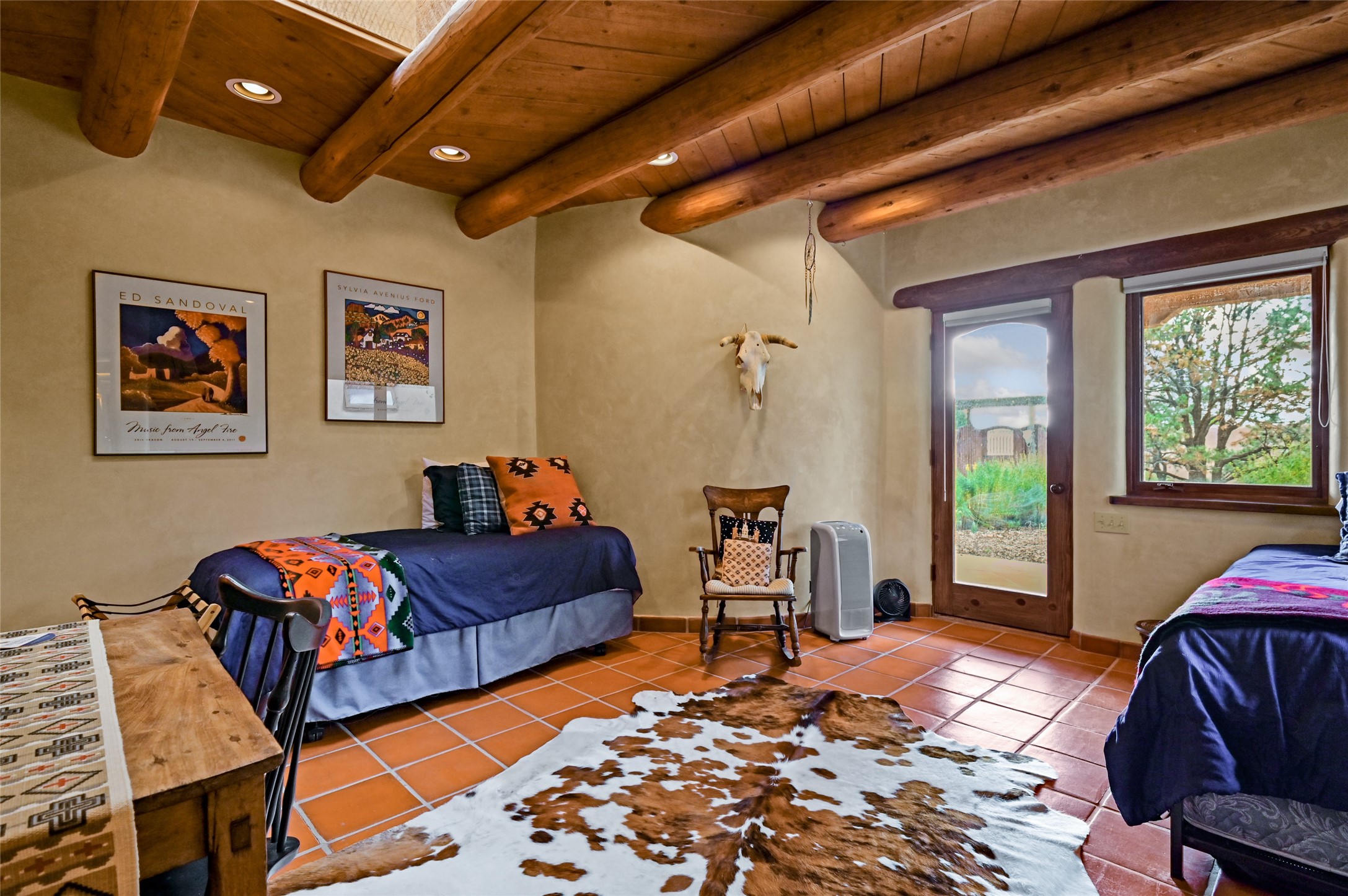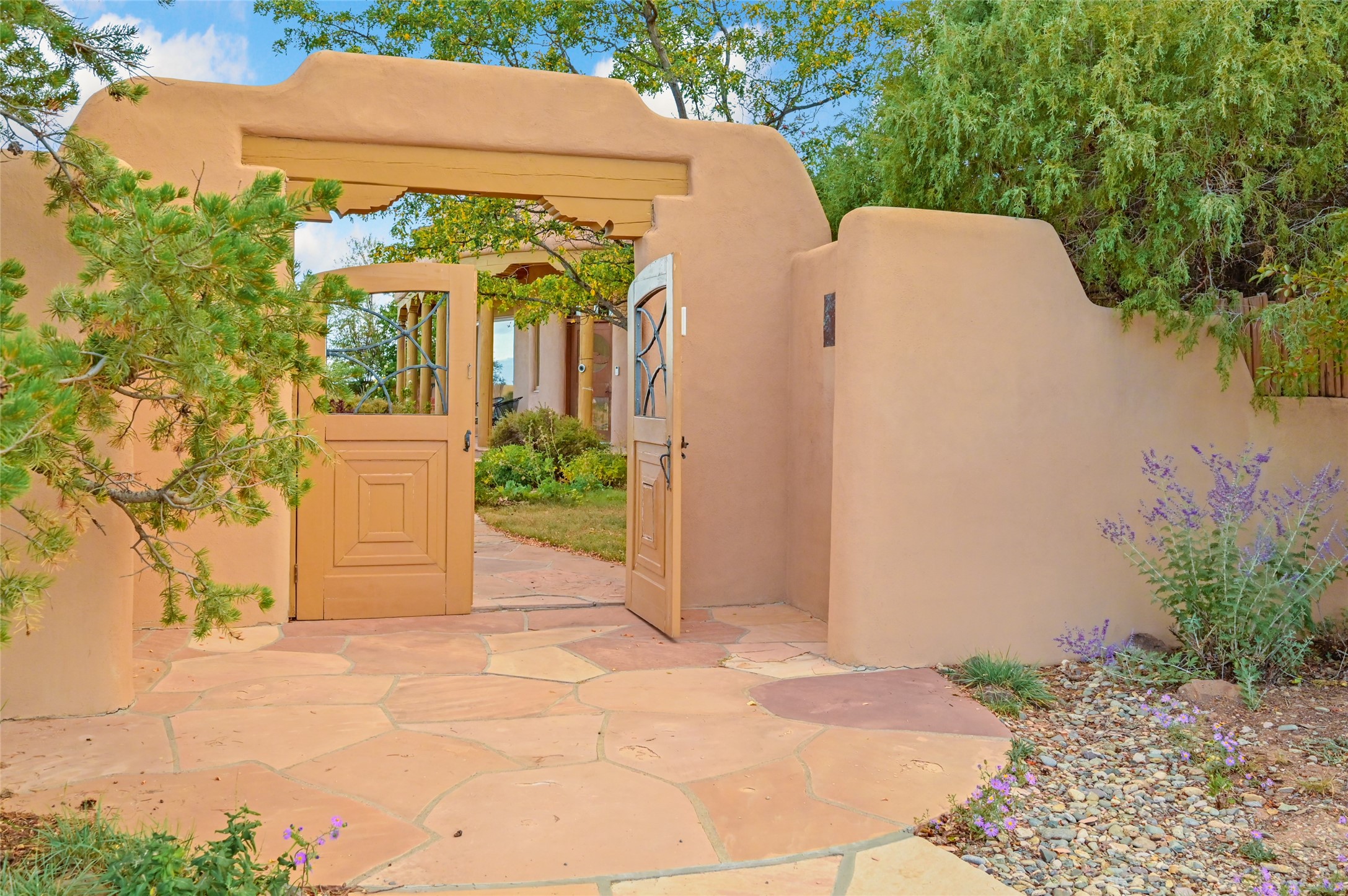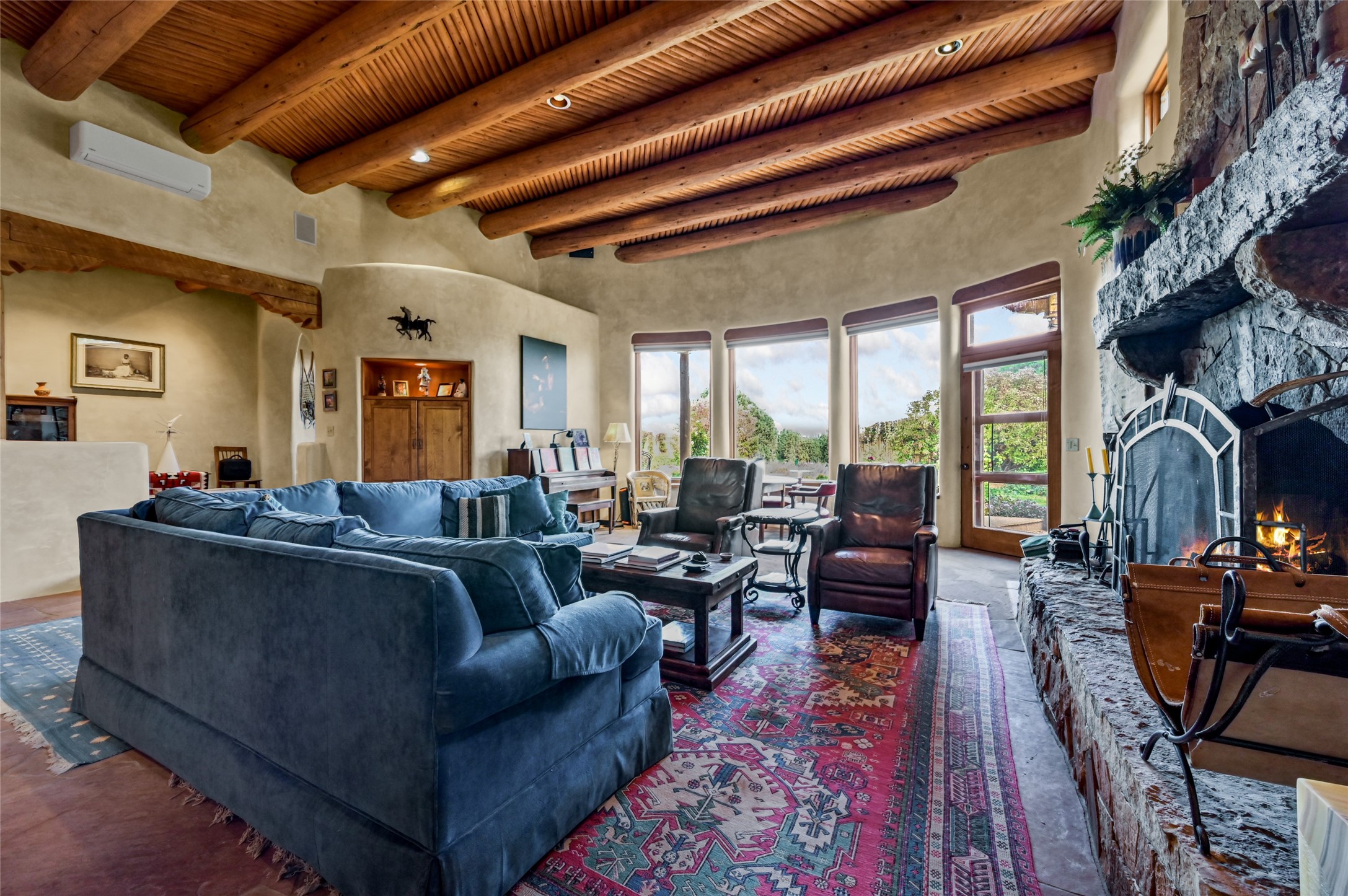 Welcome to a truly exceptional Northern New Mexico retreat--110 acres of serene beauty and luxurious living. This remarkable property features a stunning 4-bedroom, 3-bath primary residence once showcased in Enchanted Homes magazine, a testament to its timeless design, high-level craftsmanship, and one-of-a-kind charm.Inside, you'll find hand-carved beams, a magnificent stone fireplace, and warm, inviting spaces designed for comfort and elegance. The chef's kitchen is a dream for culinary enthusiasts, while multiple private patios and lush, thoughtfully landscaped gardens create a true oasis in the desert--perfect for quiet mornings, lively gatherings, and starlit evenings.Conveniently located just 10 quick minutes west of the Taos Regional Airport, this extraordinary estate is as functional as it is beautiful. A grid-tied solar system, private well, and high-speed fiber optic internet ensure modern sustainability and convenience. The land includes well-appointed outbuildings: storage, tack room, hay barn, and a 3-bedroom, 2-bath manufactured caretaker's home--ideal for guests, a ranch manager, or extended family.Take in breathtaking 360-degree views from every angle and enjoy the option for an elk hunting license, adding unique appeal for outdoor enthusiasts. Whether you dream of tending gardens, riding horses, or simply soaking up the peace and privacy under expansive skies, this property invites you to experience the very best of refined country living.If you've been searching for a luxurious private sanctuary that must be seen to be truly appreciated, this is the one.
