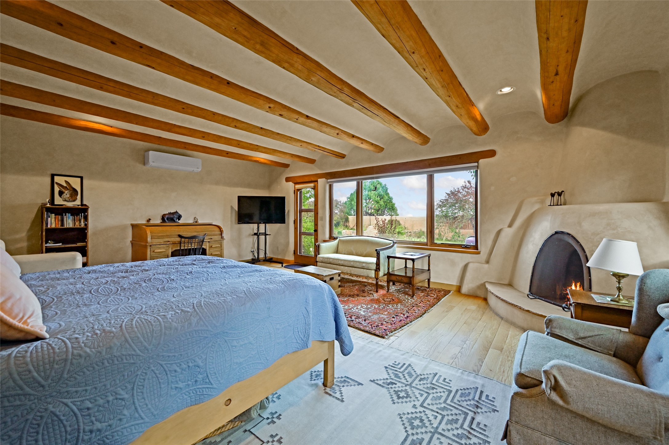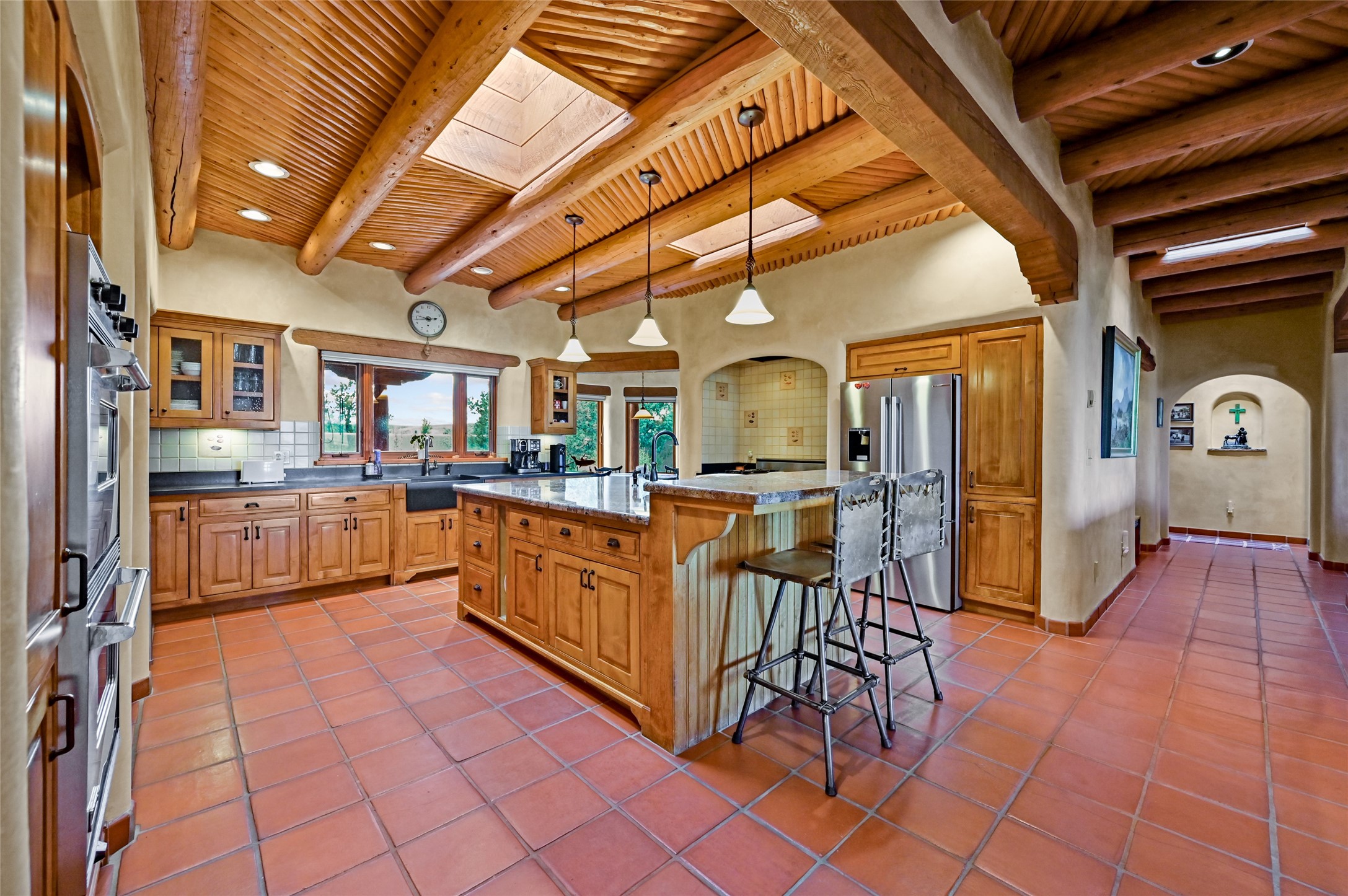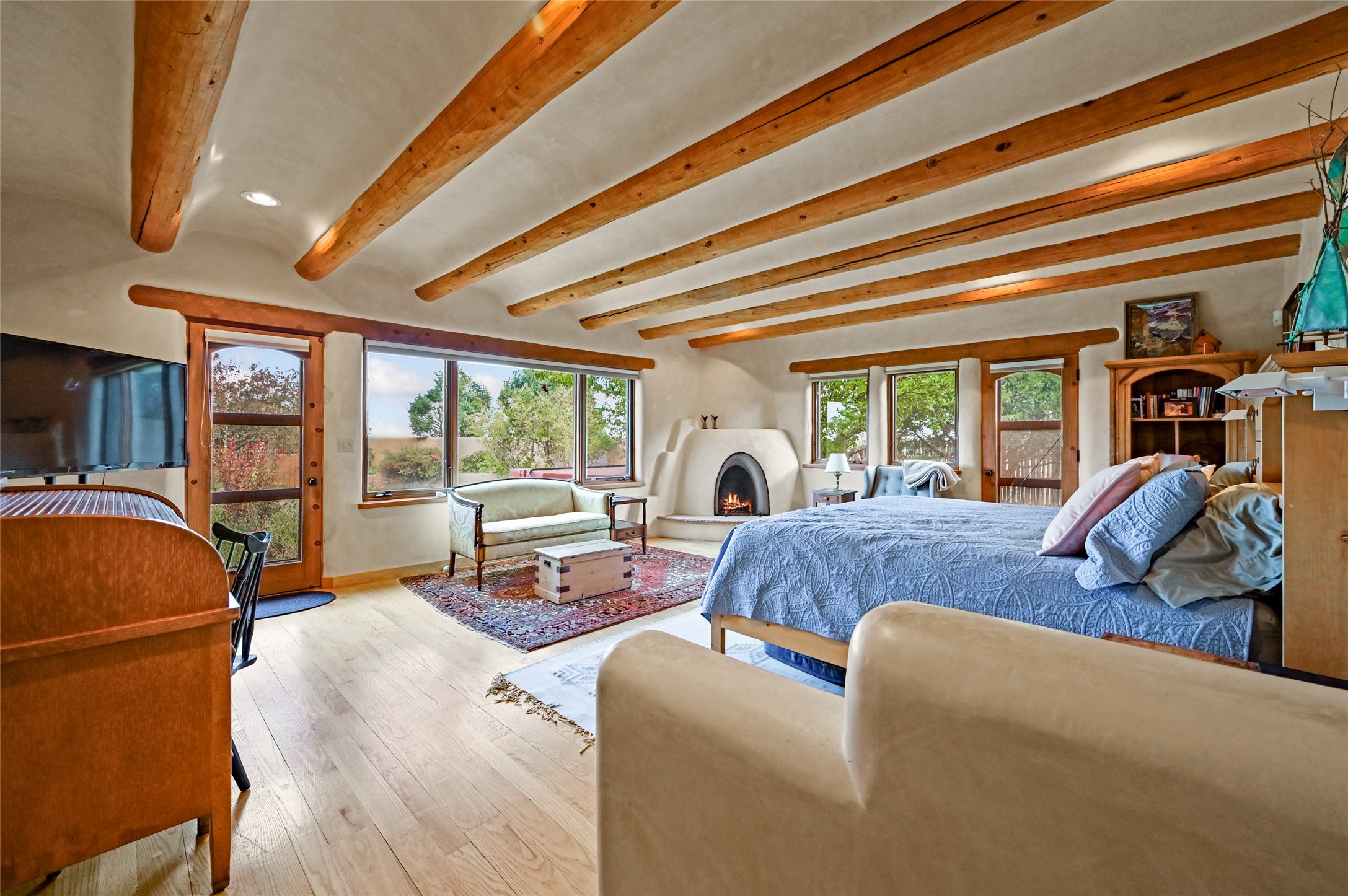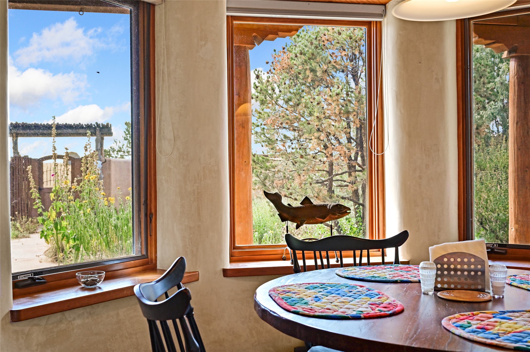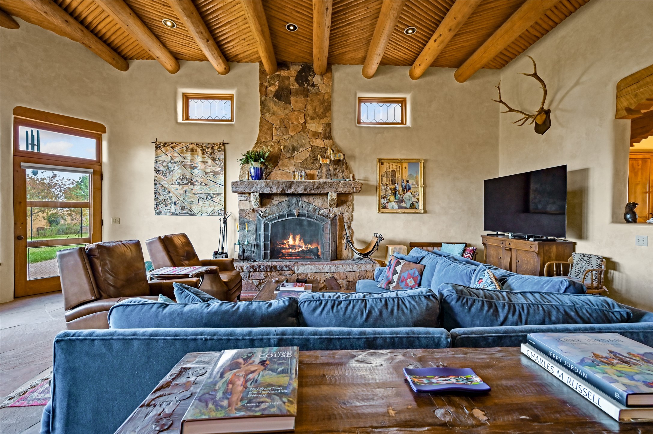 Welcome to a truly exceptional Northern New Mexico retreat--110 acres of serene beauty and luxurious living. This remarkable property features a stunning 4-bedroom, 3-bath primary residence once showcased in Enchanted Homes magazine, a testament to its timeless design, high-level craftsmanship, and one-of-a-kind charm.Inside, you'll find hand-carved beams, a magnificent stone fireplace, and warm, inviting spaces designed for comfort and elegance. The chef's kitchen is a dream for culinary enthusiasts, while multiple private patios and lush, thoughtfully landscaped gardens create a true oasis in the desert--perfect for quiet mornings, lively gatherings, and starlit evenings.Conveniently located just 10 quick minutes west of the Taos Regional Airport, this extraordinary estate is as functional as it is beautiful. A grid-tied solar system, private well, and high-speed fiber optic internet ensure modern sustainability and convenience. The land includes well-appointed outbuildings: storage, tack room, hay barn, and a 3-bedroom, 2-bath manufactured caretaker's home--ideal for guests, a ranch manager, or extended family.Take in breathtaking 360-degree views from every angle and enjoy the option for an elk hunting license, adding unique appeal for outdoor enthusiasts. Whether you dream of tending gardens, riding horses, or simply soaking up the peace and privacy under expansive skies, this property invites you to experience the very best of refined country living.If you've been searching for a luxurious private sanctuary that must be seen to be truly appreciated, this is the one.