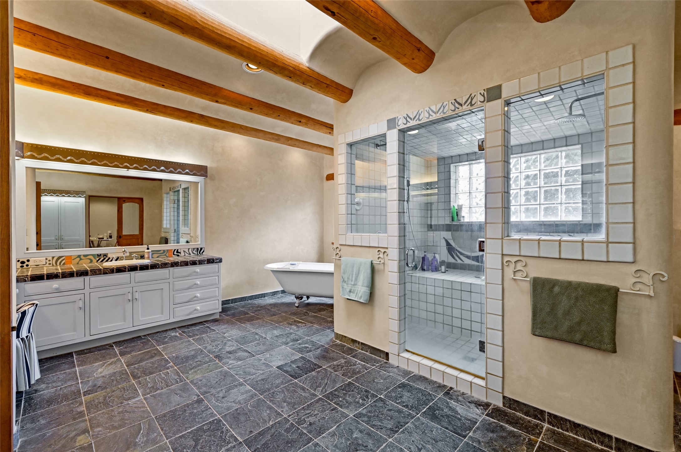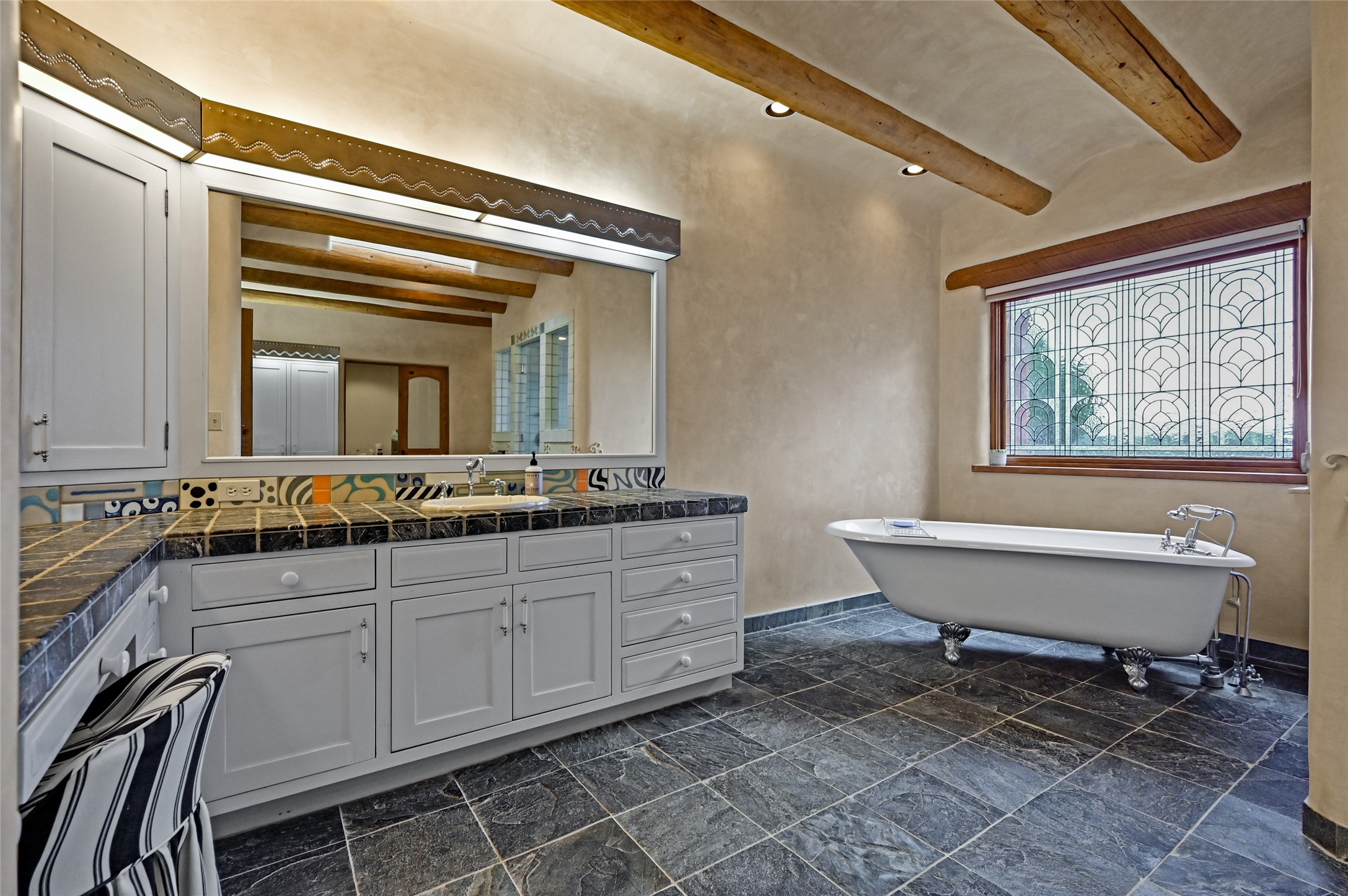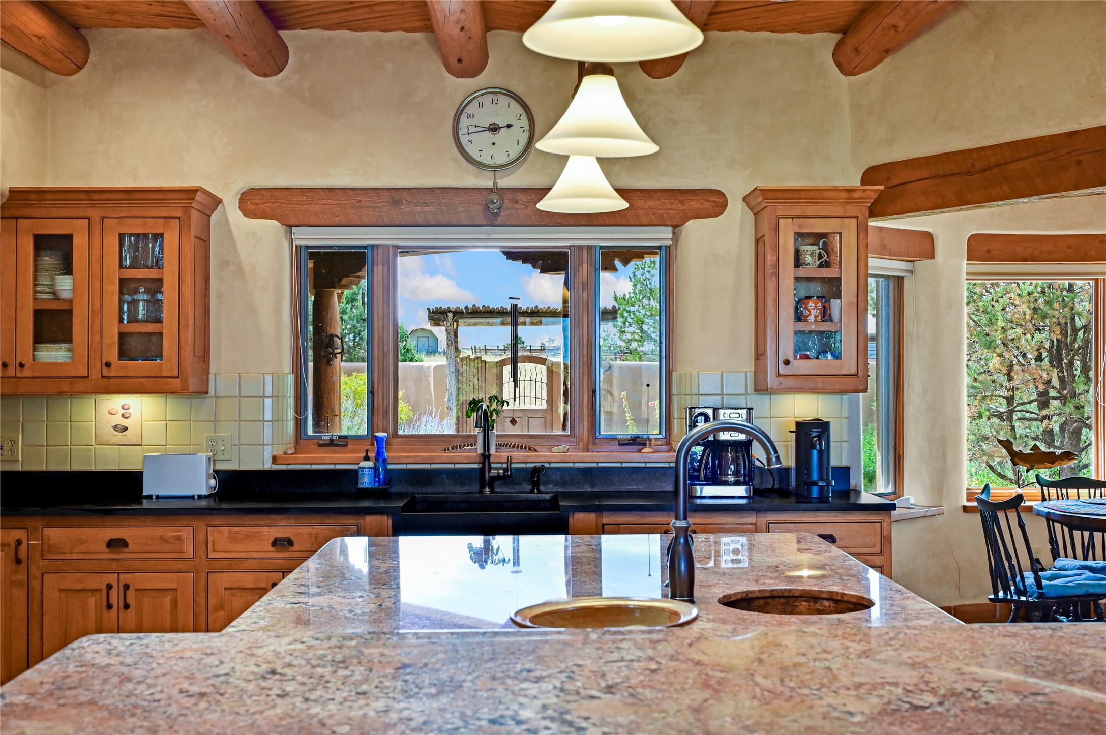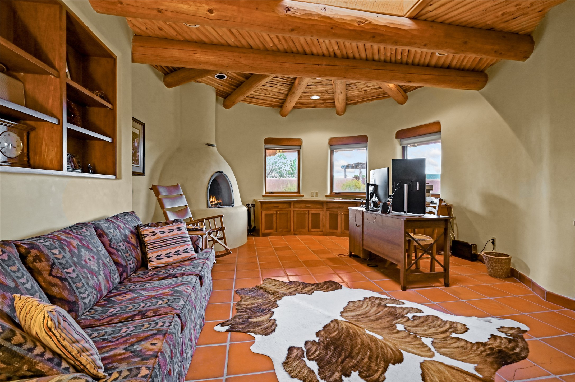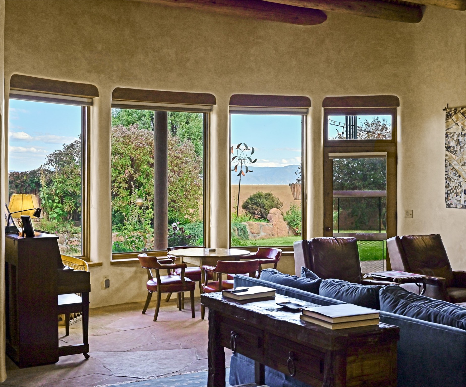 Welcome to a truly exceptional Northern New Mexico retreat--110 acres of serene beauty and luxurious living. This remarkable property features a stunning 4-bedroom, 3-bath primary residence once showcased in Enchanted Homes magazine, a testament to its timeless design, high-level craftsmanship, and one-of-a-kind charm.Inside, you'll find hand-carved beams, a magnificent stone fireplace, and warm, inviting spaces designed for comfort and elegance. The chef's kitchen is a dream for culinary enthusiasts, while multiple private patios and lush, thoughtfully landscaped gardens create a true oasis in the desert--perfect for quiet mornings, lively gatherings, and starlit evenings.Conveniently located just 10 quick minutes west of the Taos Regional Airport, this extraordinary estate is as functional as it is beautiful. A grid-tied solar system, private well, and high-speed fiber optic internet ensure modern sustainability and convenience. The land includes well-appointed outbuildings: storage, tack room, hay barn, and a 3-bedroom, 2-bath manufactured caretaker's home--ideal for guests, a ranch manager, or extended family.Take in breathtaking 360-degree views from every angle and enjoy the option for an elk hunting license, adding unique appeal for outdoor enthusiasts. Whether you dream of tending gardens, riding horses, or simply soaking up the peace and privacy under expansive skies, this property invites you to experience the very best of refined country living.If you've been searching for a luxurious private sanctuary that must be seen to be truly appreciated, this is the one.