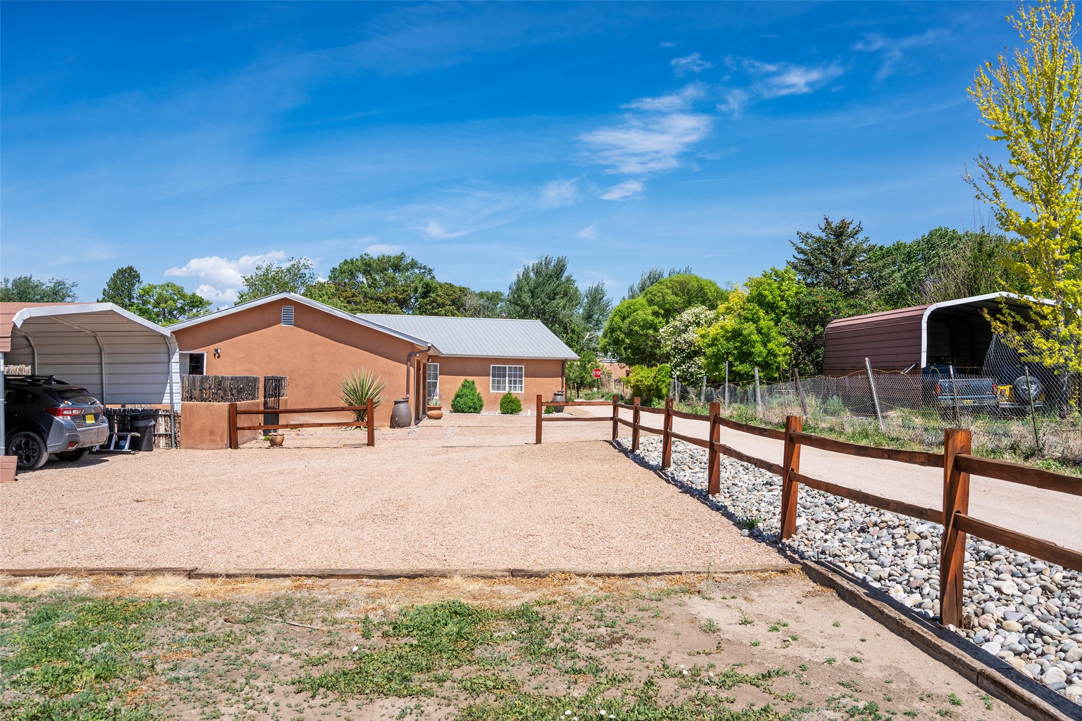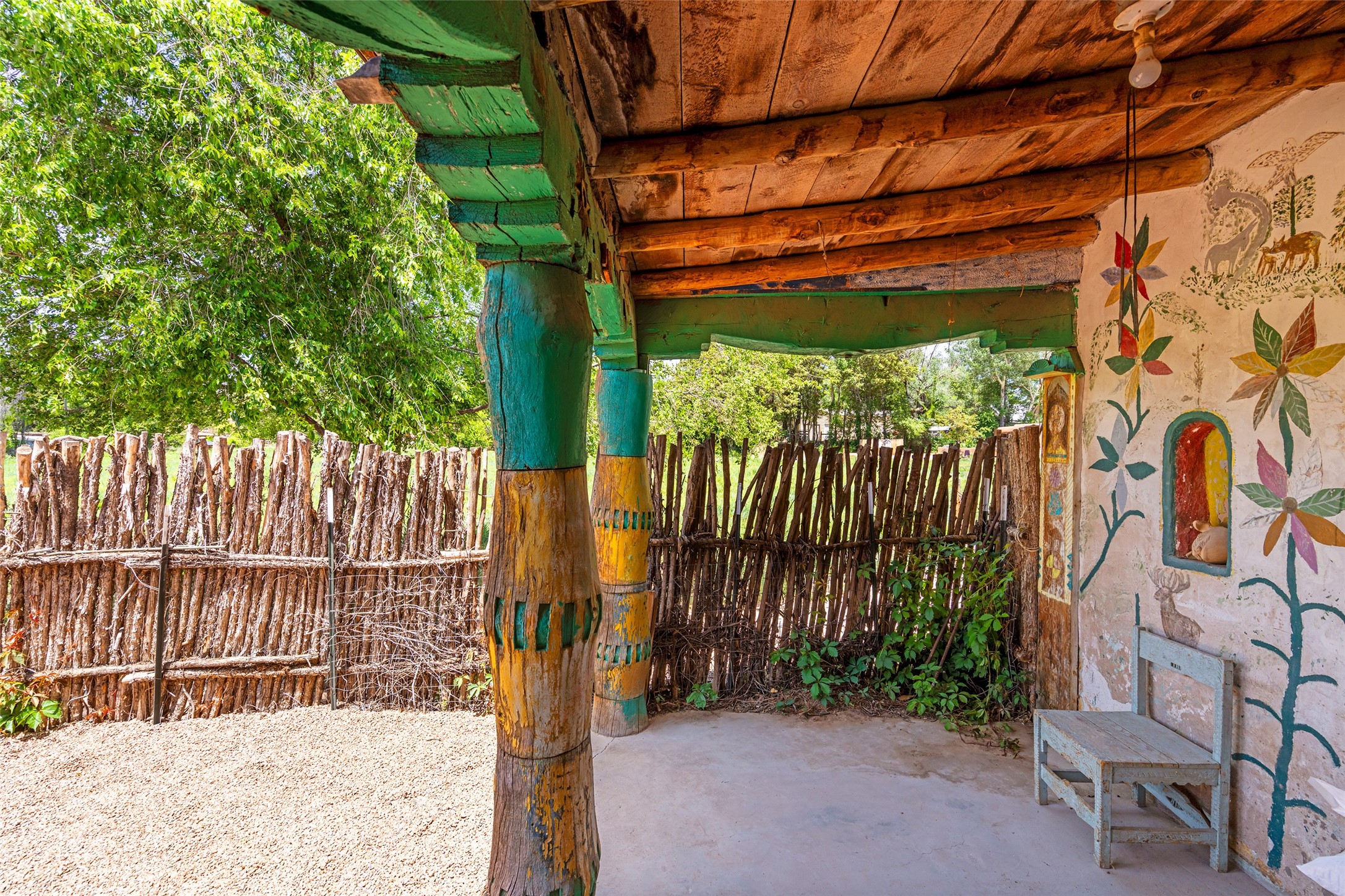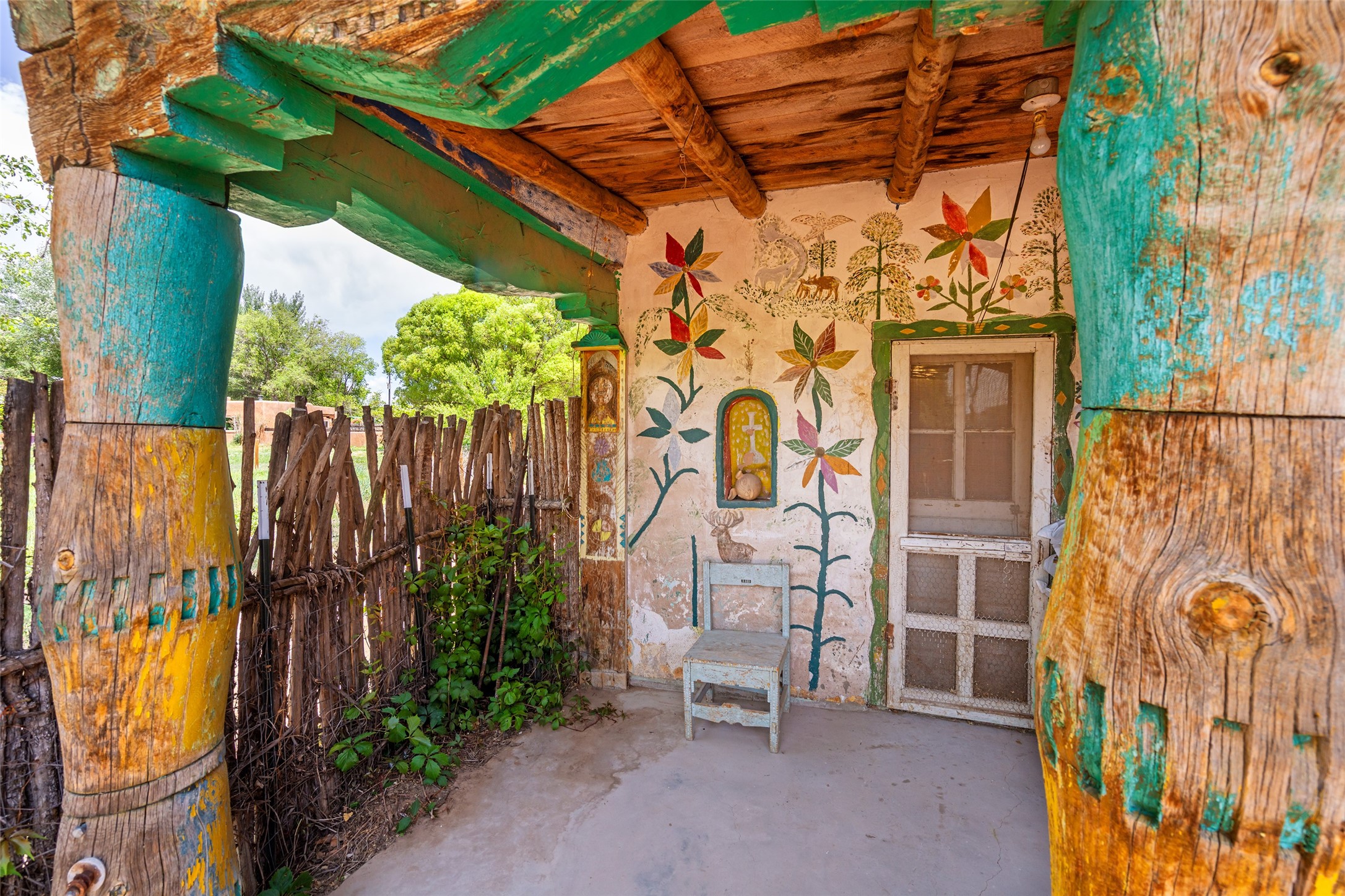 Step into a piece of history at 2 Short Rd in the charming community of Nambe, Santa Fe County. Constructed in 1904, this extraordinary adobe home offers a unique blend of historical charm and artistic legacy. With 3,223 square feet of expansive living space, this home invites you to explore its timeless character and stories etched into its walls.Set on nearly half an acre (.479 acres) of serene landscape, the property provides a peaceful retreat with ample space for outdoor enjoyment. A standout feature is a mural gracing the back portal--a stunning work of art that seamlessly marries the cultural richness of the past with the vibrant artistic spirit of the present.This is not just a home; it is a sanctuary where history and art come together to create an unforgettable living experience. Discover the allure of Nambe, and make this iconic piece of New Mexico's heritage your own. The beautiful mural on the back portal was painted by the Seller's grandfather and is featured in a book "Adobe! Homes and Interiors of Taos, Santa Fe and the Southwest by Sandra and Laurel Seth.