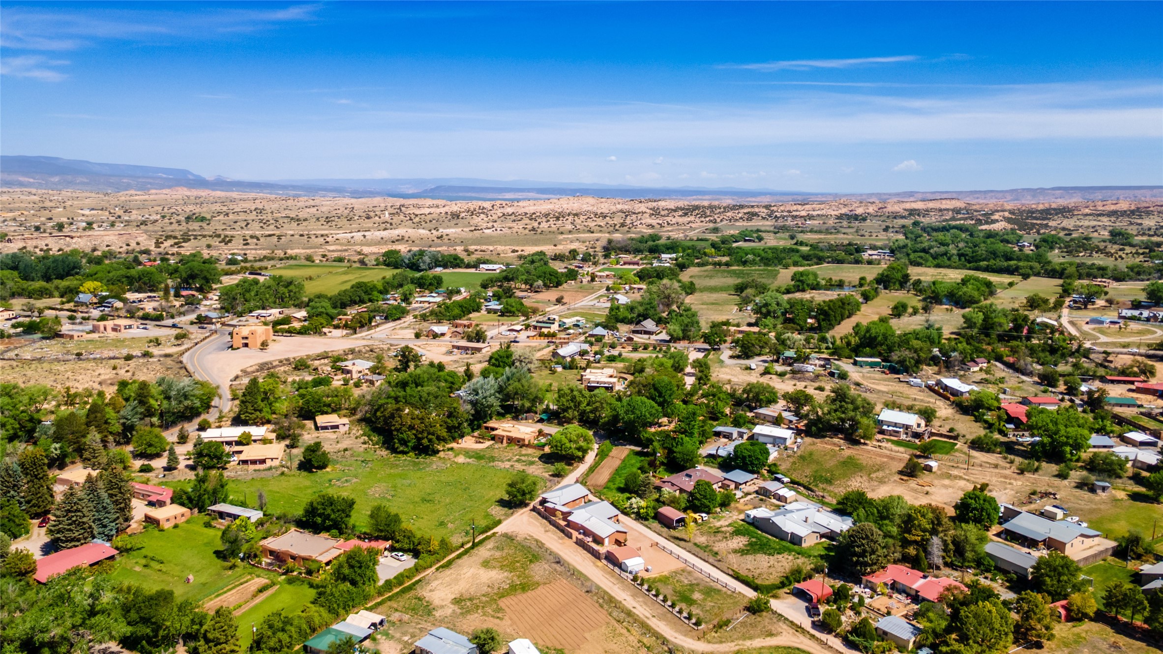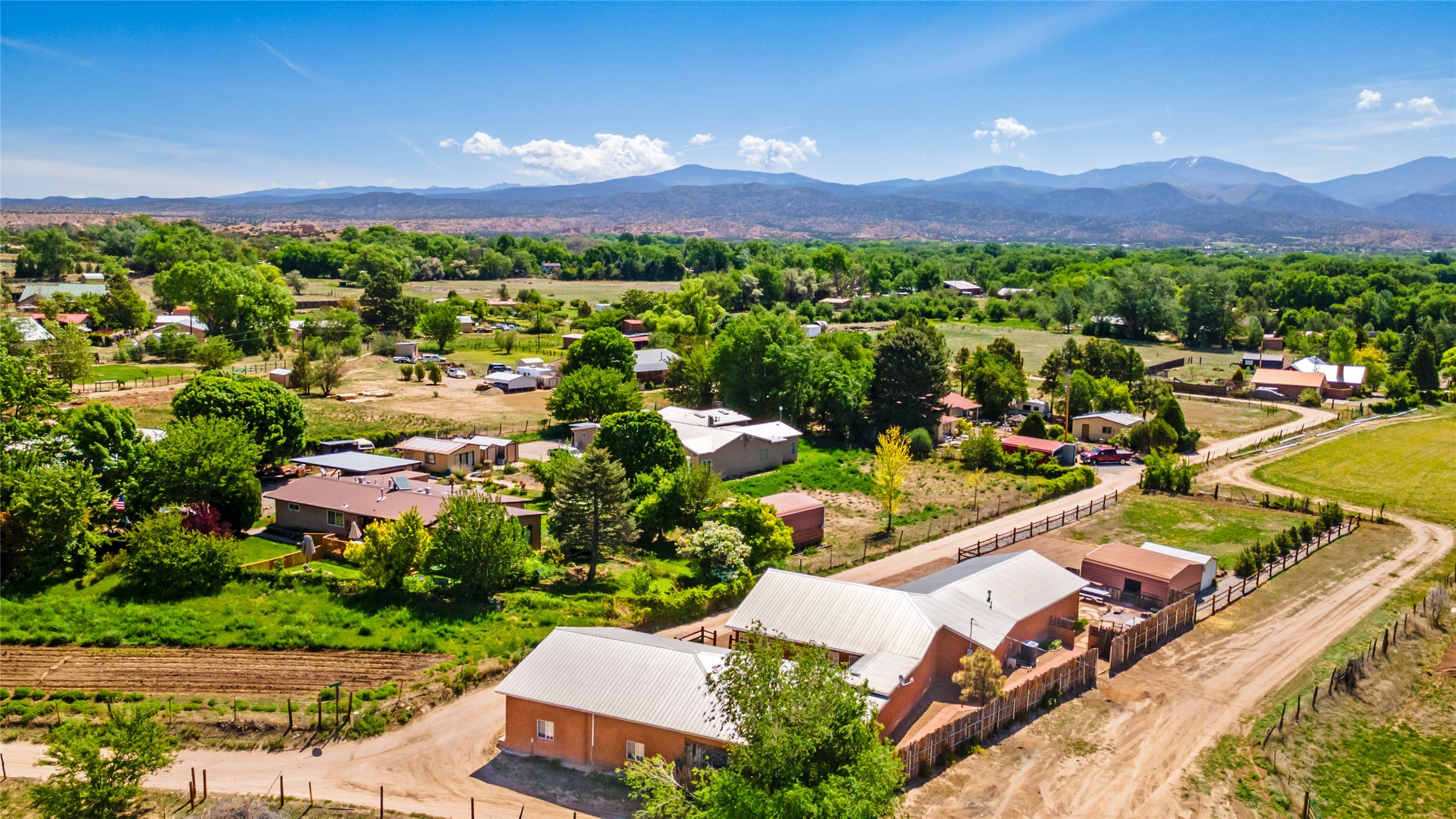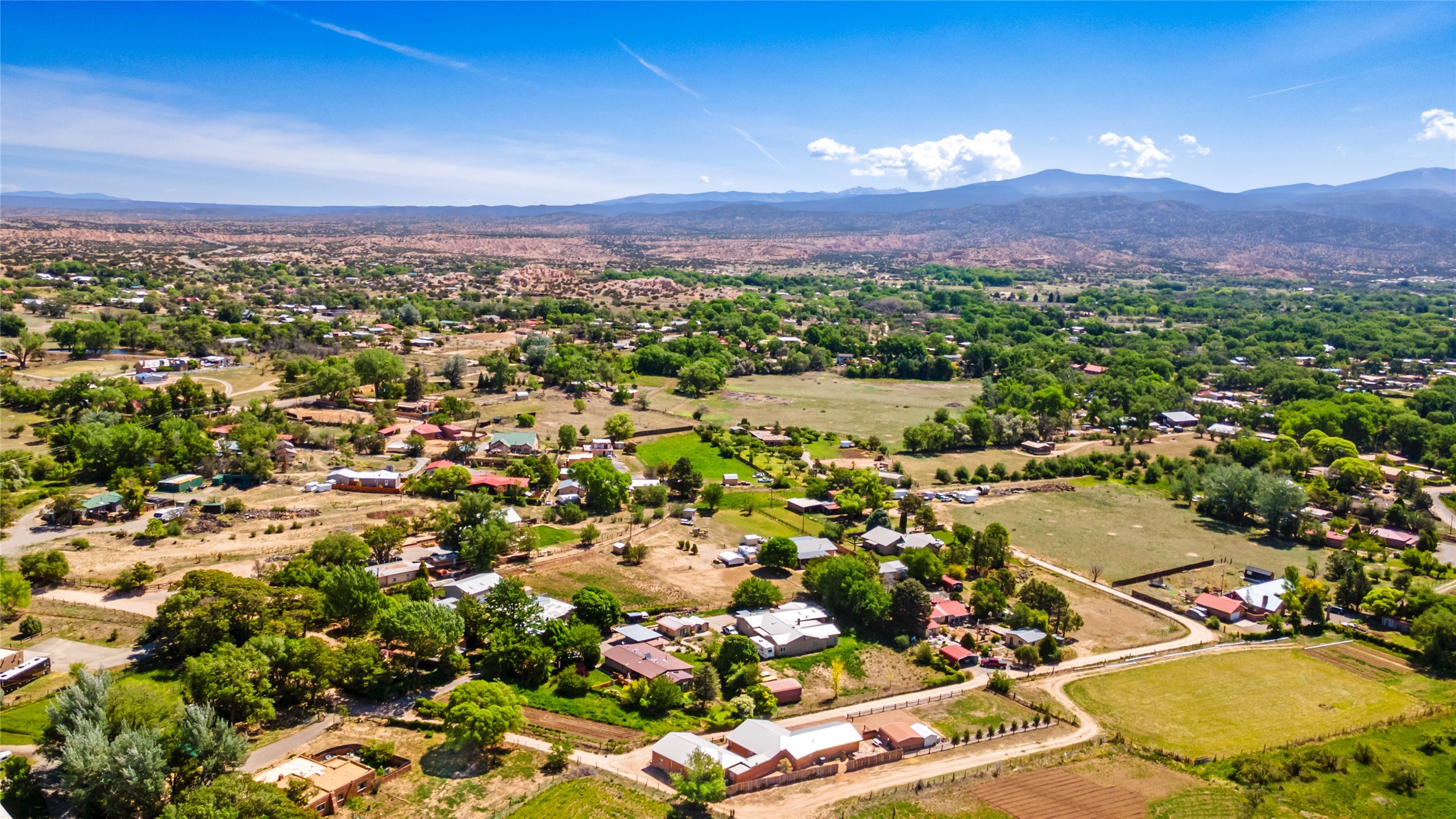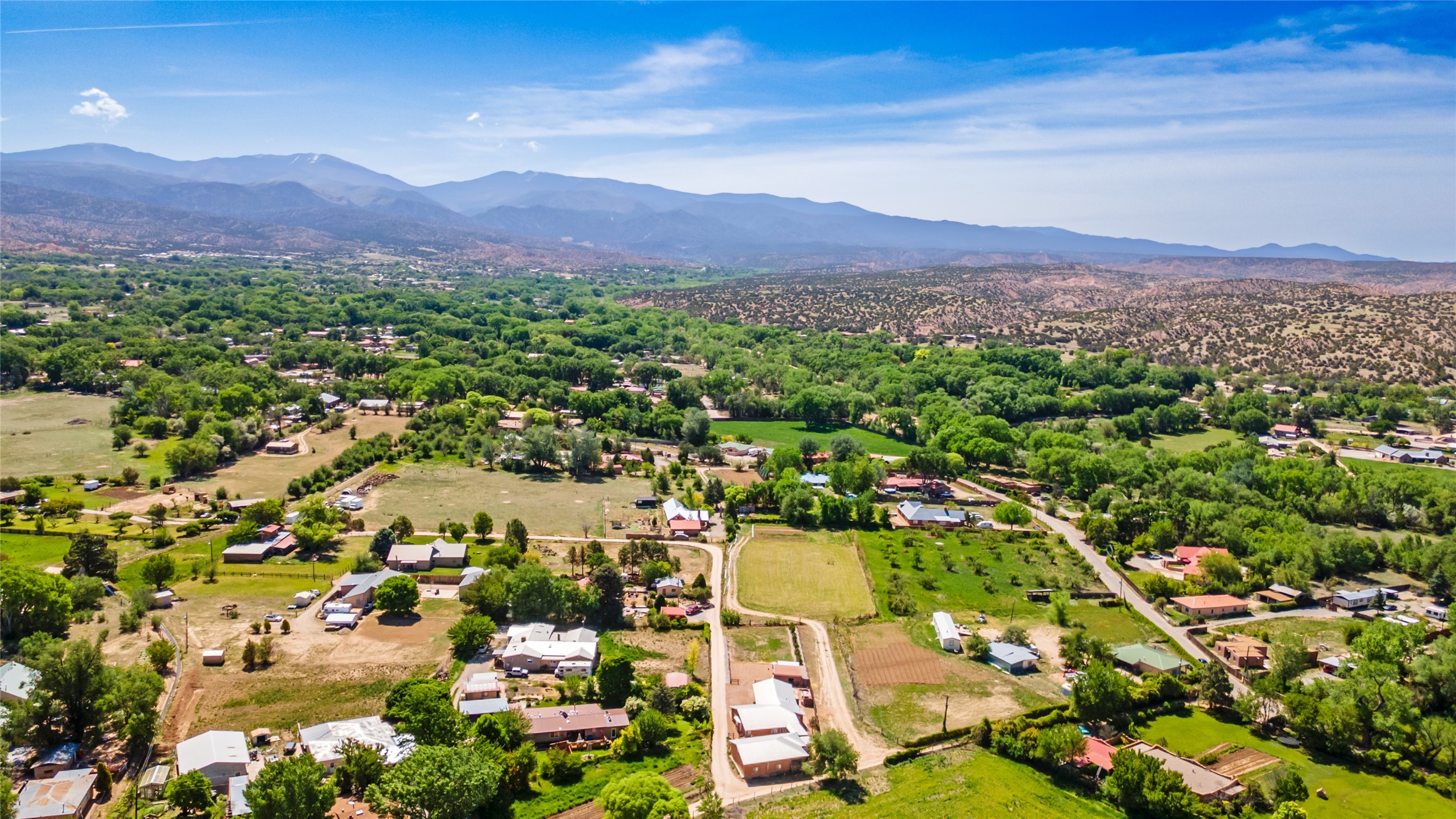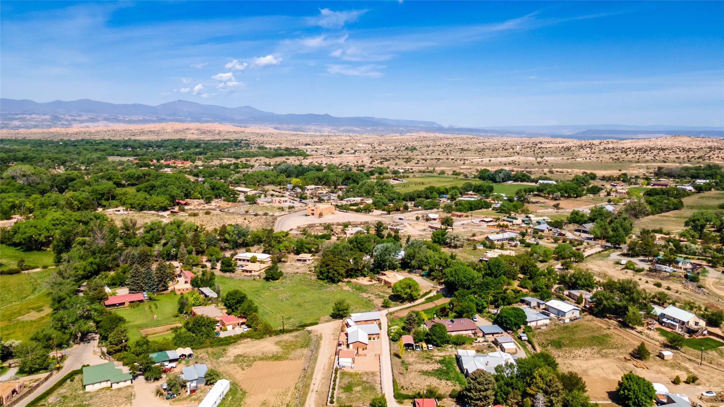 The areas to the north between Santa Fe and Taos possess some of the most spectacular and varied landscapes in New Mexico. Beautiful communities line the Taos Gorge and the Rio Grande like Espanola, Velarde & Dixon along what is called the 'Low Road' to Taos. The 'High Road' is a scenic, winding road through the Sangre de Cristo Mountains that runs between Santa Fe and Taos. Among the quaint