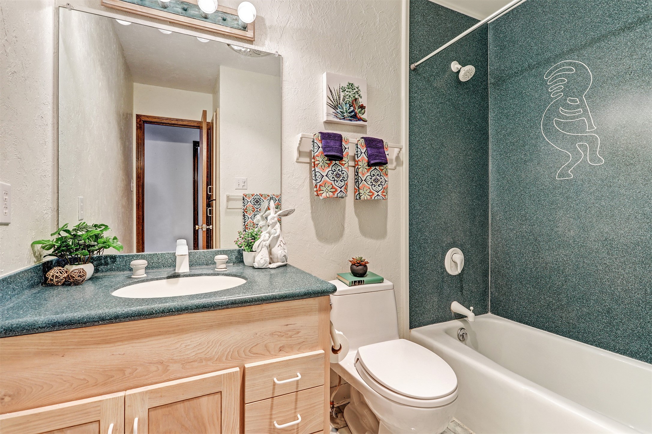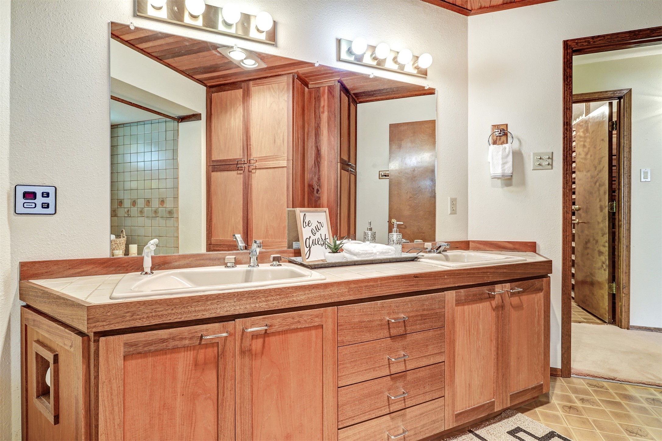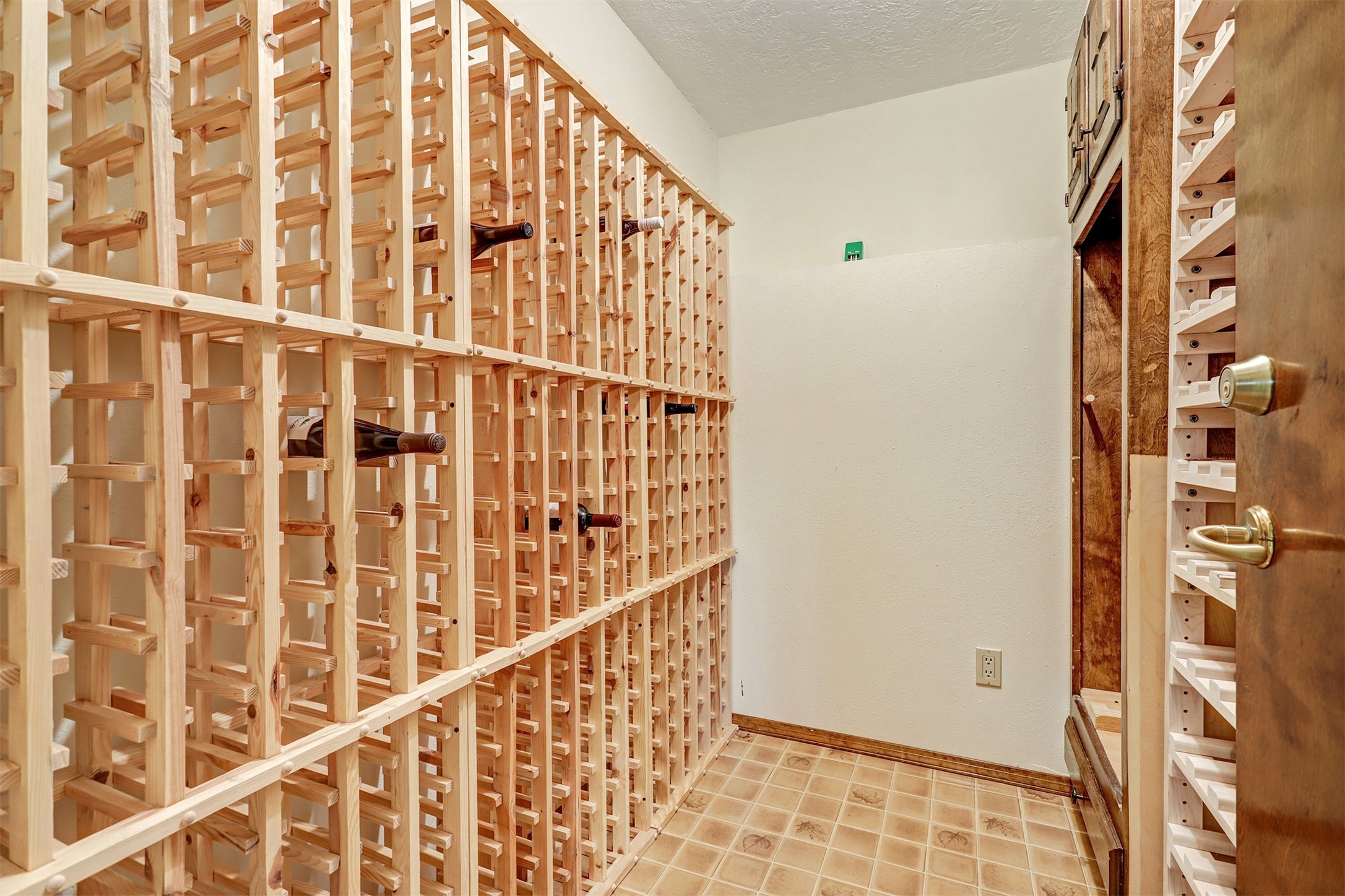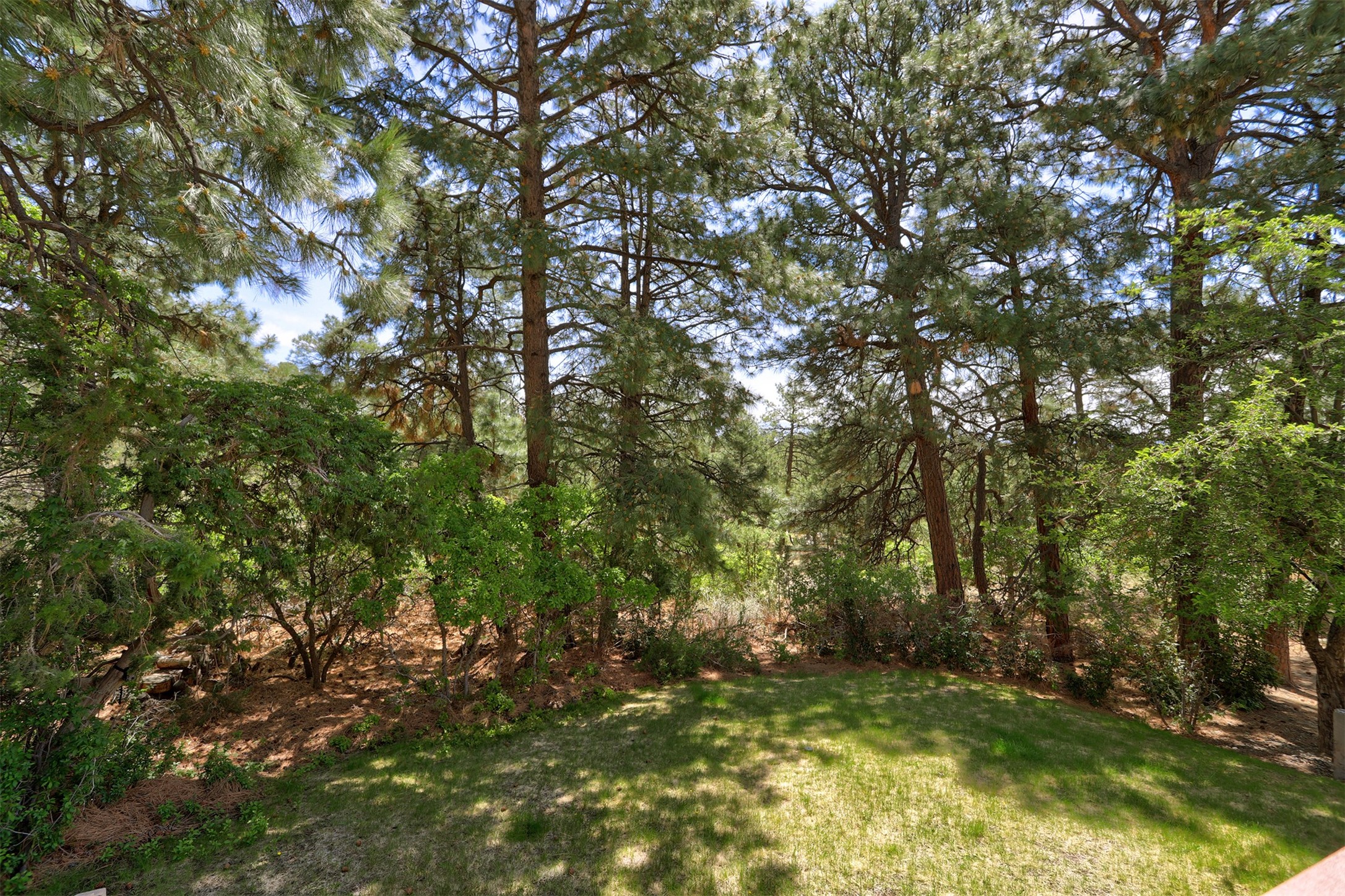 Nestled in the desirable North Mesa neighborhood, this exceptional two-story home offers privacy, natural beauty, and spacious living. Backed directly to the canyon, the property provides an unparalleled sense of peace and open space right from your backyard. The main level welcomes you with a beautifully updated kitchen, featuring maple cabinetry, granite countertops, double ovens, and ample storage perfect for culinary enthusiasts and family gatherings. Just off the dining room, step onto a charming outdoor porch where you can enjoy quiet mornings and evenings with forest views. The living room is a warm and inviting space, anchored by a dramatic floor-to-ceiling moss rock fireplace and framed by large picture windows that showcase the surrounding trees and greenery. This level also includes four comfortable bedrooms, a full hall bathroom, a designated laundry room, and convenient access to the attached two-car garage. Air conditioning keeps this main living area cool and comfortable year-round. Downstairs, you'll find a second expansive family room with striking Philippine mahogany ceilings and a versatile wet bar or kitchenette ideal for entertaining or multi-generational living. Two additional bedrooms provide flexible space, each outfitted with rich Mansonia African walnut cabinetry, and one featuring gorgeous Iroko African teak wall paneling. A large bathroom with double vanities and a jetted tub serves this level. Two spacious storage areas offer plenty of room for organization, one of which was previously used as a workshop. A dedicated wine cellar adds a special touch for collectors and connoisseurs. Outside, the lush, green backyard feels endless as it seamlessly blends into the bordering canyon. Furthermore, metal-clad siding offers durability and low maintenance exterior. With its stunning natural setting and thoughtfully designed interior, this unique property is a true North Mesa gem. Schedule a private showing today.