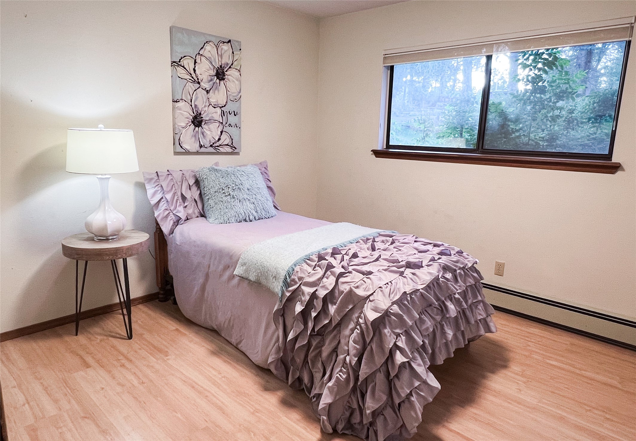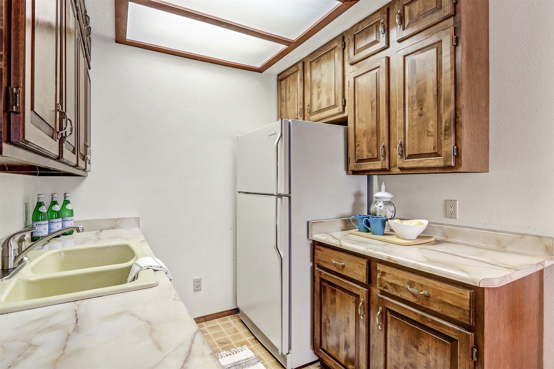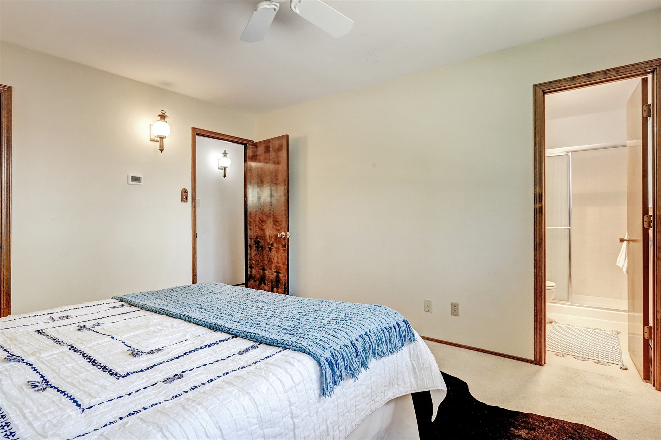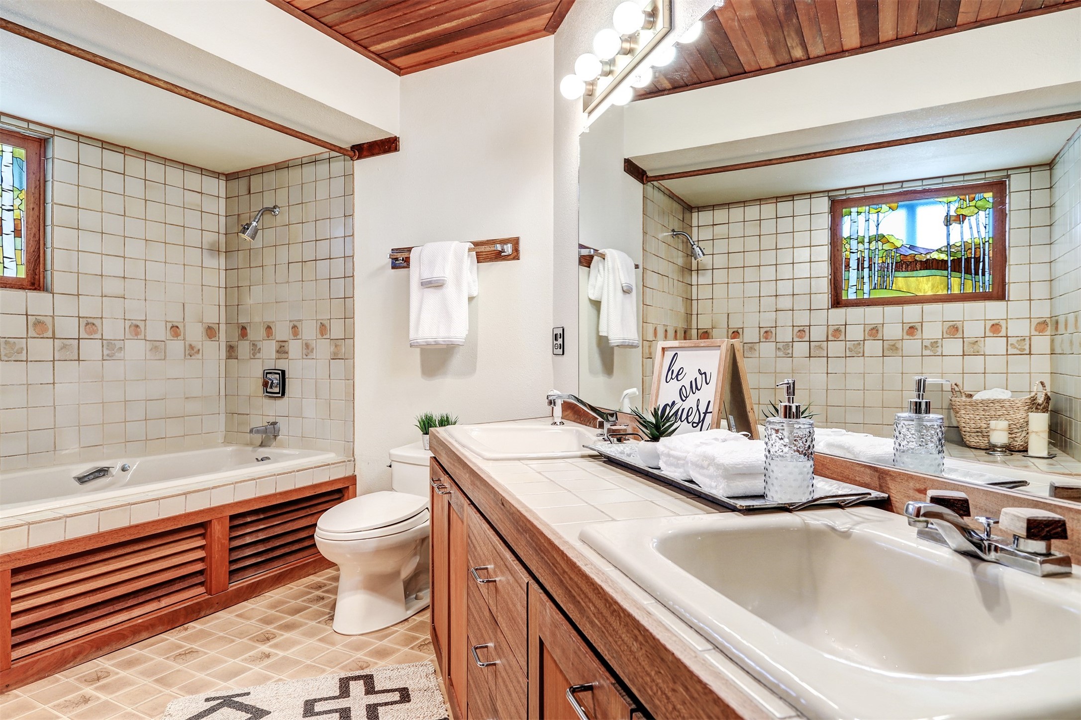 Nestled in the desirable North Mesa neighborhood, this exceptional two-story home offers privacy, natural beauty, and spacious living. Backed directly to the canyon, the property provides an unparalleled sense of peace and open space right from your backyard. The main level welcomes you with a beautifully updated kitchen, featuring maple cabinetry, granite countertops, double ovens, and ample storage perfect for culinary enthusiasts and family gatherings. Just off the dining room, step onto a charming outdoor porch where you can enjoy quiet mornings and evenings with forest views. The living room is a warm and inviting space, anchored by a dramatic floor-to-ceiling moss rock fireplace and framed by large picture windows that showcase the surrounding trees and greenery. This level also includes four comfortable bedrooms, a full hall bathroom, a designated laundry room, and convenient access to the attached two-car garage. Air conditioning keeps this main living area cool and comfortable year-round. Downstairs, you'll find a second expansive family room with striking Philippine mahogany ceilings and a versatile wet bar or kitchenette ideal for entertaining or multi-generational living. Two additional bedrooms provide flexible space, each outfitted with rich Mansonia African walnut cabinetry, and one featuring gorgeous Iroko African teak wall paneling. A large bathroom with double vanities and a jetted tub serves this level. Two spacious storage areas offer plenty of room for organization, one of which was previously used as a workshop. A dedicated wine cellar adds a special touch for collectors and connoisseurs. Outside, the lush, green backyard feels endless as it seamlessly blends into the bordering canyon. Furthermore, metal-clad siding offers durability and low maintenance exterior. With its stunning natural setting and thoughtfully designed interior, this unique property is a true North Mesa gem. Schedule a private showing today.