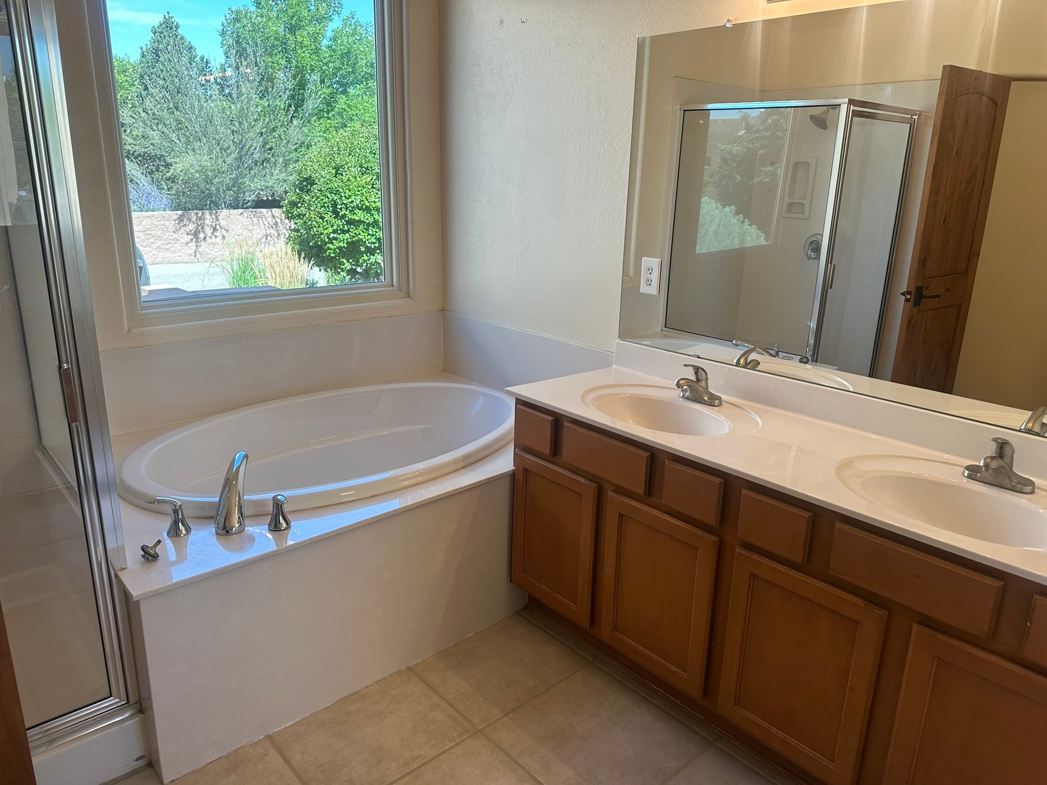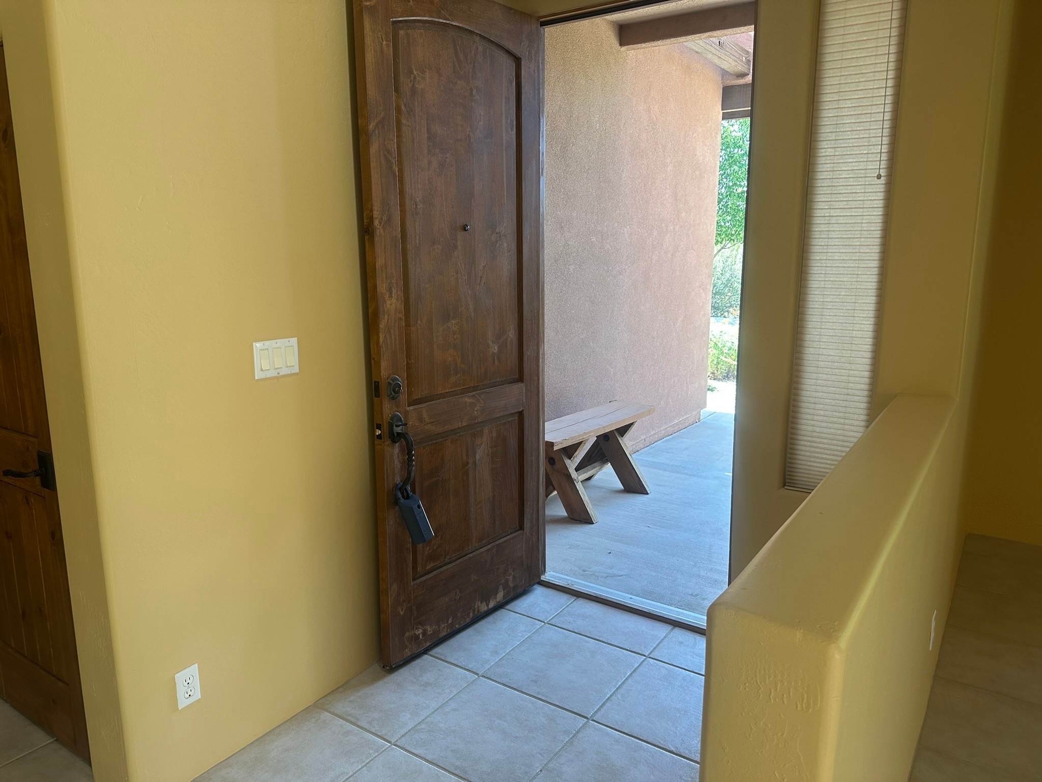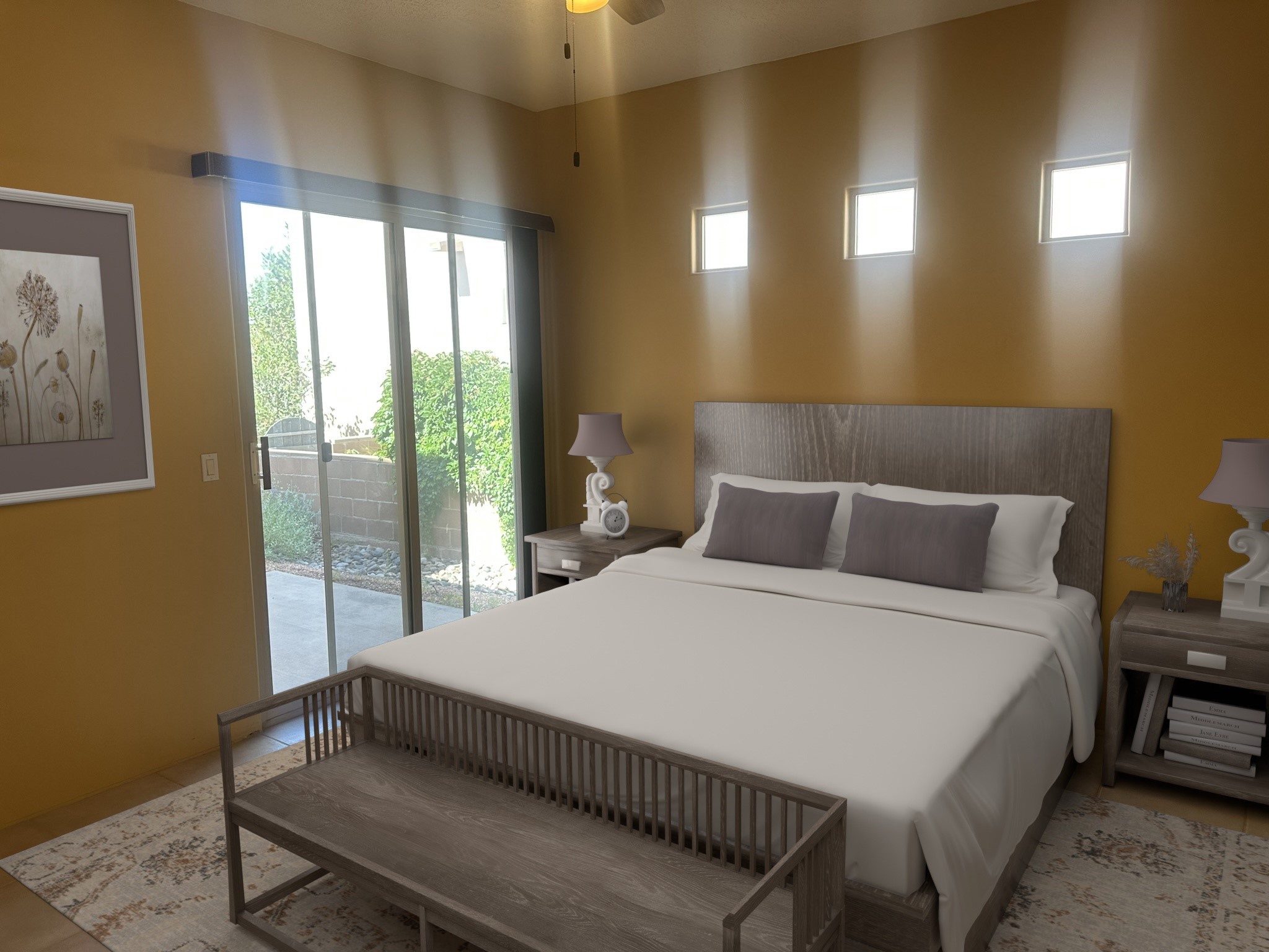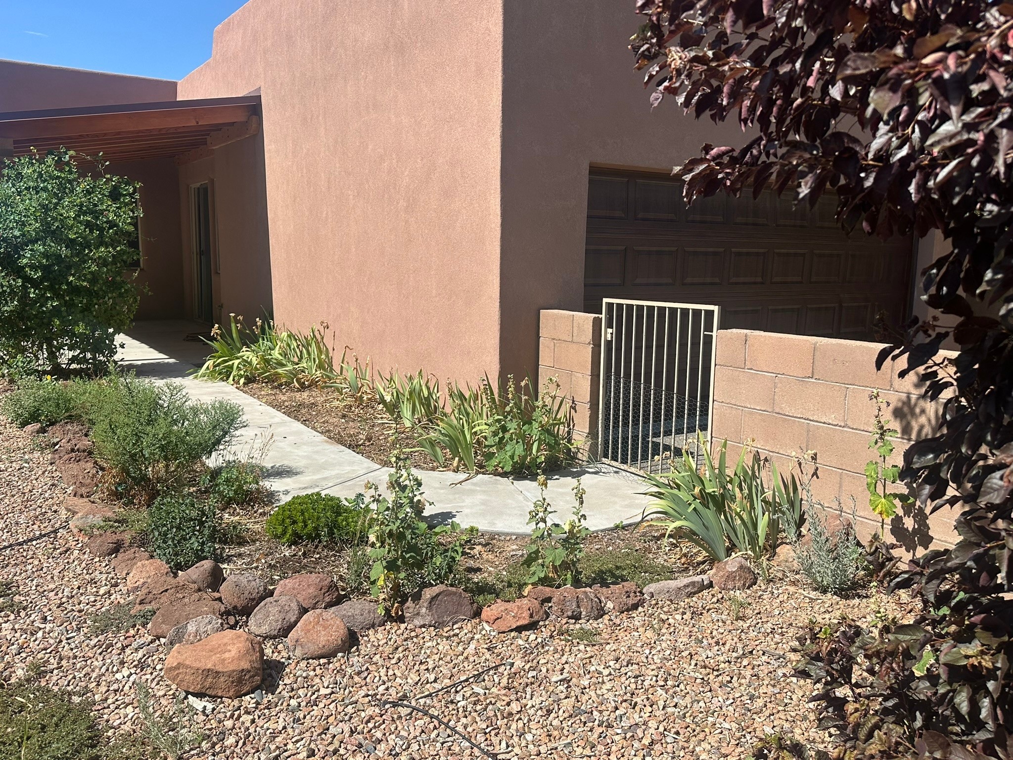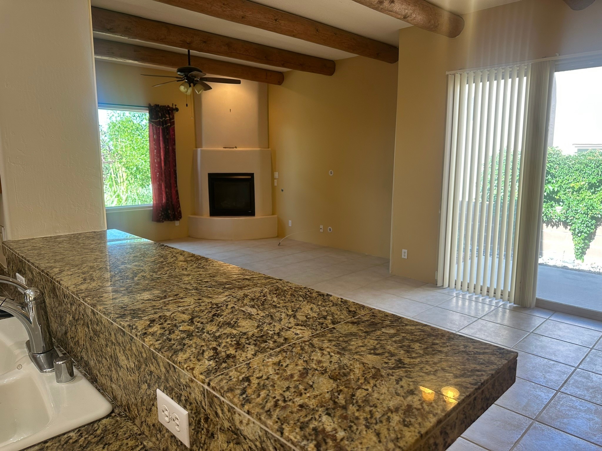 This beautifully designed Aspen floor plan offers effortless, single-level living--no steps, just seamless sophistication from room to room. Step inside to a sun-drenched, freshly painted living area adorned with a stunning new picture window and accented by warm wood ceiling beams. A gas fireplace serves as the elegant focal point, creating an inviting atmosphere for cozy evenings or stylish entertaining. The open-concept kitchen features granite countertops, ample pantry space, and a natural flow into the dining and living areas--perfect for everyday indulgence or hosting guests. With three generously sized bedrooms and two full baths, the intelligent split floor plan provides both privacy and comfort. The spacious primary suite offers direct access to a private, covered back patio, a large walk-in closet, and an en suite bath--making it a true retreat.Additional highlights include, a brand-new TPO roof (2025), some newly installed energy-efficient windows, radiant heat and a swamp cooler for year-round comfort, tall two-car garage for added storage and convenience, a well-maintained, landscaped yard with a flourishing blackberry bush--ideal for green thumbs, private back porch with a beautiful cover, perfect for outdoor relaxation, and a generous linen closet for practical storage solutions. Set against a backdrop of open space with direct access to serene trails, this home effortlessly blends everyday comfort with the natural beauty of its surroundings. Discover where thoughtful design, modern upgrades, and nature come together--your next chapter begins here.