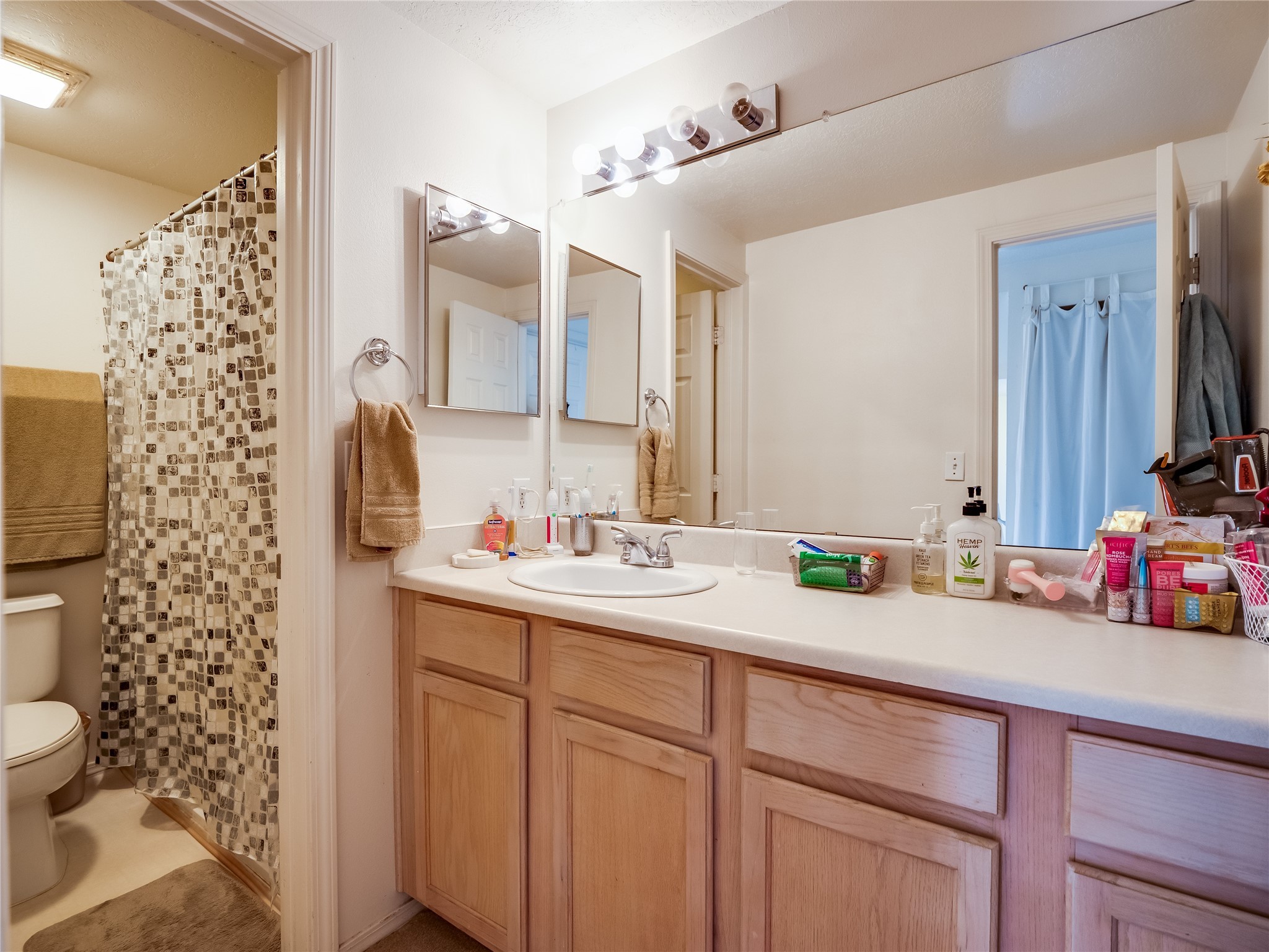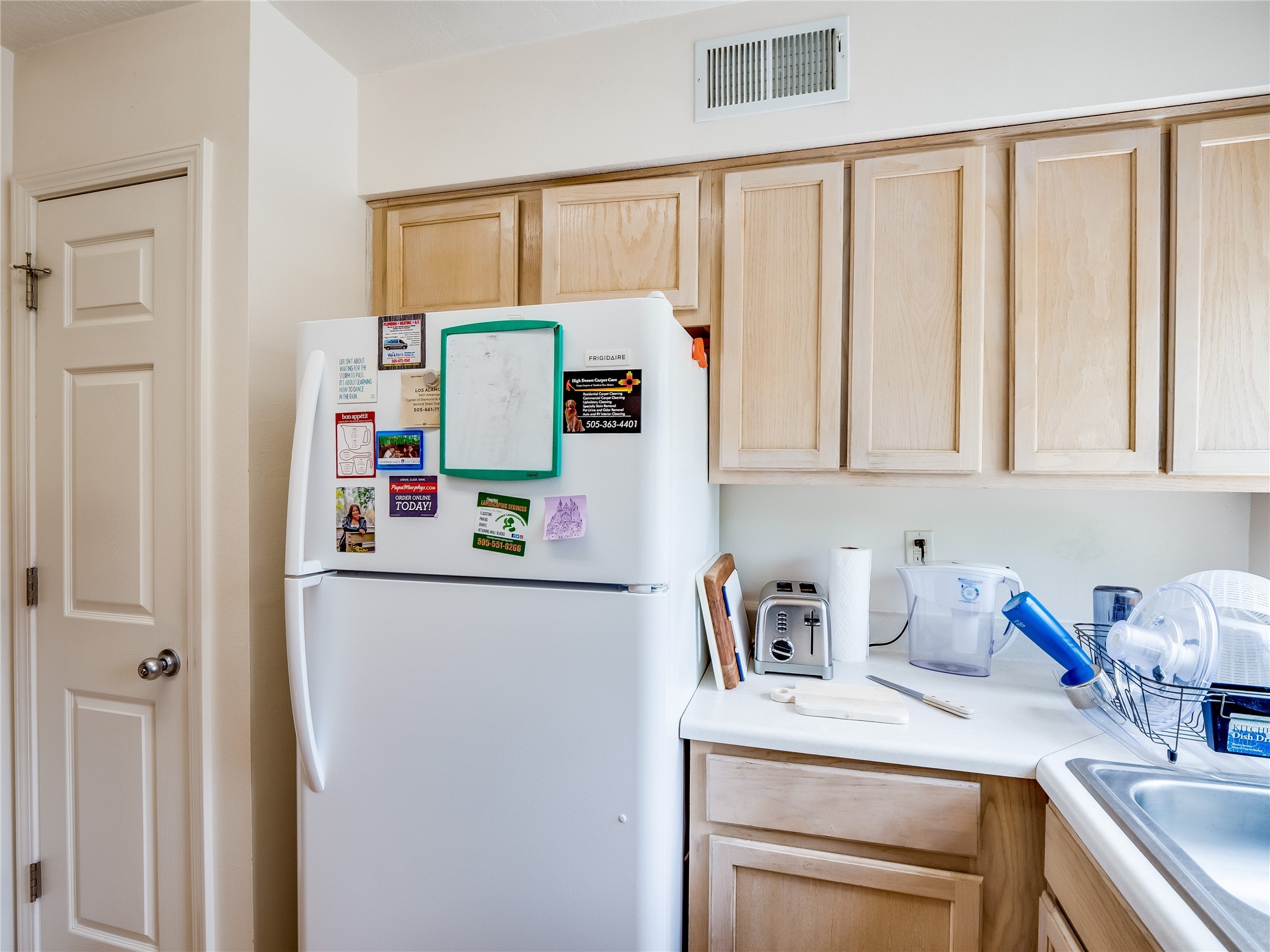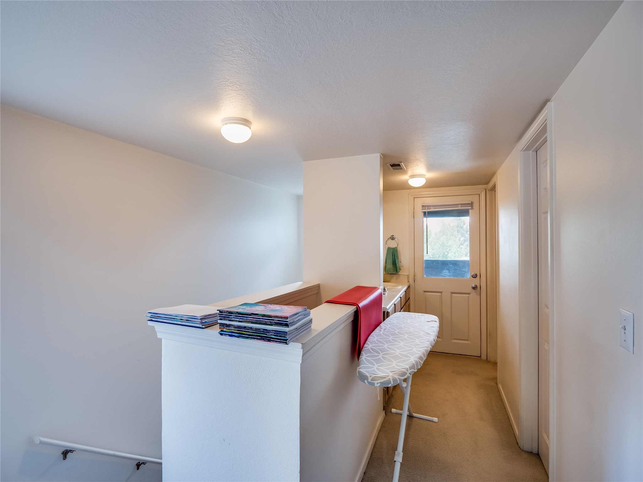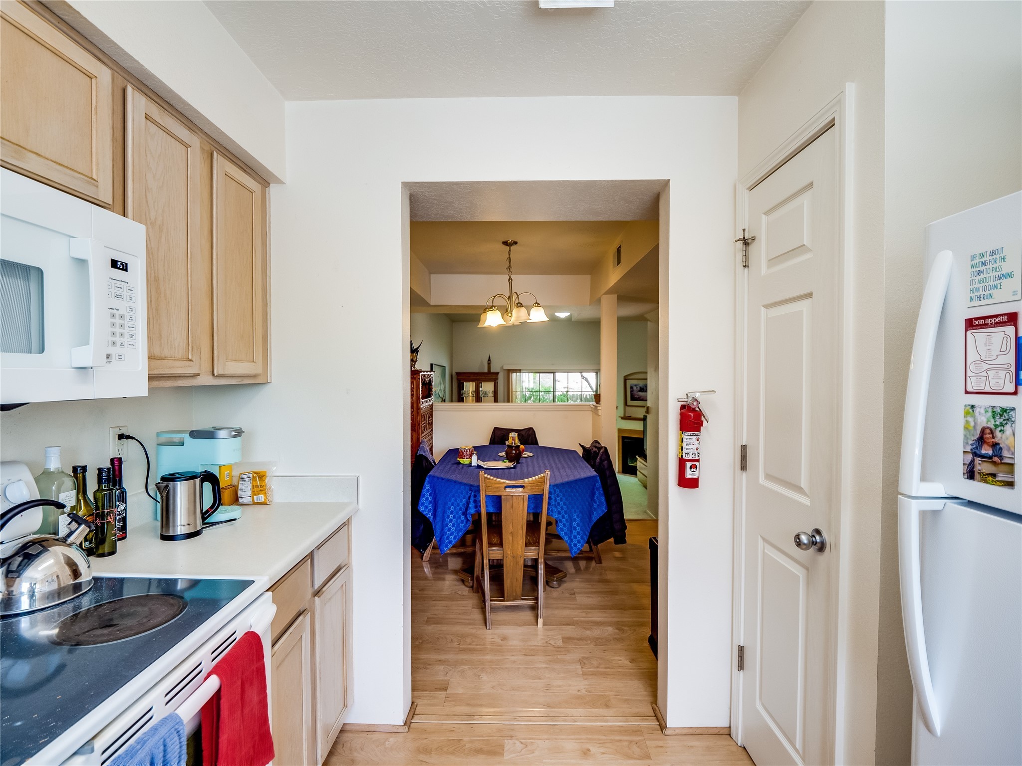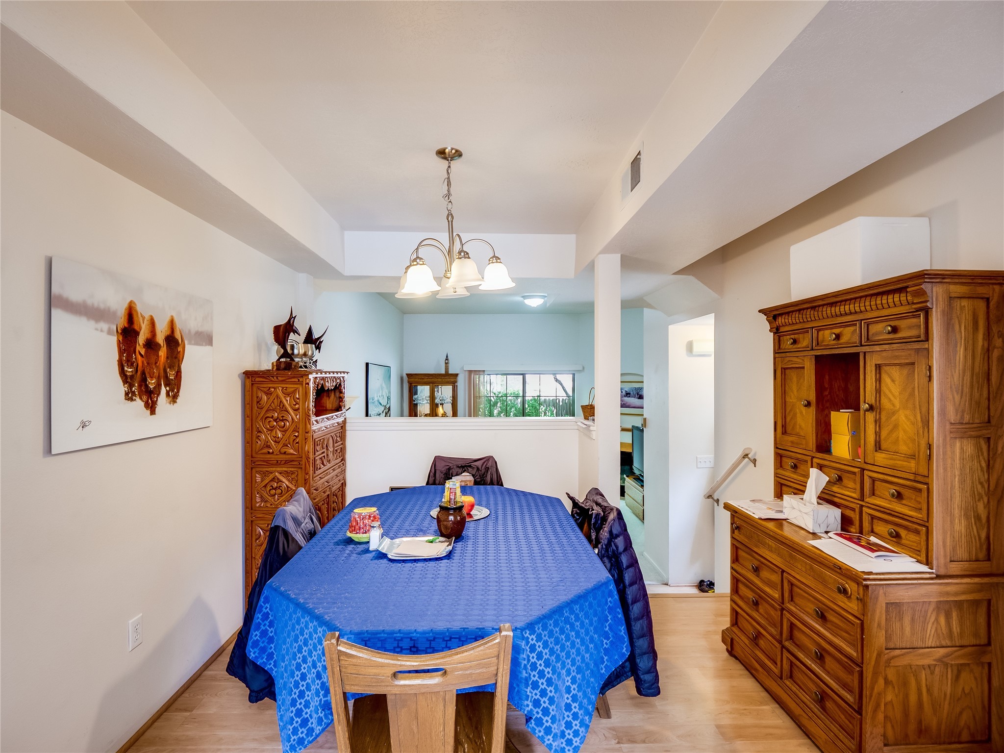 Welcome to this charming and move-in-ready multi-level condo, perfectly situated in the desirable Eastern Area of Los Alamos--just moments from parks, scenic trails, shopping, restaurants, and entertainment. This thoughtfully designed home offers spacious living across multiple levels, blending comfort with convenience. Step inside through the front entrance and onto laminate wood floors that flow through the main entry space. On this floor, you'll find interior access to the single-car garage, which also houses a washer and dryer for added convenience. Head upstairs to the inviting main living area featuring a bright and cozy living room with plush carpeting, a warm gas fireplace, and sliding glass doors that open to a private, fenced-in patio--ideal for relaxing or entertaining outdoors. Continue up a short flight of stairs to the open dining space, which overlooks the living room and connects seamlessly to the bright kitchen. The kitchen features classic wood cabinetry, white appliances, a pantry for added storage, and ample counter space. A crisp white powder room is also located on this level for guests. On the next level, two generously sized guest bedrooms provide comfortable accommodations with access to a full shared bathroom complete with a large single sink vanity and a tub/shower combo. The top floor is dedicated to the spacious primary en-suite retreat. This private level includes a large bedroom, walk-in closet, and full bathroom with a shower/tub combo and an extended single sink vanity. Step outside onto your own enclosed patio deck and enjoy peaceful views of the surrounding mountains--your very own personal sanctuary. With multiple levels of living, a functional layout, and an unbeatable location, this condo is a rare find. Don't miss your chance to call it home--schedule your private showing today!