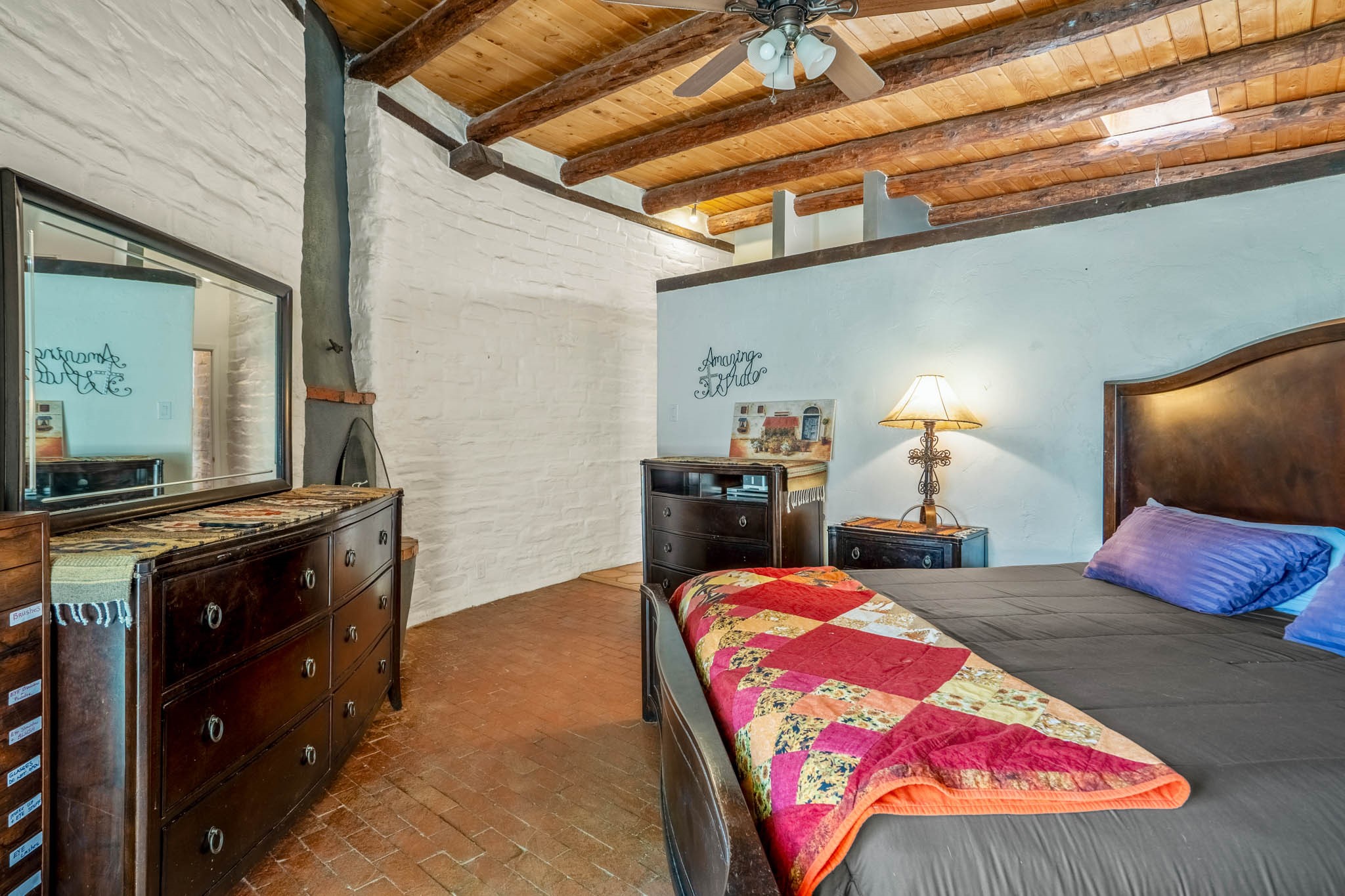 Enchanting Adobe Retreat with Balloon Fiesta Views & Mountain MajestyWelcome to your private New Mexico sanctuary--perched on a peaceful acre at the end of a quiet road, this stunning two-story adobe home offers breathtaking views, timeless character, and unforgettable experiences.Watch the Magic Unfold Every October: From the comfort of your backyard balcony, enjoy front-row seats to the world-famous Albuquerque International Balloon Fiesta. Watch vibrant hot air balloons take flight each morning as they rise gracefully into the sky--an annual tradition that transforms your backyard into a front-row viewing paradise. It's the perfect setting to entertain guests, sip morning coffee, or soak in the wonder of the Southwest.Southwestern Charm Meets Modern Comfort:This thoughtfully crafted adobe home features classic brick floors, exposed vigas, hand-troweled plaster walls, and curved adobe lines that fill the space with warmth and natural light. A striking kiva fireplace anchors the living room, while floor-to-ceiling windows frame expansive mountain and city views.The open-concept kitchen and dining area seamlessly blend rustic charm with modern updates--wood cabinetry, sleek countertops, traditional tilework, and beautiful beamed ceilings. Whether you're hosting a holiday feast or a cozy dinner, this home was made for joyful gatherings and lifelong memories.Outdoor Living at Its Finest:Step into your private courtyard, beautifully landscaped with native flora and multiple seating areas. Listen to birdsong from the trees, wave at the curious roadrunners that visit often, or unwind in the hot tub as the sky puts on a show with radiant sunsets and sunrises.Property Features:1 acre of peaceful land at the end of a quiet roadOwned solar power system (active)Two A/C units (one replaced in 2018)Private well and septic systemTwo RV hookups with a concrete parking slabPrivate balcony with sweeping views of Albuquerque and beyondBirds, roadrunners, and local wildlife enhance the serene settingThe backyard is perfect for entertaining and star-gazingThis home has been a place of deep love, laughter, and countless gatherings with family and friends. From the peaceful morning light to the fiery evening skies--and every Balloon Fiesta in between--it's a home that offers more than just space. It offers experience.Come and fall in love with the magic of New Mexico living--this one-of-a-kind retreat is ready to welcome you home.