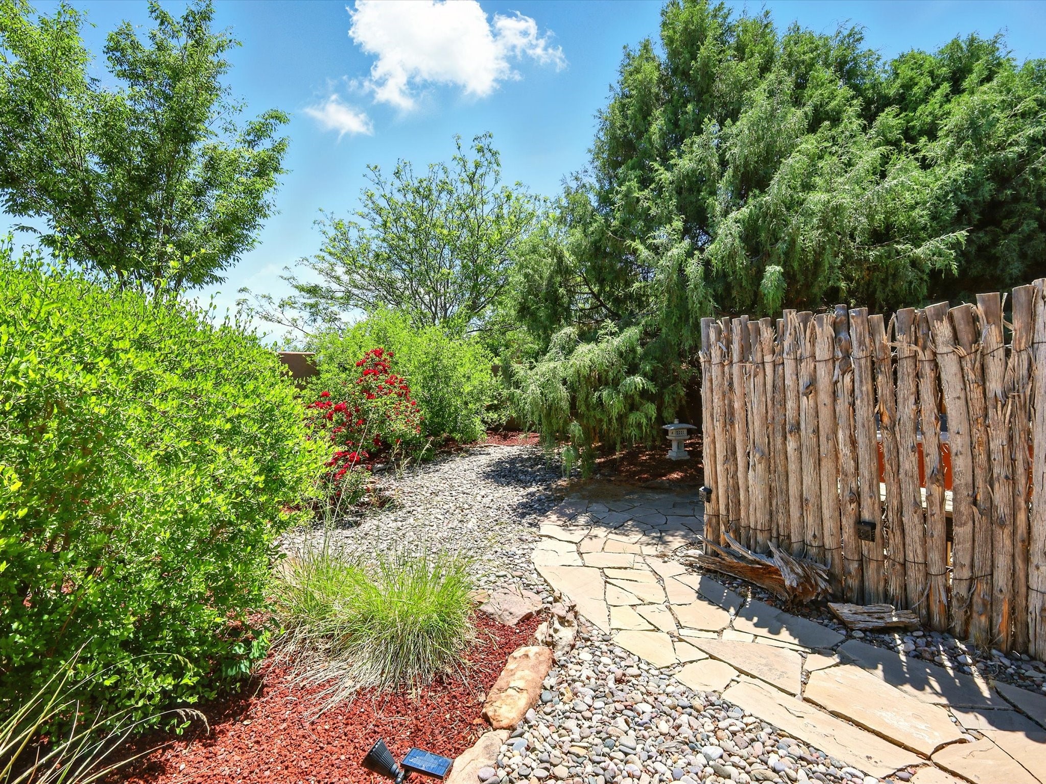 This is the special Rancho Viejo home you've been waiting for-- positioned on a fully landscaped corner lot at the end of the road, backing to open space and offering mountain views. The tranquil patio garden is a true retreat, featuring lush landscaping, custom wood doors, handcrafted sconces, and a tucked-away hot tub for ultimate relaxation. Inside, the home offers a thoughtful and spacious layout: three bedrooms, an office, a dedicated dining room, and two separate living areas, each with its own kiva fireplace. Every detail has been lovingly maintained. The primary suite includes a custom-designed closet, while the great room features upgraded Dolby Atmos ceiling speakers for an immersive audio experience. Throughout the home, lighting fixtures have been replaced with designer selections--no builder-grade finishes here. Set within the sought-after Rancho Viejo community, this home offers not just comfort but a connection to the land and sky. Known for its dark night skies and peaceful atmosphere, Rancho Viejo is ideal for stargazing from your own patio or enjoying the surrounding miles of walking trails. If you love a pastoral setting that feels quiet and removed, yet is still within easy reach of shopping, restaurants and short commuter routes, 29 Brilliant Sky Dr is a beautiful place to call home. Please enjoy the video tour attached to this listing.