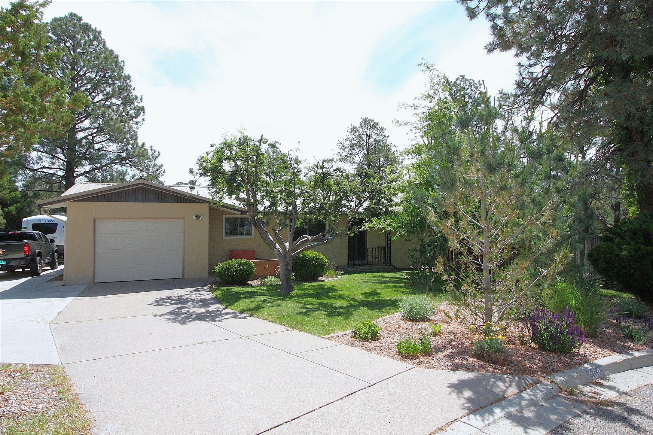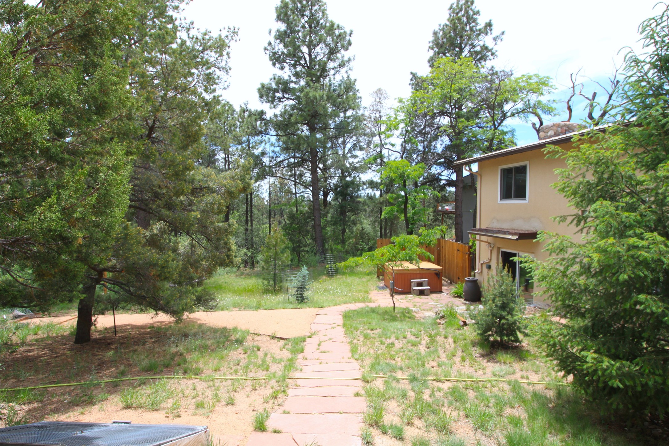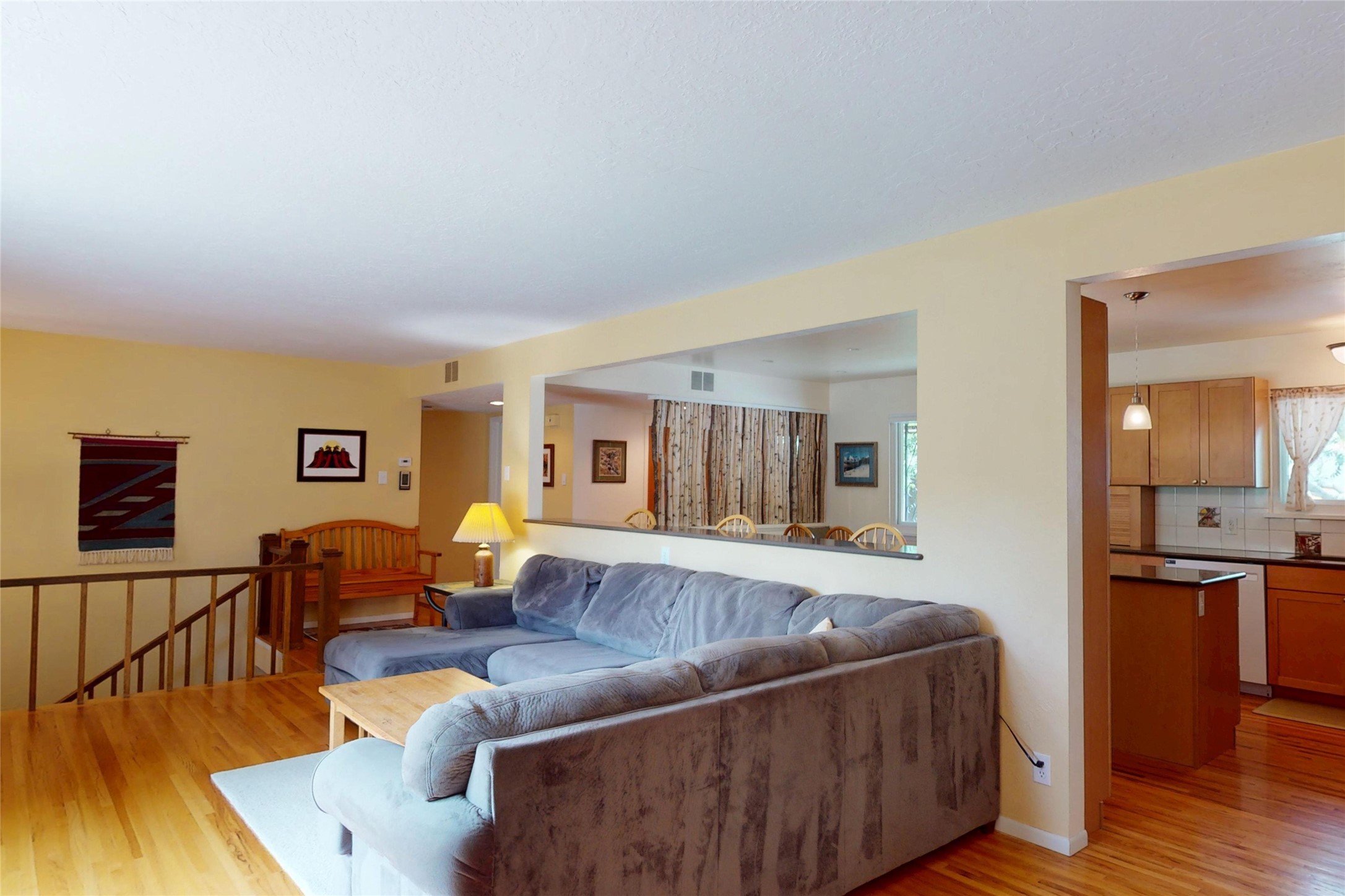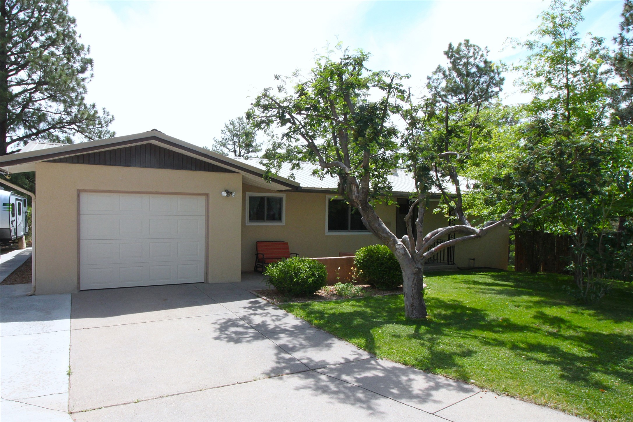 Serene Barranca Mesa Retreat with canyon access from the gently sloping backyard. This is a rare opportunity to own a Stamm-built home on a peaceful cul-de-sac in one of Los Alamos' most sought-after neighborhoods. This well-maintained, smoke-free and pet-free property offers direct access to the county trail system and is just two blocks from Barranca Mesa Elementary. Nestled on over half an acre of lush canyon land, this home invites you to enjoy nature, privacy, and timeless quality. Inside, you'll find 3 bedrooms, 2 bathrooms, and over 2,500 square feet of bright, airy living space. The home is filled with natural light and has been lovingly cared for by only its second owners. Original oak hardwood floors grace the main level, while the downstairs features new laminate flooring and a cozy gas fireplace. The updated kitchen and bathrooms offer modern comfort, and a newly added sunroom provides a wonderful space for relaxing or entertaining year-round. Additional highlights include: new windows and remote-controlled automatic shades for the picture window, minimal carpet for easy maintenance, and a versatile bonus room downstairs--perfect for hobbies or a home office. Outside is your own private sanctuary - a stunning half acre lot, teeming with mature trees and birds. The professionally landscaped front yard features irrigation, while the backyard is beautifully natural with drip irrigation in place. A relaxing gazebo, a well-maintained hot tub, and extra driveway space for RV parking complete the picture. With a durable metal roof, quiet surroundings, and a genuine connection to the outdoors, this canyon-side property offers the perfect balance of comfort, convenience, and tranquility. Don't miss your chance to own this gem in Barranca Mesa--schedule your showing today.