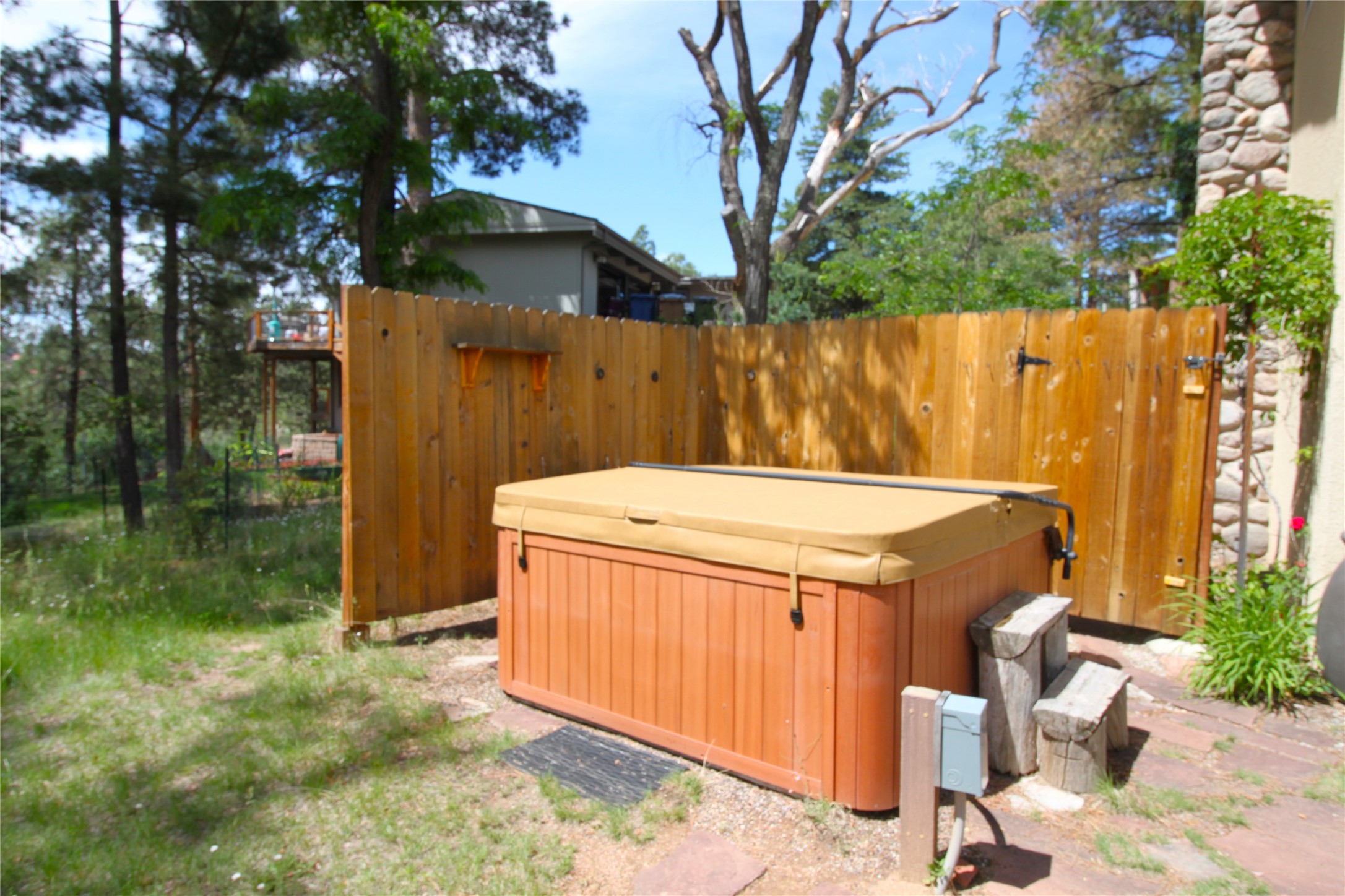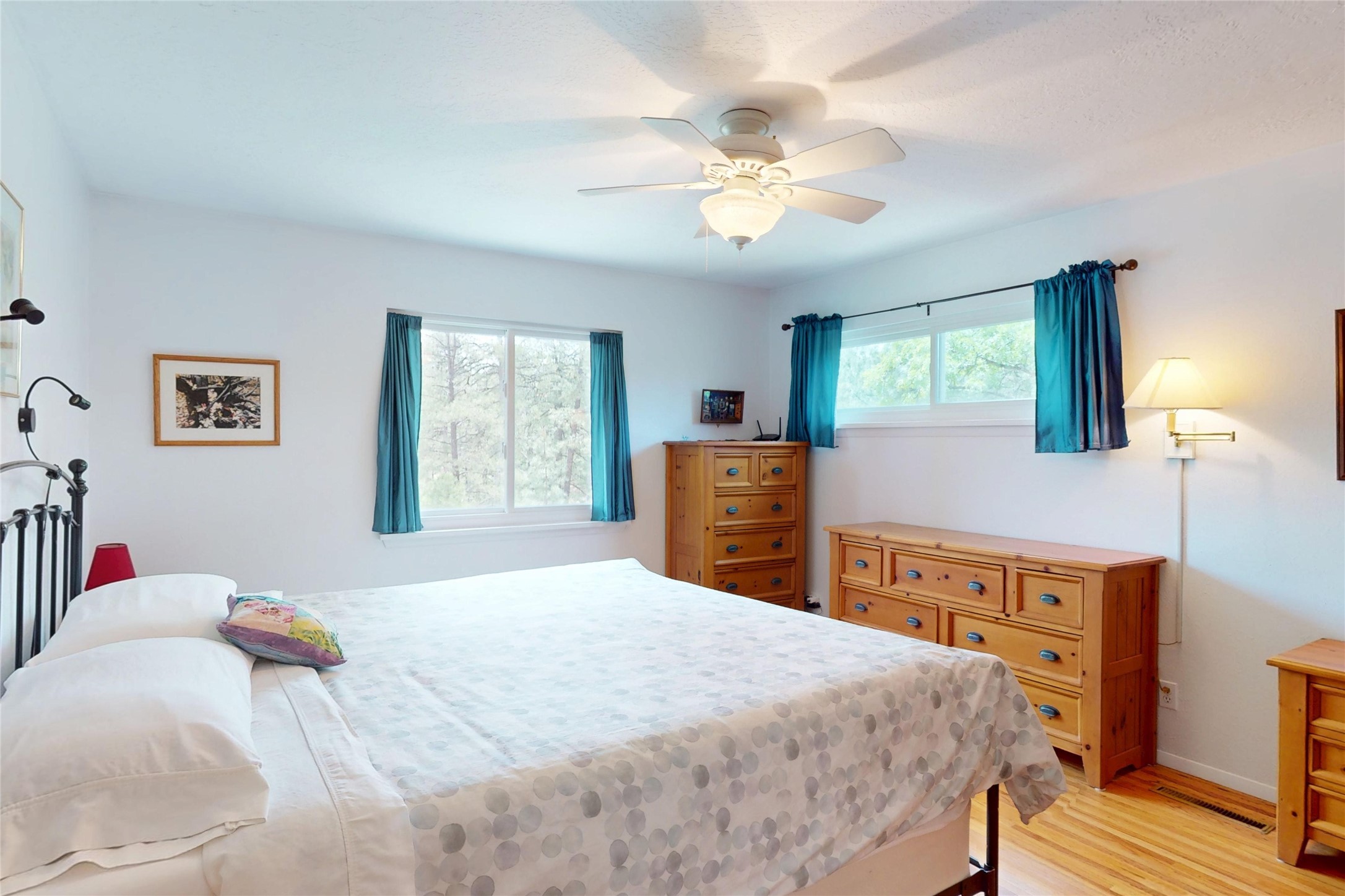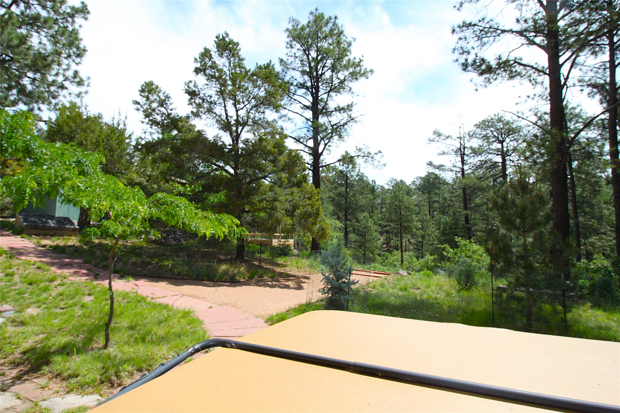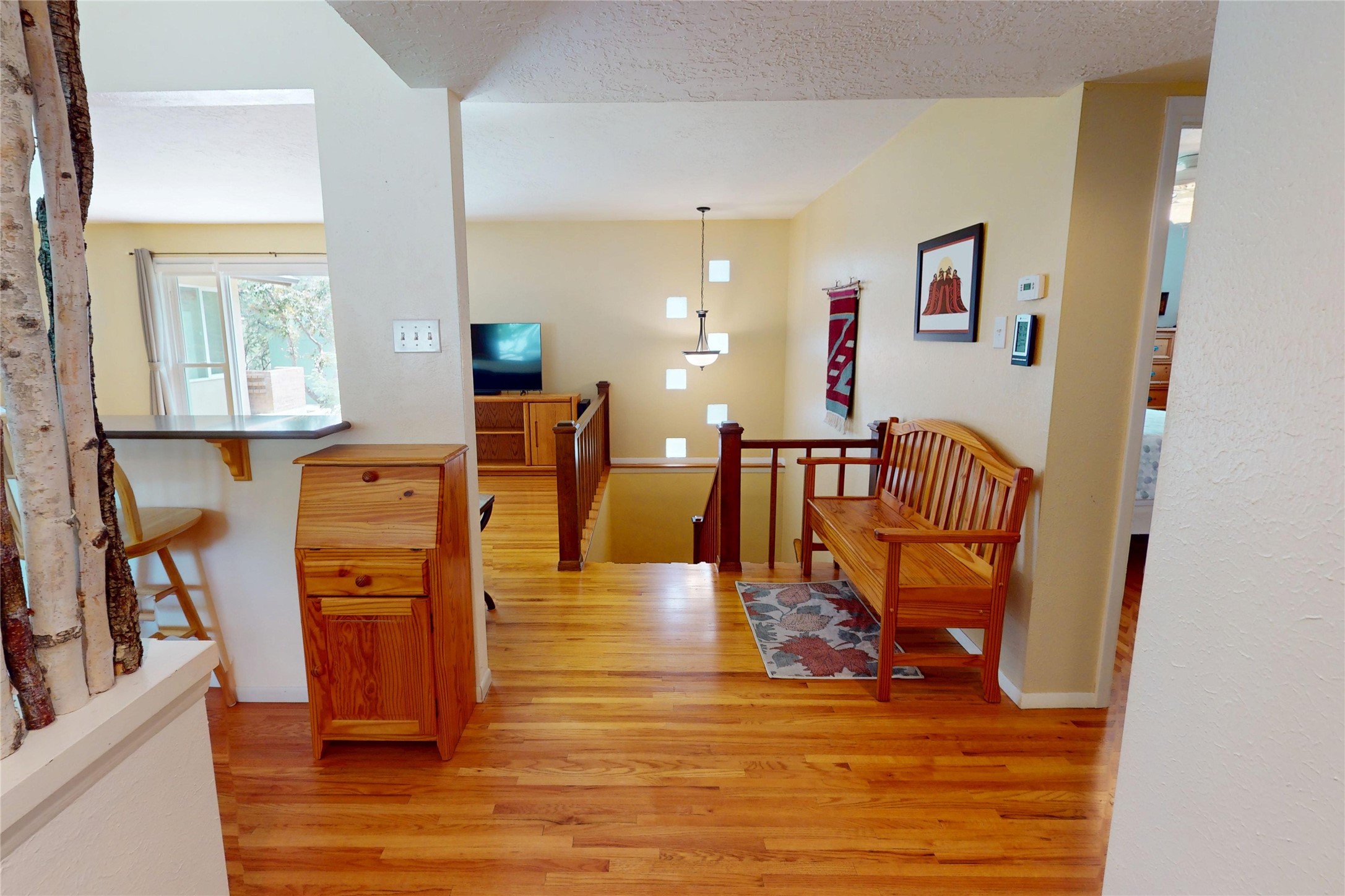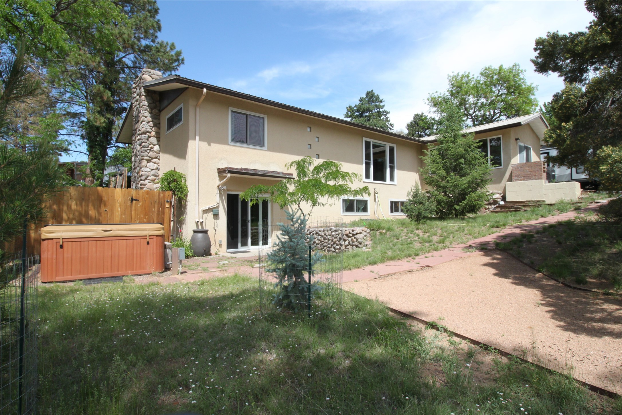 Serene Barranca Mesa Retreat with canyon access from the gently sloping backyard. This is a rare opportunity to own a Stamm-built home on a peaceful cul-de-sac in one of Los Alamos' most sought-after neighborhoods. This well-maintained, smoke-free and pet-free property offers direct access to the county trail system and is just two blocks from Barranca Mesa Elementary. Nestled on over half an acre of lush canyon land, this home invites you to enjoy nature, privacy, and timeless quality. Inside, you'll find 3 bedrooms, 2 bathrooms, and over 2,500 square feet of bright, airy living space. The home is filled with natural light and has been lovingly cared for by only its second owners. Original oak hardwood floors grace the main level, while the downstairs features new laminate flooring and a cozy gas fireplace. The updated kitchen and bathrooms offer modern comfort, and a newly added sunroom provides a wonderful space for relaxing or entertaining year-round. Additional highlights include: new windows and remote-controlled automatic shades for the picture window, minimal carpet for easy maintenance, and a versatile bonus room downstairs--perfect for hobbies or a home office. Outside is your own private sanctuary - a stunning half acre lot, teeming with mature trees and birds. The professionally landscaped front yard features irrigation, while the backyard is beautifully natural with drip irrigation in place. A relaxing gazebo, a well-maintained hot tub, and extra driveway space for RV parking complete the picture. With a durable metal roof, quiet surroundings, and a genuine connection to the outdoors, this canyon-side property offers the perfect balance of comfort, convenience, and tranquility. Don't miss your chance to own this gem in Barranca Mesa--schedule your showing today.