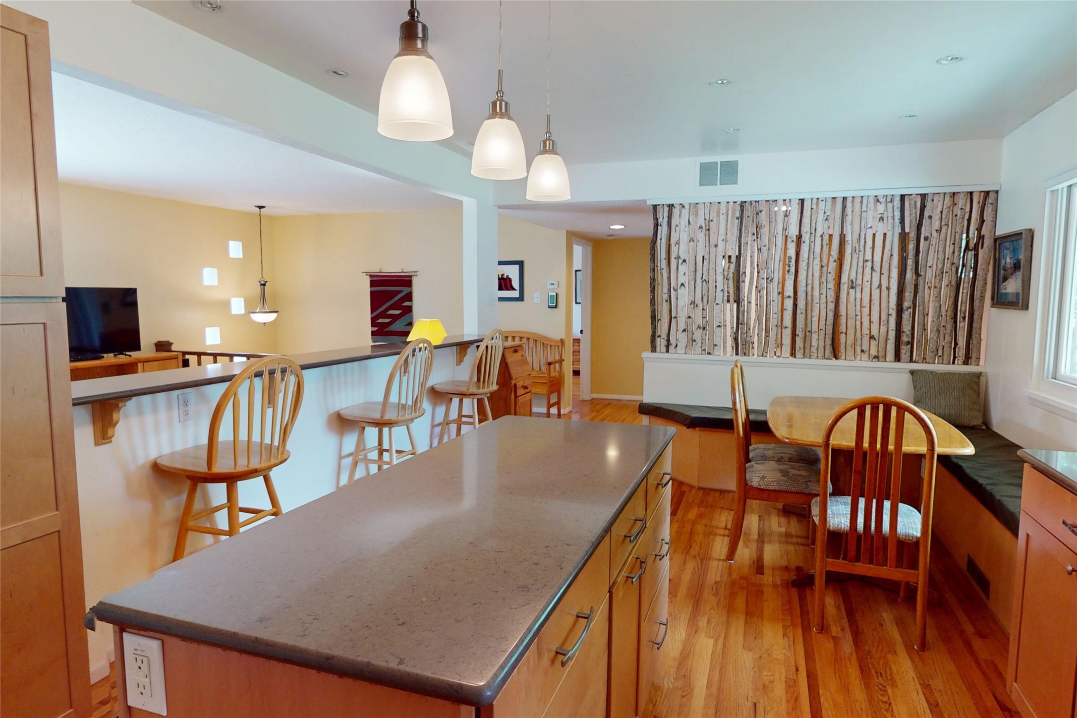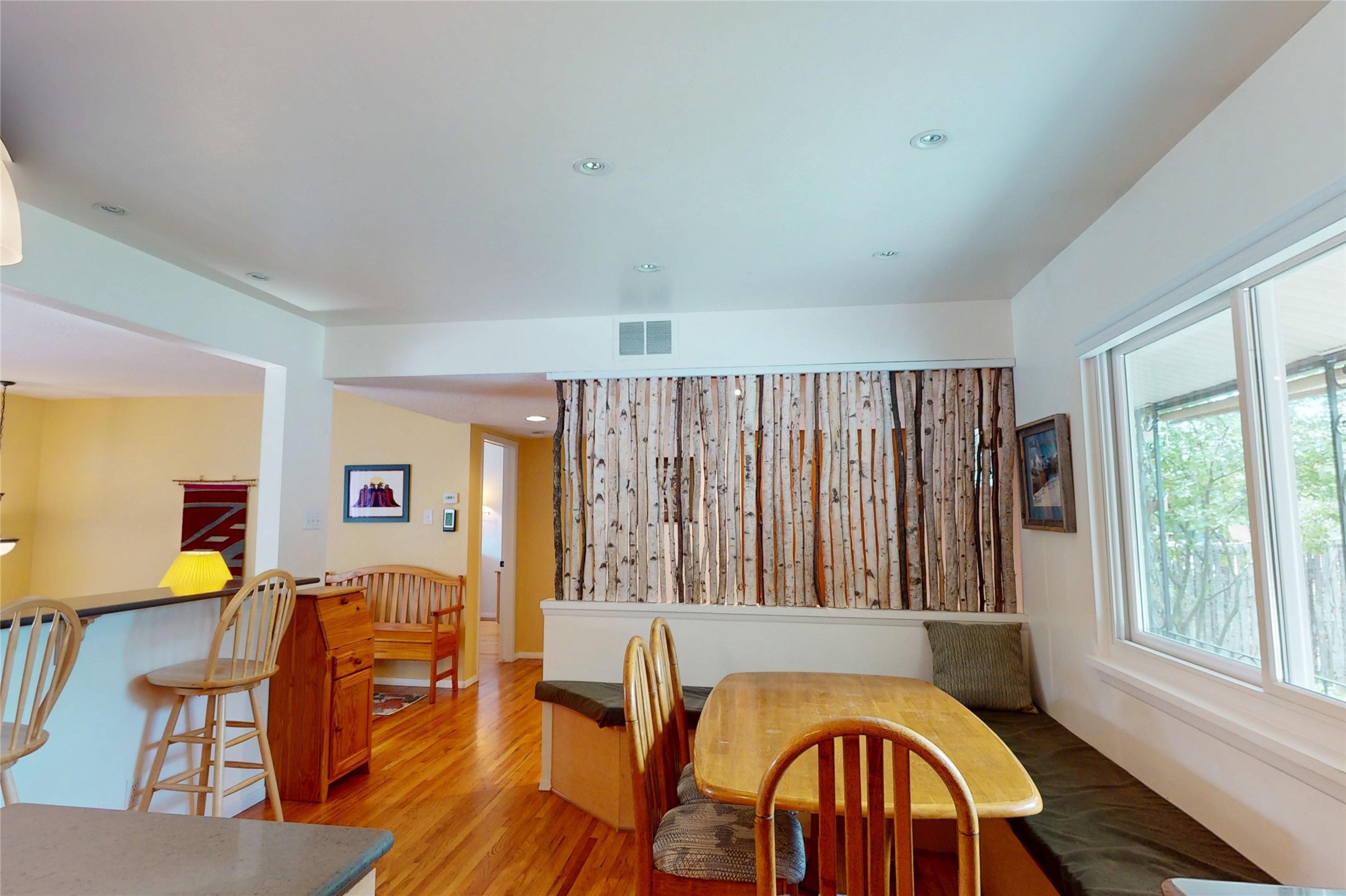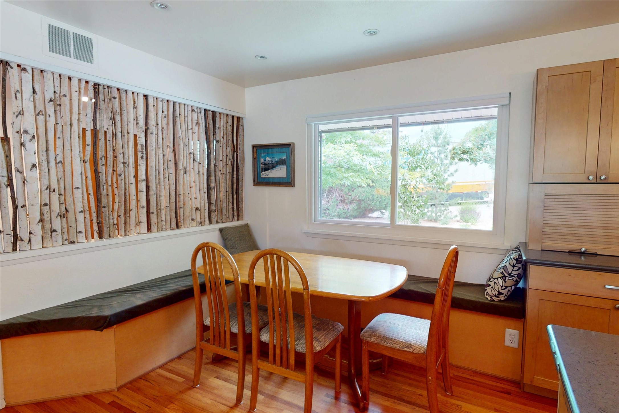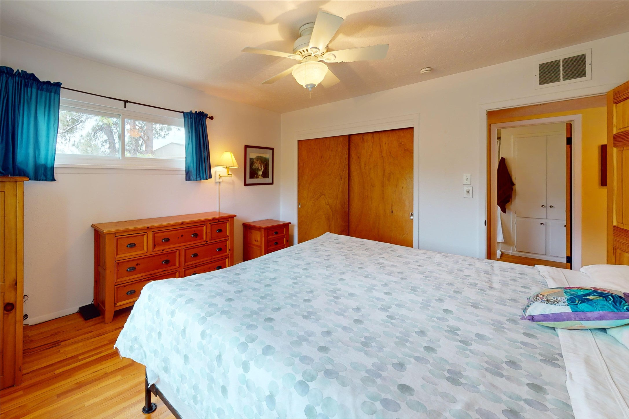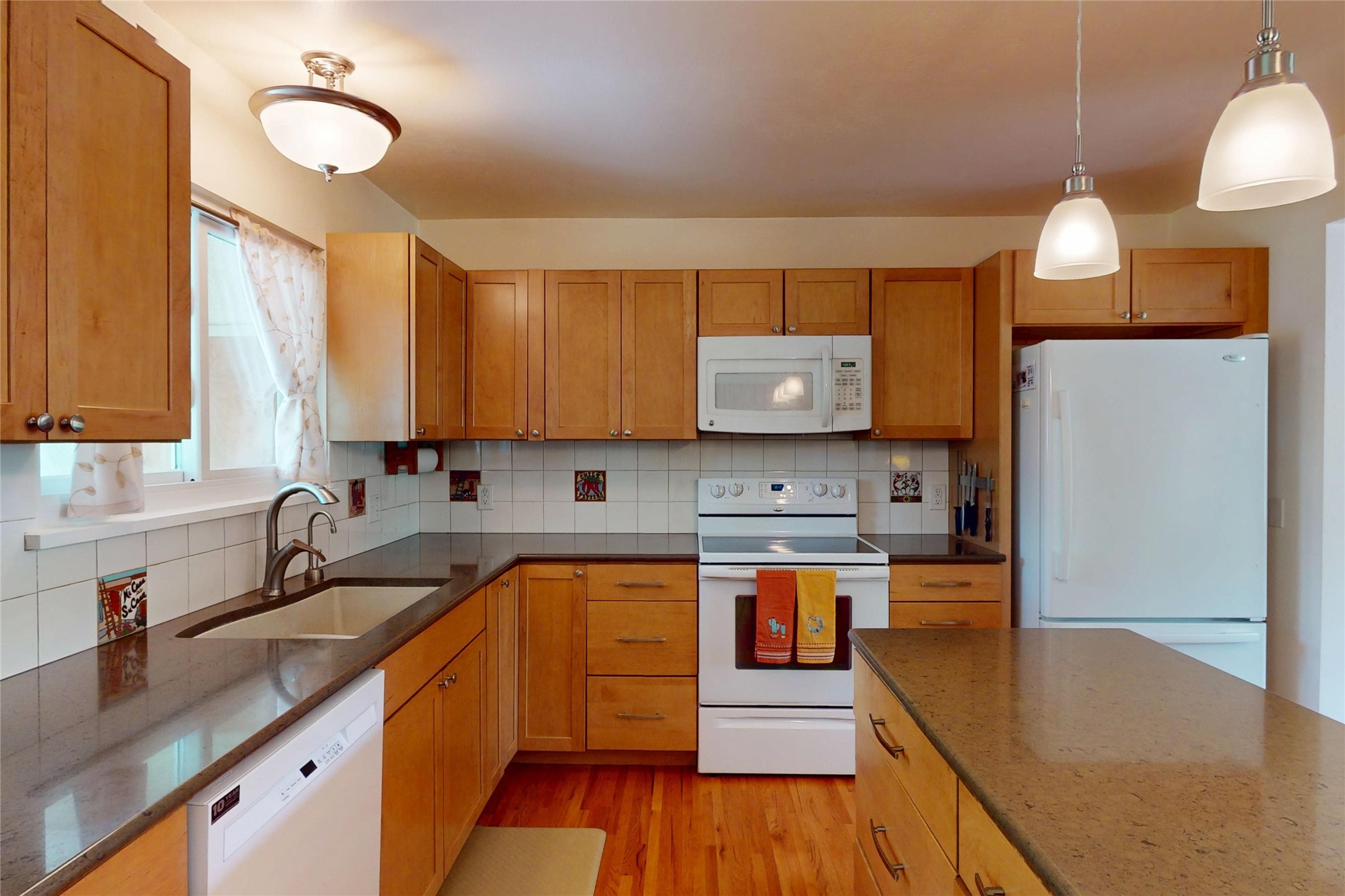 Serene Barranca Mesa Retreat with canyon access from the gently sloping backyard. This is a rare opportunity to own a Stamm-built home on a peaceful cul-de-sac in one of Los Alamos' most sought-after neighborhoods. This well-maintained, smoke-free and pet-free property offers direct access to the county trail system and is just two blocks from Barranca Mesa Elementary. Nestled on over half an acre of lush canyon land, this home invites you to enjoy nature, privacy, and timeless quality. Inside, you'll find 3 bedrooms, 2 bathrooms, and over 2,500 square feet of bright, airy living space. The home is filled with natural light and has been lovingly cared for by only its second owners. Original oak hardwood floors grace the main level, while the downstairs features new laminate flooring and a cozy gas fireplace. The updated kitchen and bathrooms offer modern comfort, and a newly added sunroom provides a wonderful space for relaxing or entertaining year-round. Additional highlights include: new windows and remote-controlled automatic shades for the picture window, minimal carpet for easy maintenance, and a versatile bonus room downstairs--perfect for hobbies or a home office. Outside is your own private sanctuary - a stunning half acre lot, teeming with mature trees and birds. The professionally landscaped front yard features irrigation, while the backyard is beautifully natural with drip irrigation in place. A relaxing gazebo, a well-maintained hot tub, and extra driveway space for RV parking complete the picture. With a durable metal roof, quiet surroundings, and a genuine connection to the outdoors, this canyon-side property offers the perfect balance of comfort, convenience, and tranquility. Don't miss your chance to own this gem in Barranca Mesa--schedule your showing today.