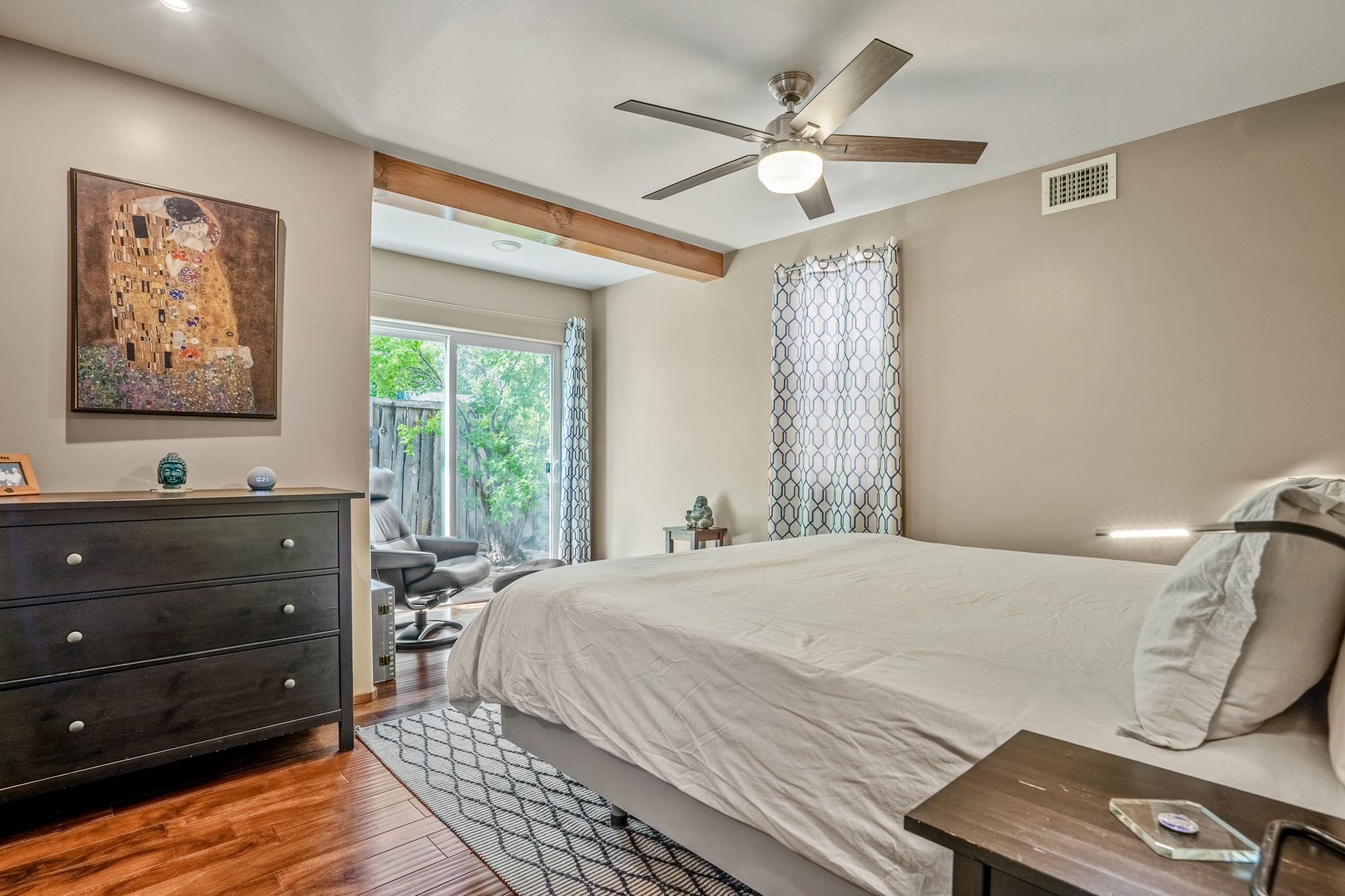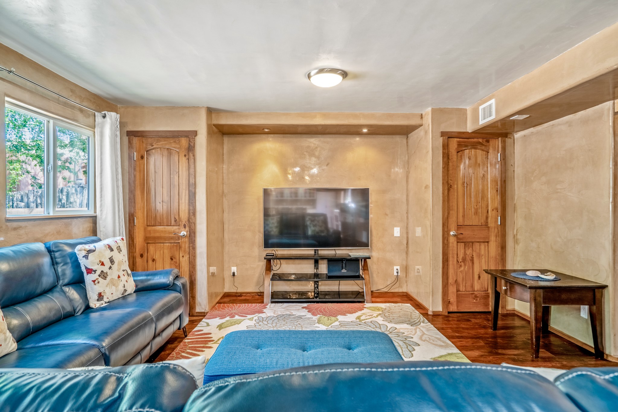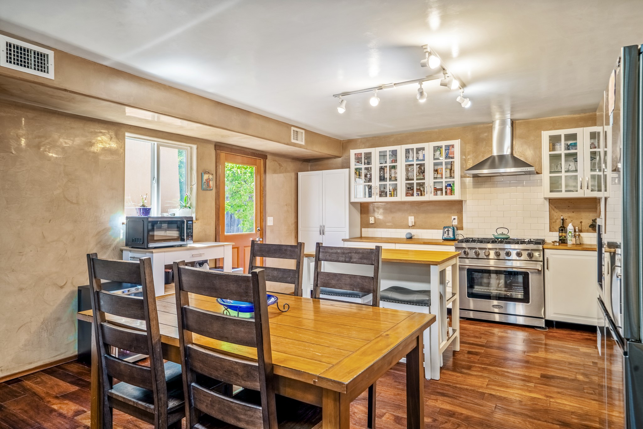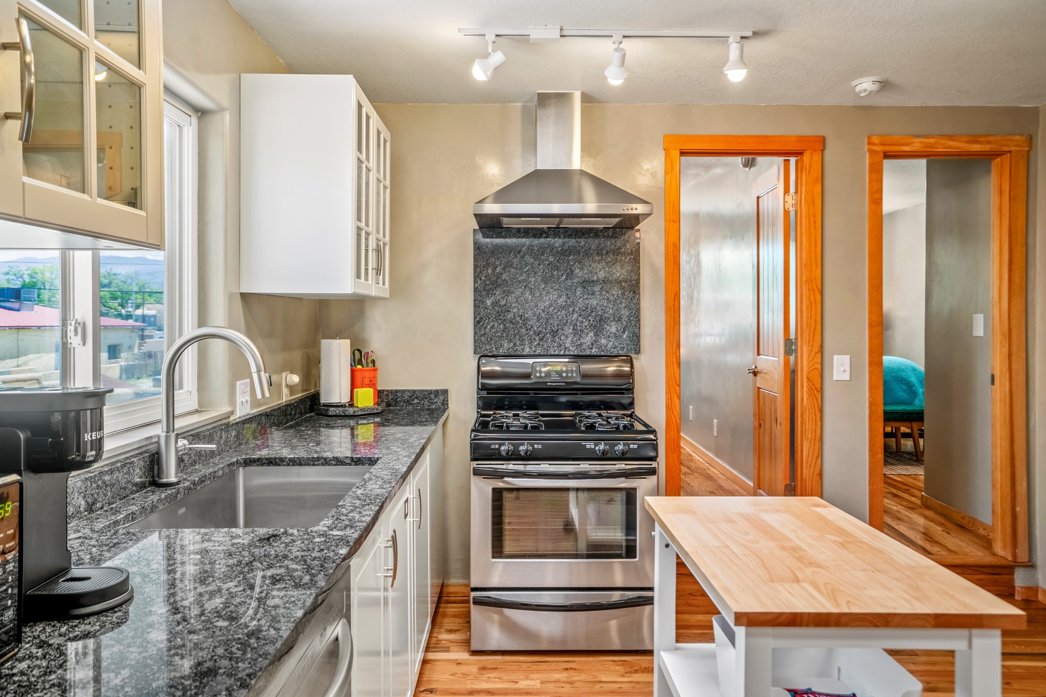 Versatile Income Property Just One Block from the Railyard District! Just steps from the vibrant Santa Fe Railyard, this thoughtfully renovated compound offers flexibility, privacy, and excellent income potential. The single-level 3-bedroom, 2-bathroom main residence spans 1,487 sq. ft., with an open-concept kitchen/living/ dining area featuring beautiful Venetian plaster walls, butcher block countertops, and direct access to a private back courtyard. The primary suite includes a spacious walk-in closet and its own secluded patio. Comfort is ensured year-round with in-floor radiant heating and central A/C. Set to the side for maximum privacy, the 1,192 sq. ft. guest house offers 3 bedrooms, 2 bathrooms, a full kitchen, its own laundry, and a serene courtyard shaded by tall trees--an ideal retreat for guests or a proven income-producing rental. Separating the two dwellings is a 300 sq. ft. workshop/storage room that adds even more functionality to the property.This is a rare opportunity to live just one block from the Railyard--with space to live, host, create, or invest.
