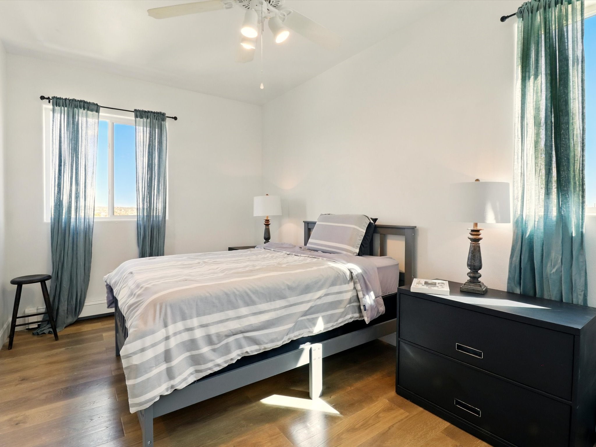 Experience breathtaking views surrounding this exceptional property located on just over 4 acres of pristine high desert landscape. This stunning home blends the timeless charm of Pueblo-style architecture with the inviting touches of modern farmhouse design including an expansive 1,000 square foot addition completed in 2020. The versatile floor plan is anchored by a beautifully updated gourmet kitchen featuring a Sub-Zero refrigerator and custom finishes with ample workspace, and a seamless flow for entertaining. On the main floor you will find that the primary bedroom showcases soaring ceilings with a picturesque view and private access to the outdoor courtyard. Complete with an oversized closet area and beautifully renovated bathroom that is perfect for soaking in the bathtub while taking in the view from the large picture window right above. The second floor consists of two bedrooms, a bonus room and two bathrooms. The balcony off the ensuite bedroom is ideal for soaking in the mountains and serene sunsets. Step outside to enjoy the covered portal and cozy up by the outdoor wood-burning fireplace. Fruit trees dot the landscape, adding character and a touch of sweetness to your retreat. Backed by peaceful green space and only minutes from the Galisteo Basin preserve, Santa Fe Rail Trail, this property offers the perfect blend of tranquility, access to nature and refined living. Do not miss this rare opportunity to own a home that truly captures the spirit and beauty of New Mexico.Pre-listing inspection report is available.